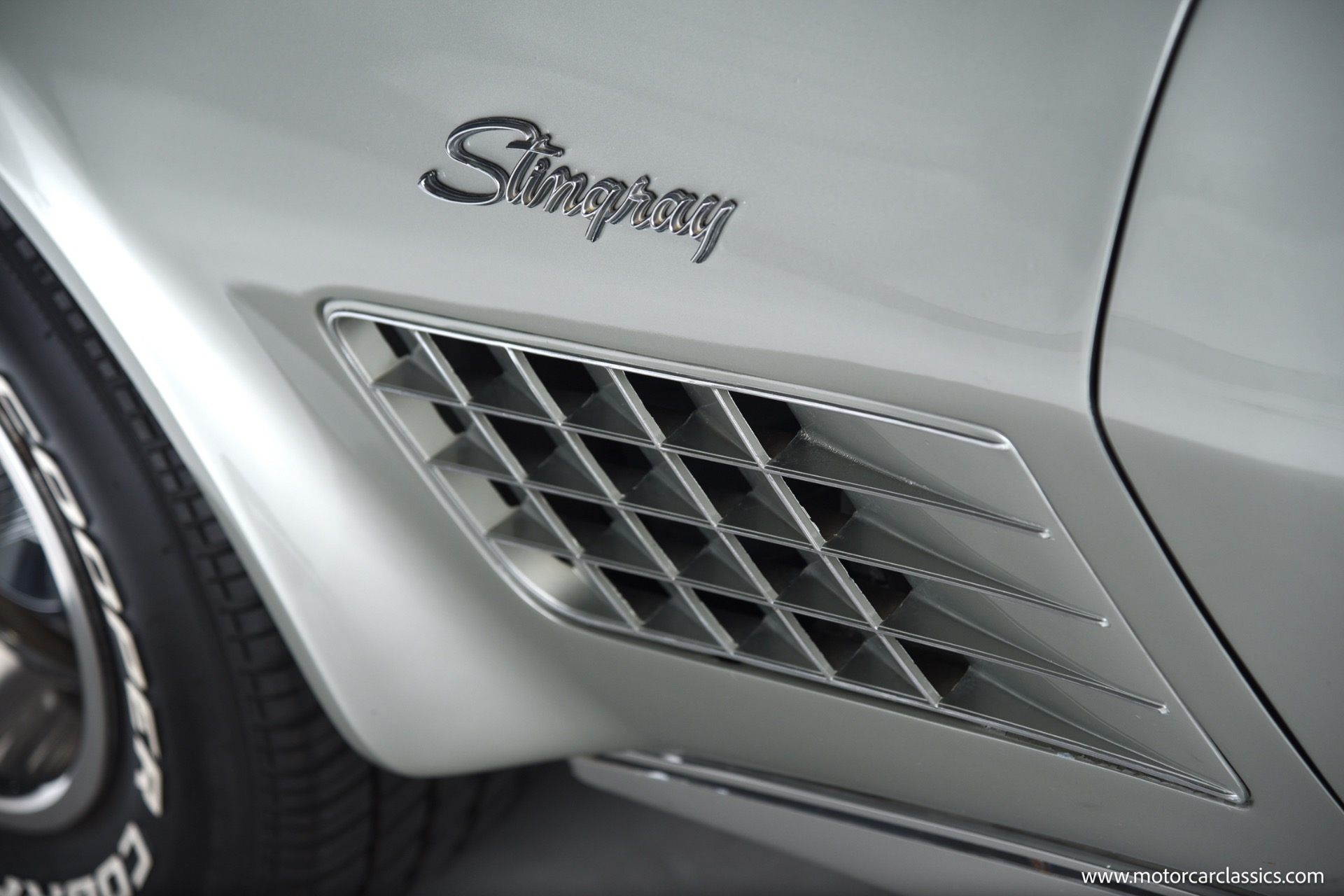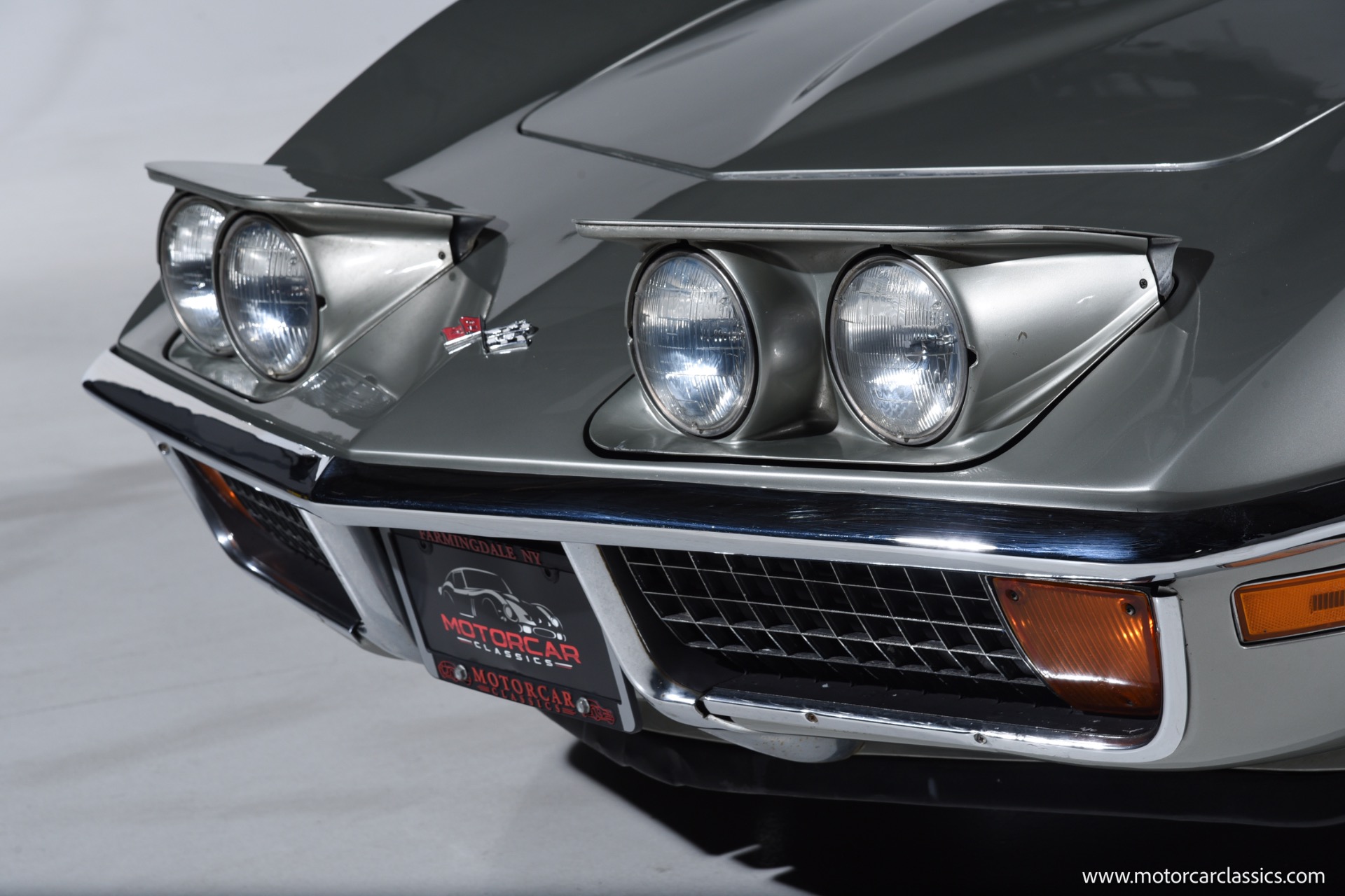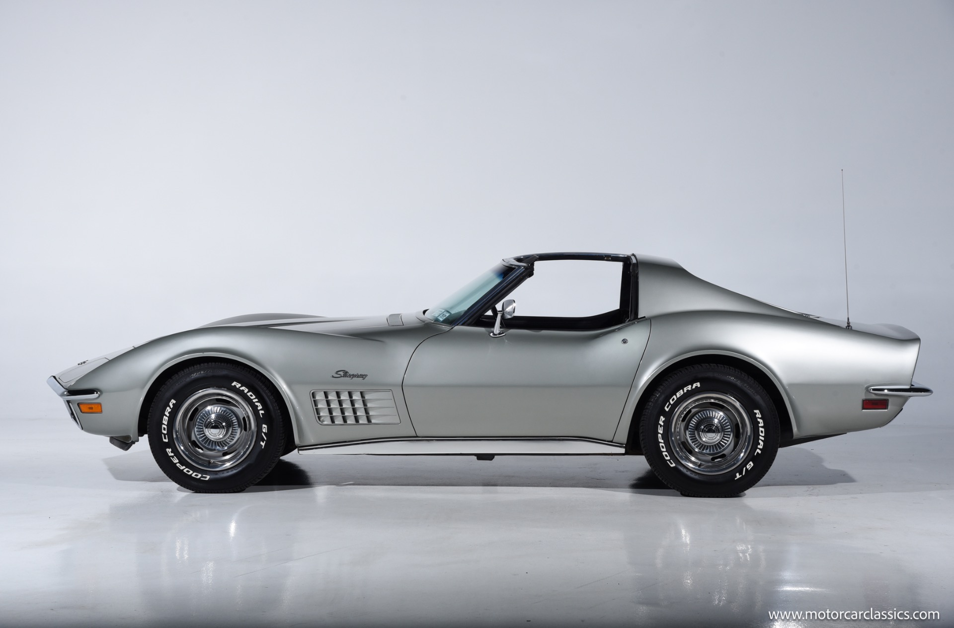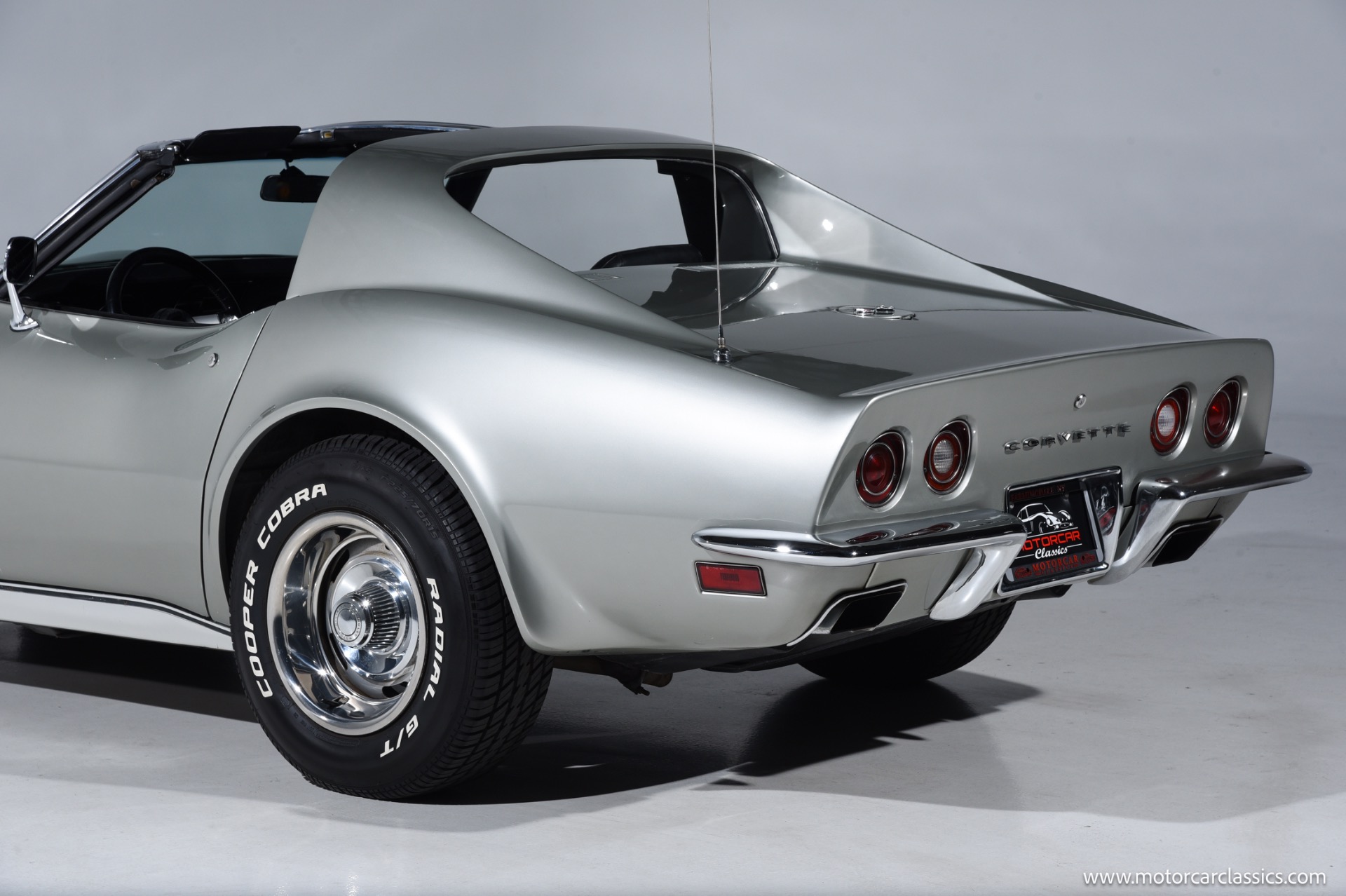 1972 Chevrolet Corvette for sale! Finished in Aztec Silver with a black leather interior, this 1972 Chevrolet Corvette stands as a striking example of the final year before the Corvette transitioned away from its classic chrome bumper styling. Under the hood resides the 350 cubic inch V8 engine paired with a 4-speed manual transmission, delivering the kind of mechanical engagement that defined early C3 Corvettes. Power steering and power brakes make for a confident drive, while factory-installed air conditioningcurrently inoperativewas a desirable comfort option of the period.