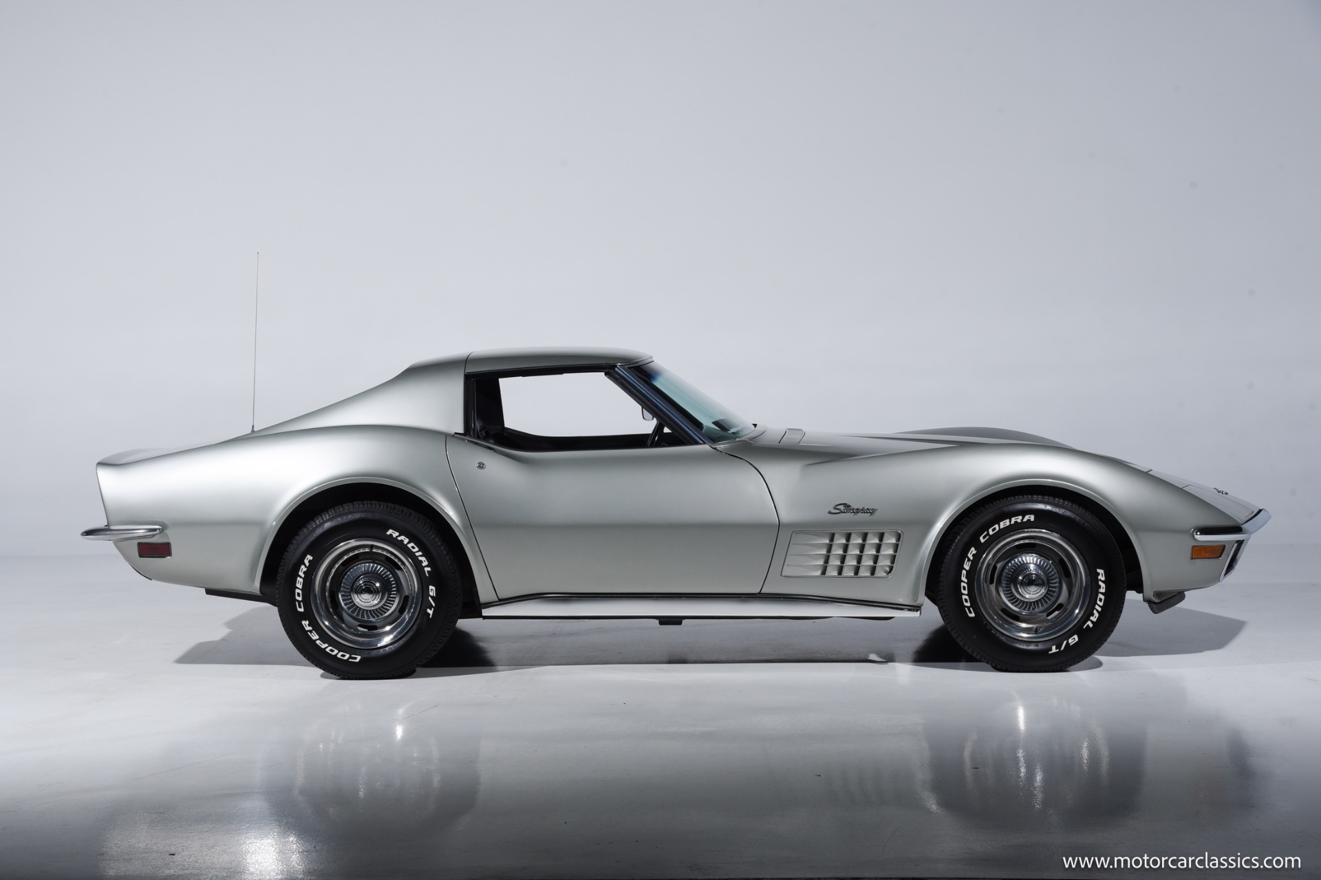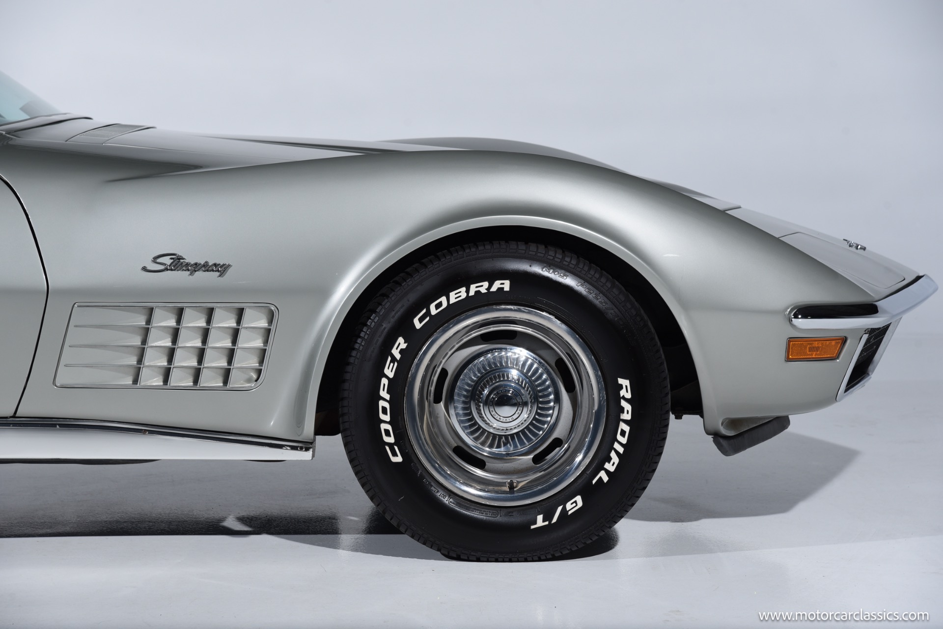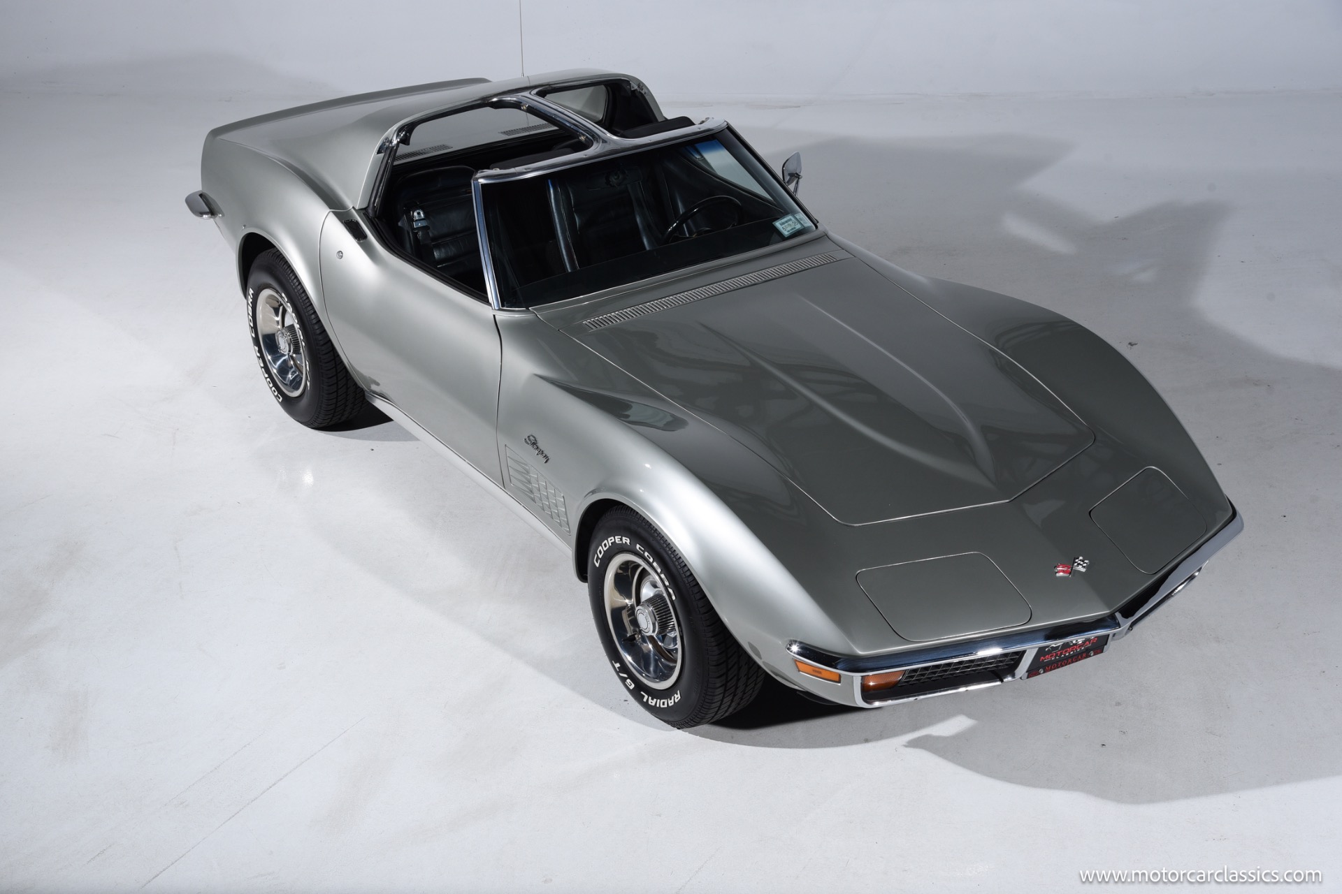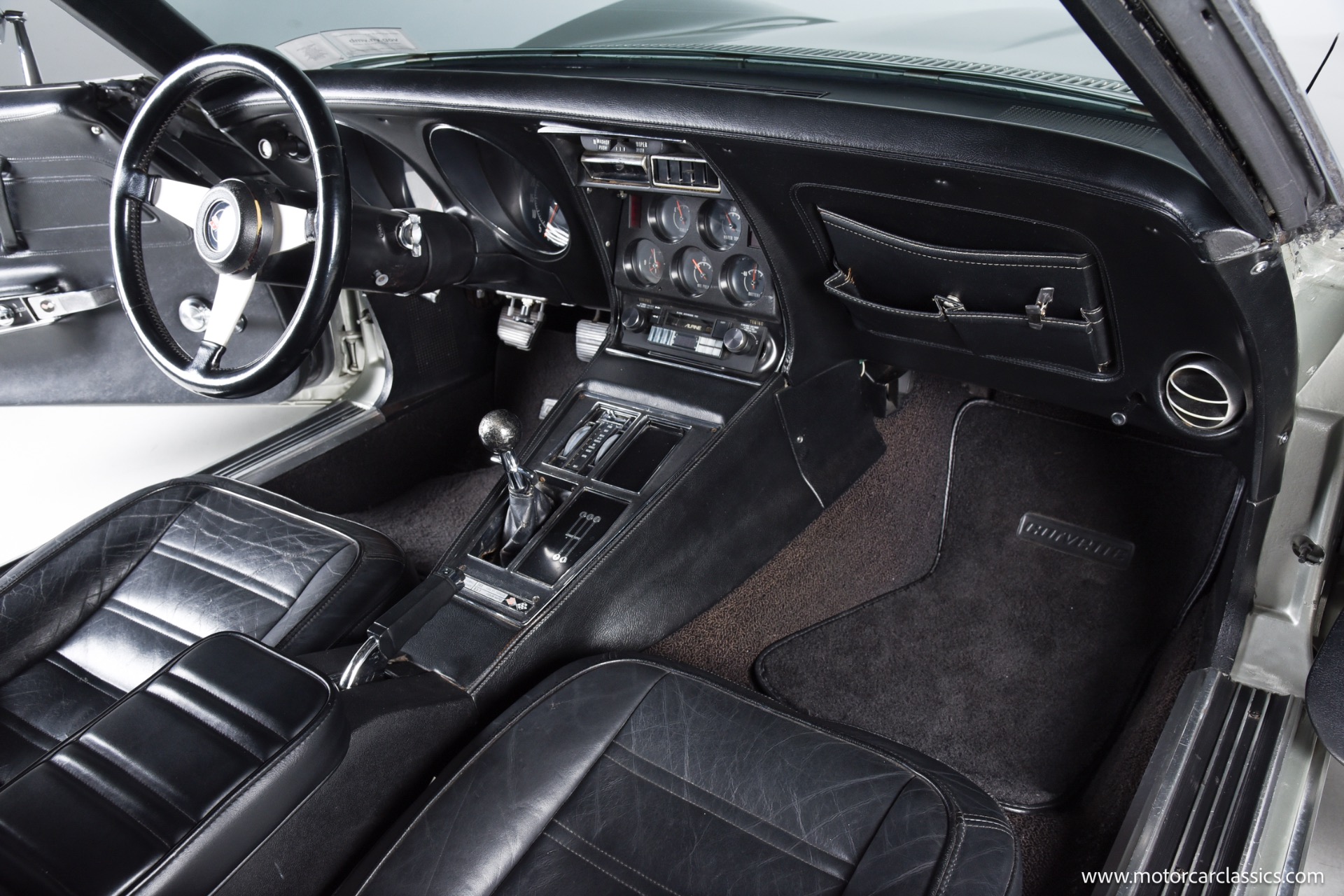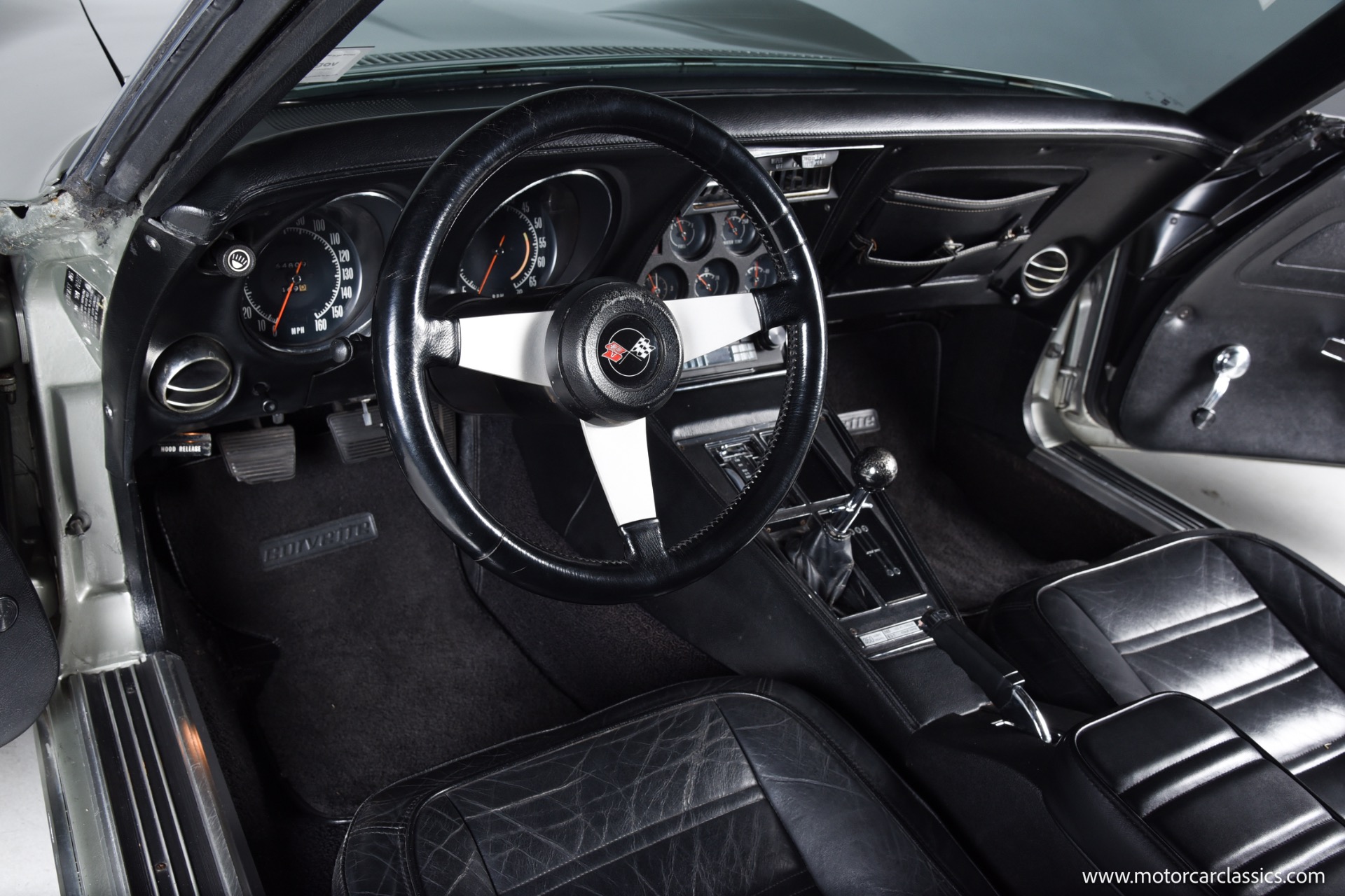 1972 Chevrolet Corvette for sale! Finished in Aztec Silver with a black leather interior, this 1972 Chevrolet Corvette stands as a striking example of the final year before the Corvette transitioned away from its classic chrome bumper styling. Under the hood resides the 350 cubic inch V8 engine paired with a 4-speed manual transmission, delivering the kind of mechanical engagement that defined early C3 Corvettes. Power steering and power brakes make for a confident drive, while factory-installed air conditioningcurrently inoperativewas a desirable comfort option of the period.