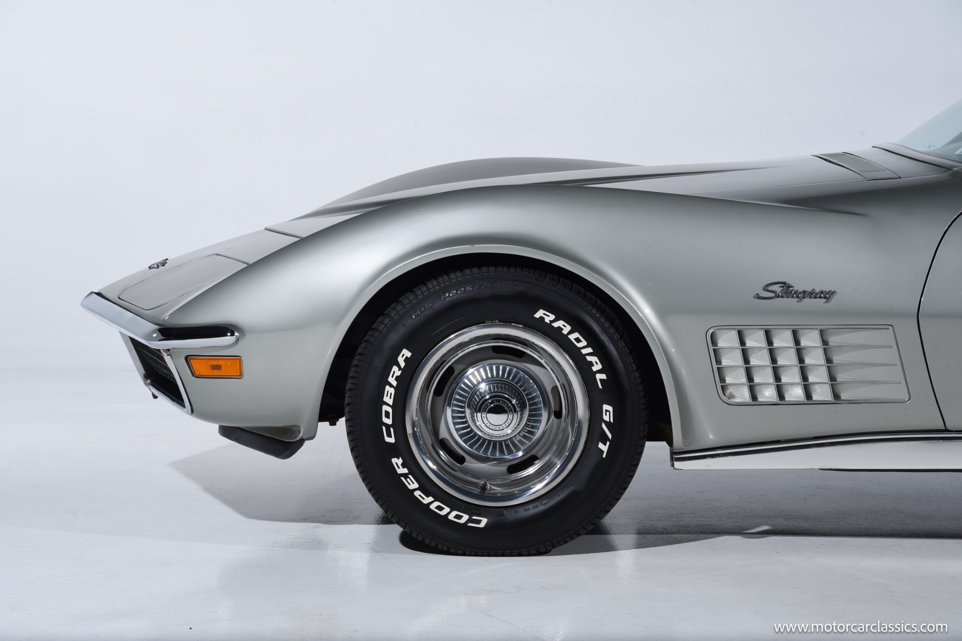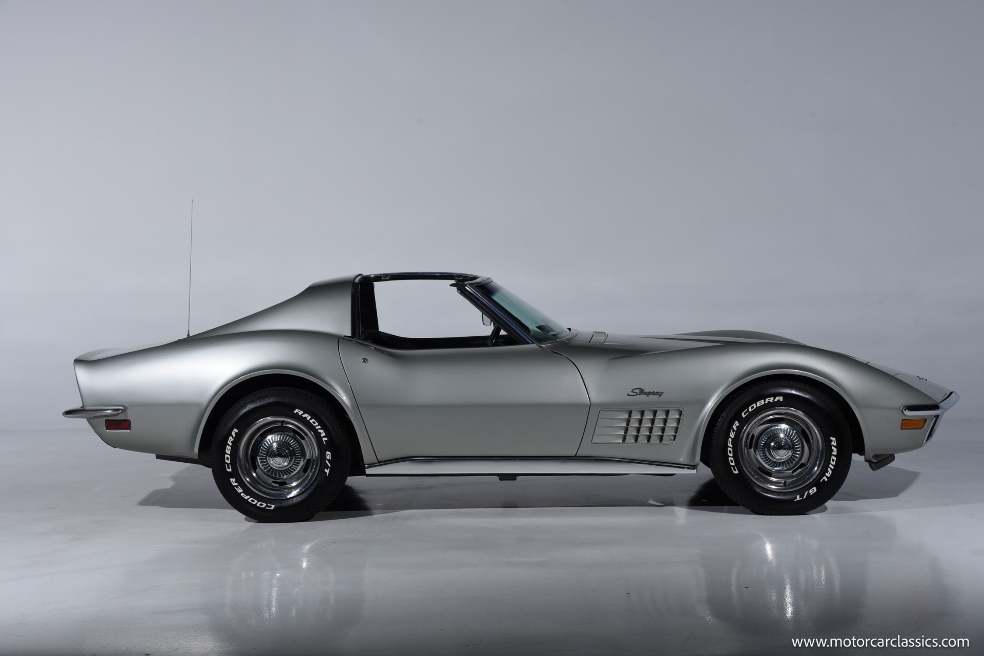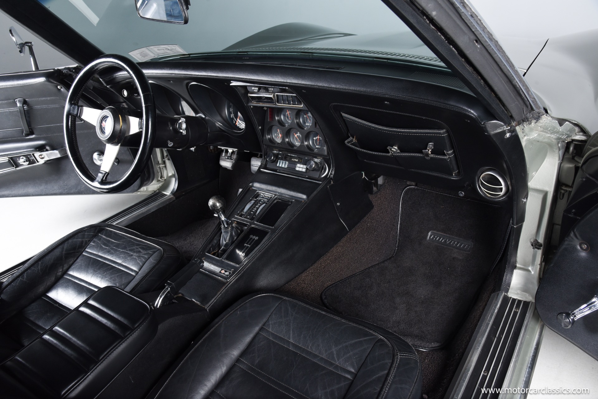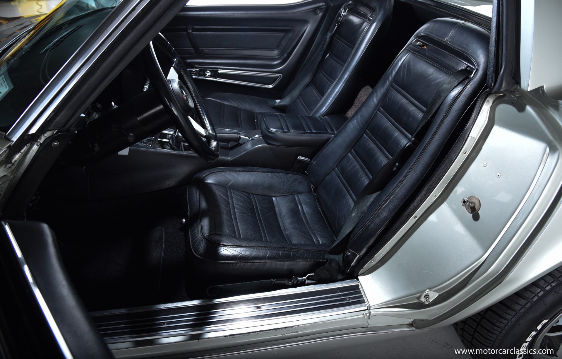 1972 Chevrolet Corvette for sale! Finished in Aztec Silver with a black leather interior, this 1972 Chevrolet Corvette stands as a striking example of the final year before the Corvette transitioned away from its classic chrome bumper styling. Under the hood resides the 350 cubic inch V8 engine paired with a 4-speed manual transmission, delivering the kind of mechanical engagement that defined early C3 Corvettes. Power steering and power brakes make for a confident drive, while factory-installed air conditioningcurrently inoperativewas a desirable comfort option of the period.