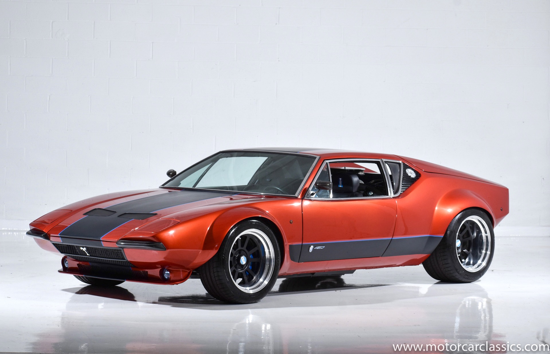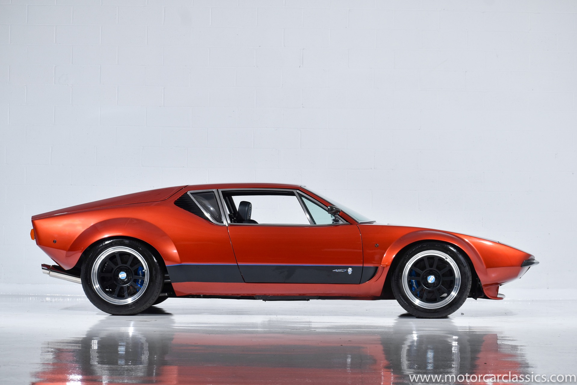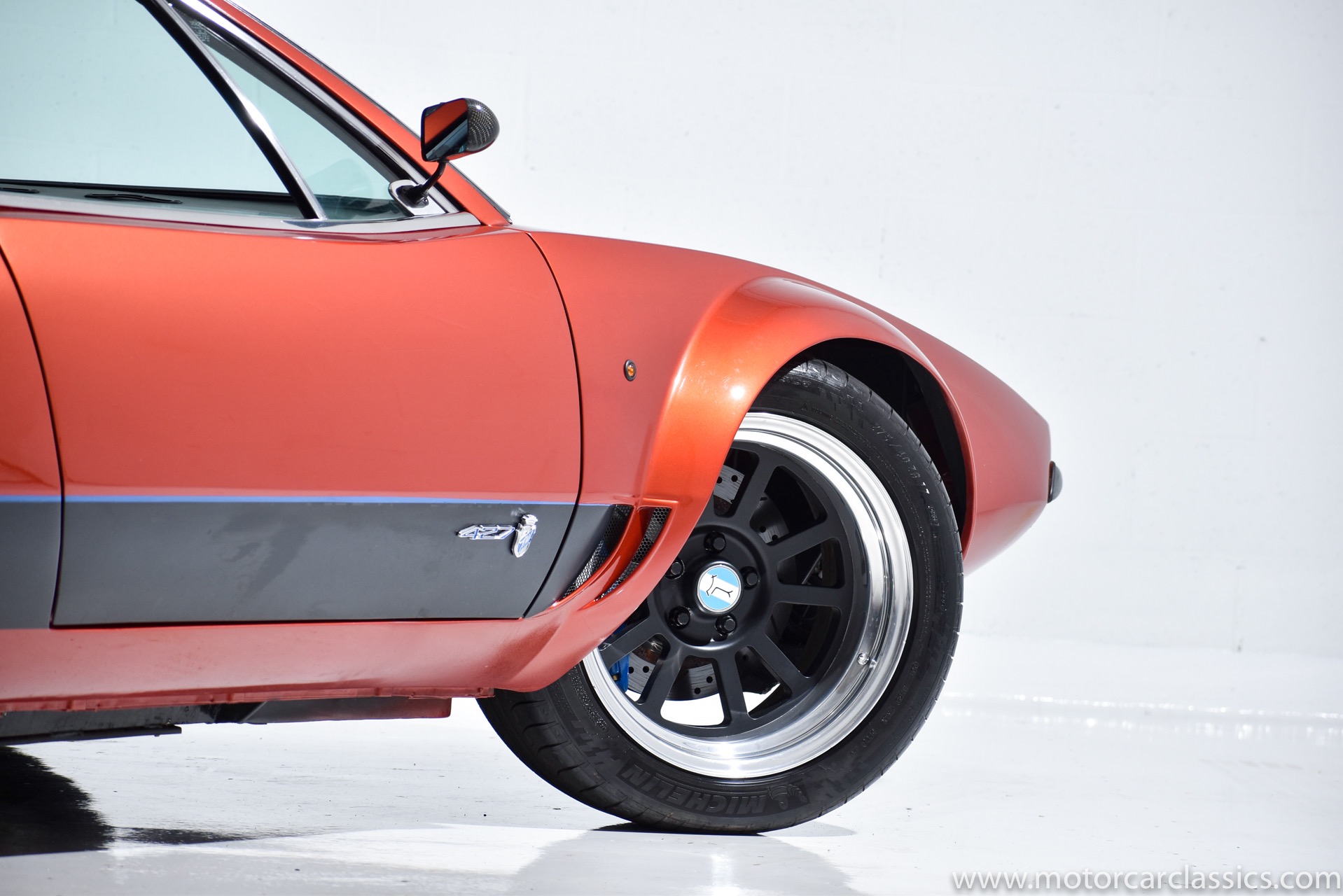 1972 DeTomaso Pantera for sale! Motorcar Classics is pleased to present this awesome 1972 DeTomaso Pantera Group 4 tribute car featured in metallic red/orange with black leather interior. This car was constructed circa 2010 likely by PI Motorsports, a Pantera specialist in Orange, CA, who are Pantera specialists and had this car on offer at that time as a project car. The car has a 427 CI motor, ZF 5-speed, with upgrades to the engine, transmission, suspension and brakes. The interior is fully upgraded as well, and the Group 4 style bodywork is accented by carbon fiber all around. This Pantera restomod offers formidable performance with the authentic Pantera race car looks.