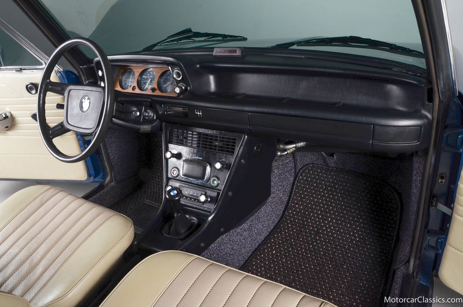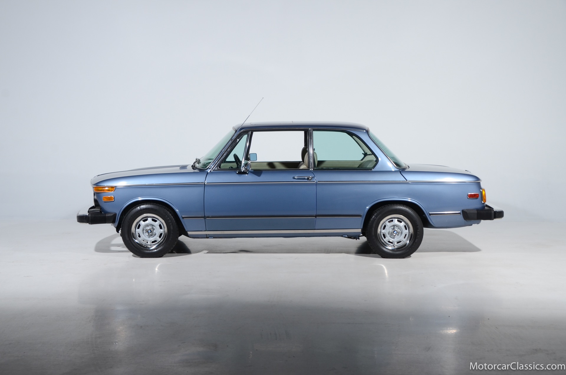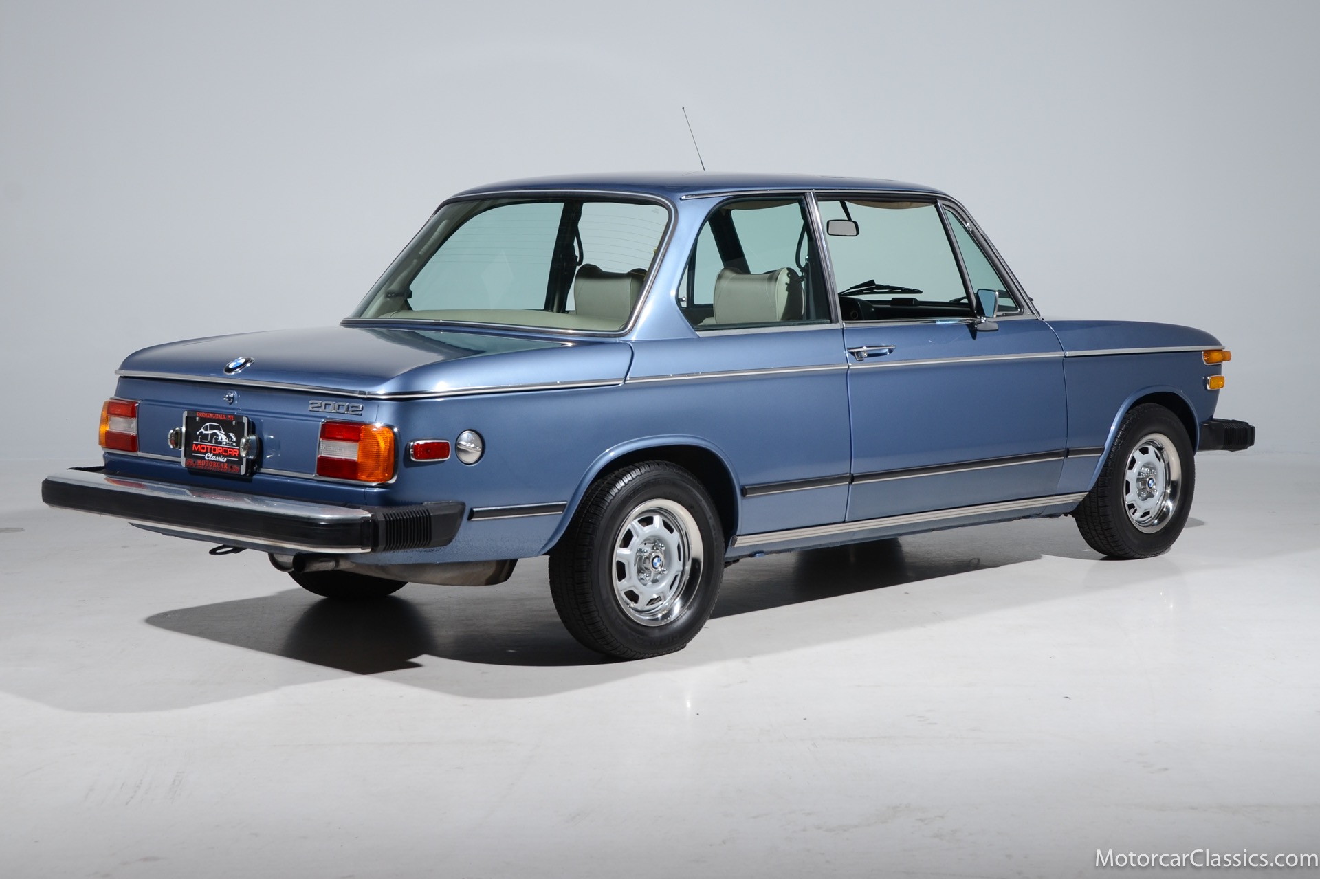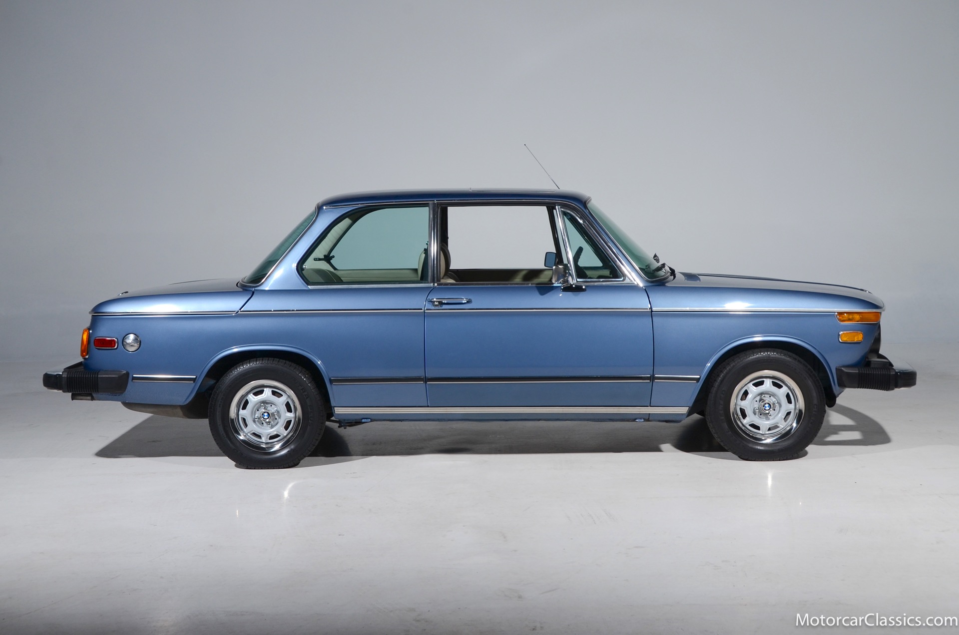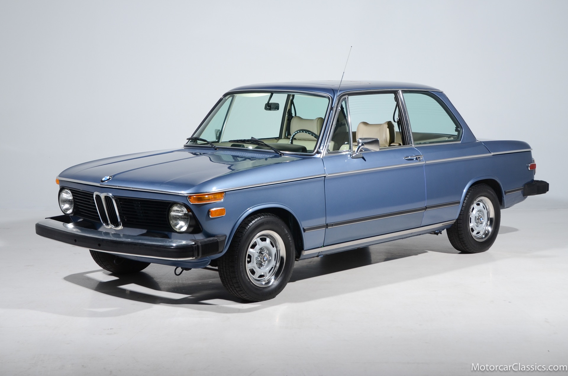 1974 BMW 2002 for sale! Motorcar Classics is proud to present this delightful 1974 BMW 2002, a US model that is fitted with the desirable 4-speed manual gearbox, sunroof, and the very rare factory air-conditioning. It is featured in Fjord Blue with a beige vinyl interior. The 2002 is perhaps the most famous of BMW's New Class line, and it both revitalized the Bavarian automaker's international reputation and pioneered the category of small, sporty sedans. The world was captivated by the 2002's attractive blend of power, agility and style in addition to its reasonable price tag. And collectors continue to be captivated today. Our 2002 is still fitted with the original AM/FM radio and benefits from a recent tune up service and new engine mounts. Power is from the original 2.0L I-4 SOHC motor with Weber carb mated to a 4-speed gearbox. The car presents well and would be best characterized as a high-level driver. It is lively and delightful to drive.