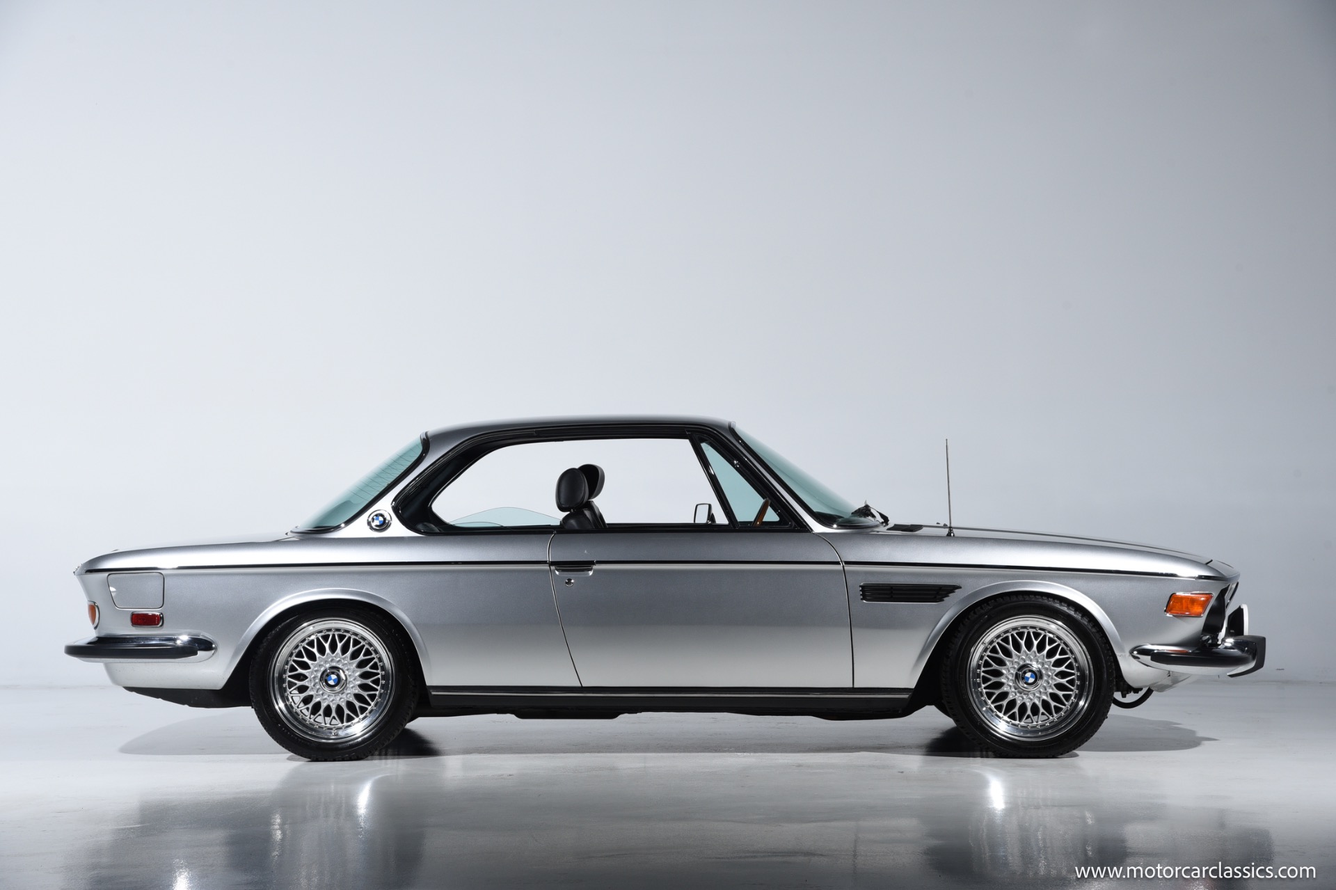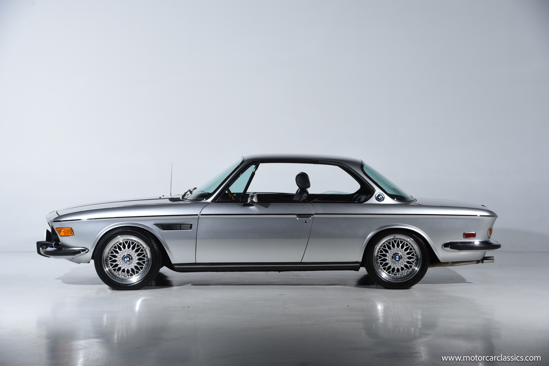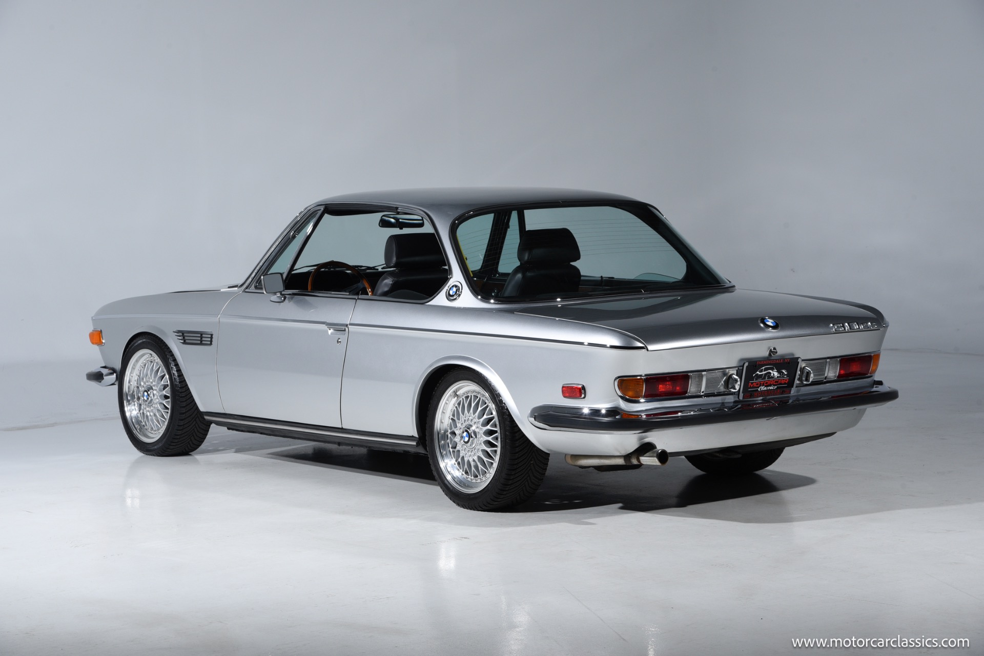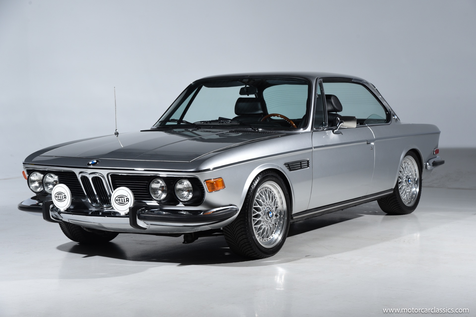 1974 BMW 3.0 for sale! Motorcar Classics is proud to present this beautiful 1974 BMW 3.0 CS, a tastefully upgraded example of BMW's iconic E9 coupe. It is finished in classic Polaris Silver over a black leather interior and shows just 27,220 miles. Its elegant factory lines are preserved to perfection, subtly enhanced by period-style BBS RS multi-piece alloy wheels that fill the arches with the right stance and Hella Rallye auxiliary driving lights that hint at the model's touring-car heritage. The cabin delivers the blend of luxury and sport that made these cars legends, with supple black leather seating, rich wood-grain dash and door trims, and an Alpine head unit discreetly integrated to provide modern audio without disturbing the vintage ambience.