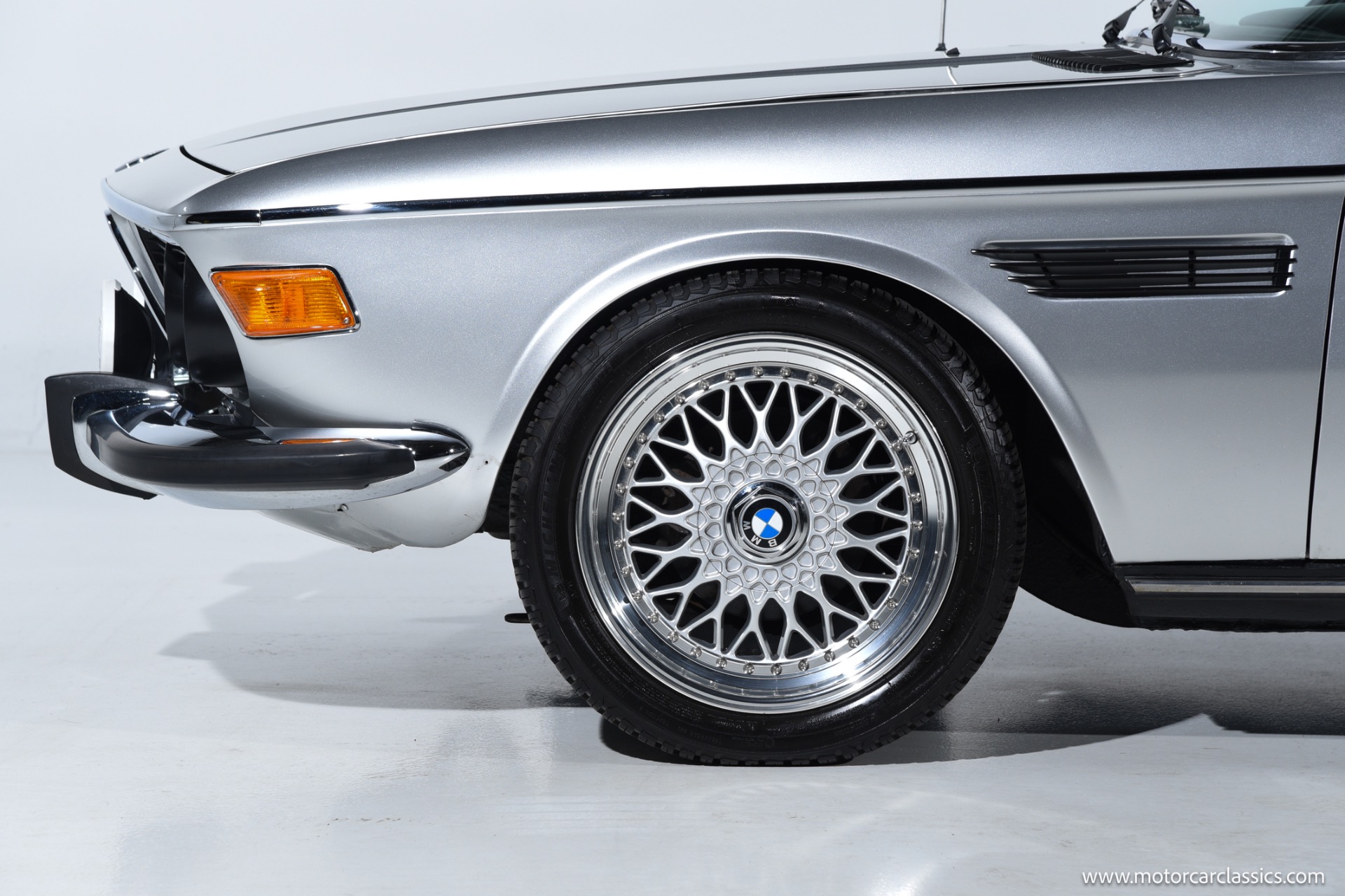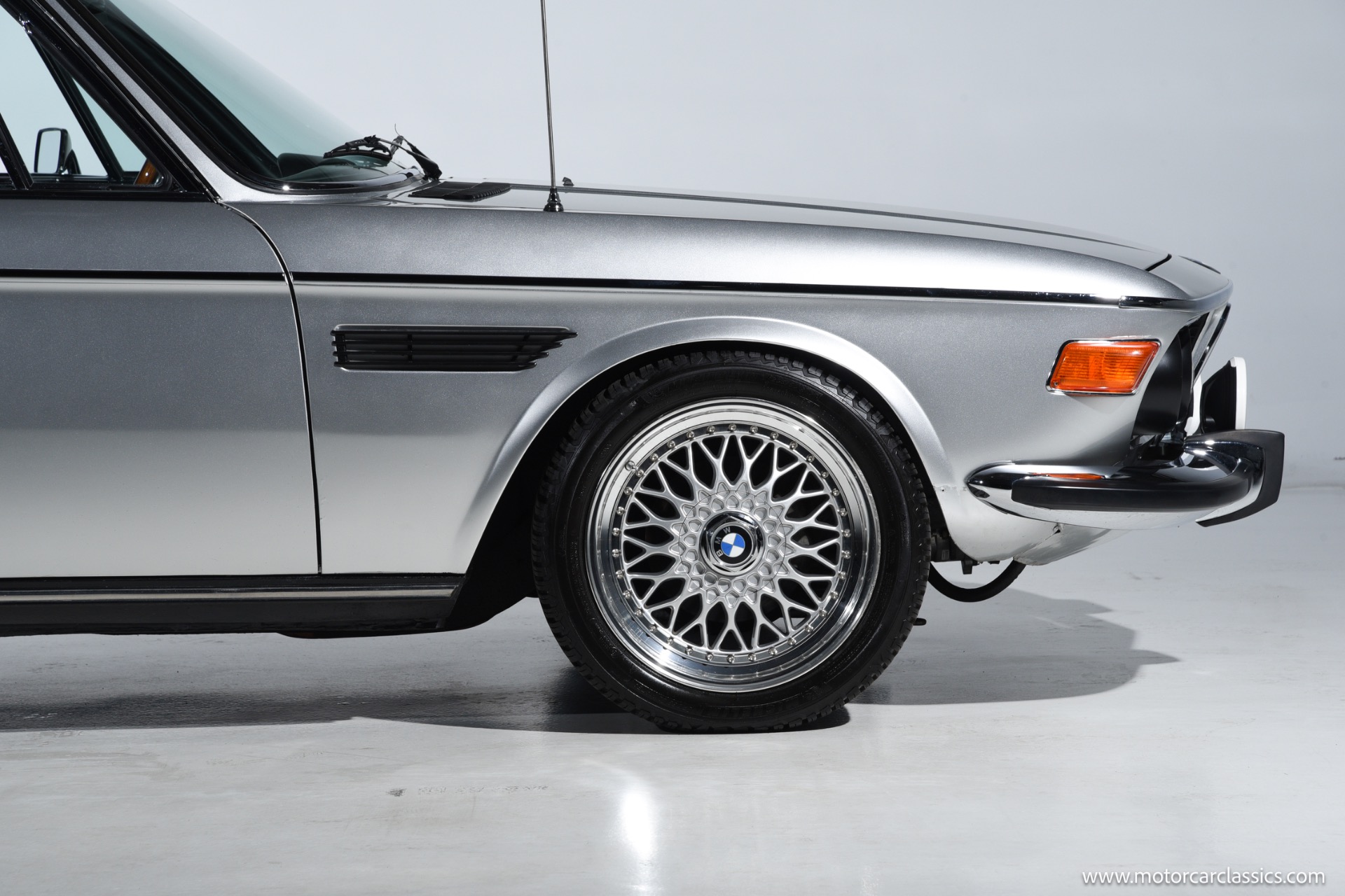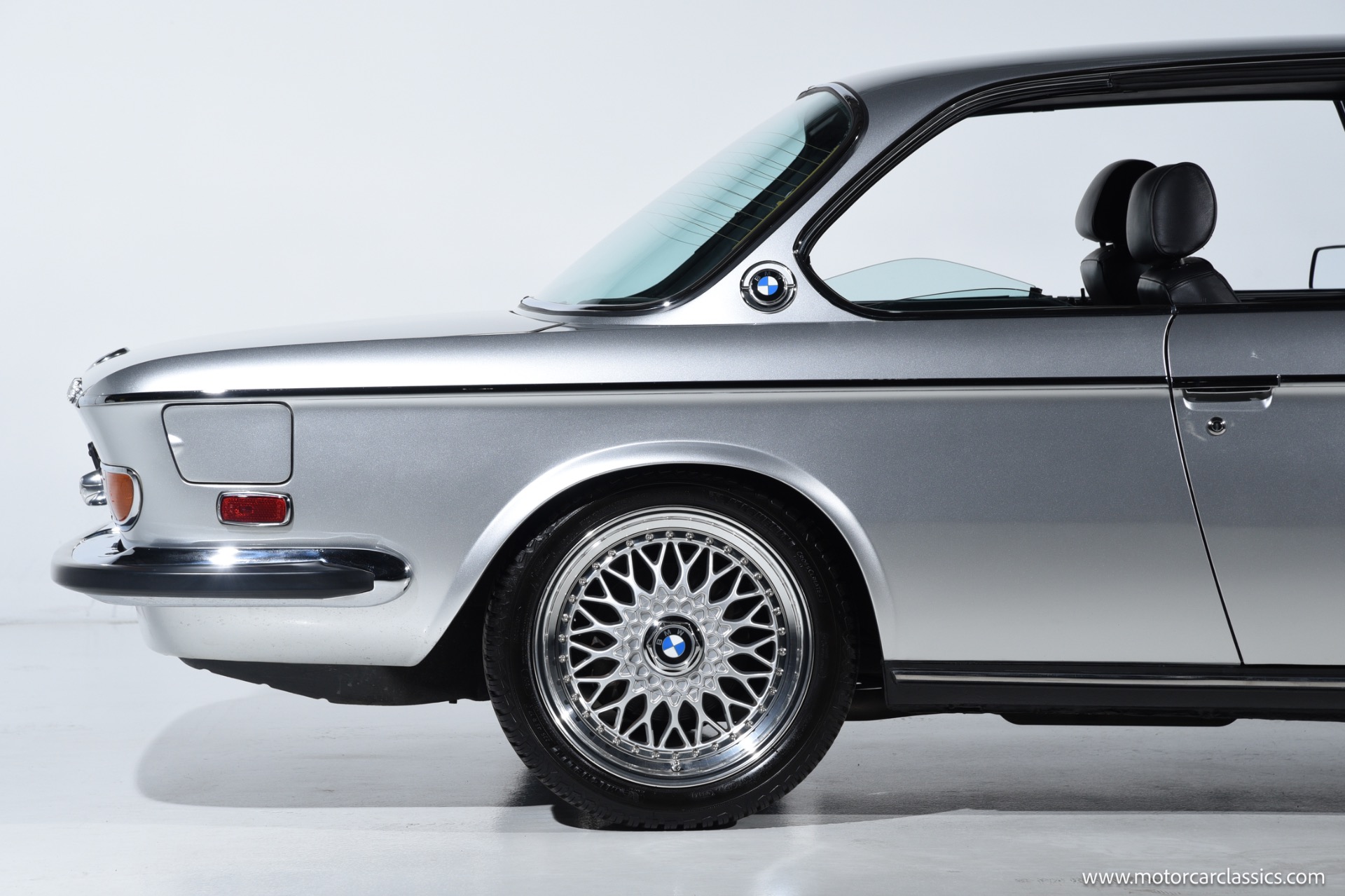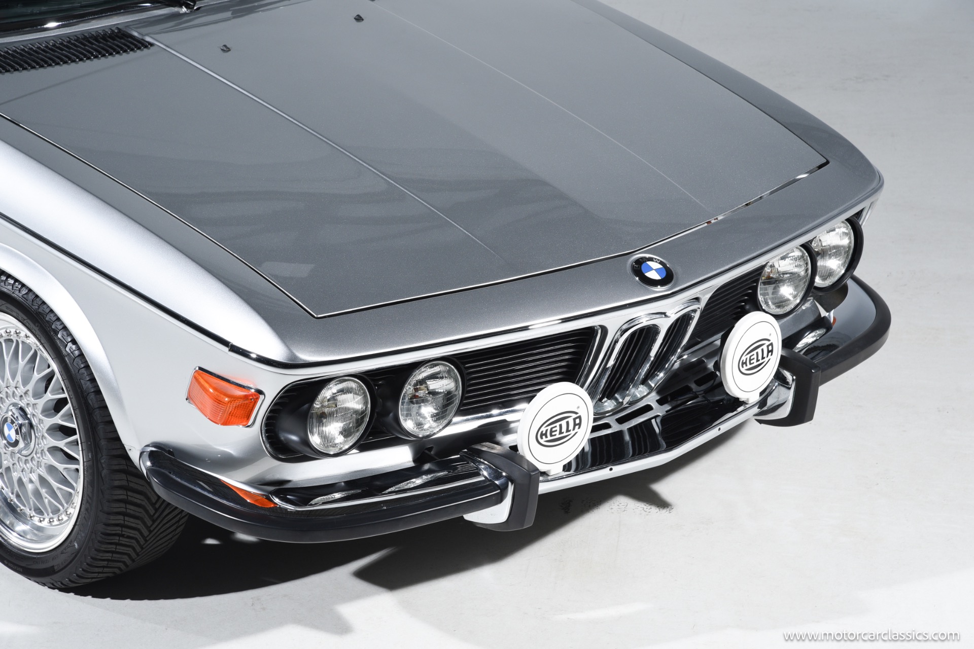 1974 BMW 3.0 for sale! Motorcar Classics is proud to present this beautiful 1974 BMW 3.0 CS, a tastefully upgraded example of BMW's iconic E9 coupe. It is finished in classic Polaris Silver over a black leather interior and shows just 27,220 miles. Its elegant factory lines are preserved to perfection, subtly enhanced by period-style BBS RS multi-piece alloy wheels that fill the arches with the right stance and Hella Rallye auxiliary driving lights that hint at the model's touring-car heritage. The cabin delivers the blend of luxury and sport that made these cars legends, with supple black leather seating, rich wood-grain dash and door trims, and an Alpine head unit discreetly integrated to provide modern audio without disturbing the vintage ambience.