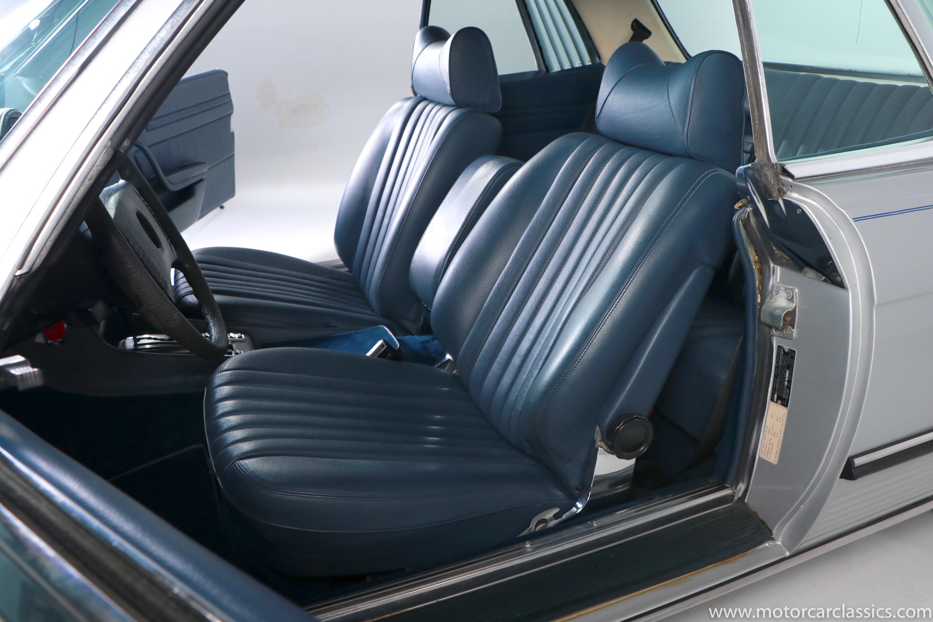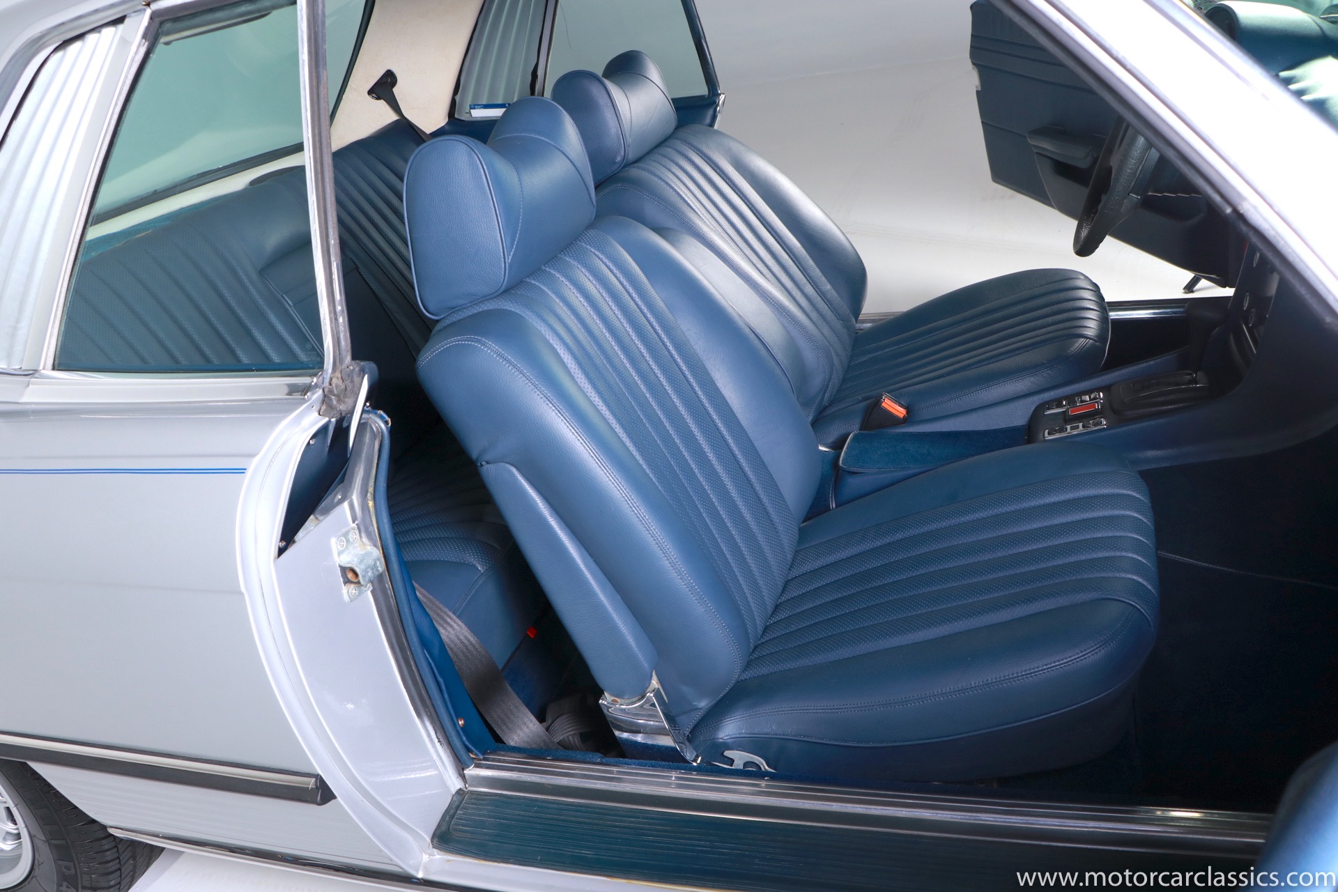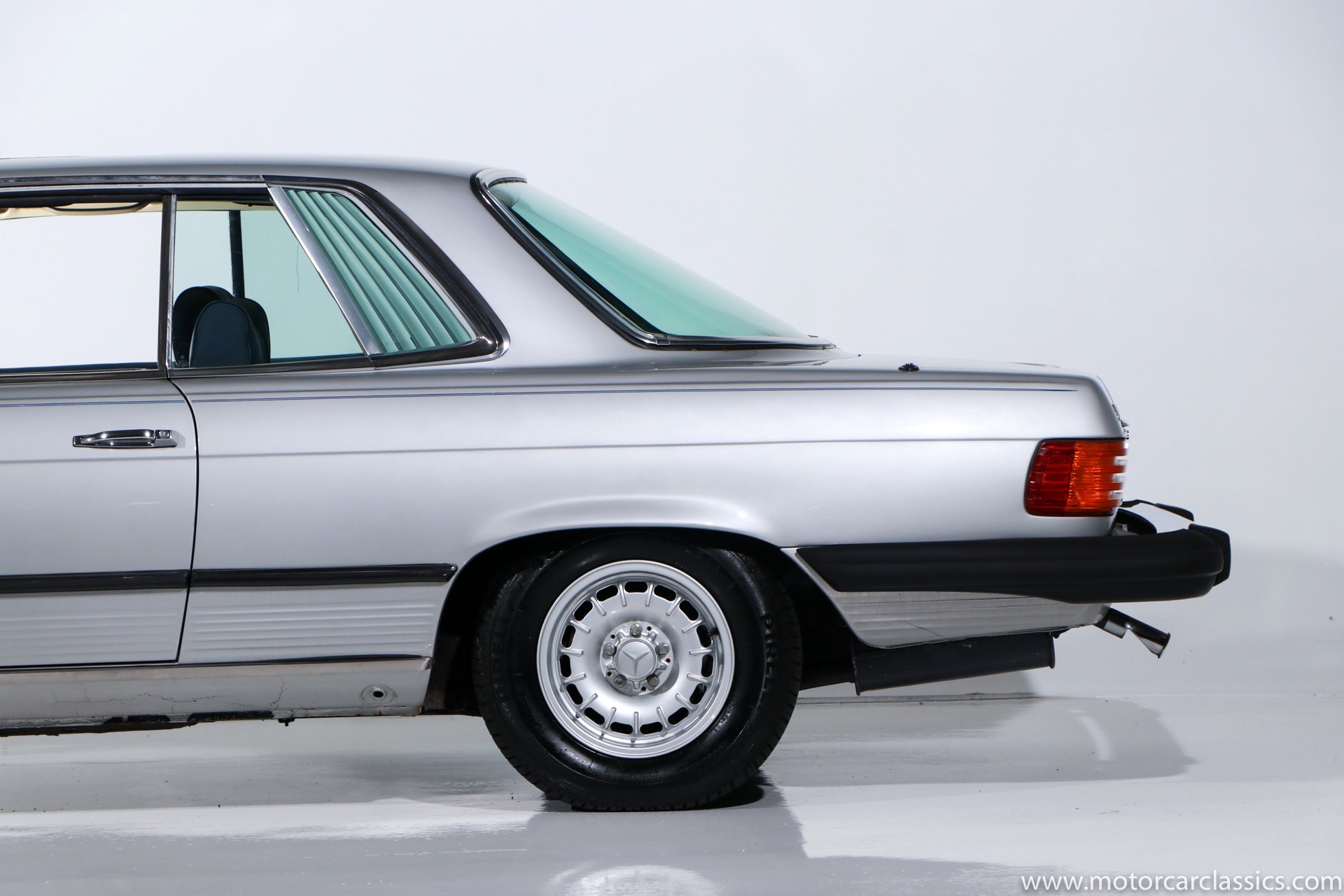 1975 Mercedes-Benz 450SLC for sale! This 1975 Mercedes 450SLC is featured in silver with navy blue leather interior. This car was acquired from the estate of a gentleman who was very fond of the car and had it fully restored including fresh paint and interior. The 450SLC is a rare variant of Mercedes iconic R107 roadster, but the C adds an extended wheelbase and room for four passengers. This car has covered 108k miles, but remains in robust mechanical health. The rear quarter window vents, often a cosmetic problem on these cars, are in fine condition. There is a spot between the rear window and the trunk where some bubbling is evident under the paint. So some minor cosmetic attention will reward the new owner with an exceptional example of this rare Mercedes coupe.