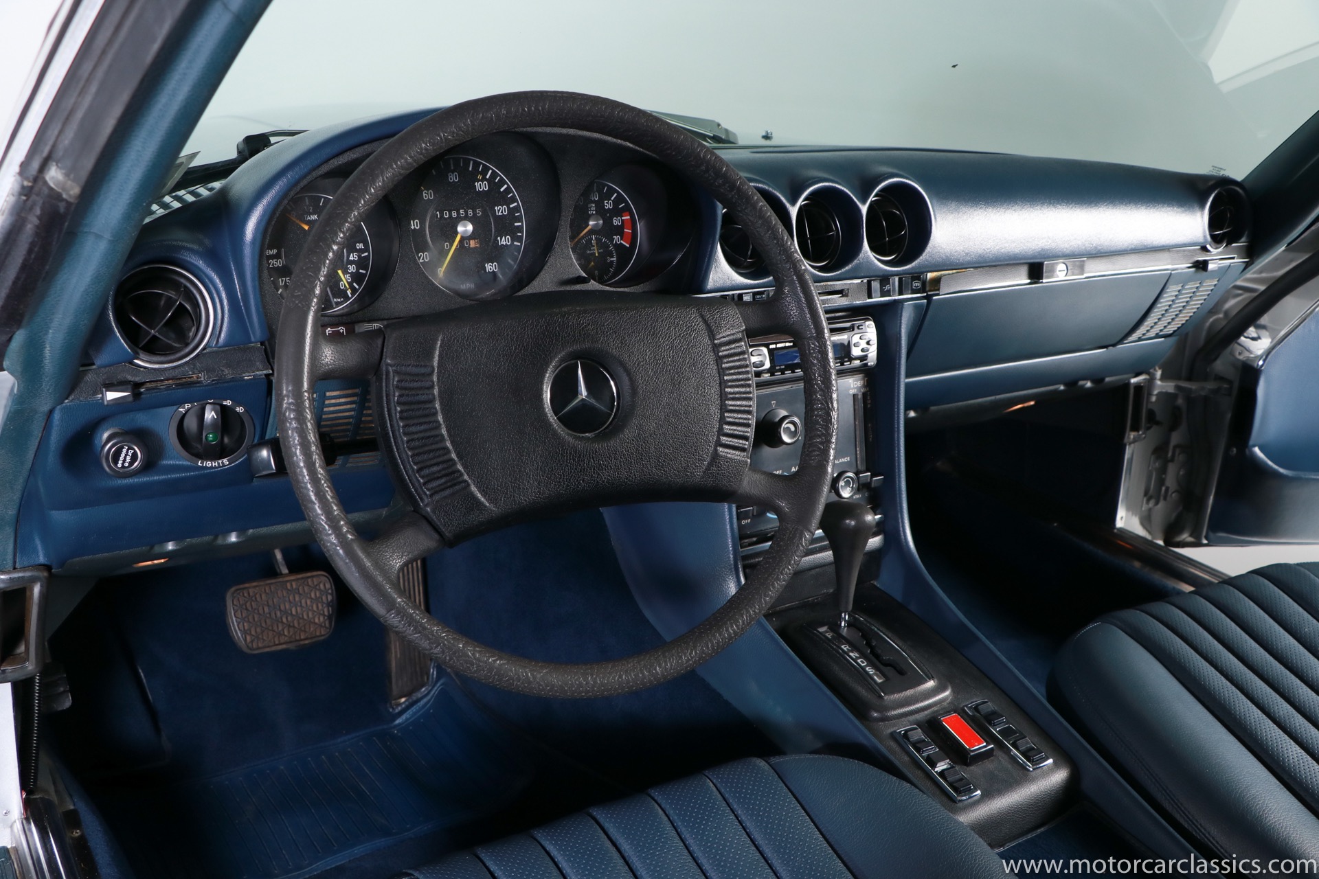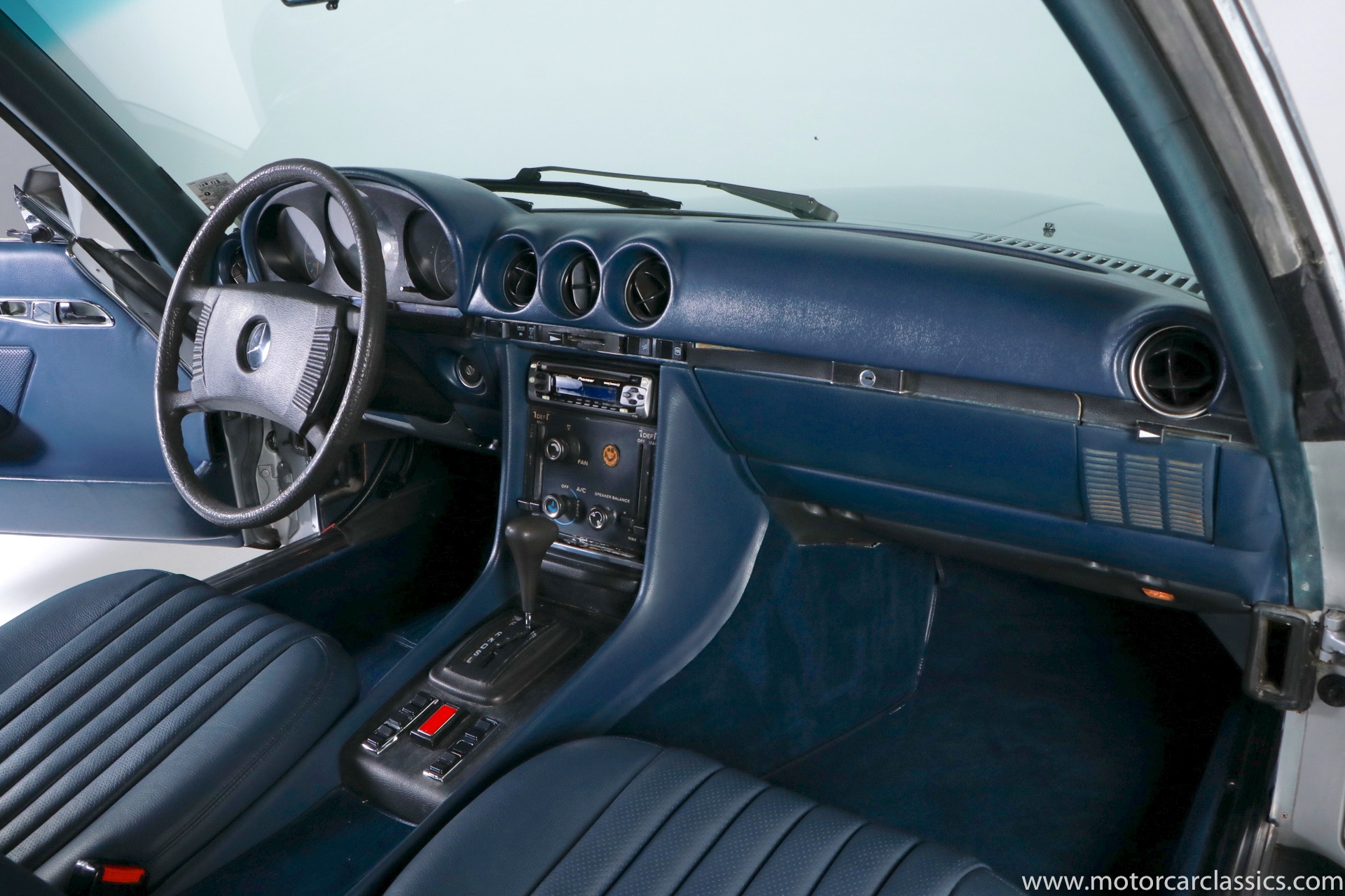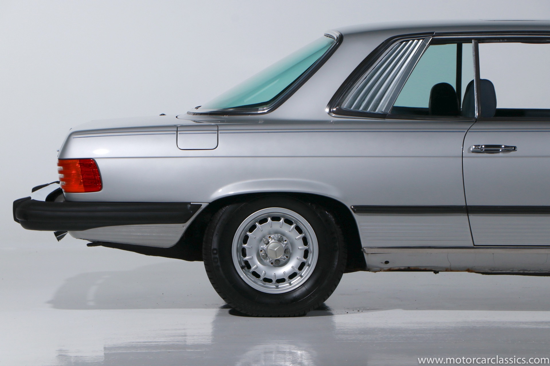 1975 Mercedes-Benz 450SLC for sale! This 1975 Mercedes 450SLC is featured in silver with navy blue leather interior. This car was acquired from the estate of a gentleman who was very fond of the car and had it fully restored including fresh paint and interior. The 450SLC is a rare variant of Mercedes iconic R107 roadster, but the C adds an extended wheelbase and room for four passengers. This car has covered 108k miles, but remains in robust mechanical health. The rear quarter window vents, often a cosmetic problem on these cars, are in fine condition. There is a spot between the rear window and the trunk where some bubbling is evident under the paint. So some minor cosmetic attention will reward the new owner with an exceptional example of this rare Mercedes coupe.
