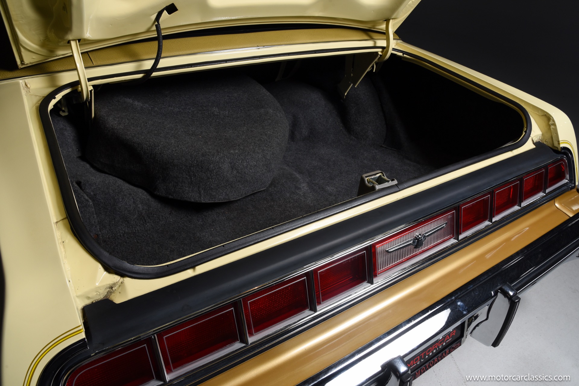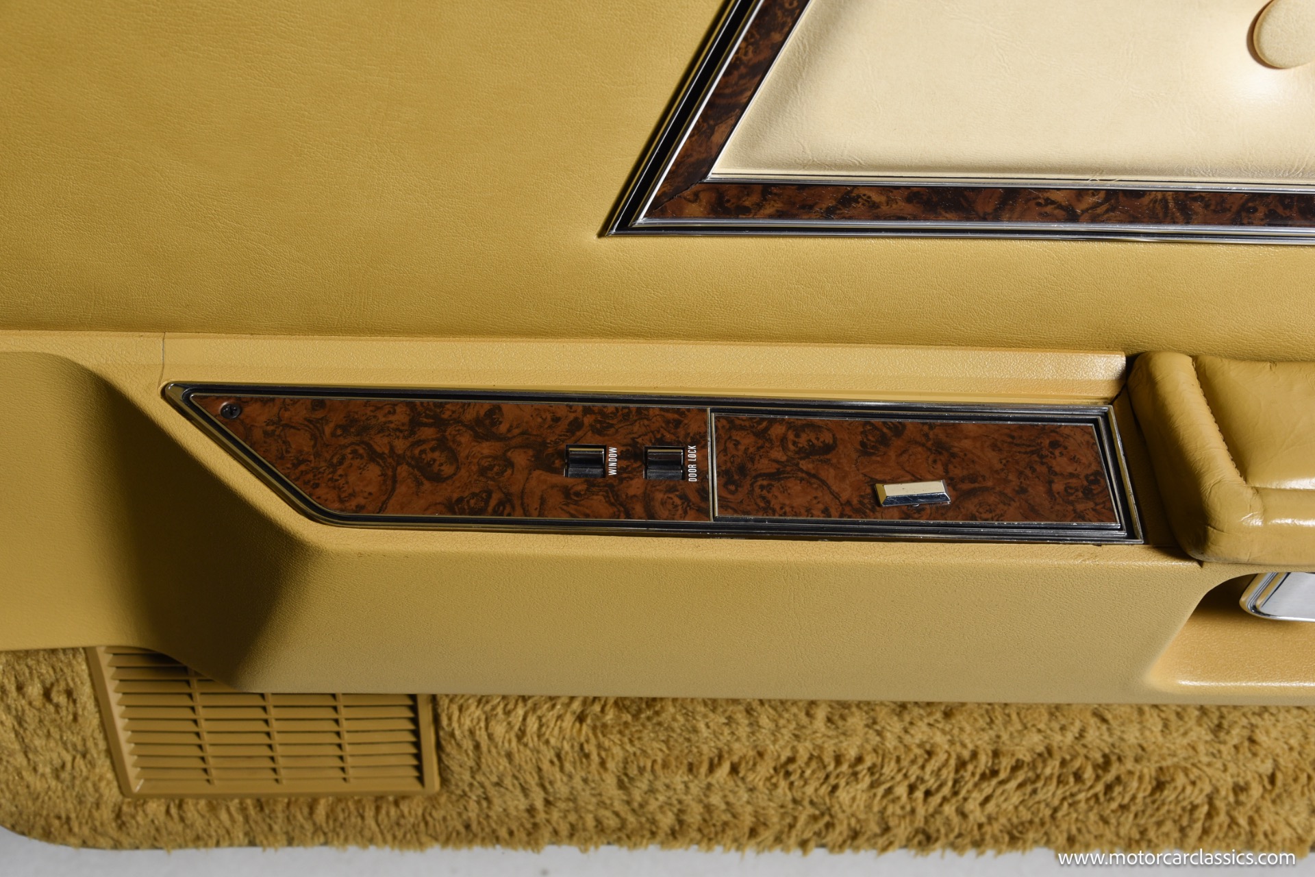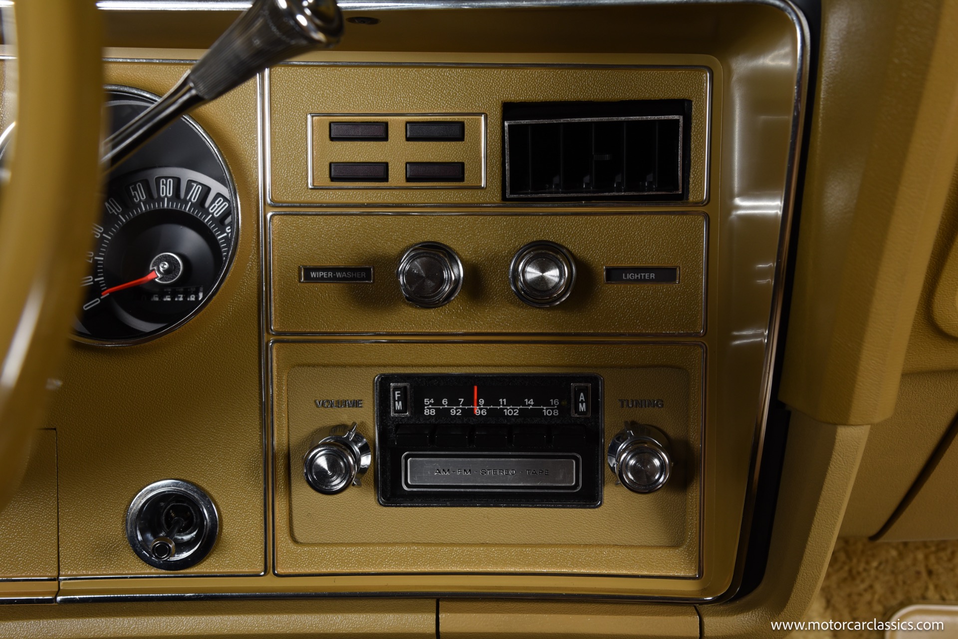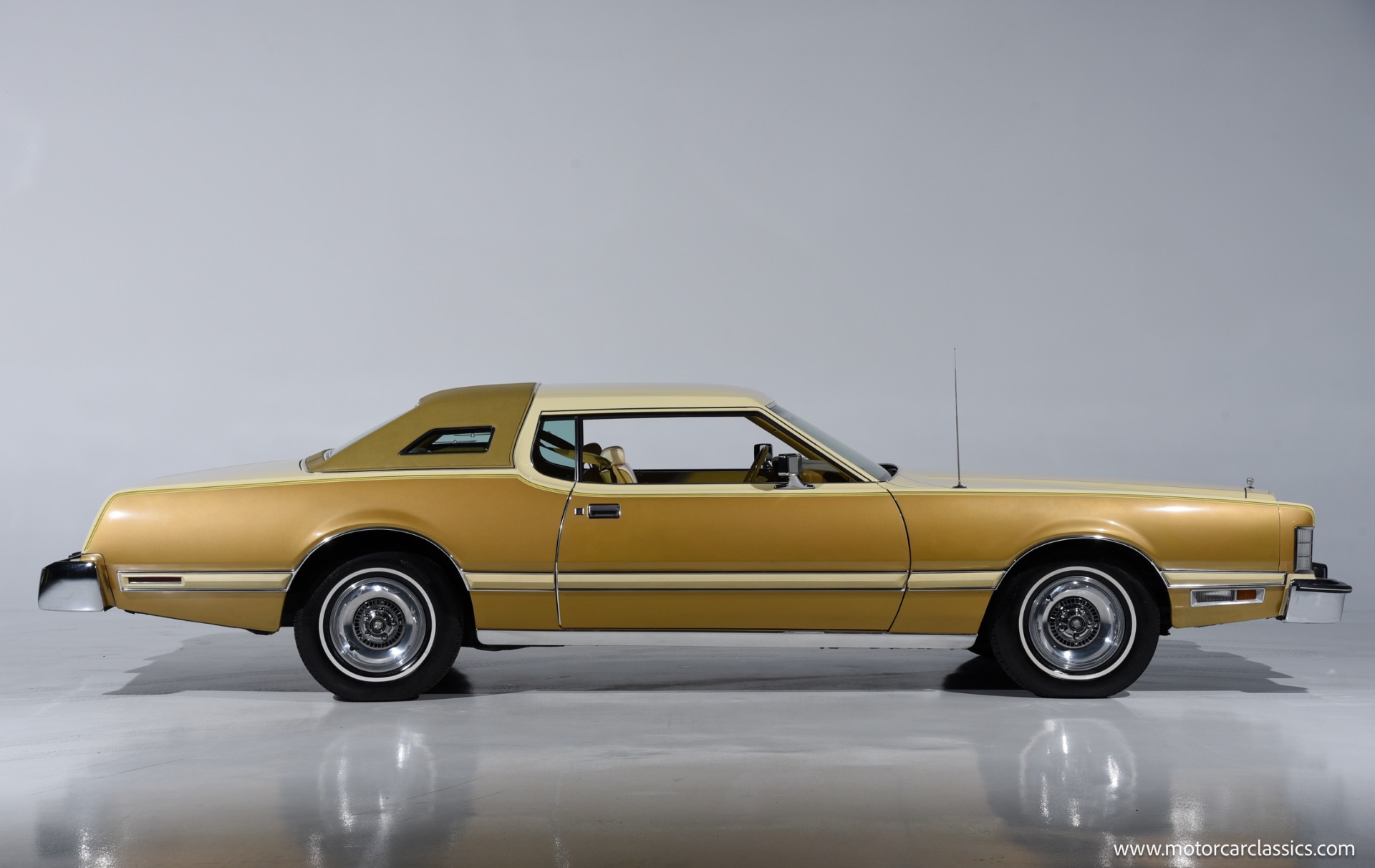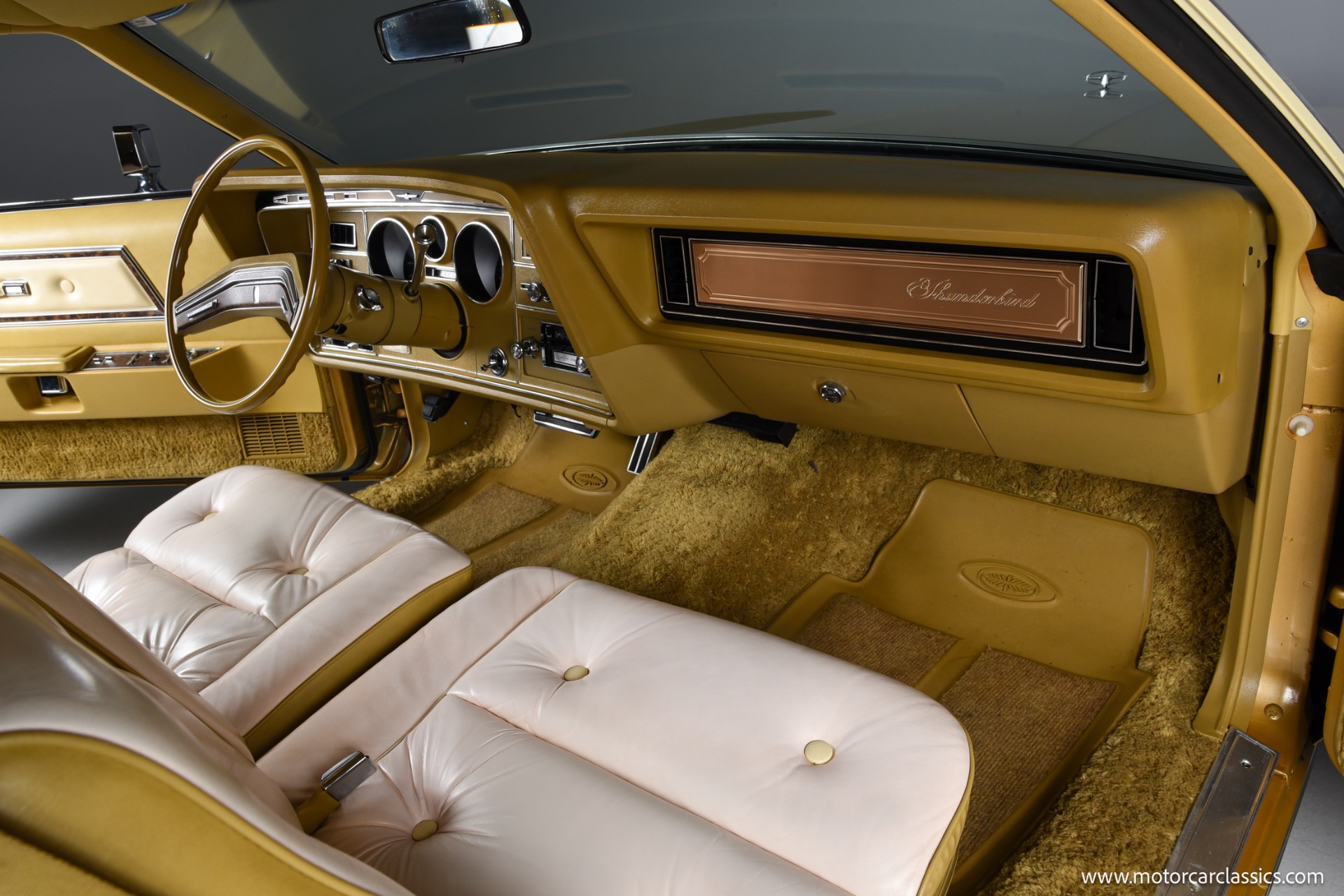 Inside, the attention to detail continues with Creme and Gold leather seating surfaces accented by a Gold instrument panel applique, 24-ounce cut-pile carpeting dyed to match, and a trunk-mounted luggage compartment dress-up kit. The effect creates a seamless blend of comfort and opulence that highlighted Ford's mastery of the personal luxury concept by the mid-1970s. Standard Thunderbird features of the time included power steering, power front disc brakes, interval windshield wipers, and comprehensive instrumentationall designed with an emphasis on both convenience and elegance.