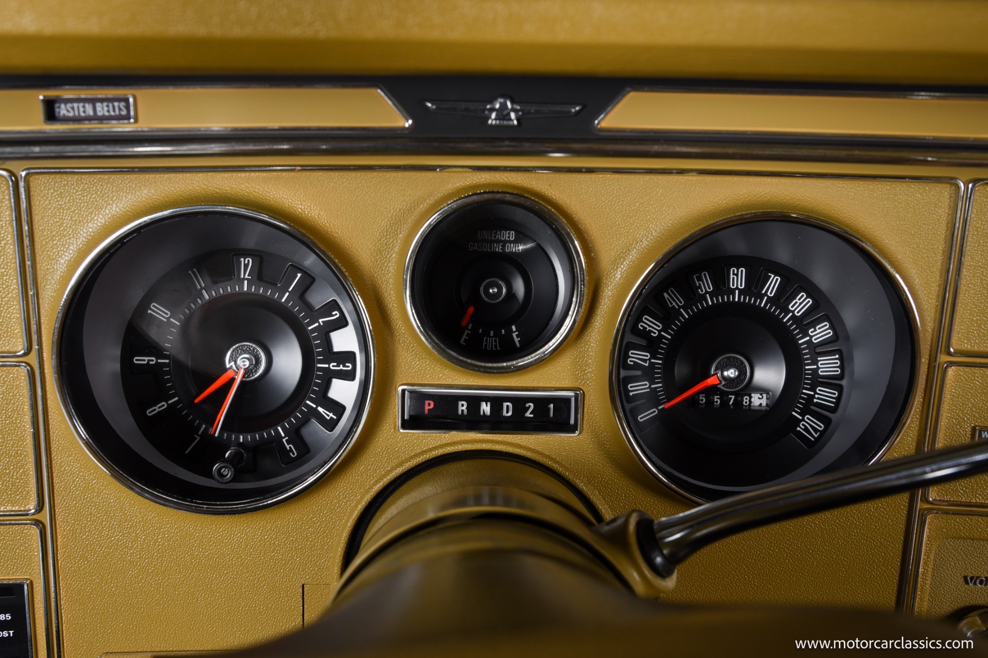 This Thunderbird was ordered with one of the most striking and rarely seen options of the yearthe Creme and Gold Luxury Group, a color-coordinated ensemble of exterior and interior appointments that elevated the already sophisticated Thunderbird into a showcase of elegance. On the exterior, the package features Gold Starfire paint adorning the body sides, set off by a Creme-colored hood, roof, and deck lid, with tasteful accent striping at the beltline. Distinctive touches include a Gold Odense pattern grain half-vinyl roof, gold opera window insignia, deep-dish aluminum wheels, Cream-colored body side moldings with unique color-keyed trim, and refined border detailing that gave these cars an unmistakable appearance.