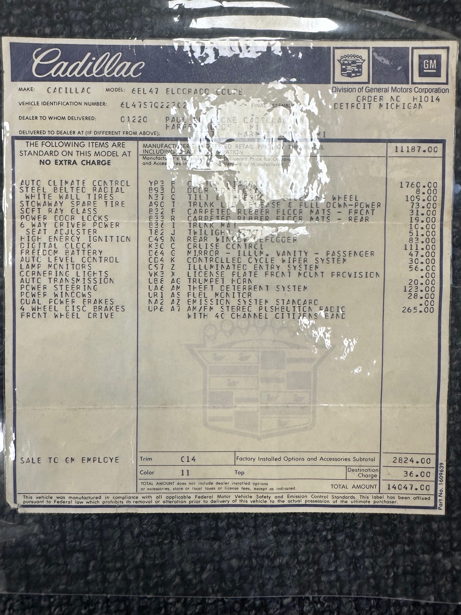1977 Cadillac Eldorado for sale! Motorcar classics is pleased to present this exquisite 1977 Cadillac Eldorado, a true icon of American luxury . This pristine classic, boasting a mere 27,689 miles on the odometer, presents itself in stunning original condition. The timeless white exterior perfectly complements the sumptuous white leather interior, creating a harmonious blend of elegance and sophistication. As you slide behind the wheel, you'll be transported to an era of unparalleled comfort and style. The Eldorado's sleek, elongated body, iconic front grille, and distinctive rear fins make a bold statement on the road, while Cadillac's renowned powertrain ensures a smooth, effortless ride. This meticulously maintained Eldorado isn't just a car; it's a piece of automotive history, offering collectors and enthusiasts a rare opportunity to own a beautifully preserved example of 1970s American luxury. This Cadillac Eldorado is more than a vehicle - it's an investment in a golden age of automotive design and engineering. Your inspection is invited!