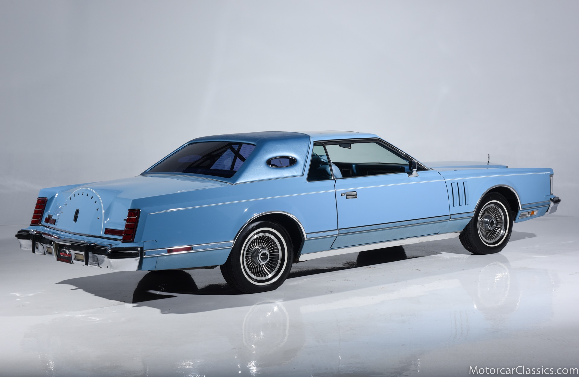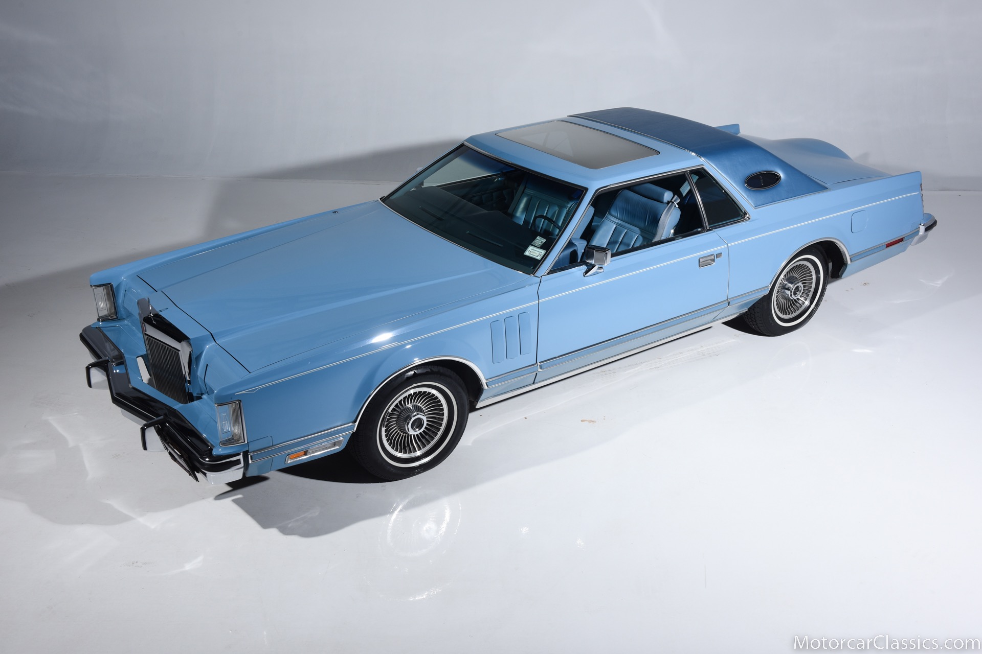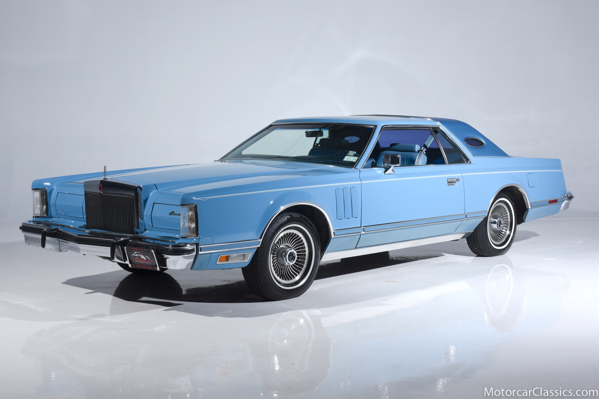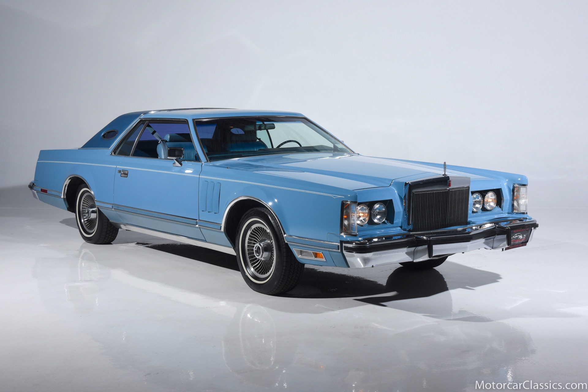 1979 Lincoln Mark V for sale! Motorcar Classics is pleased to present the epitome of classic American luxury with this 1979 Lincoln Continental Mark V, currently available for $21,900. This distinguished vehicle embodies the grandeur and elegance of the late 1970s automotive design, featuring a stunning light blue exterior that beautifully complements its equally elegant light blue interior. The Mark V is powered by a robust V8 engine, delivering a smooth and powerful driving experience, ensuring comfort whether you're on short trips or long journeys.