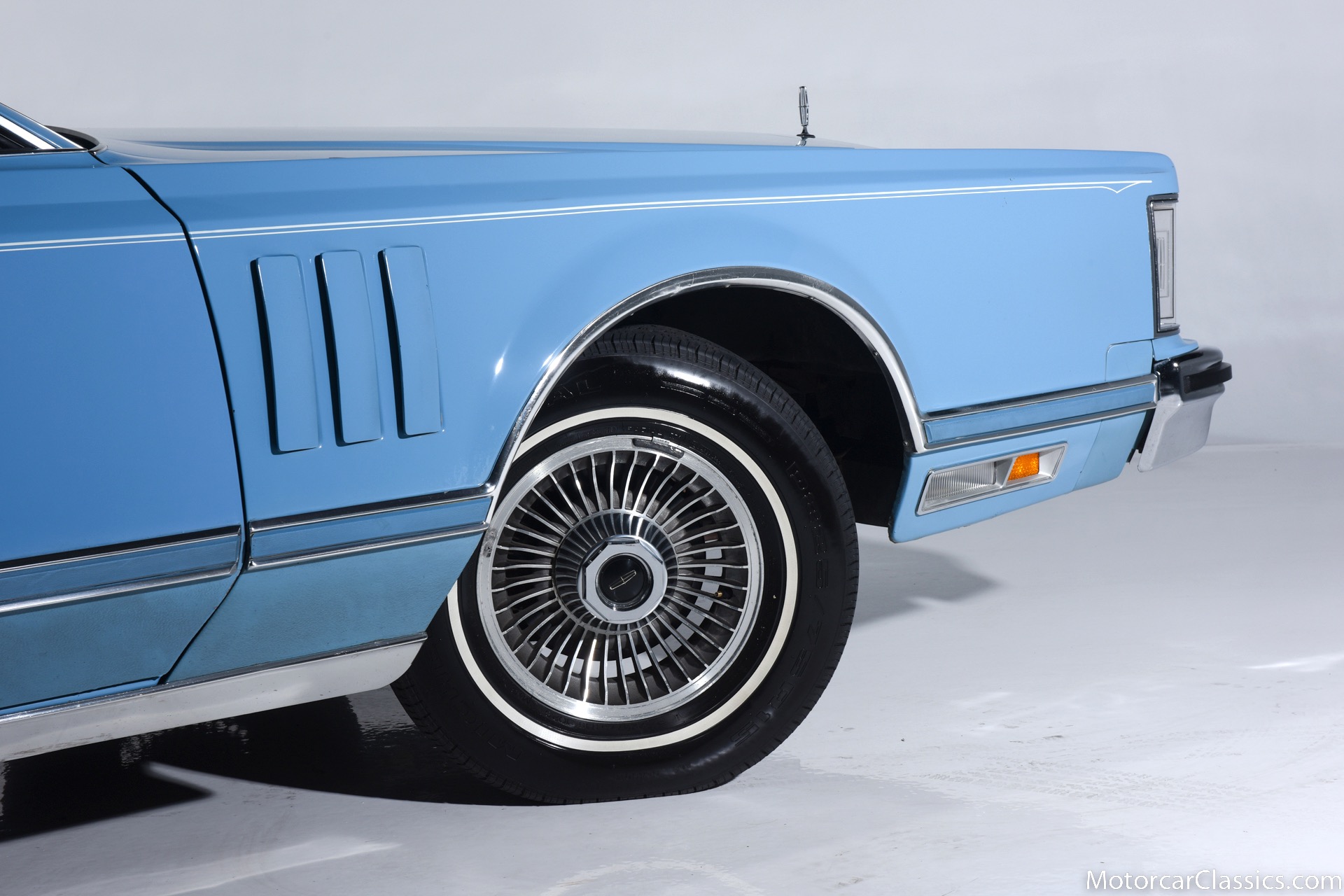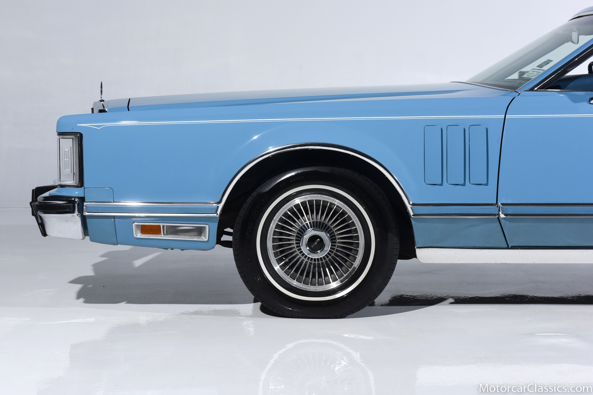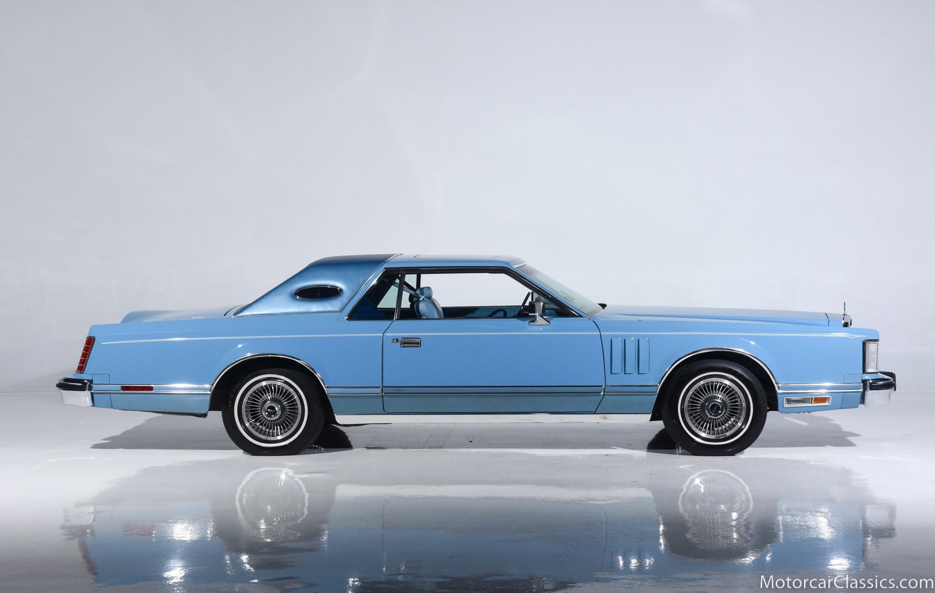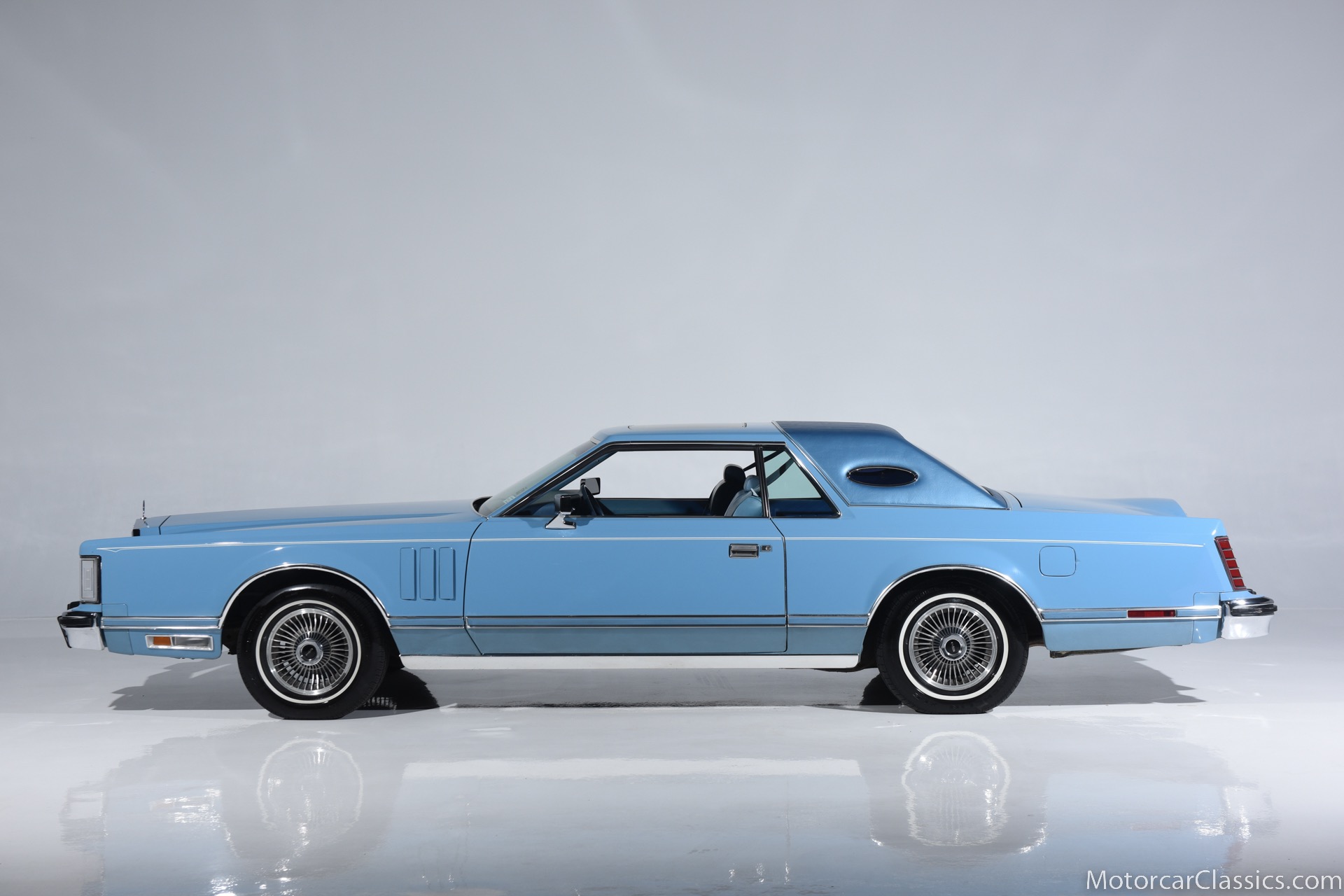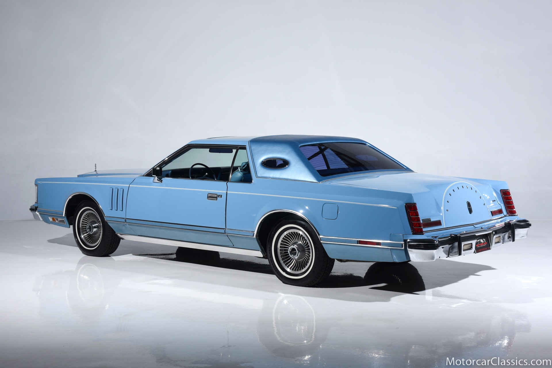 1979 Lincoln Mark V for sale! Motorcar Classics is pleased to present the epitome of classic American luxury with this 1979 Lincoln Continental Mark V, currently available for $21,900. This distinguished vehicle embodies the grandeur and elegance of the late 1970s automotive design, featuring a stunning light blue exterior that beautifully complements its equally elegant light blue interior. The Mark V is powered by a robust V8 engine, delivering a smooth and powerful driving experience, ensuring comfort whether you're on short trips or long journeys.