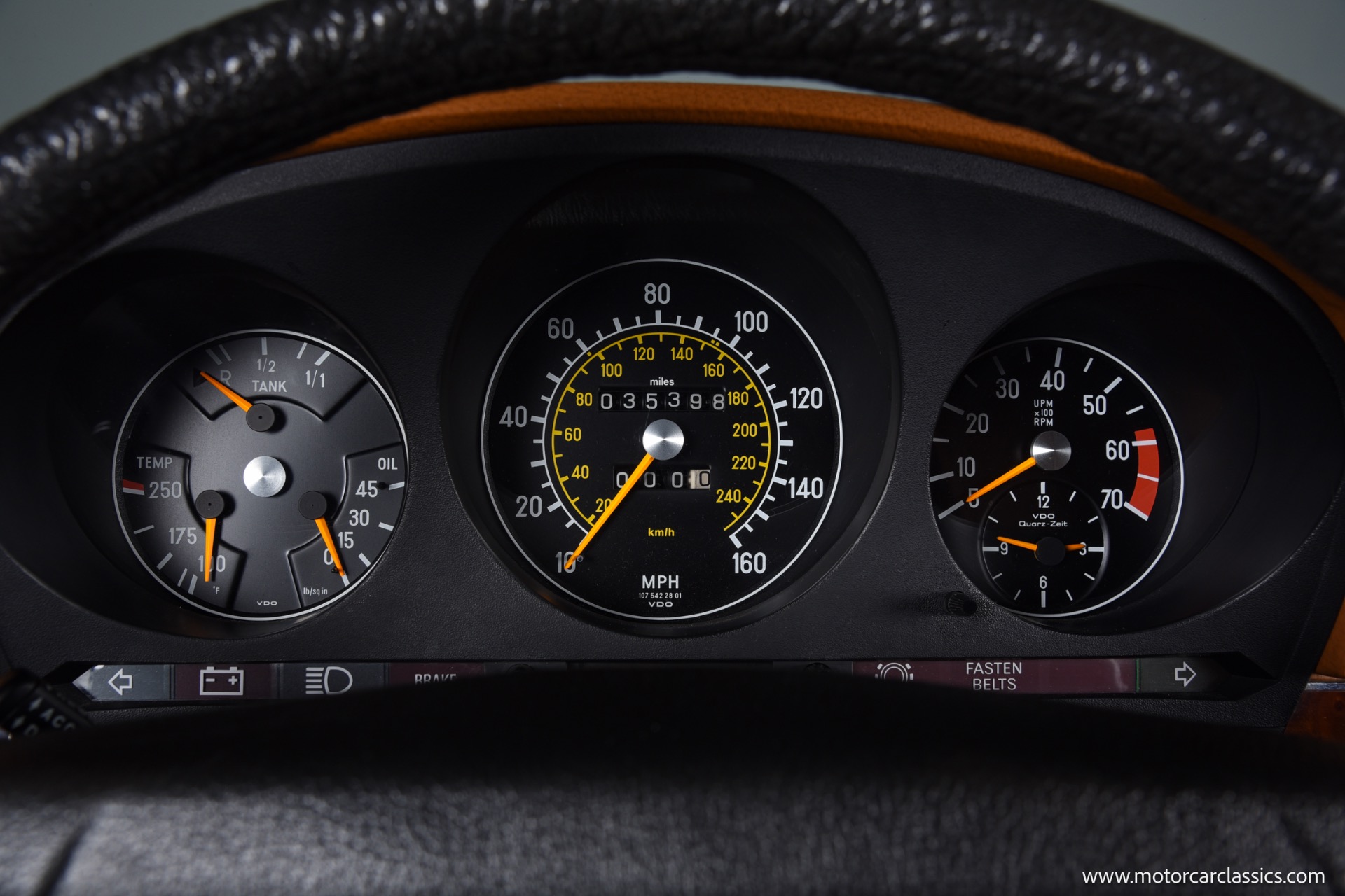 Contemporary reviews praised the 450SLC for its smooth, torquey 4.5-liter V8, which delivered effortless power and a refined driving experience that was unmatched among its peers. The car?s distinctive styling, advanced features, and robust build quality were lauded by critics, who noted the sense of occasion that accompanied every drive. This example is particularly well-equipped, boasting a suite of desirable factory options: an electrically operated sliding sunroof, Tempomat cruise control, central locking, a Becker Mexico full stereo cassette radio, automatic antenna, folding front armrest, automatic climate control, electric windows, heat-insulating glass with a heated rear window, and 15-hole light alloy rims.