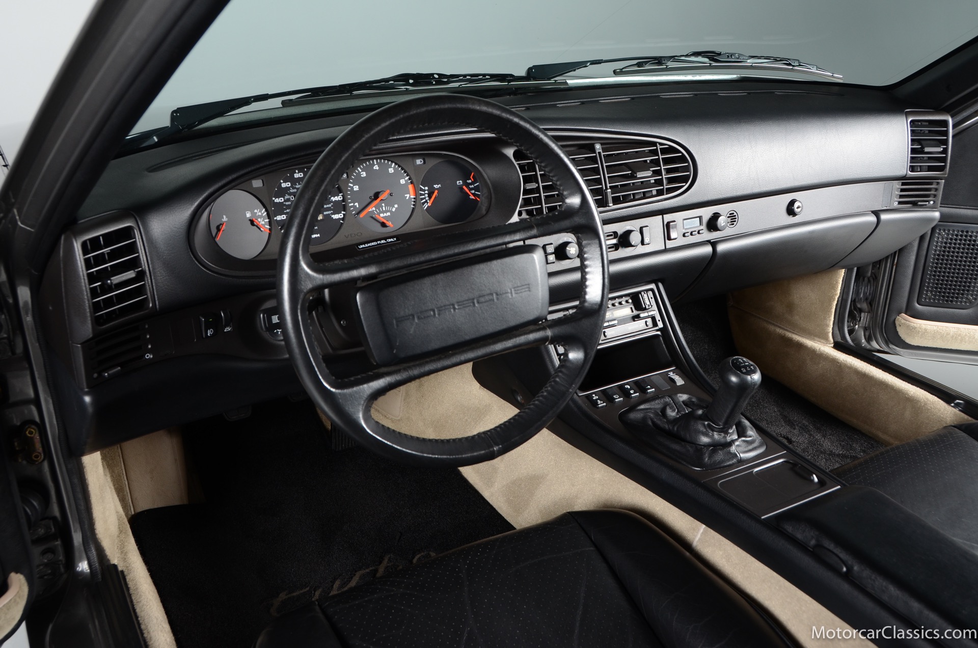 1986 Porsche 944 Turbo for sale! Motorcar Classics is proud to present this 1986 Porsche 944 Turbo featured in (U8) Stone Grey Metallic with black interior. Porsche's 2.5L inline-four engine with a turbocharger provides a spirited driving experience, delivering 217 horsepower through a 5-speed manual transmission to the rear wheels. Factory options include Raised Hub steering wheel, Limited Slip differential, Central locking, Forged Alloy wheels, Protective side molding, rear wiper, Cruise Control, Cloth door panels, and Electric Sunroof. The car has covered only 30,582 miles in the hands of three owners and it has been cherished and meticulously serviced from new. This might be one of the most comprehensively documented Porsches that we have had the pleasure to offer. It comes with a 2 thick ring binder with the complete service history and receipts. This 944 has been shown at PCA concours events and has a history of 1st and 2nd place showings. In addition to diligent servicing, the car has been upgraded with late 951 headers and an Autothority Stage 2 chip. This investment-grade 944 Turbo is a delight to drive and it remains in concours condition.