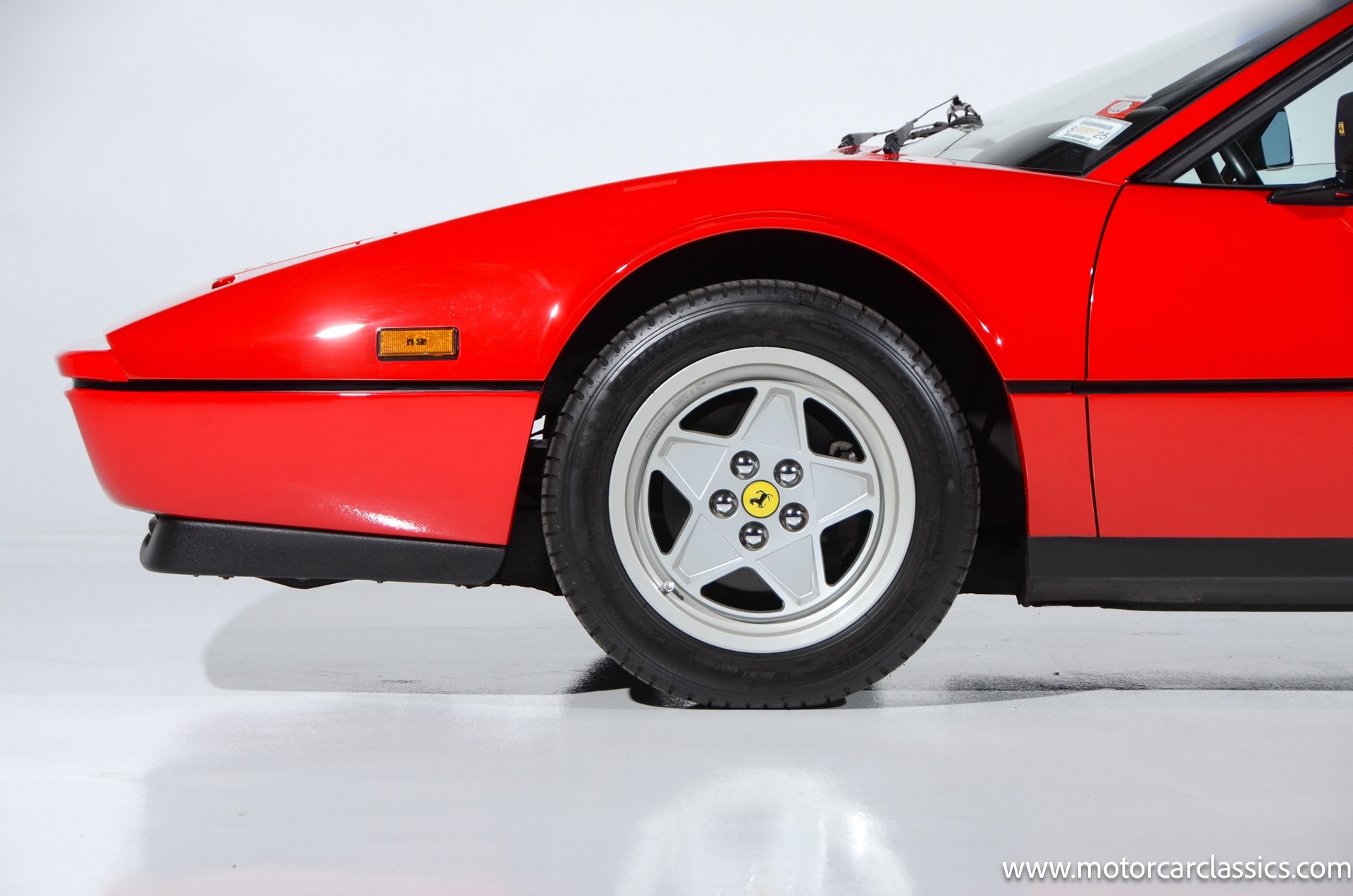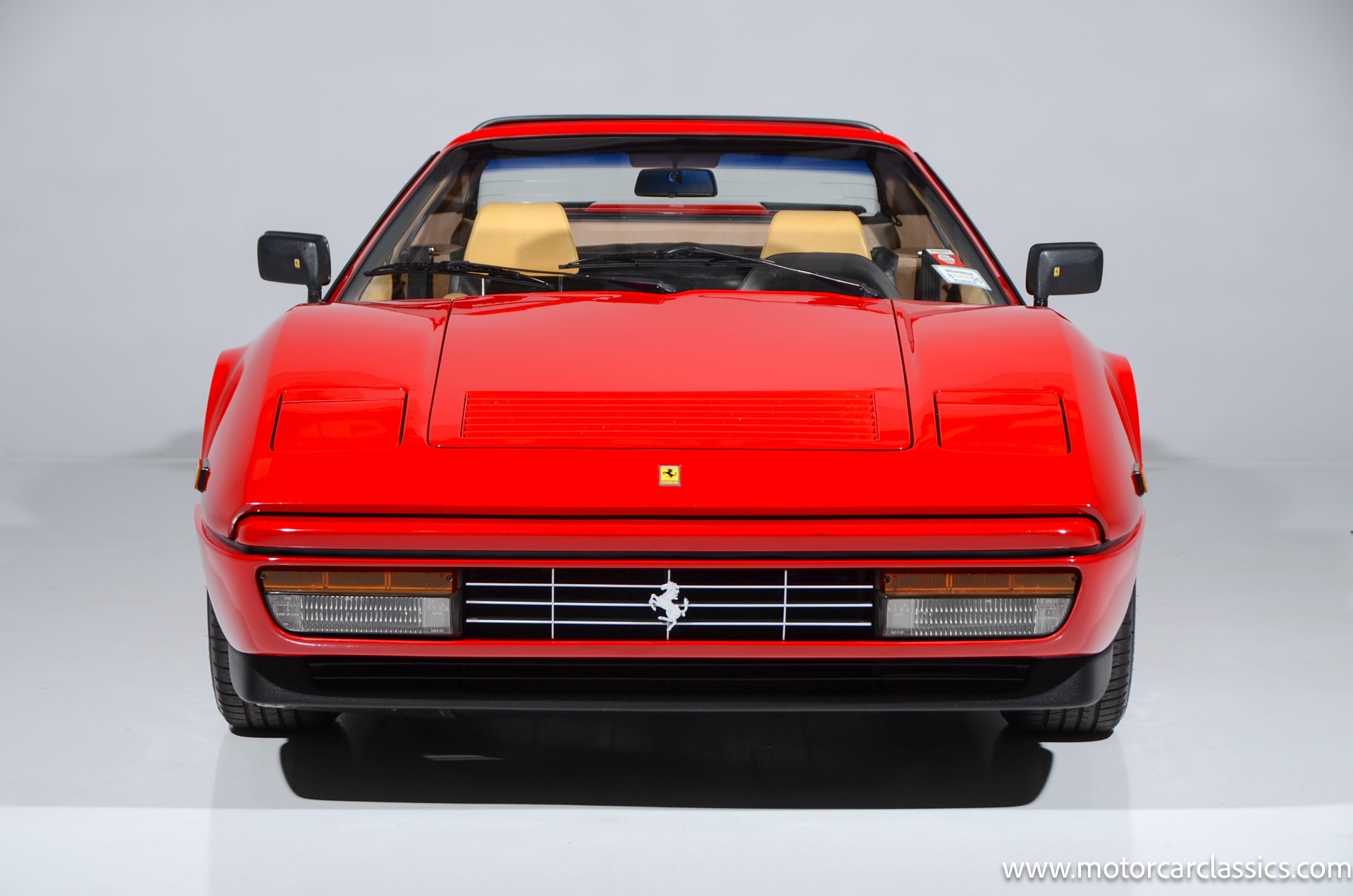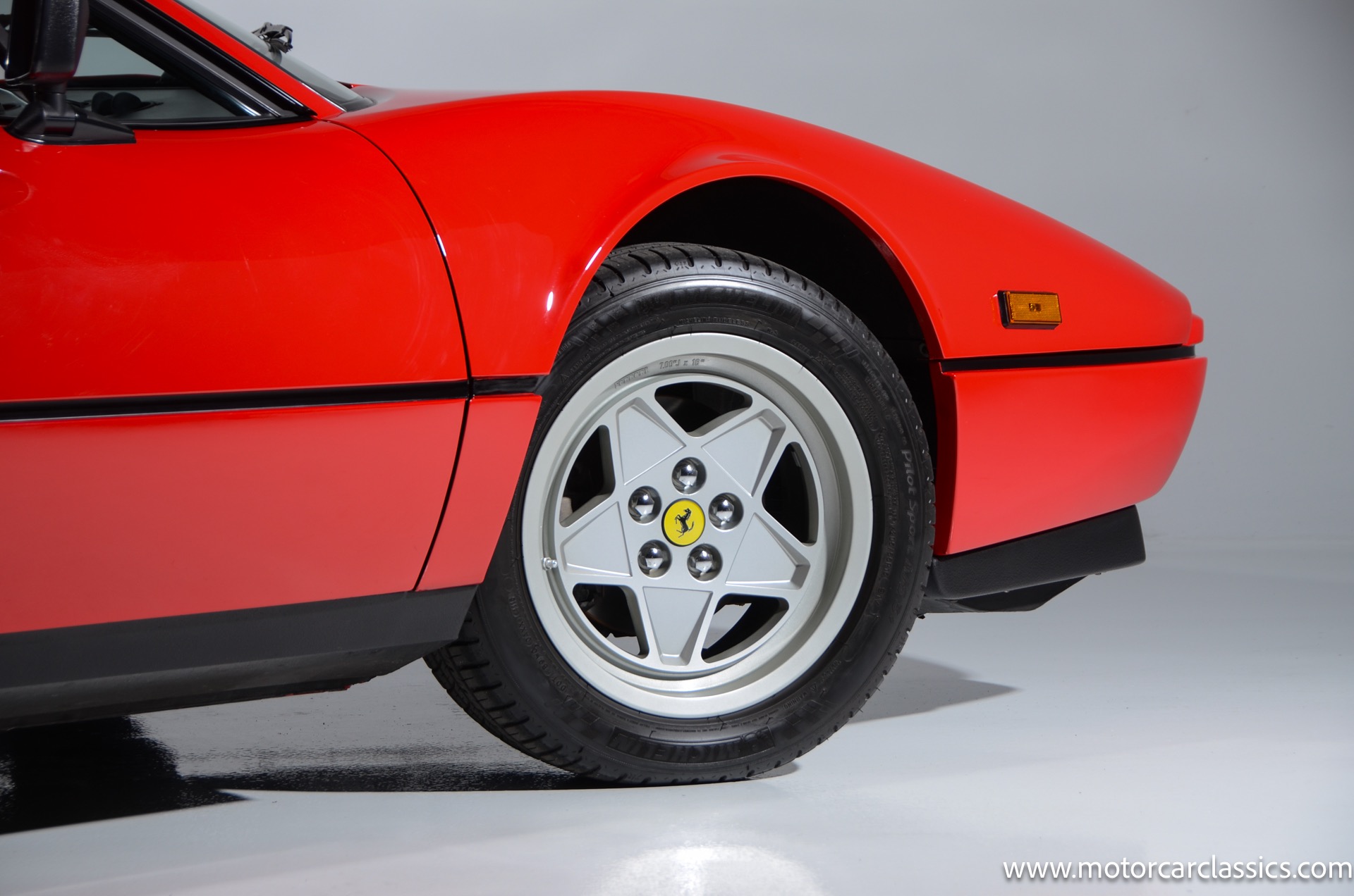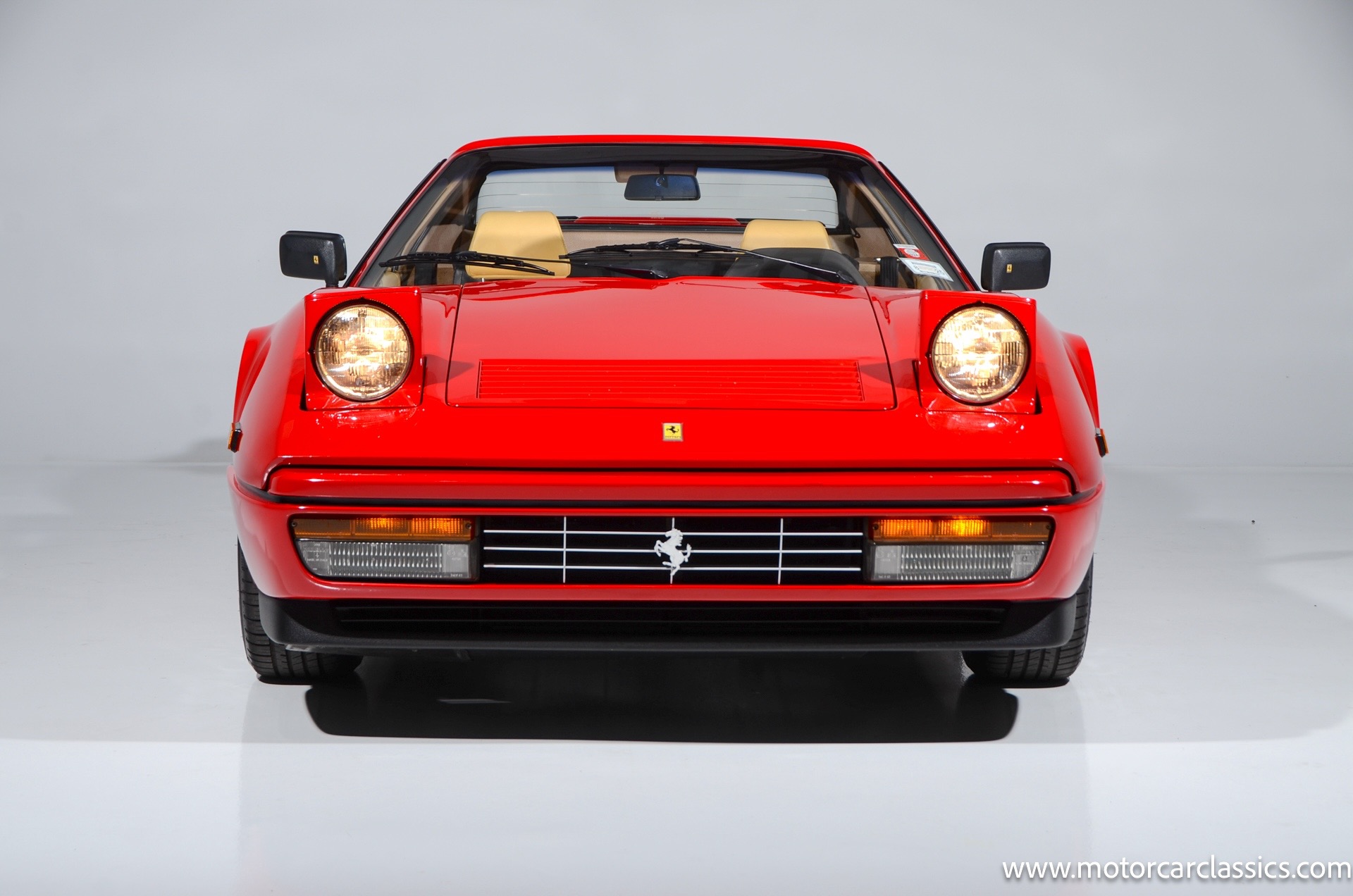 1987 Ferrari 328GTS for sale! Motorcar Classics is proud to present this beautiful 1987 Ferrari 328GTS. With iconic styling by Pininfarina, the 328 GTS showcases a timeless design characterized by sleek lines and an aerodynamic body. The car's exterior is finished in Rosso Corsa, a classic Ferrari red, complemented by 16 five-spoke alloy wheels with yellow Prancing Horse center caps. It features a removable black Targa top, black roof spoiler, louvered rear side windows, and a black rear valance discreetly housing twin-pipe dual exhaust pipes.The interior features tan leather seats with matching carpeting, accented by black & chrome trim. It includes powered windows, the iconic gated 5-speed shifter, a three-spoke MOMO steering wheel, and an Alpine 738T radio with Bluetooth and hands-free capability.