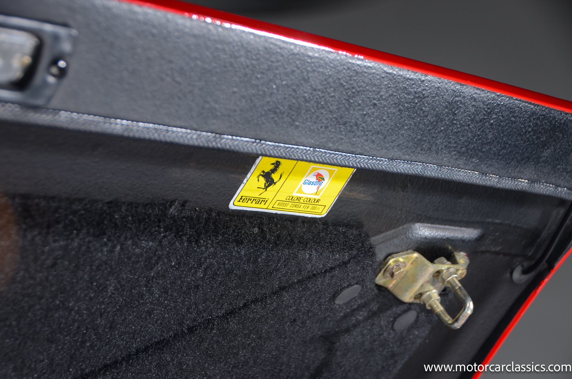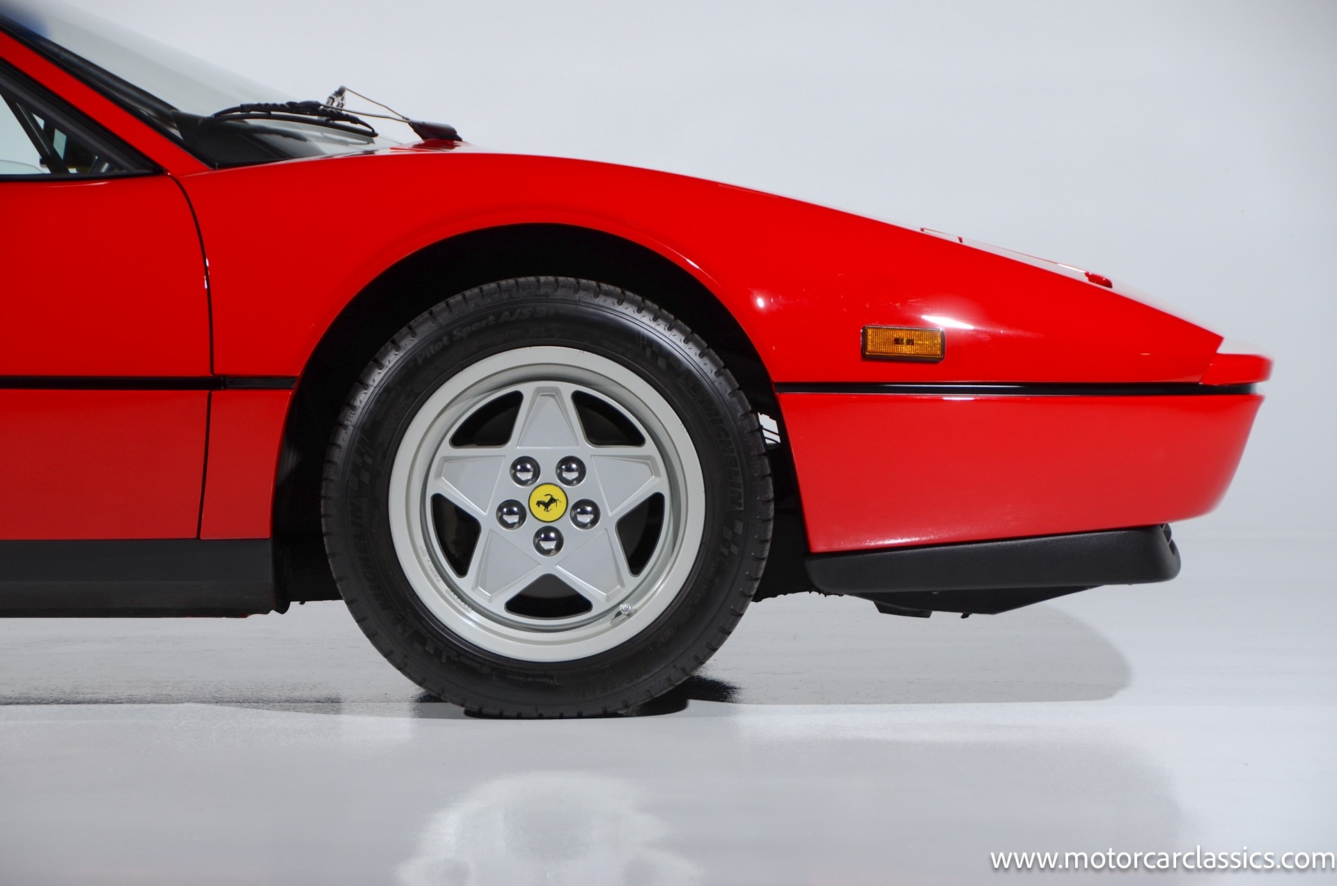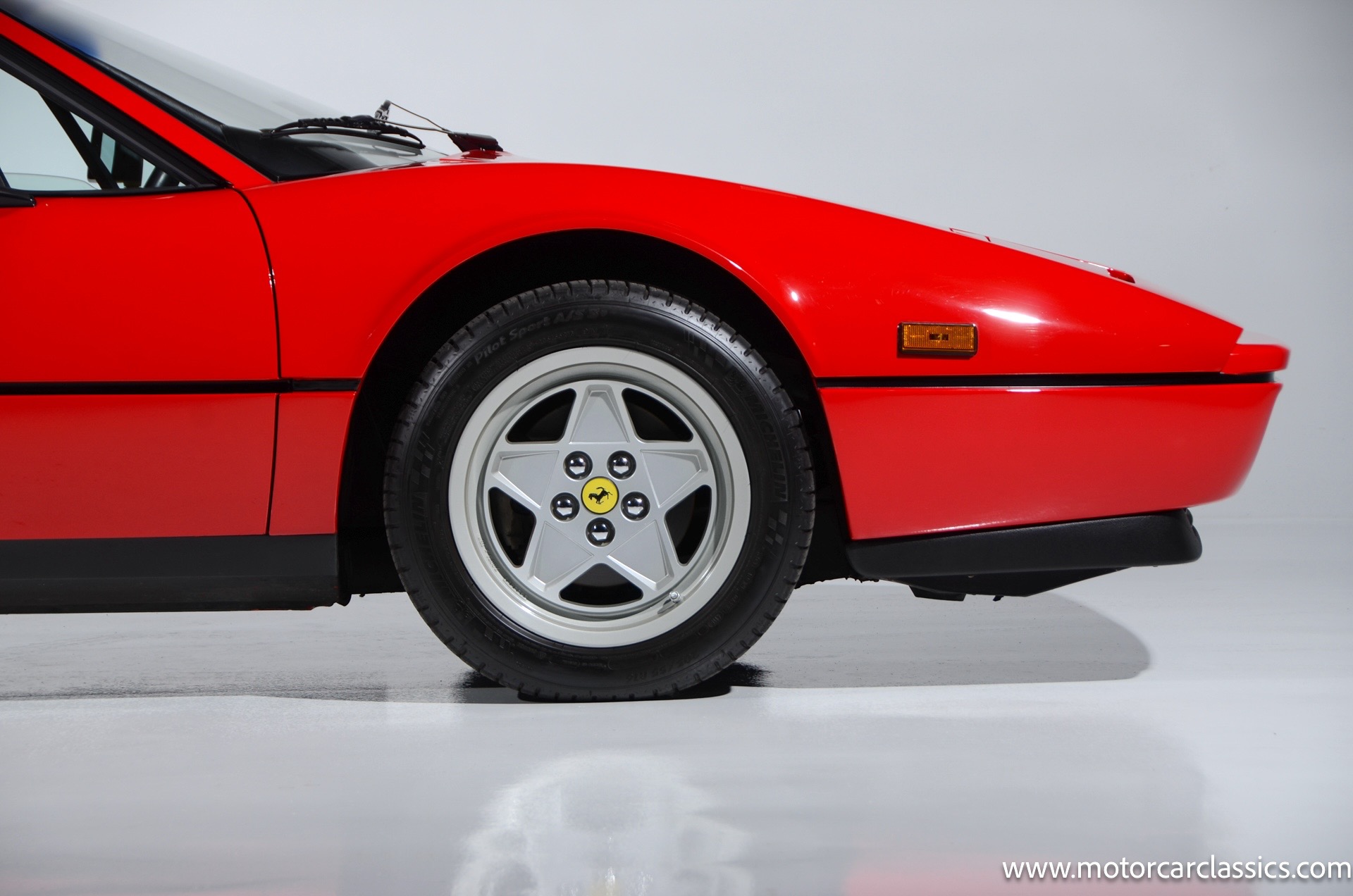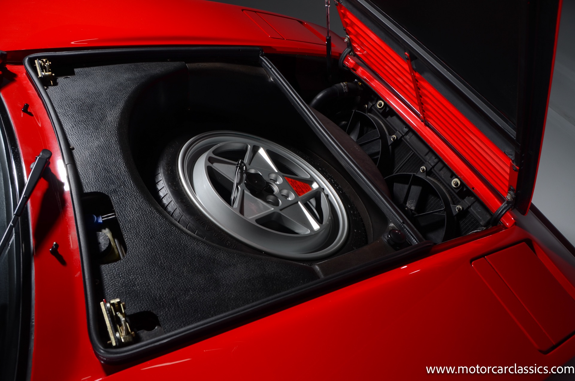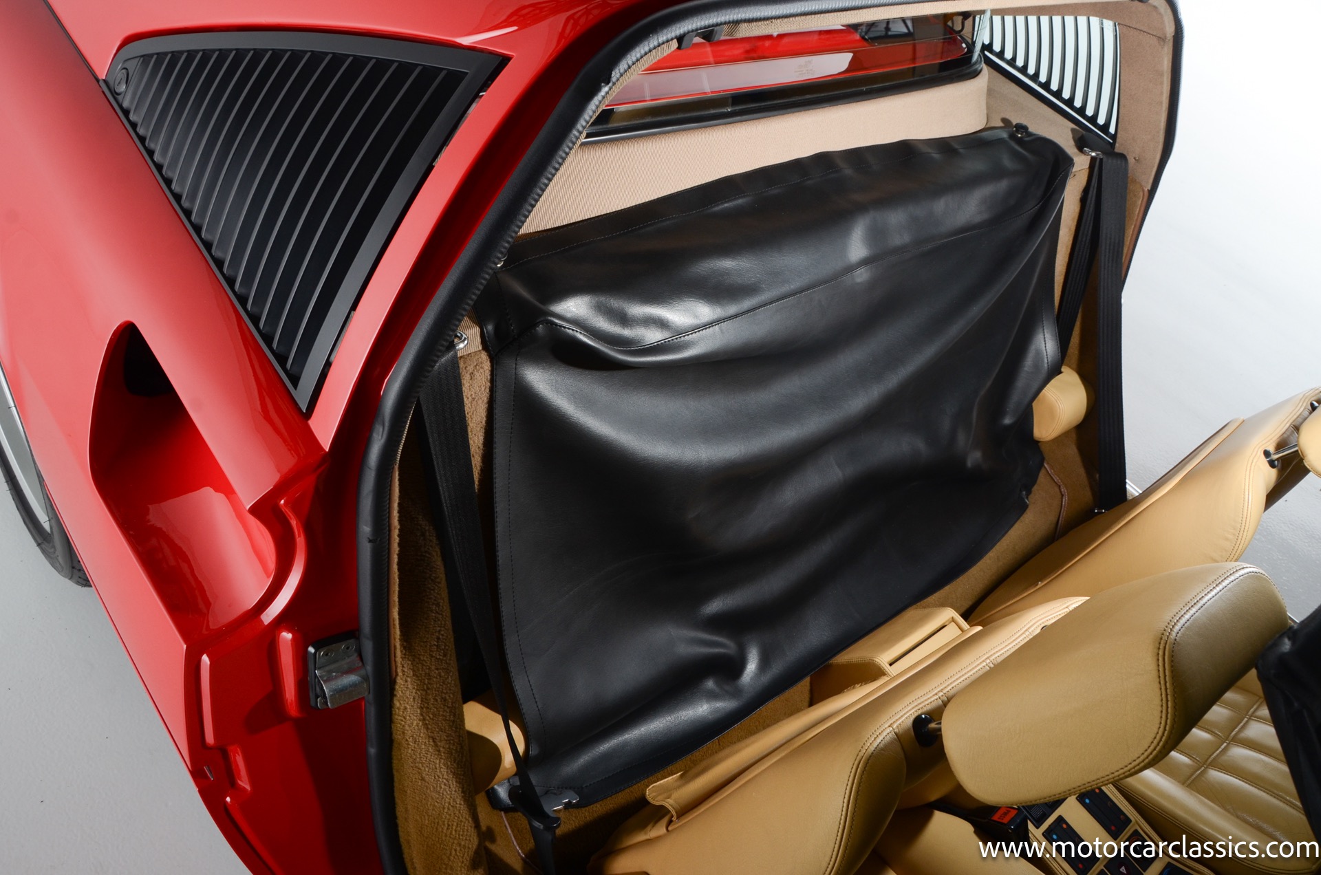 1987 Ferrari 328GTS for sale! Motorcar Classics is proud to present this beautiful 1987 Ferrari 328GTS. With iconic styling by Pininfarina, the 328 GTS showcases a timeless design characterized by sleek lines and an aerodynamic body. The car's exterior is finished in Rosso Corsa, a classic Ferrari red, complemented by 16 five-spoke alloy wheels with yellow Prancing Horse center caps. It features a removable black Targa top, black roof spoiler, louvered rear side windows, and a black rear valance discreetly housing twin-pipe dual exhaust pipes.The interior features tan leather seats with matching carpeting, accented by black & chrome trim. It includes powered windows, the iconic gated 5-speed shifter, a three-spoke MOMO steering wheel, and an Alpine 738T radio with Bluetooth and hands-free capability.