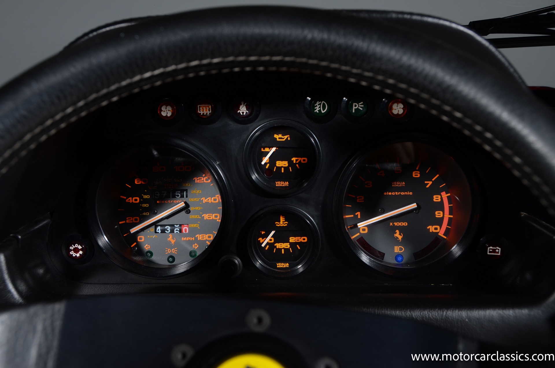 Our 328 GTS spent most of its life in Florida. It has been meticulously cared for and maintained and driven just 37,154 miles. It has an unblemished history and it is completely original. The car has been serviced since new by authorized Ferrari dealers and independent specialists. The sale includes all owner handbooks, service records, and tool kit. In December 2019, the car underwent significant maintenance, including the replacement of all camshaft belts and accessory belts, tensioner bearings, and the renewal of brake fluid, engine oil, engine coolant, and air conditioning coolant. The fuel tanks were drained, and crossover hoses replaced. Additionally, new Michelin Pilot Sport tires were installed. The car has been color-corrected and ceramic-coated.