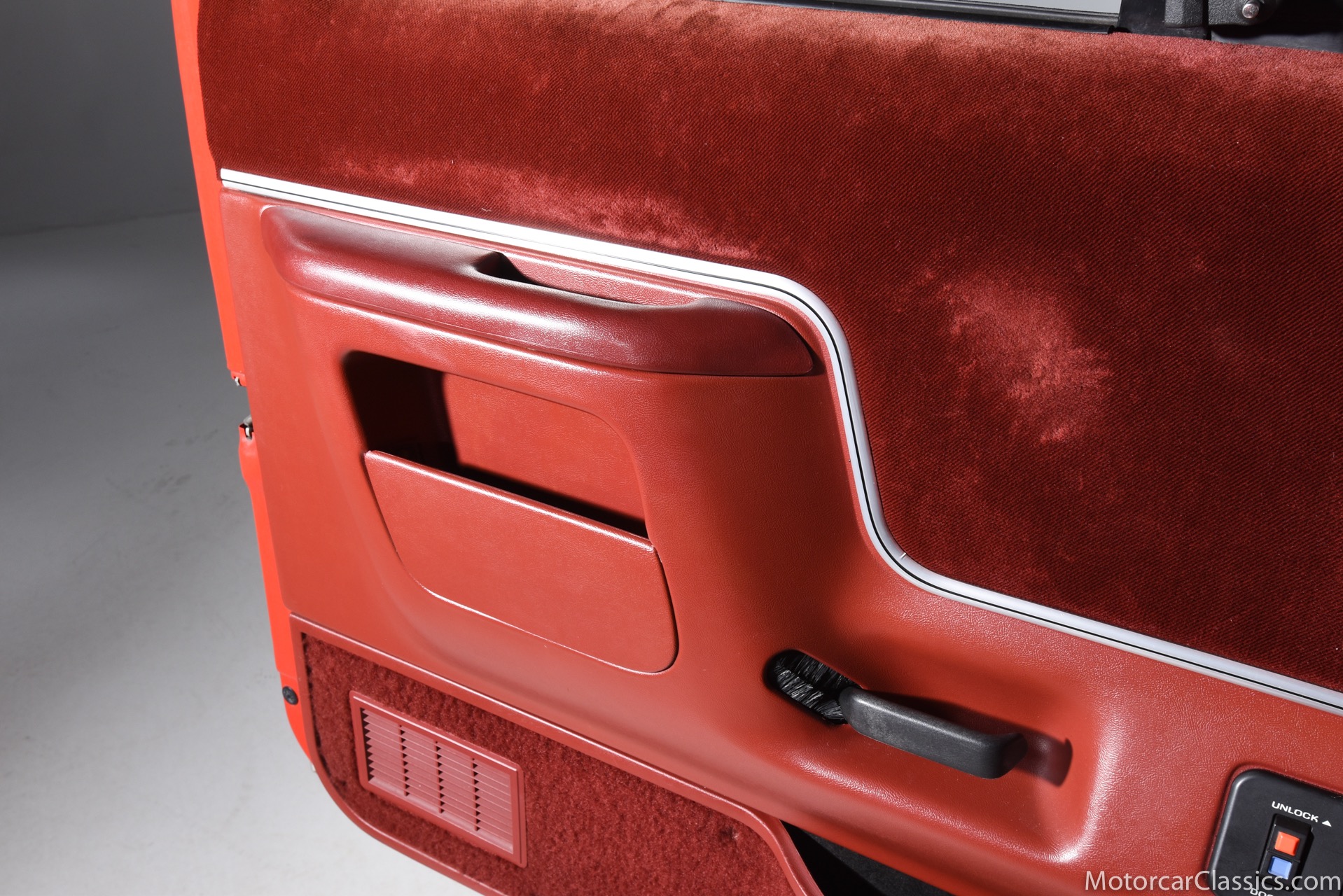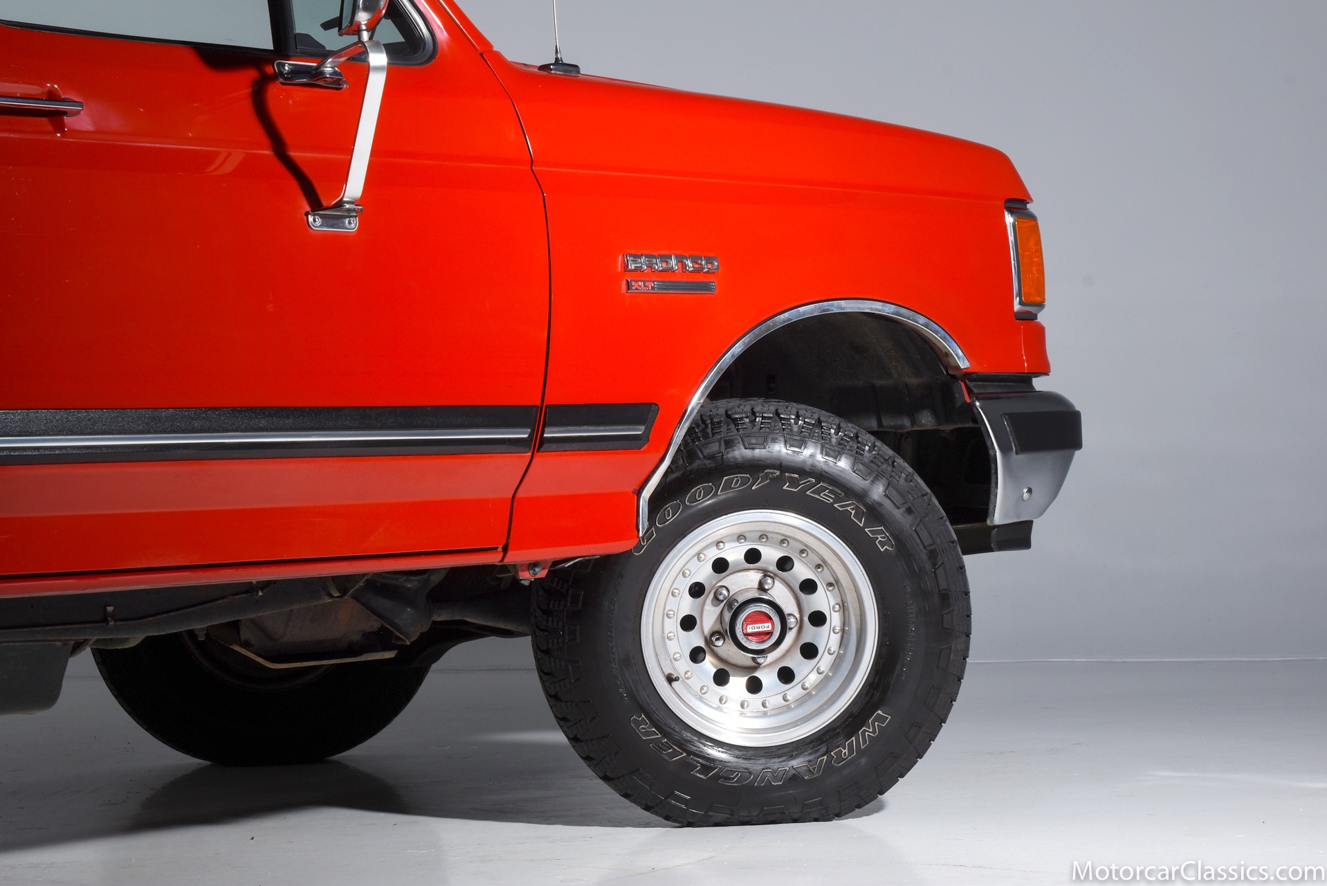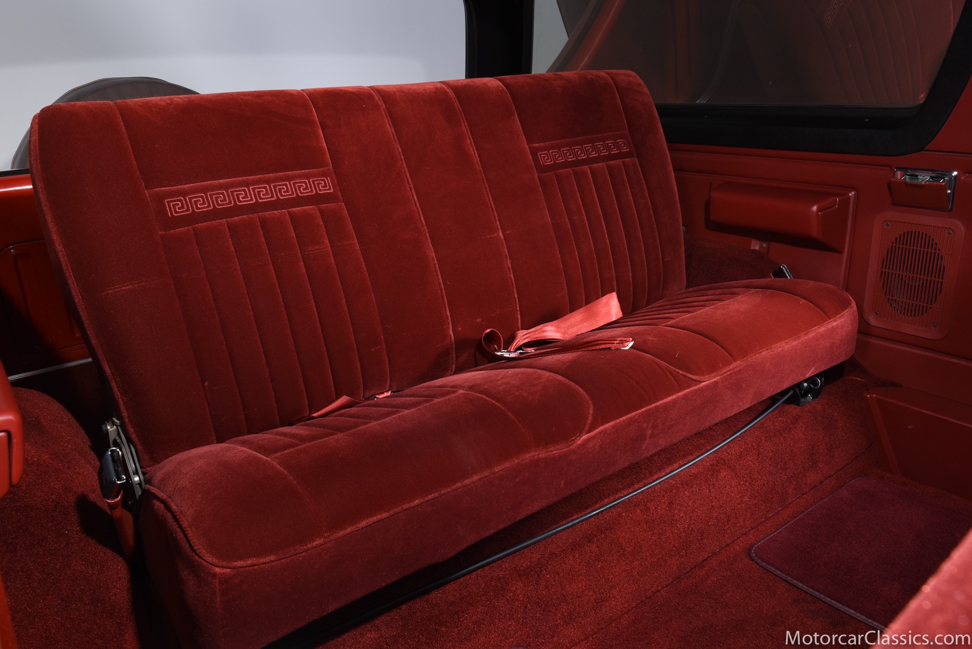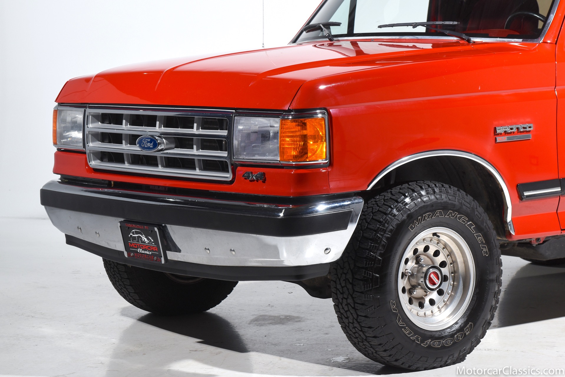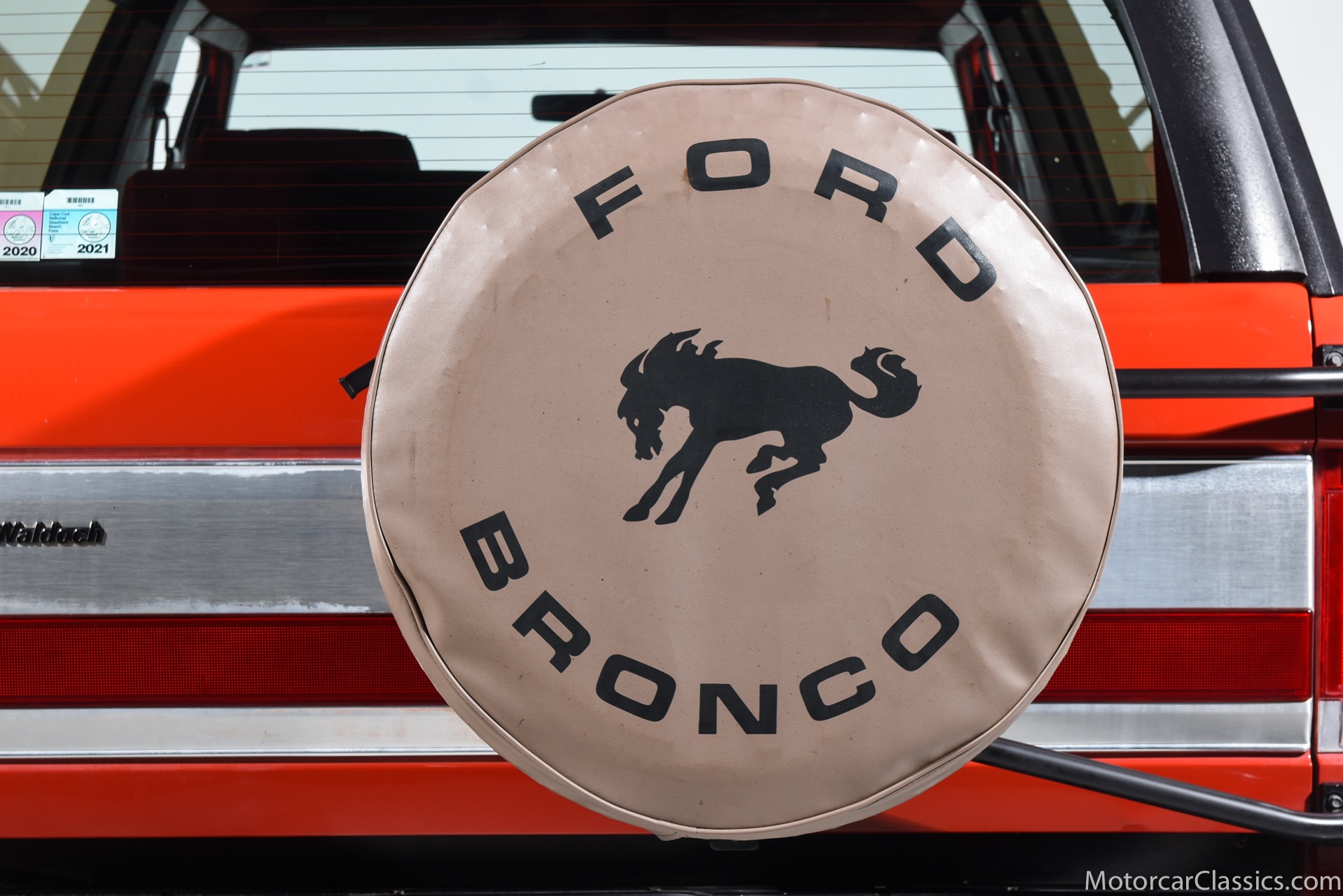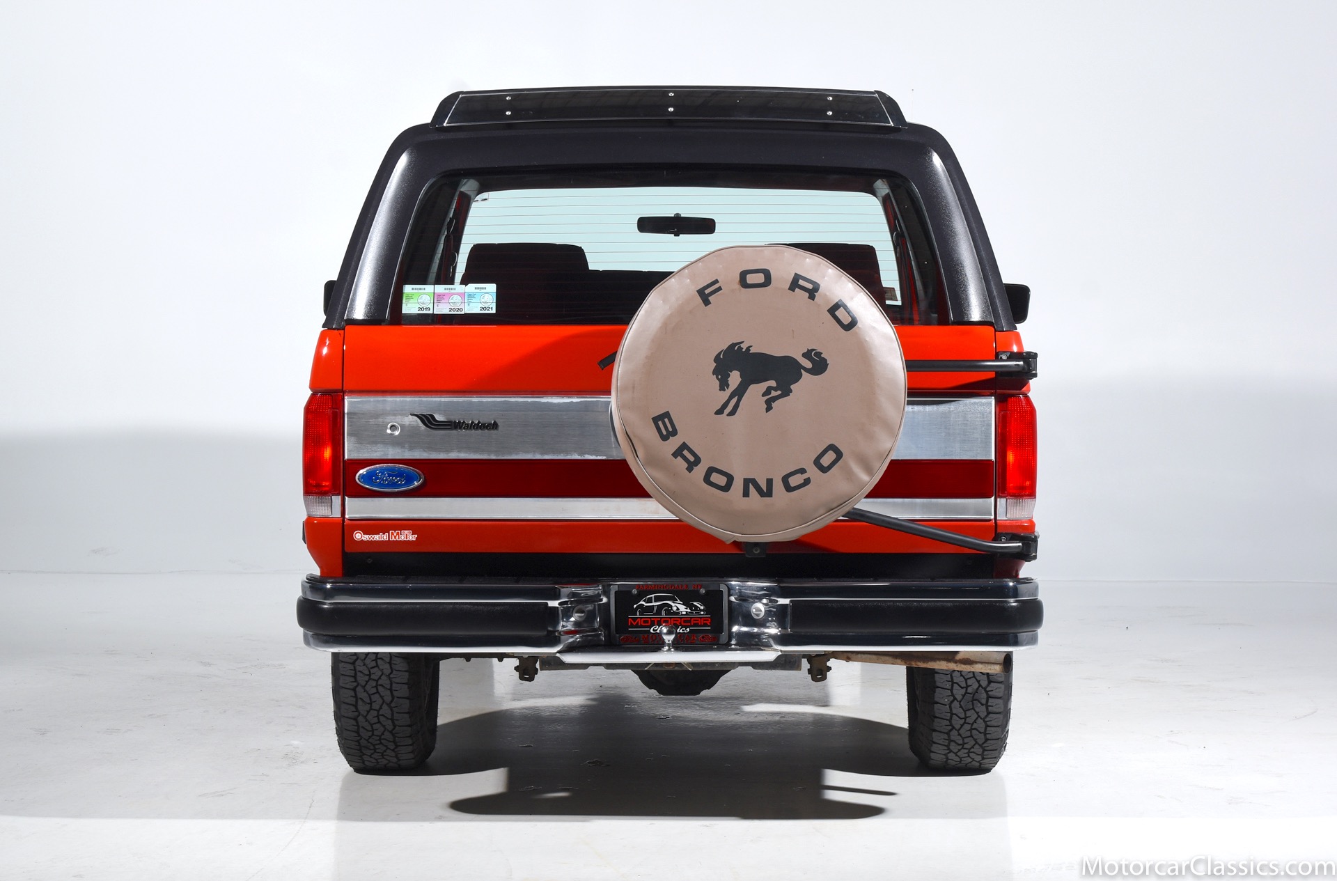 1987 Ford Bronco XLT for sale! Motorcar Classics is proud to present this handsome 1987 Ford Bronco XLT featured in red with black hard top and red velour interior. This loaded Bronco XLT is an all-original two-owner truck that has covered only 43,316 miles. The XLT is loaded with factory amenities including Fords 5.0L V8, automatic transmission, all-wheel drive, power steering, brakes, windows, door locks, cruise control, factory AC, and more. This Bronco is both very usable, and very collectible. Your inspection is invited.