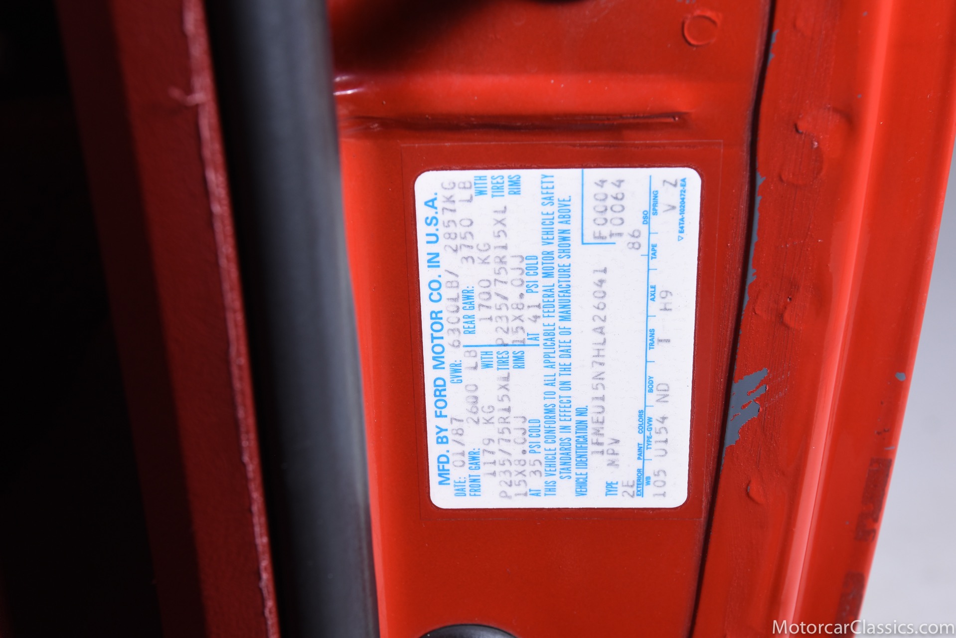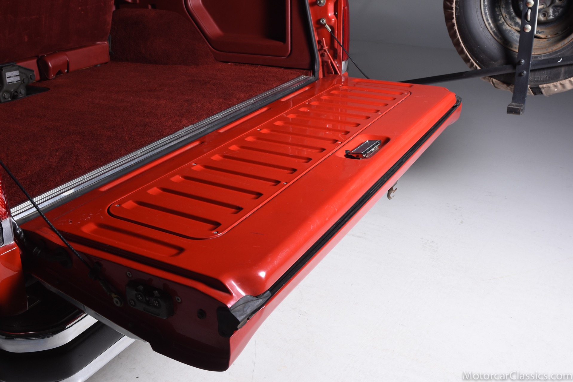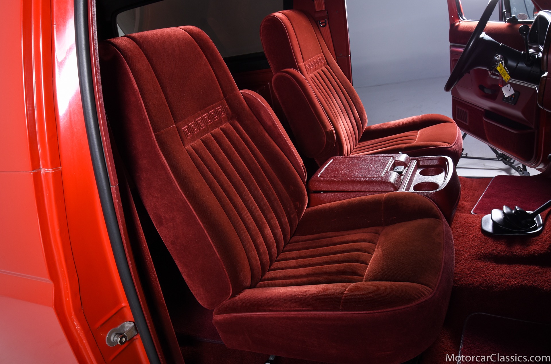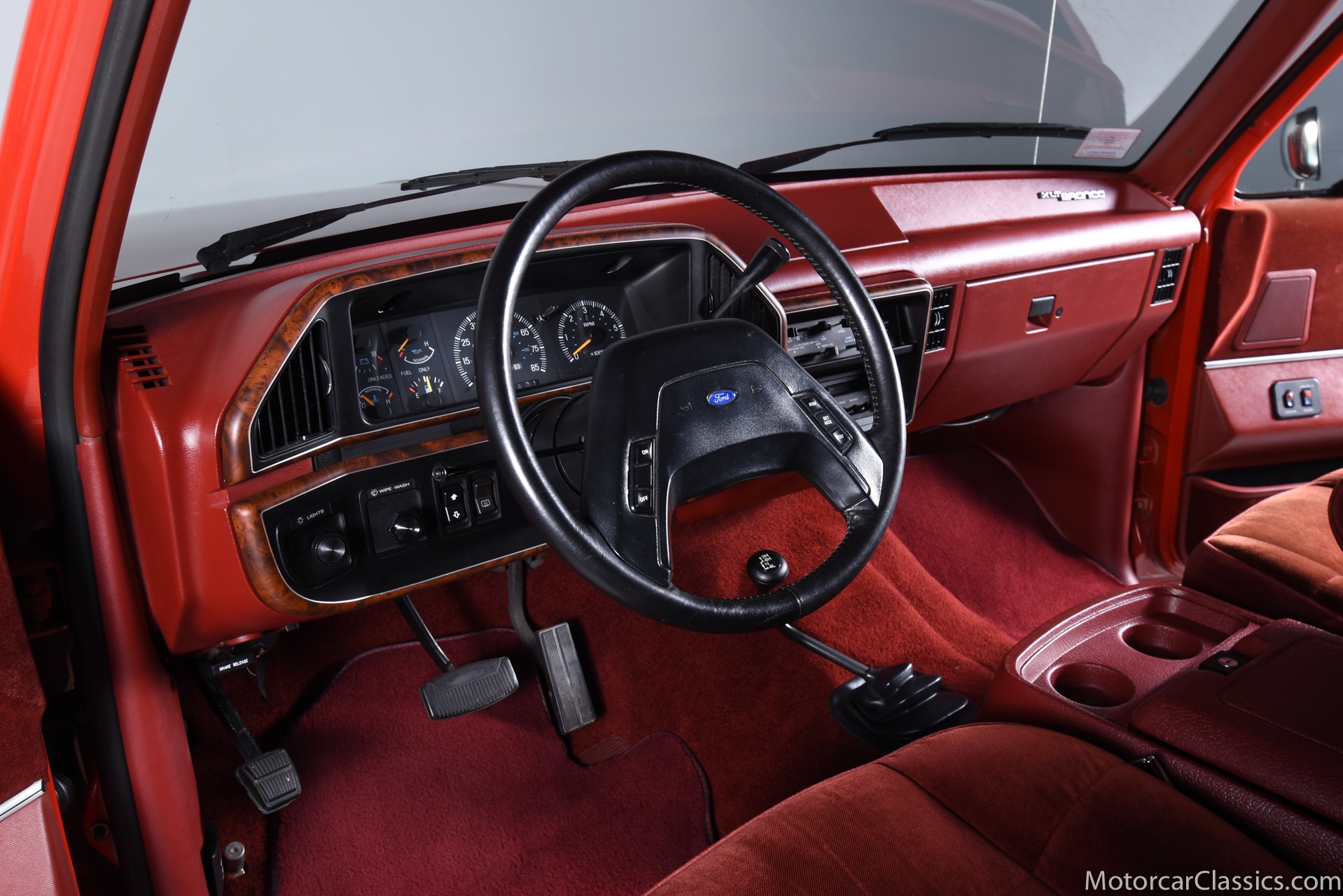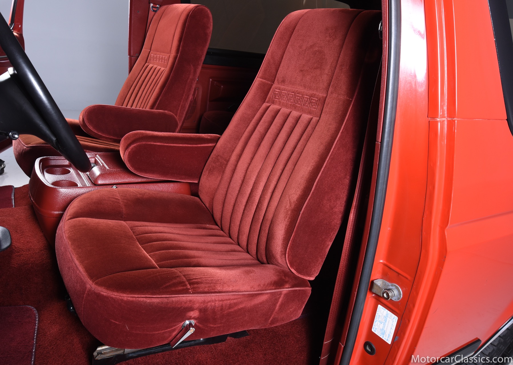 1987 Ford Bronco XLT for sale! Motorcar Classics is proud to present this handsome 1987 Ford Bronco XLT featured in red with black hard top and red velour interior. This loaded Bronco XLT is an all-original two-owner truck that has covered only 43,316 miles. The XLT is loaded with factory amenities including Fords 5.0L V8, automatic transmission, all-wheel drive, power steering, brakes, windows, door locks, cruise control, factory AC, and more. This Bronco is both very usable, and very collectible. Your inspection is invited.