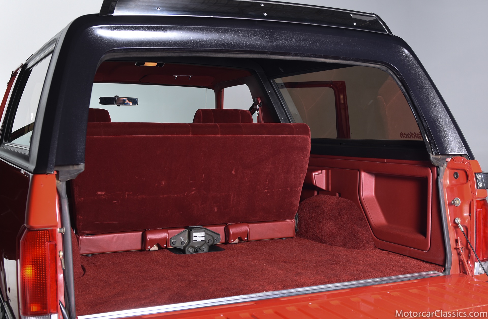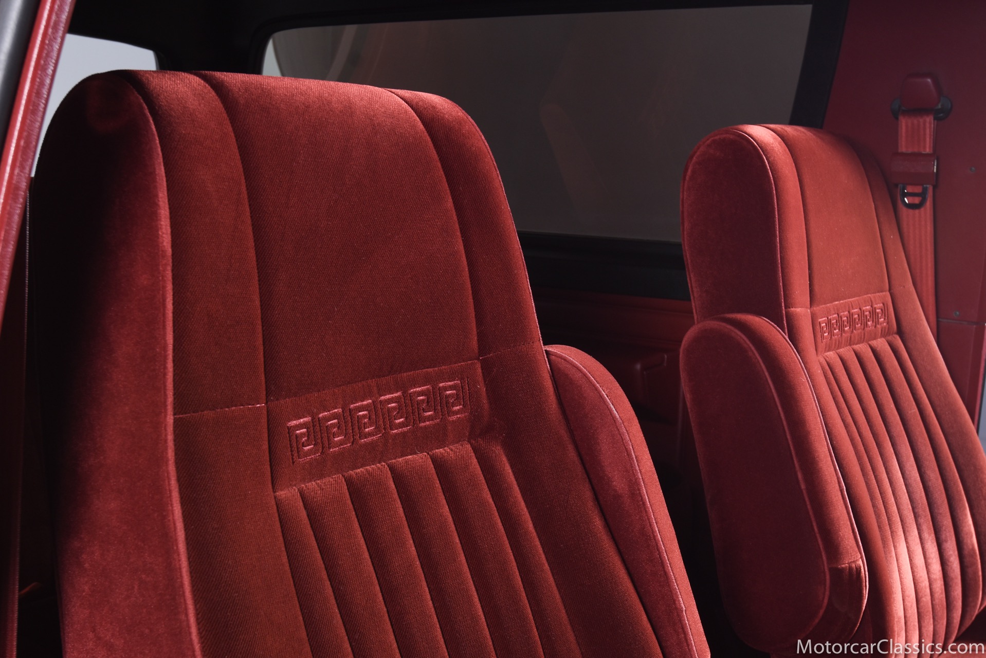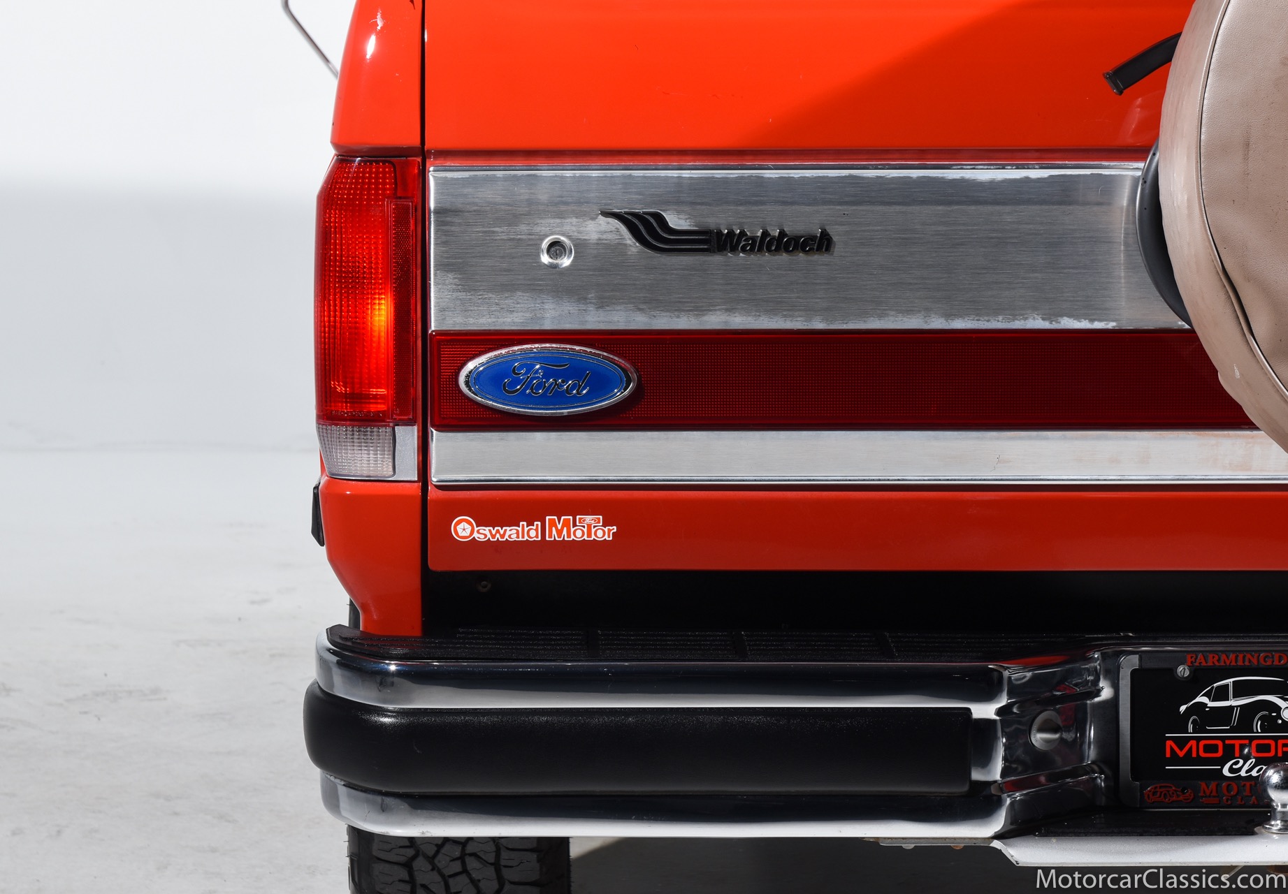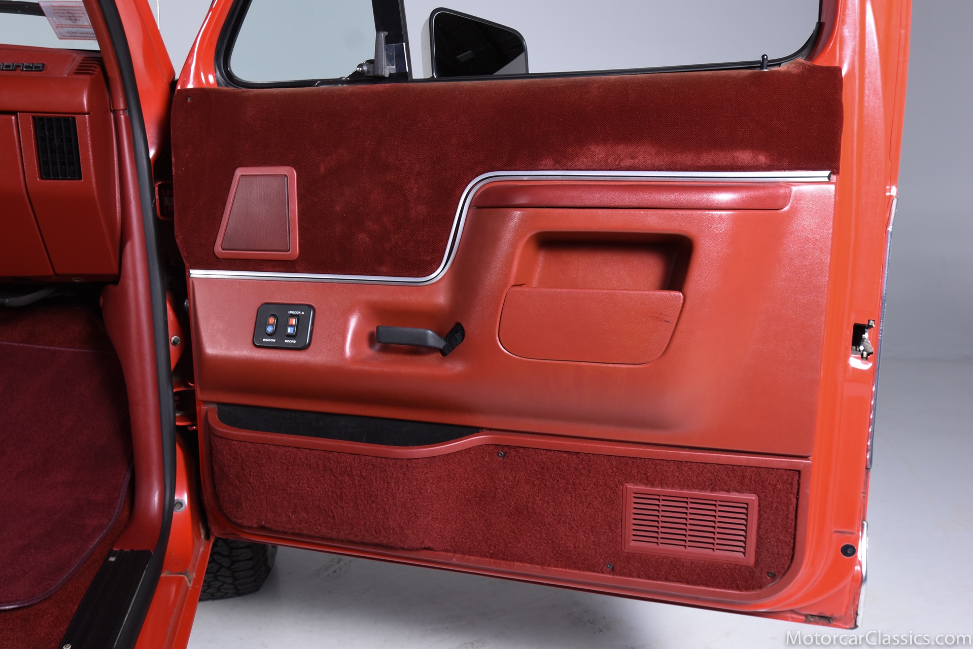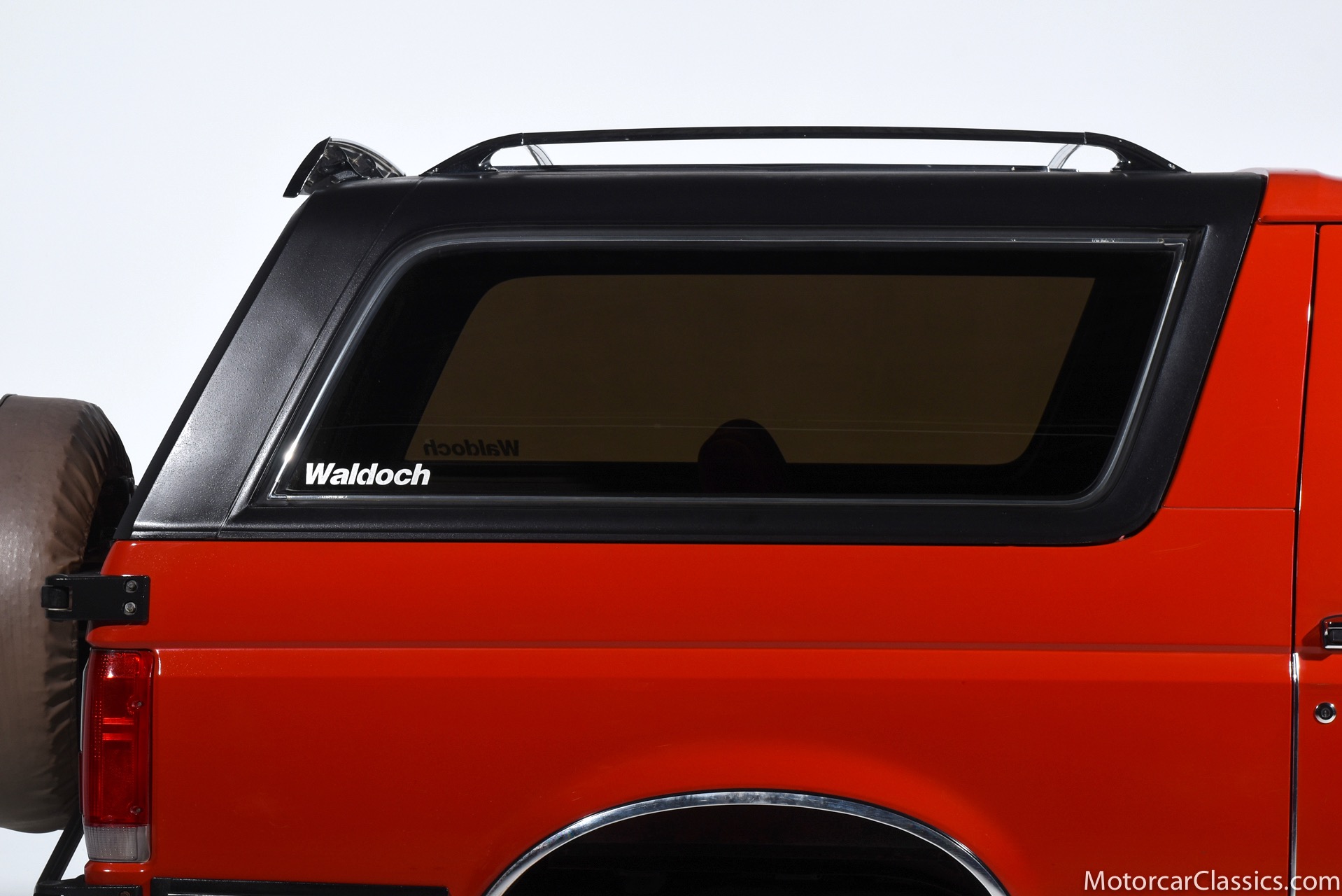 1987 Ford Bronco XLT for sale! Motorcar Classics is proud to present this handsome 1987 Ford Bronco XLT featured in red with black hard top and red velour interior. This loaded Bronco XLT is an all-original two-owner truck that has covered only 43,316 miles. The XLT is loaded with factory amenities including Fords 5.0L V8, automatic transmission, all-wheel drive, power steering, brakes, windows, door locks, cruise control, factory AC, and more. This Bronco is both very usable, and very collectible. Your inspection is invited.