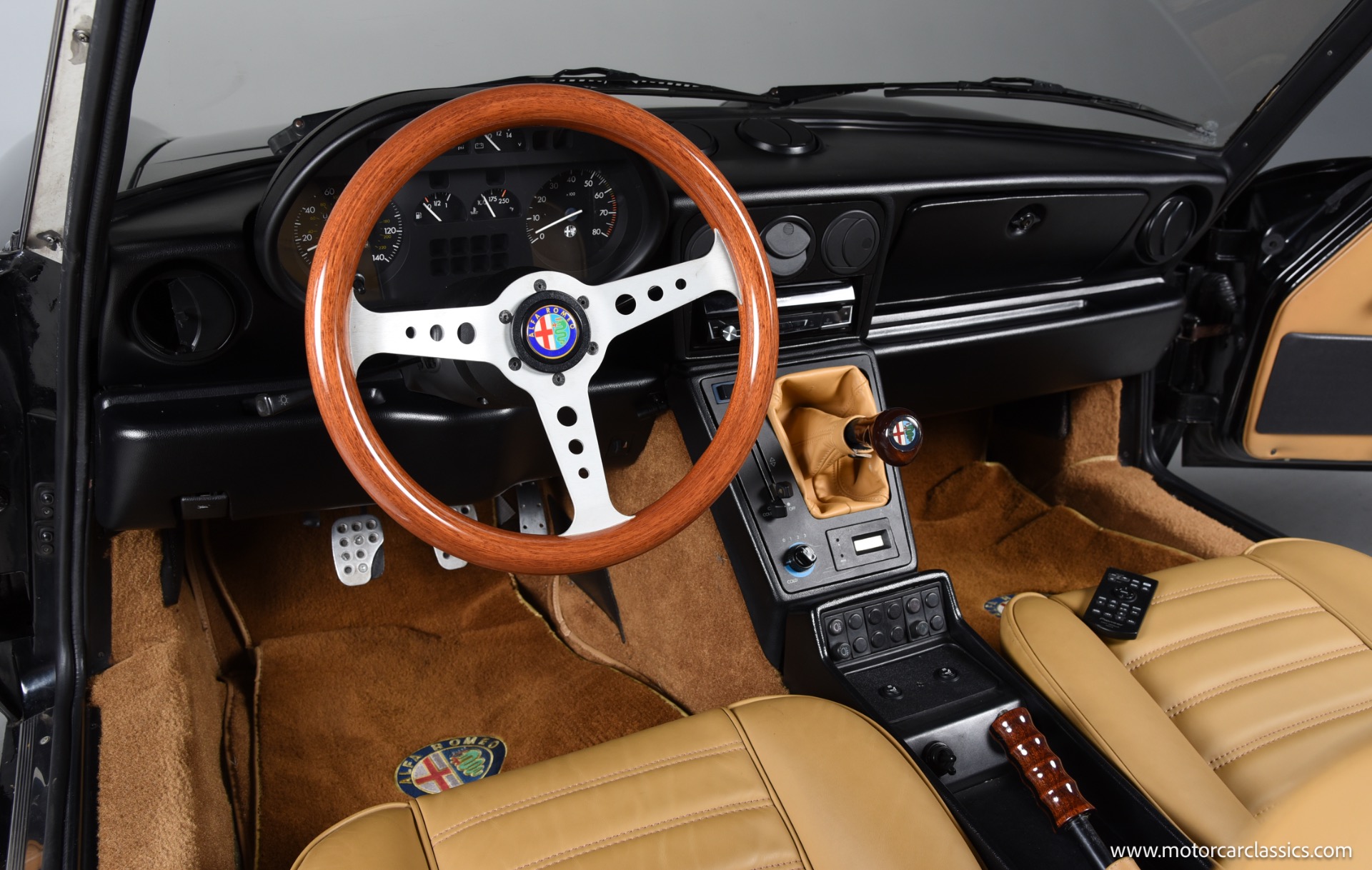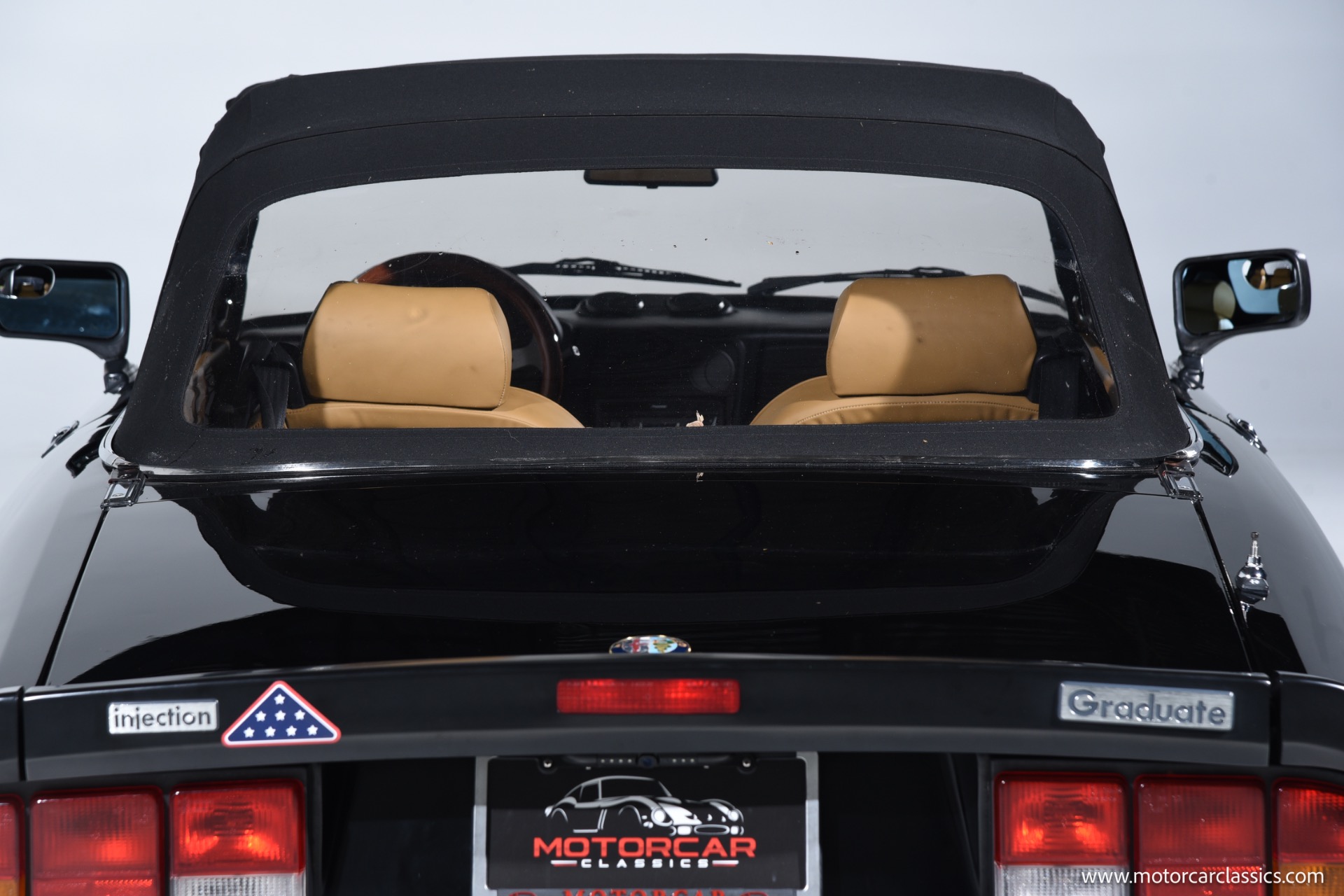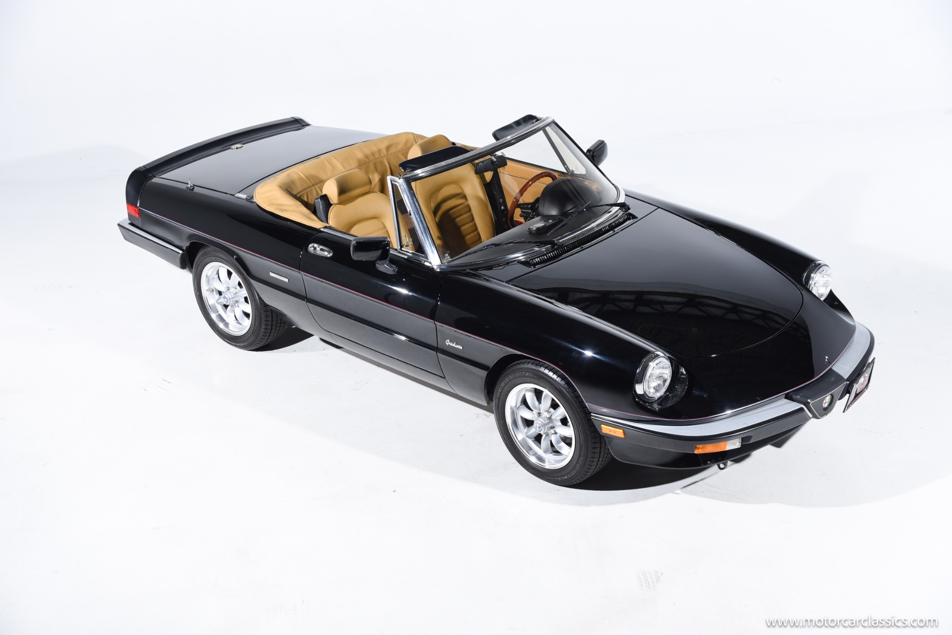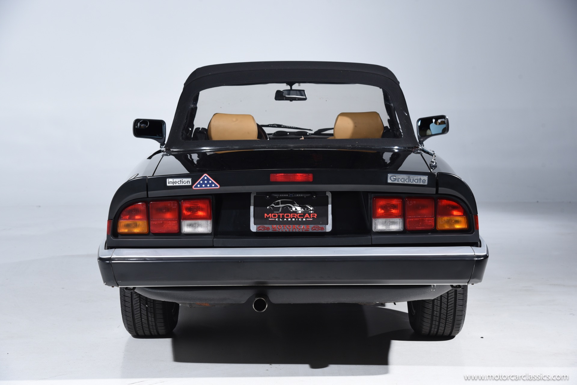 1988 Alfa Romeo Spider Graduate for sale! This outstanding 1988 Alfa Romeo Spider Graduate is a thoroughly refurbished example showing just 29,571 miles and presenting in superb condition, finished in black with a new black soft top, a refurbished black hardtop, and beautifully trimmed tan interior with heated leather seats with new cushions. The cockpit is further elevated by a mahogany Corsa 350mm steering wheel with Alfa Romeo insignia, matching mahogany gearshift knob and handbrake handle, tan leather shift and brake boots, a new glovebox door, re-covered upper door panels, insulated carpeting throughout including the trunk, and a new Alfa Romeo digital clock, creating a warm and cohesive high-end interior feel.
