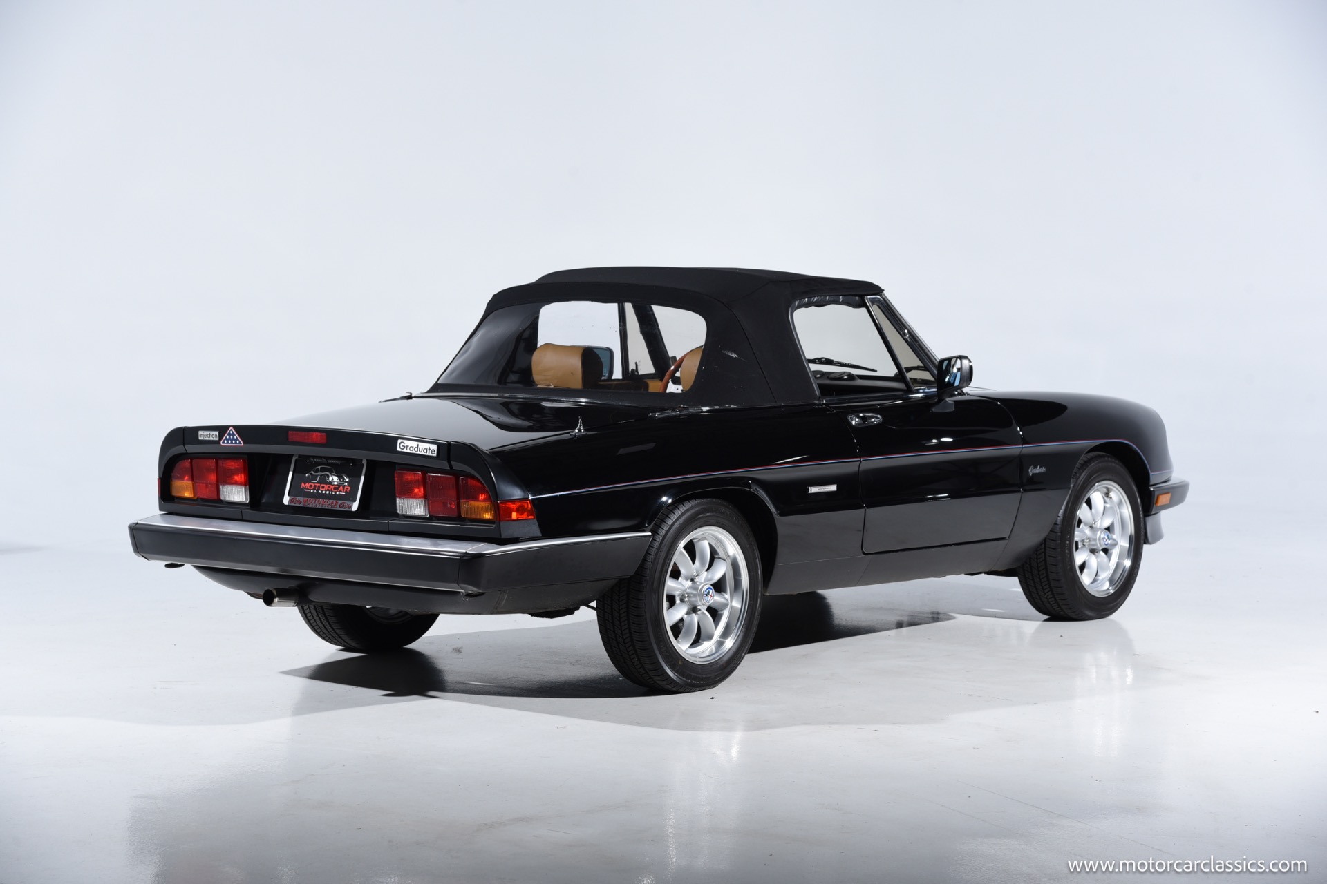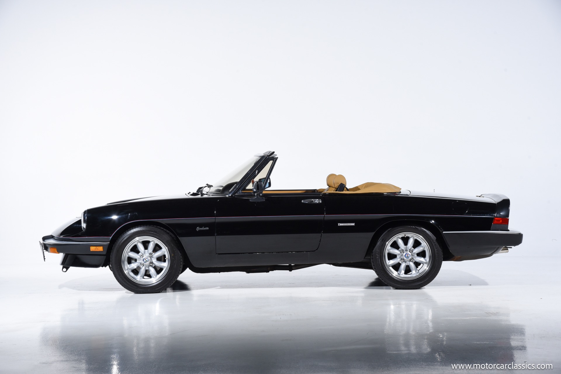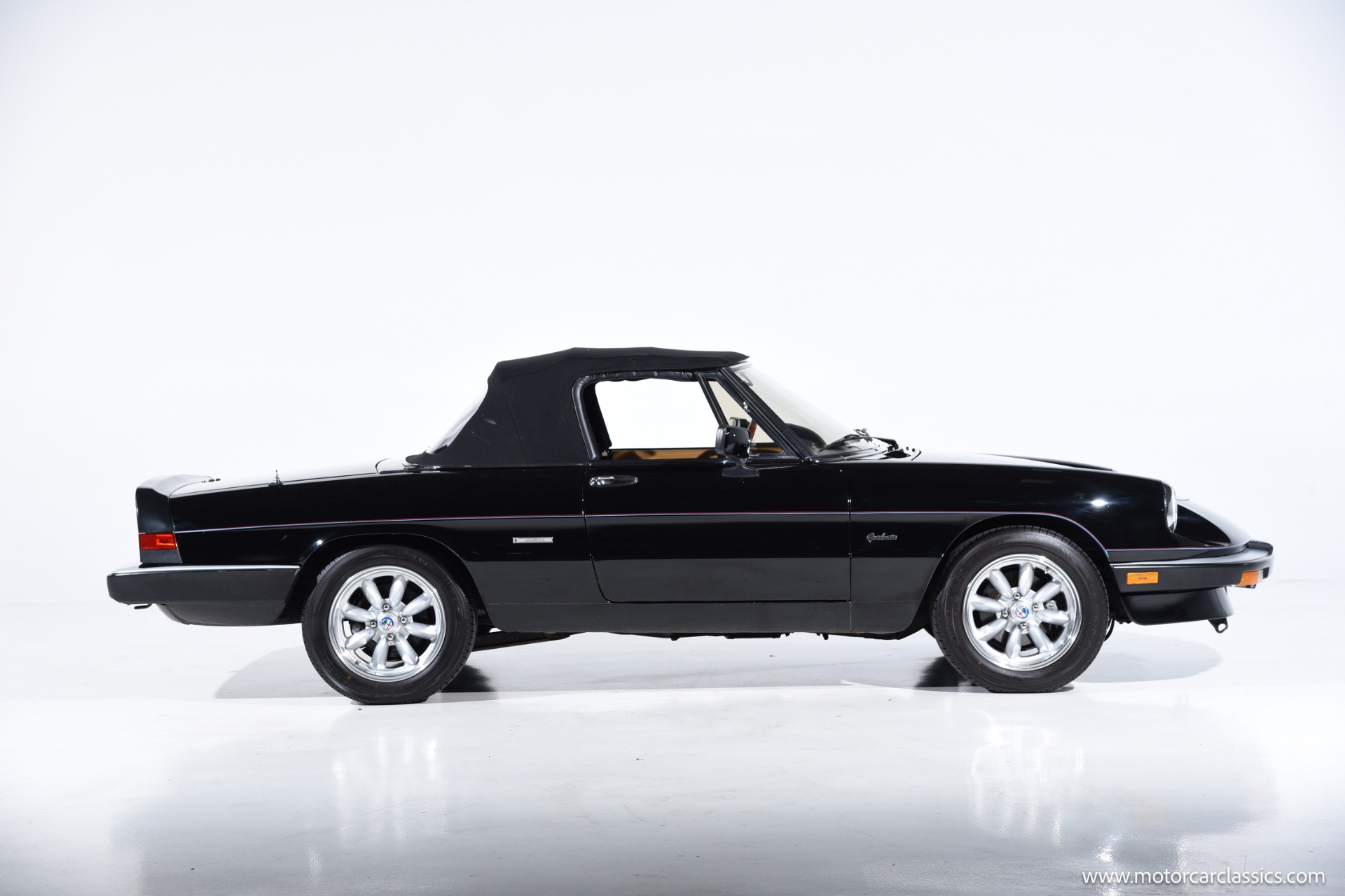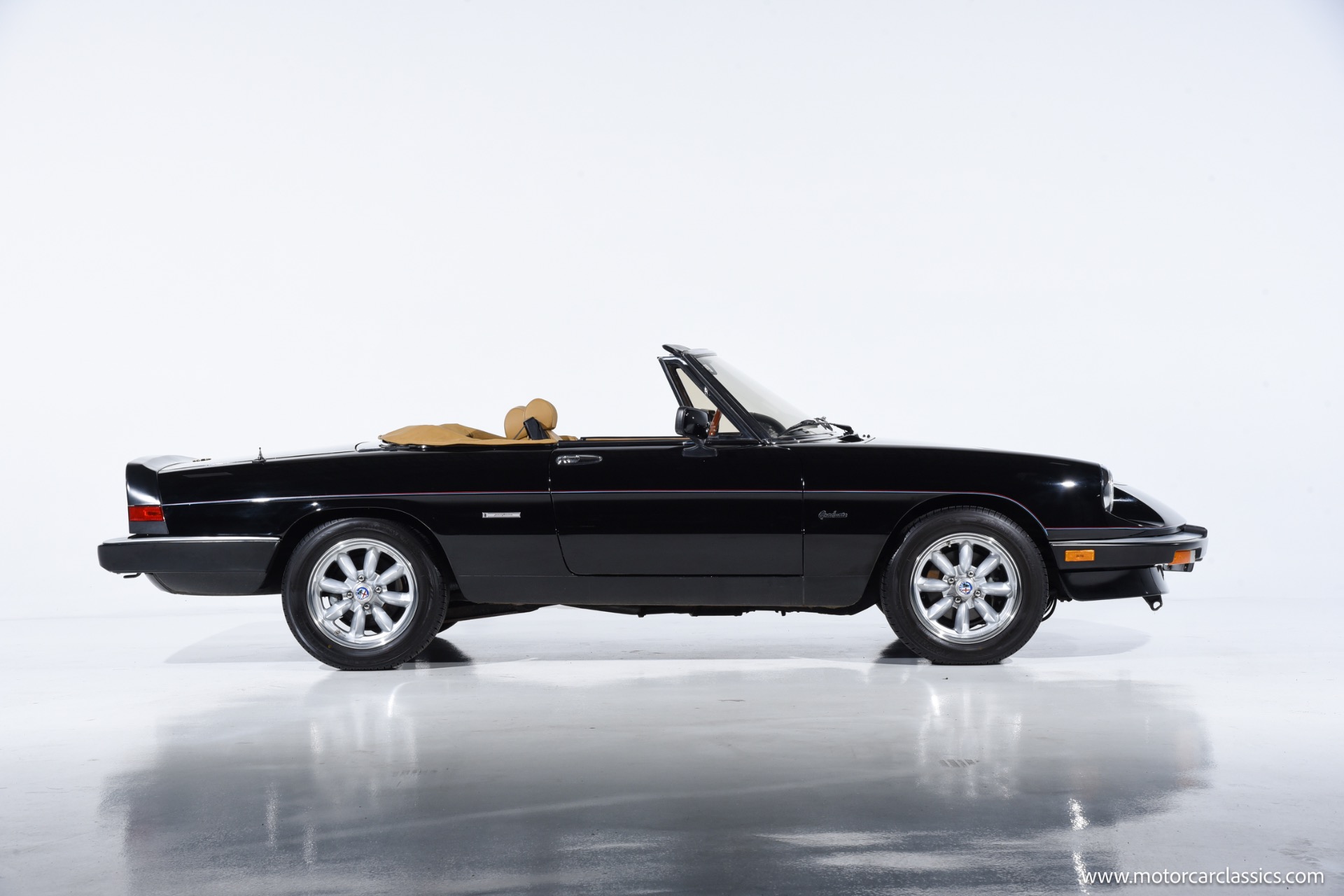 1988 Alfa Romeo Spider Graduate for sale! This outstanding 1988 Alfa Romeo Spider Graduate is a thoroughly refurbished example showing just 29,571 miles and presenting in superb condition, finished in black with a new black soft top, a refurbished black hardtop, and beautifully trimmed tan interior with heated leather seats with new cushions. The cockpit is further elevated by a mahogany Corsa 350mm steering wheel with Alfa Romeo insignia, matching mahogany gearshift knob and handbrake handle, tan leather shift and brake boots, a new glovebox door, re-covered upper door panels, insulated carpeting throughout including the trunk, and a new Alfa Romeo digital clock, creating a warm and cohesive high-end interior feel.