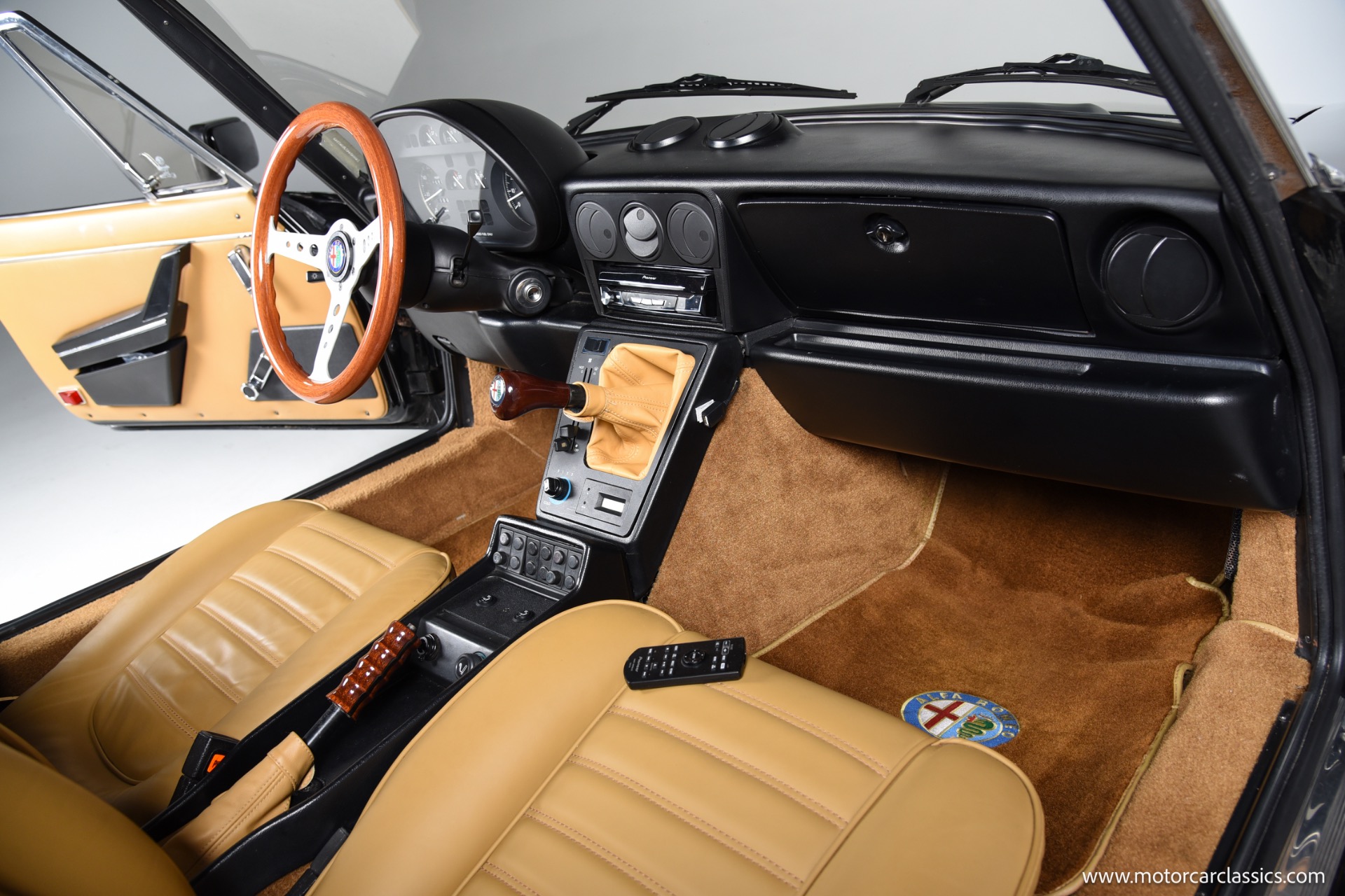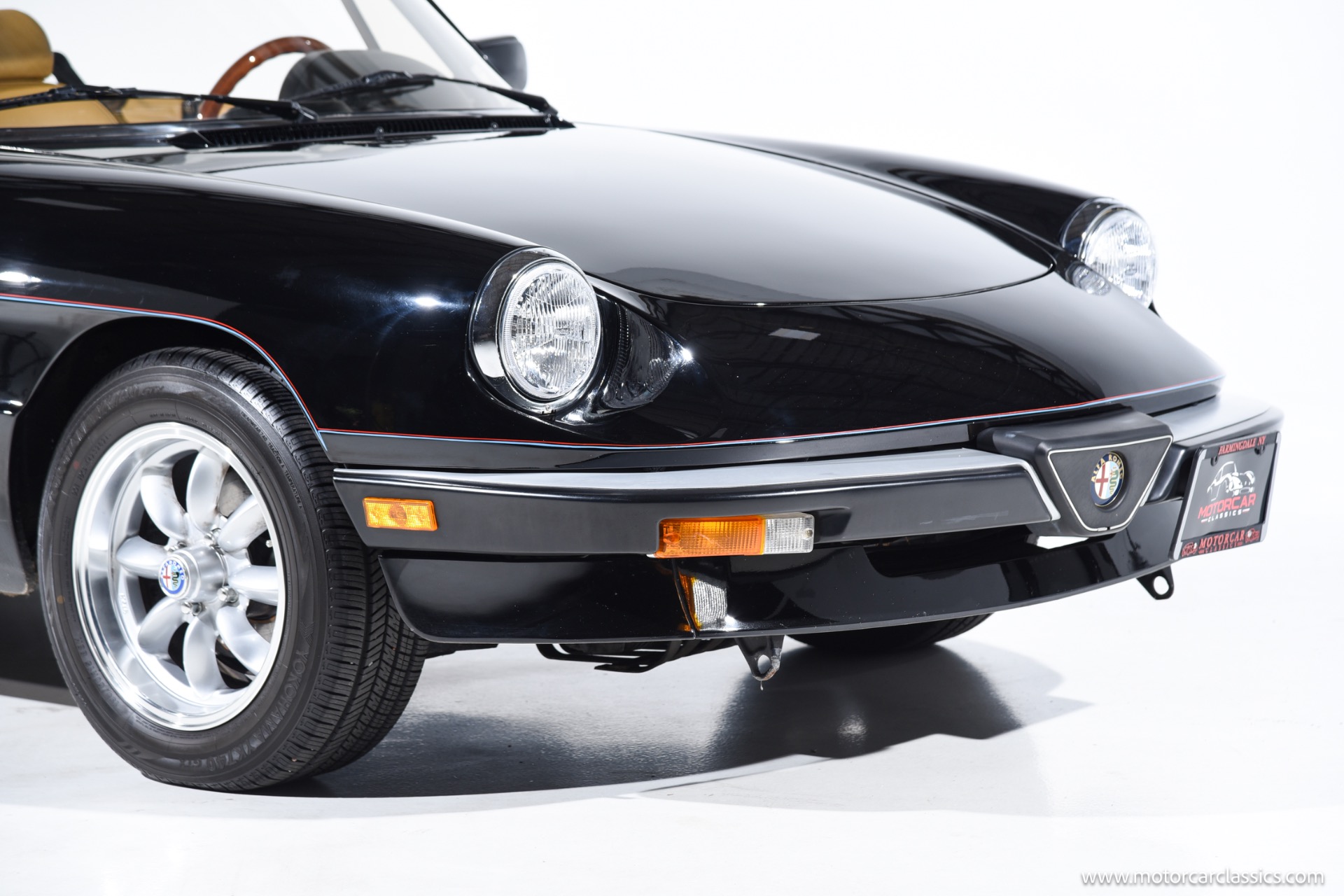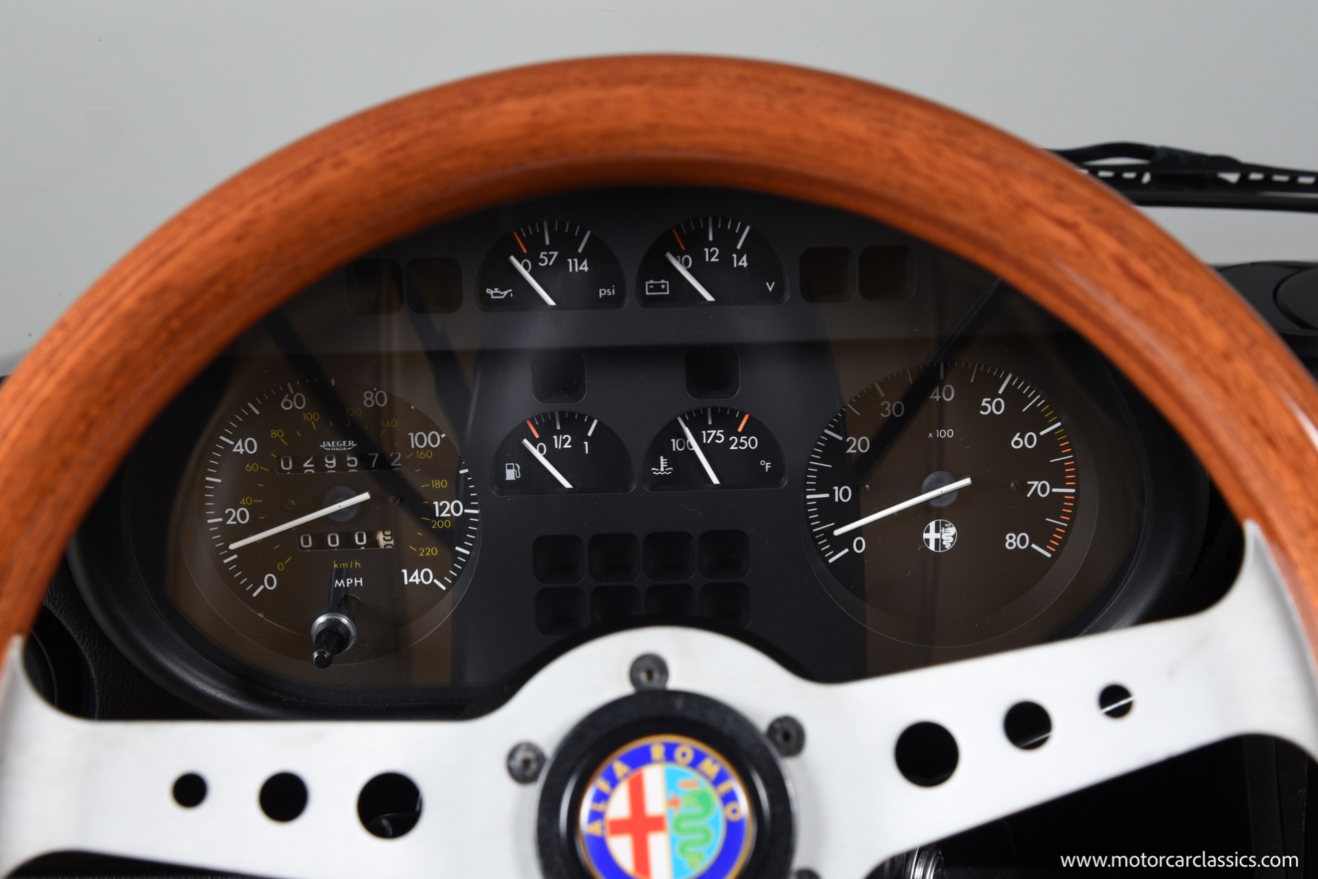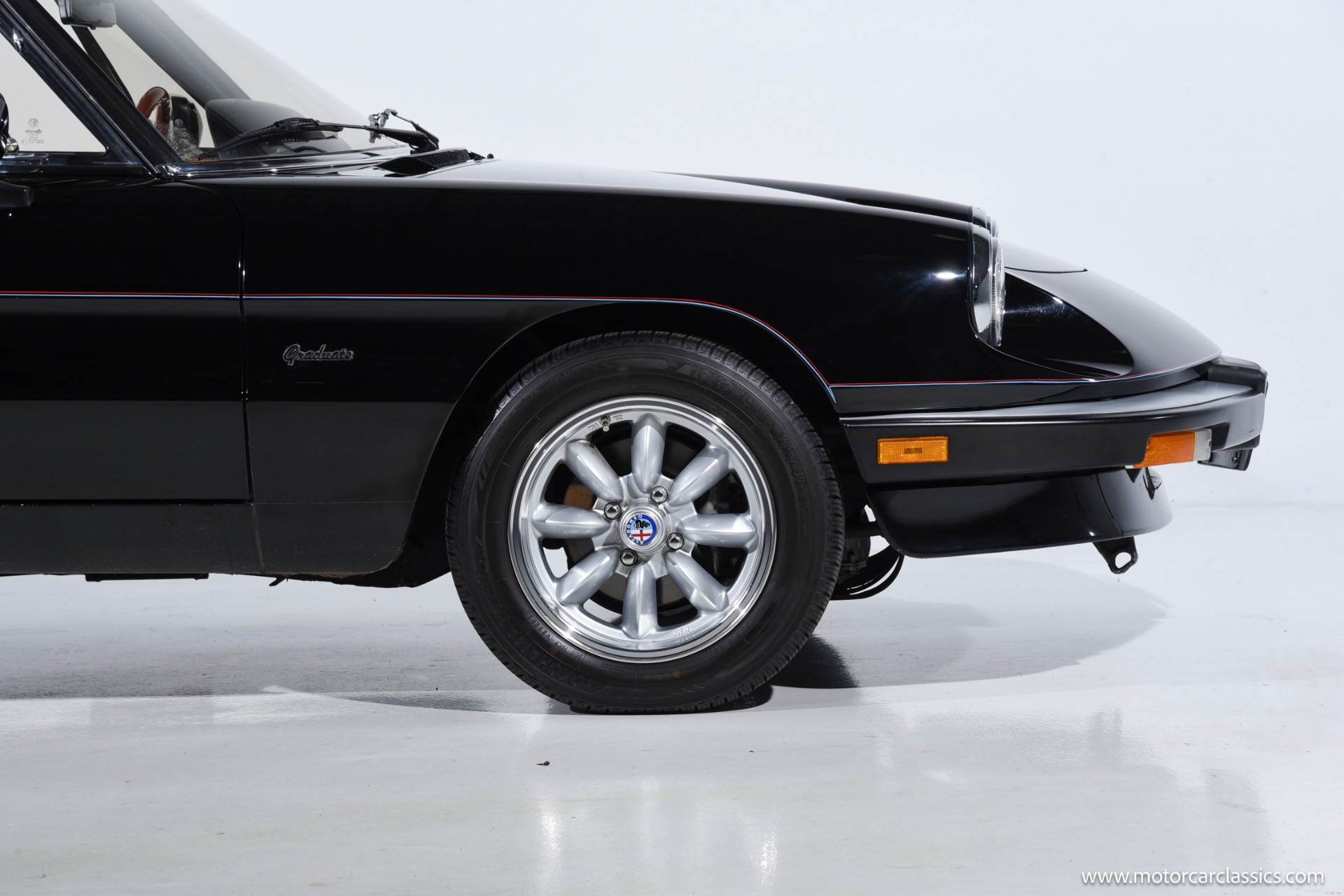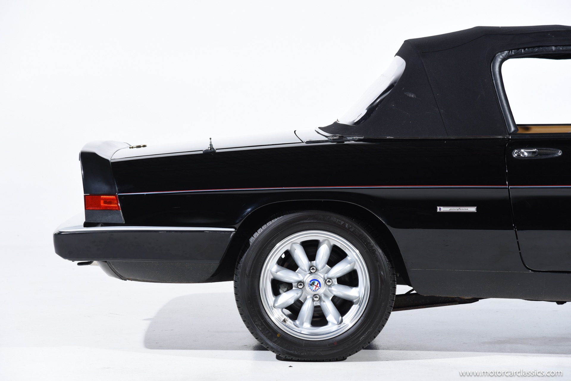 1988 Alfa Romeo Spider Graduate for sale! This outstanding 1988 Alfa Romeo Spider Graduate is a thoroughly refurbished example showing just 29,571 miles and presenting in superb condition, finished in black with a new black soft top, a refurbished black hardtop, and beautifully trimmed tan interior with heated leather seats with new cushions. The cockpit is further elevated by a mahogany Corsa 350mm steering wheel with Alfa Romeo insignia, matching mahogany gearshift knob and handbrake handle, tan leather shift and brake boots, a new glovebox door, re-covered upper door panels, insulated carpeting throughout including the trunk, and a new Alfa Romeo digital clock, creating a warm and cohesive high-end interior feel.