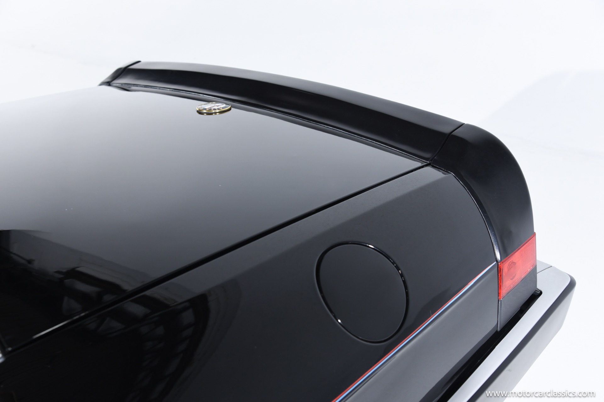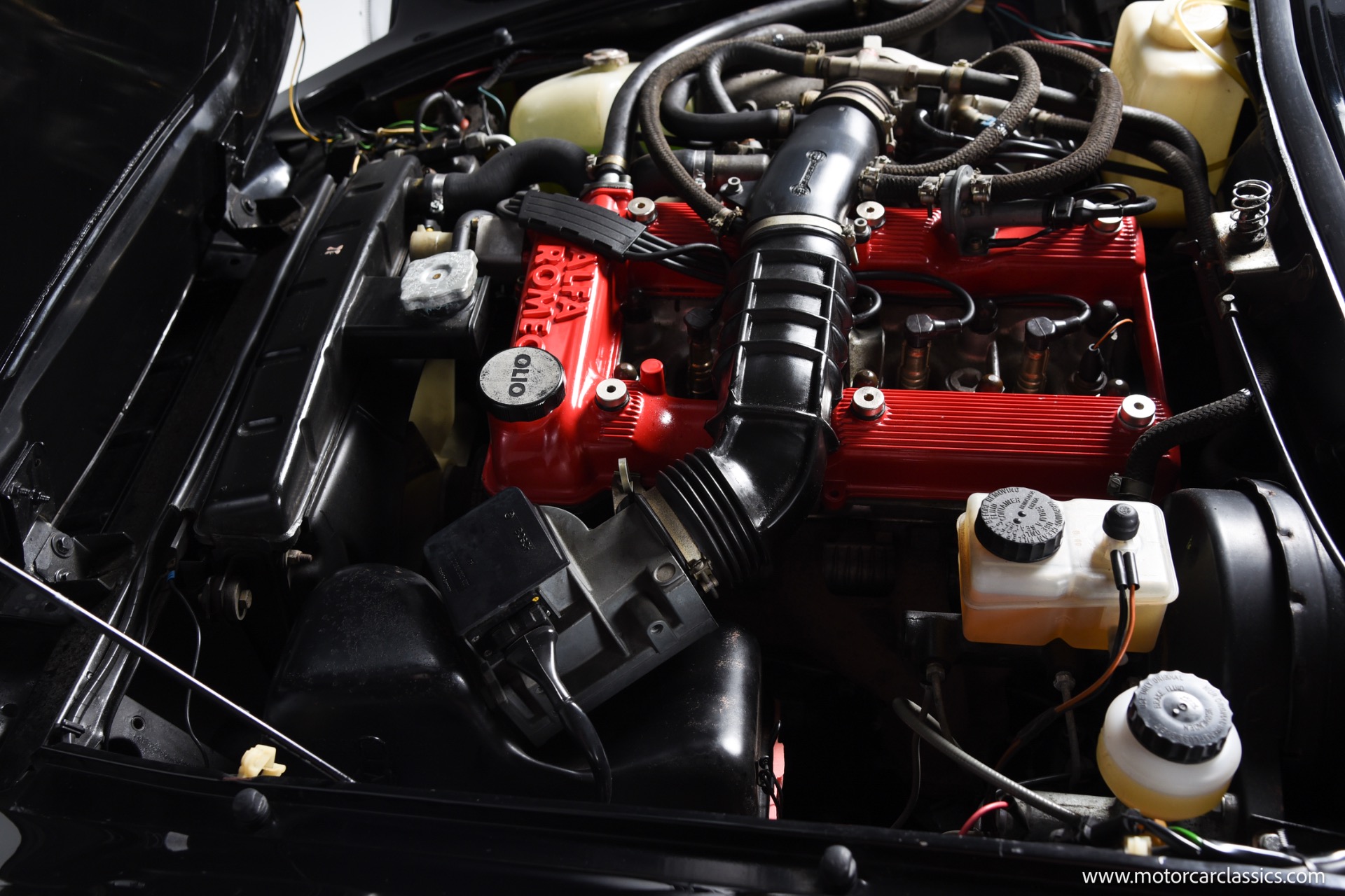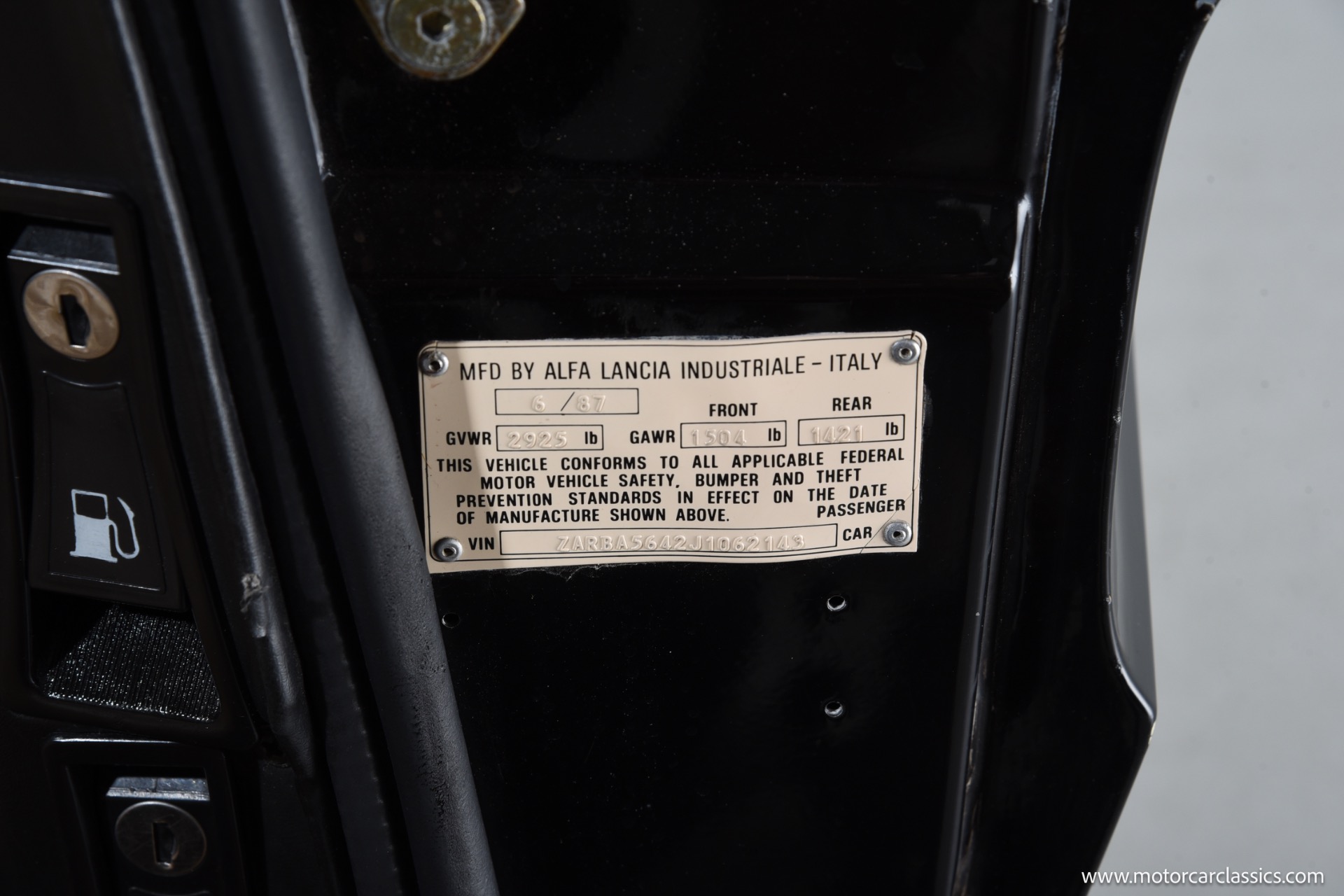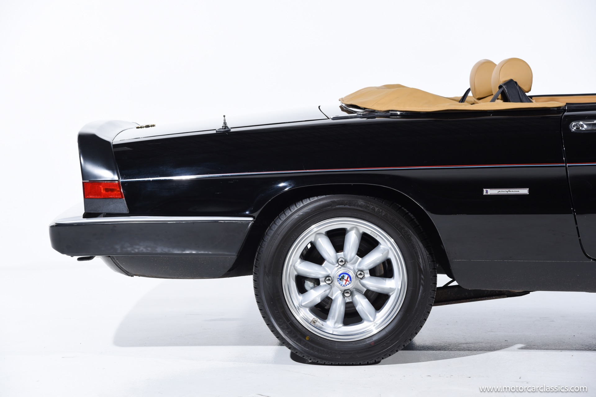 1988 Alfa Romeo Spider Graduate for sale! This outstanding 1988 Alfa Romeo Spider Graduate is a thoroughly refurbished example showing just 29,571 miles and presenting in superb condition, finished in black with a new black soft top, a refurbished black hardtop, and beautifully trimmed tan interior with heated leather seats with new cushions. The cockpit is further elevated by a mahogany Corsa 350mm steering wheel with Alfa Romeo insignia, matching mahogany gearshift knob and handbrake handle, tan leather shift and brake boots, a new glovebox door, re-covered upper door panels, insulated carpeting throughout including the trunk, and a new Alfa Romeo digital clock, creating a warm and cohesive high-end interior feel.