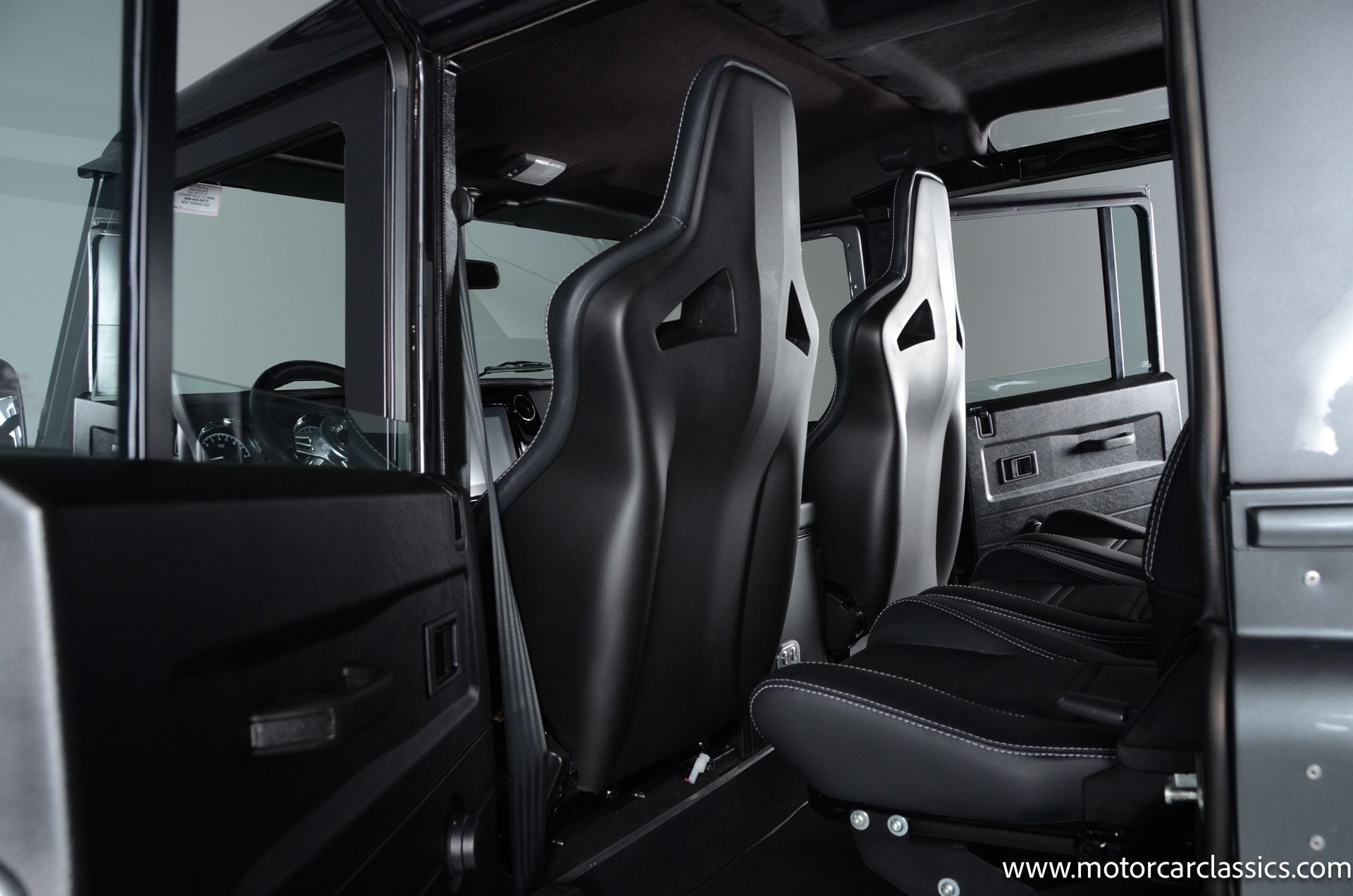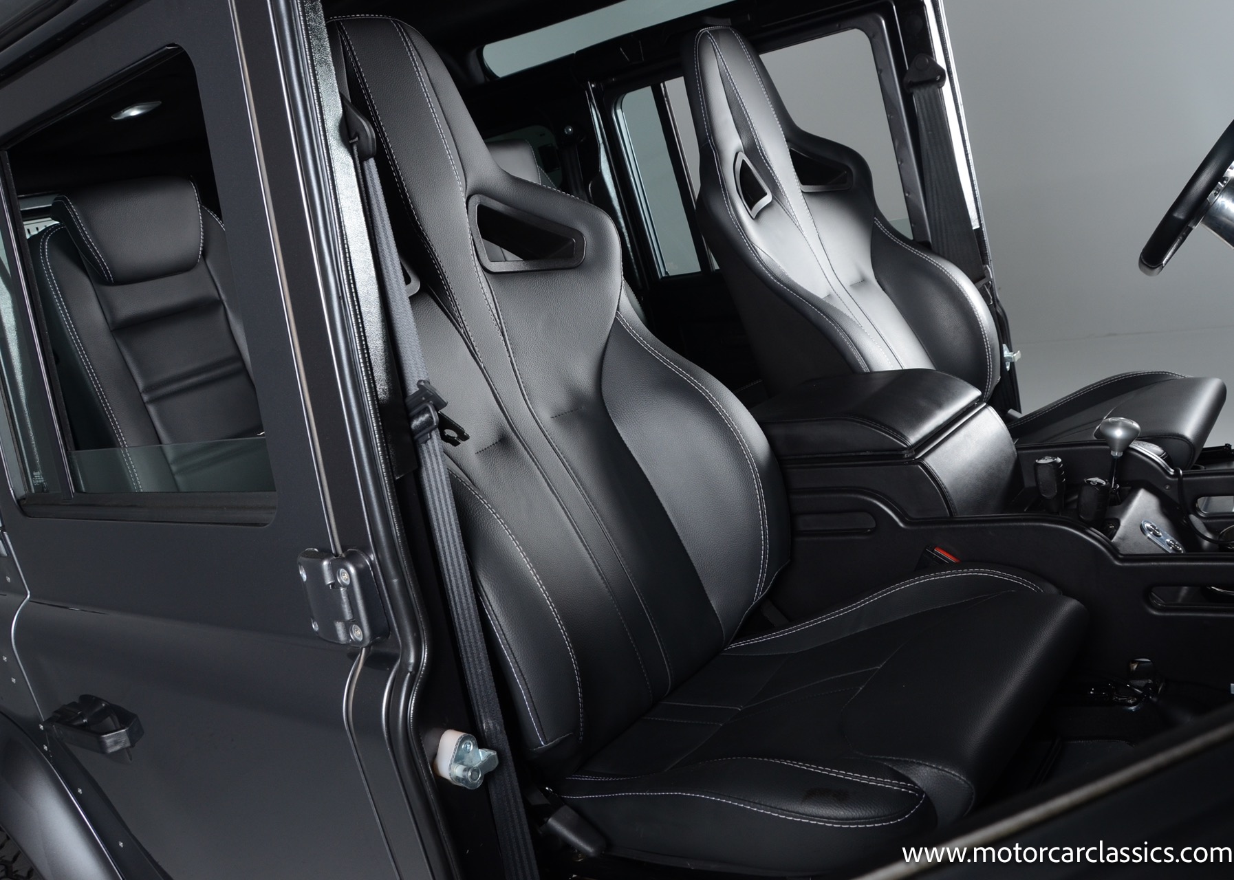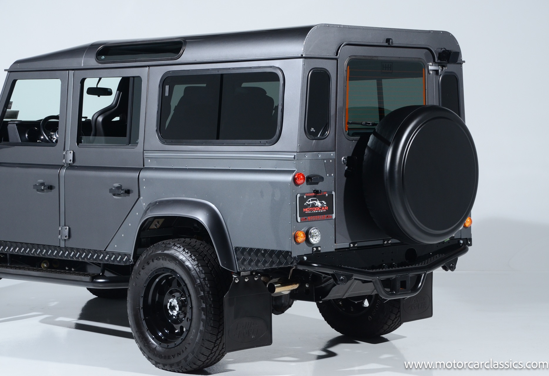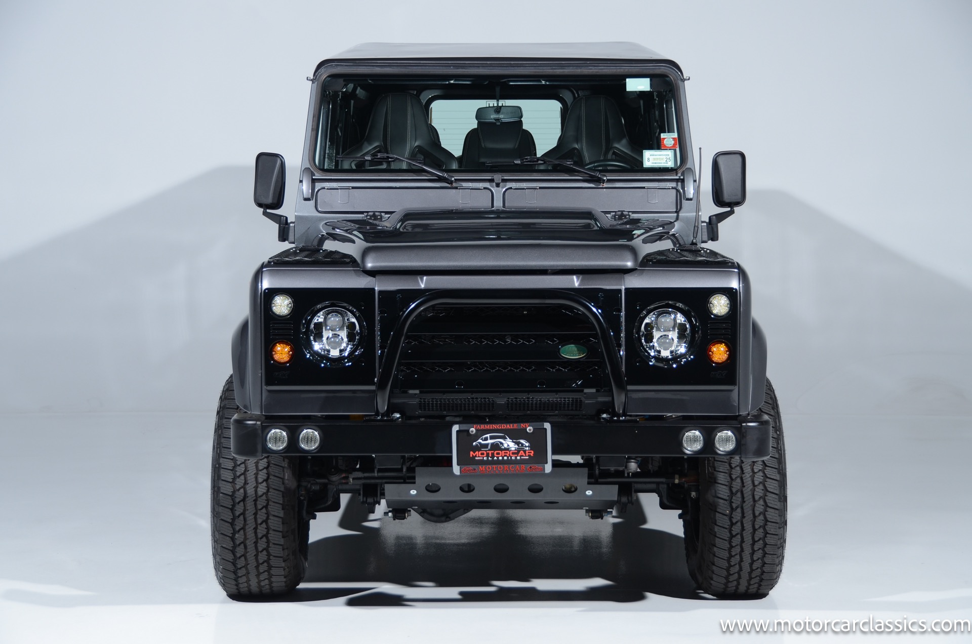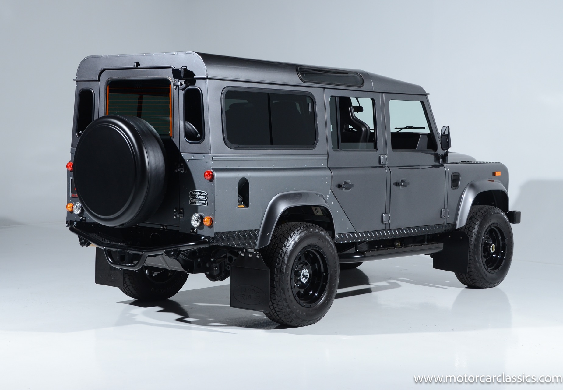1988 Land Rover Defender 110 for sale! Motorcar Classics is proud to present this 1988 Defender 110 restored and upgraded by the legendary HHH Heritage out of Kenosha Wisconsin. Finished in Dark Grey Metallic over black leather with silver stitching this vehicle has been painstakingly restored to what you see today. Under the hood is a brand new 350CI Chevrolet engine making 420HP and 408Ft lbs of Torque attached to an Atlas transfer case ( 3.0:1 ratio ). The 4x4 system is equipped with Dana 44 Front and Rear Axles with 3.73 gears Options include: Premium carpeting, Dynamat through out as sound deadening, Custom bulkhead system, Premium Sound/ Screen system with front power door locks, 2nd row power windows, Steering guard, Front sport seats, high back seats for the second row and leather door panels, Wing top protectors, Puma hood upgrades, Shelby Intakes, Bull bar with bumper extensions, diamond plate sides and much much more. Why wait to have one built when this is ready to go with only 2591 break in miles. Your inspection is invited!