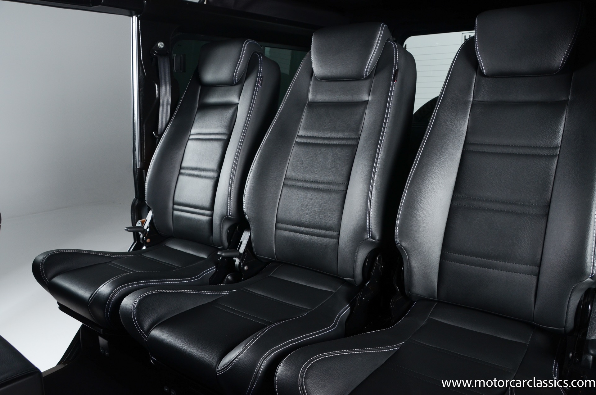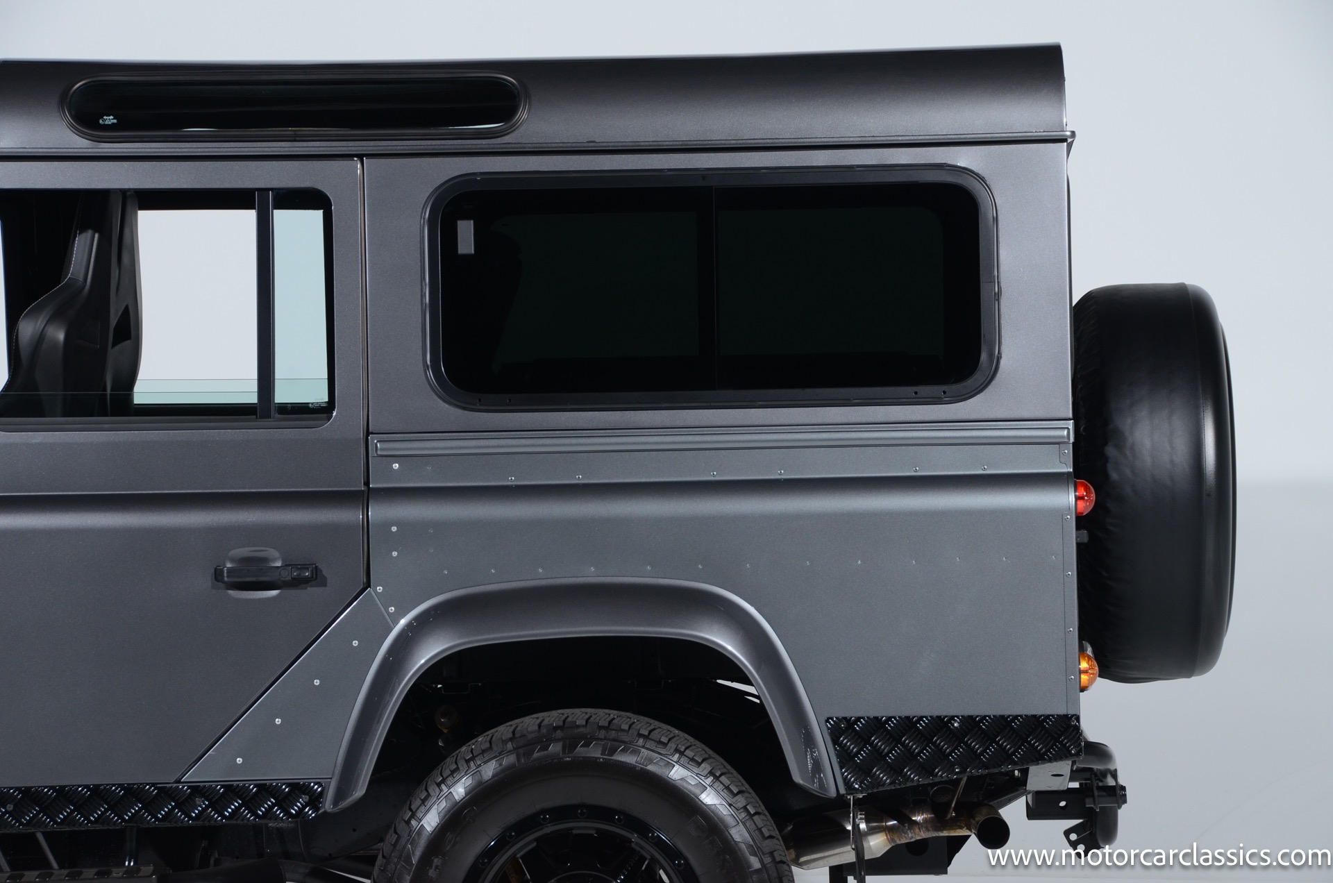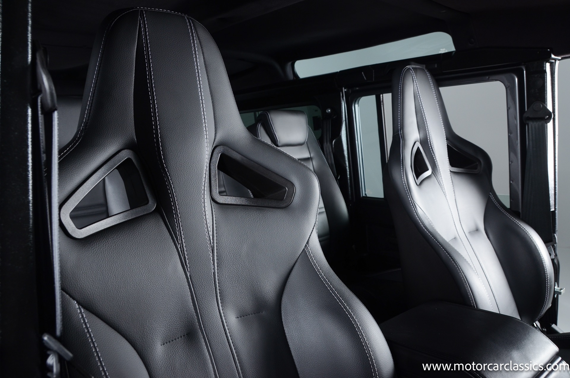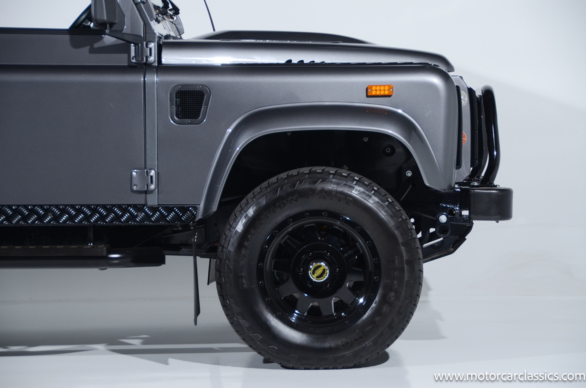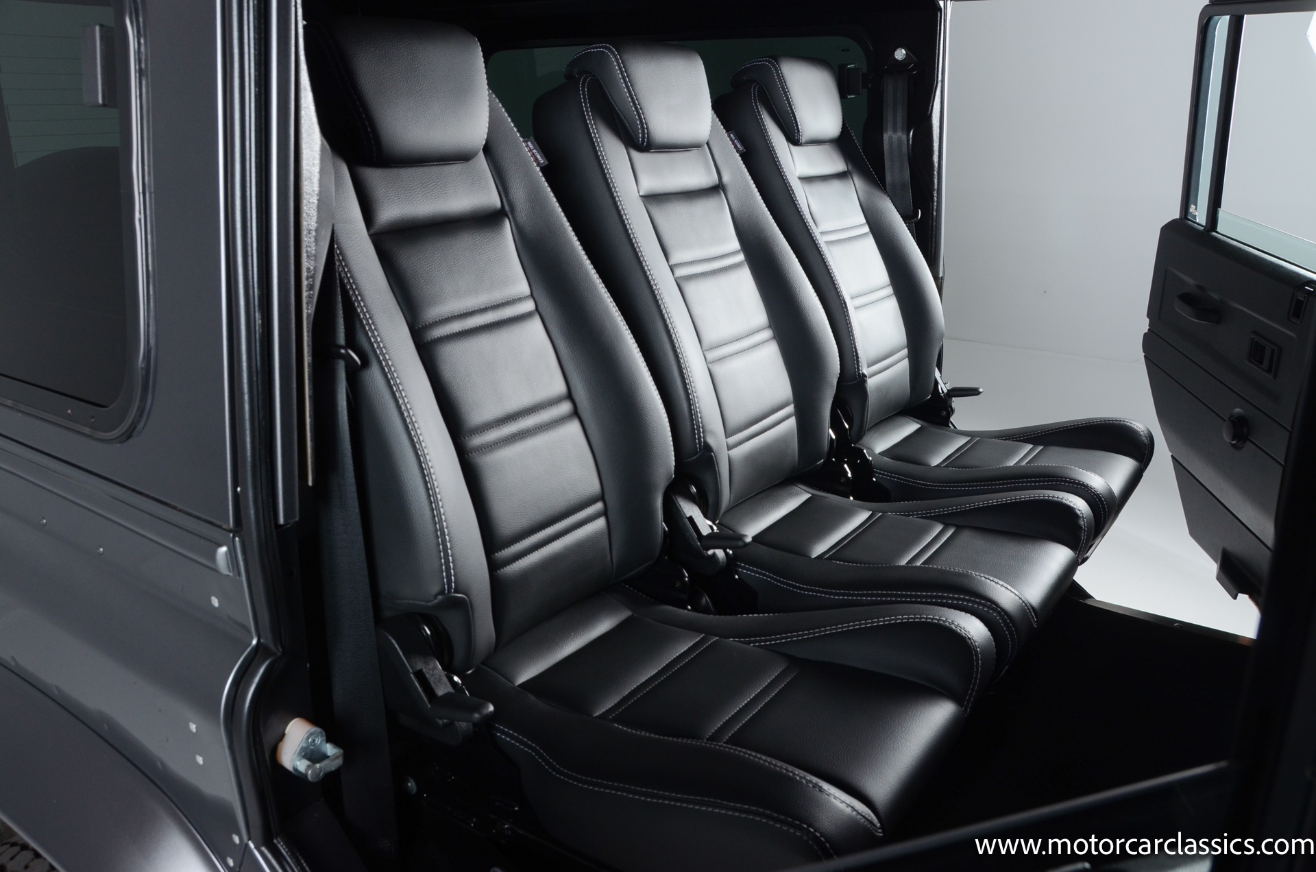 1988 Land Rover Defender 110 for sale! Motorcar Classics is proud to present this 1988 Defender 110 restored and upgraded by the legendary HHH Heritage out of Kenosha Wisconsin. Finished in Dark Grey Metallic over black leather with silver stitching this vehicle has been painstakingly restored to what you see today. Under the hood is a brand new 350CI Chevrolet engine making 420HP and 408Ft lbs of Torque attached to an Atlas transfer case ( 3.0:1 ratio ). The 4x4 system is equipped with Dana 44 Front and Rear Axles with 3.73 gears Options include: Premium carpeting, Dynamat through out as sound deadening, Custom bulkhead system, Premium Sound/ Screen system with front power door locks, 2nd row power windows, Steering guard, Front sport seats, high back seats for the second row and leather door panels, Wing top protectors, Puma hood upgrades, Shelby Intakes, Bull bar with bumper extensions, diamond plate sides and much much more. Why wait to have one built when this is ready to go with only 2591 break in miles. Your inspection is invited!