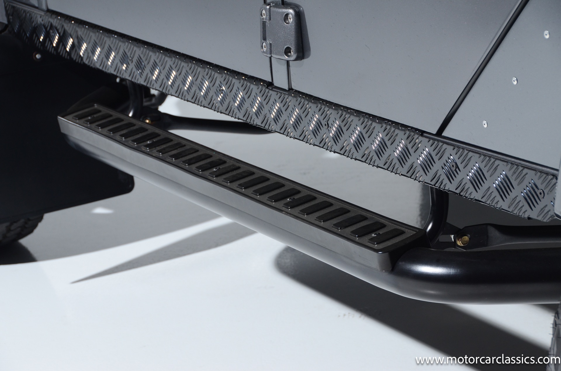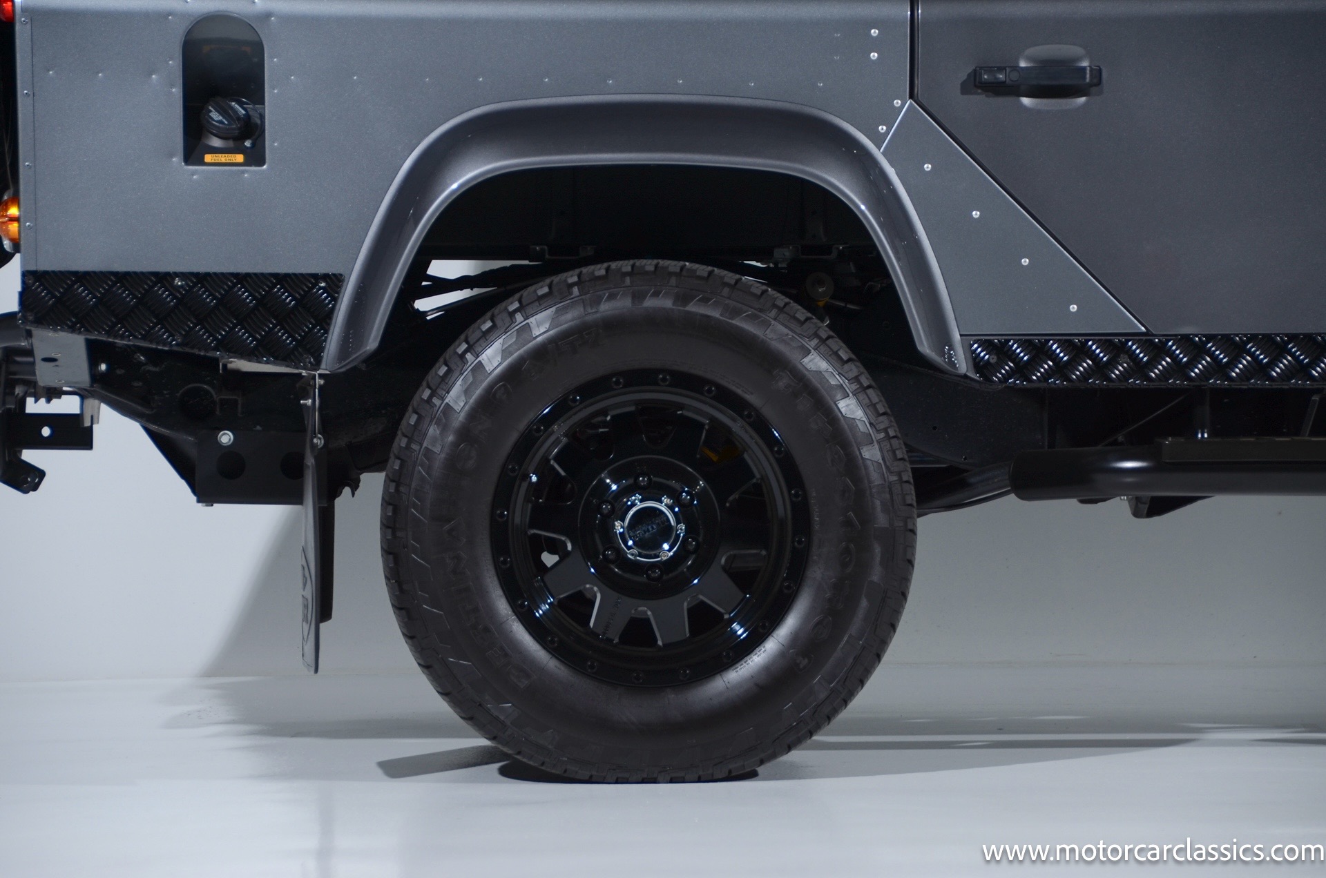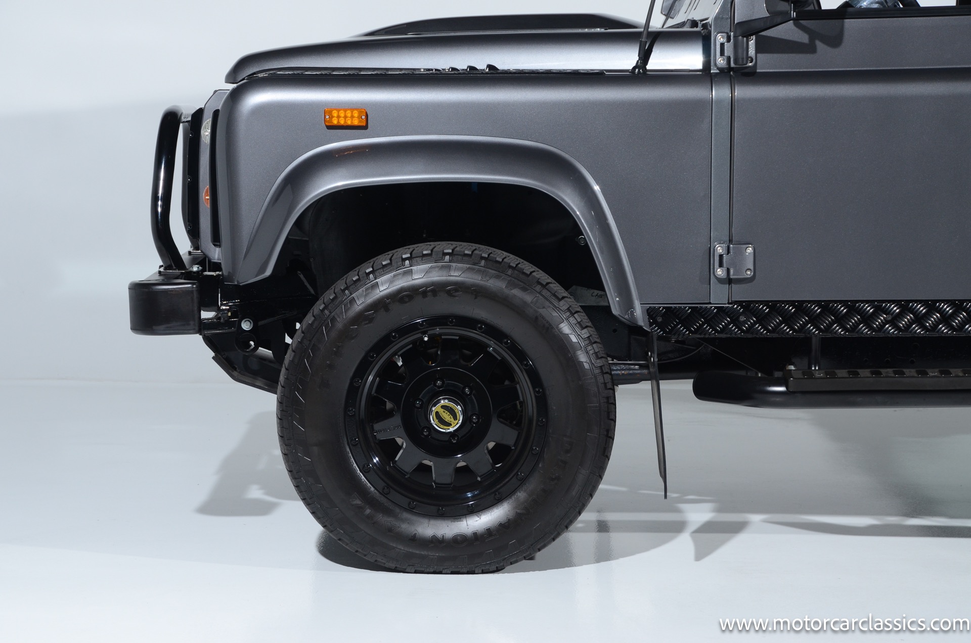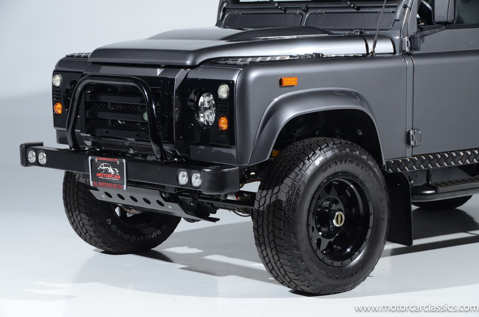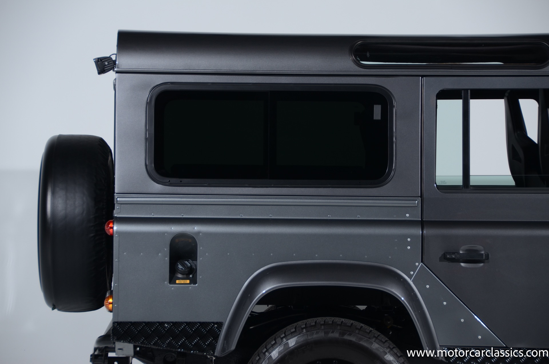 1988 Land Rover Defender 110 for sale! Motorcar Classics is proud to present this 1988 Defender 110 restored and upgraded by the legendary HHH Heritage out of Kenosha Wisconsin. Finished in Dark Grey Metallic over black leather with silver stitching this vehicle has been painstakingly restored to what you see today. Under the hood is a brand new 350CI Chevrolet engine making 420HP and 408Ft lbs of Torque attached to an Atlas transfer case ( 3.0:1 ratio ). The 4x4 system is equipped with Dana 44 Front and Rear Axles with 3.73 gears Options include: Premium carpeting, Dynamat through out as sound deadening, Custom bulkhead system, Premium Sound/ Screen system with front power door locks, 2nd row power windows, Steering guard, Front sport seats, high back seats for the second row and leather door panels, Wing top protectors, Puma hood upgrades, Shelby Intakes, Bull bar with bumper extensions, diamond plate sides and much much more. Why wait to have one built when this is ready to go with only 2591 break in miles. Your inspection is invited!