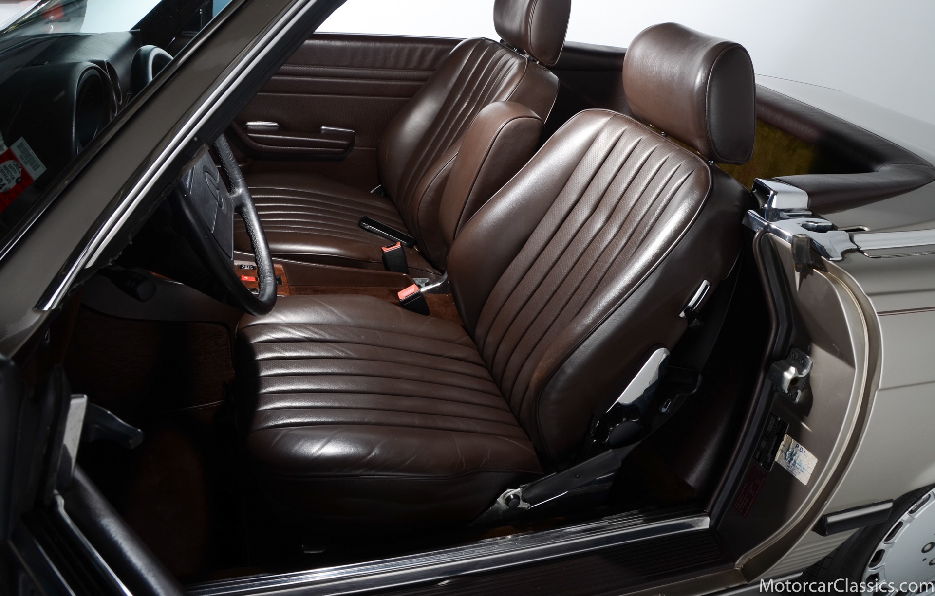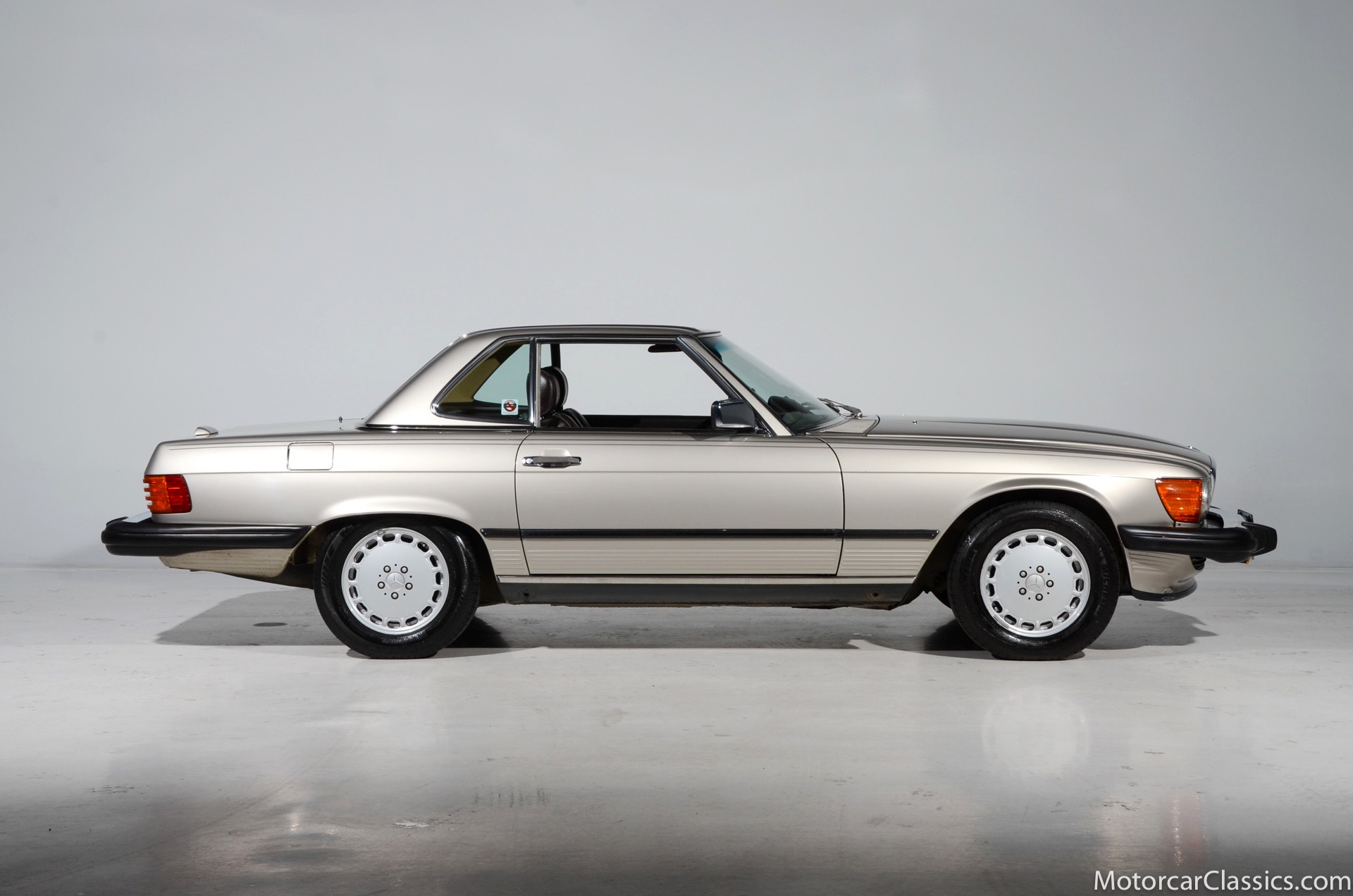 1988 Mercedes-Benz 560SL for sale! Motorcar Classics is proud to present this stunning 1988 Mercedes-Benz 560 SL featured in Smoke Silver Metallic with brown leather interior, matching brown convertible top, and Smoke Silver factory hard top. This timeless Mercedes convertible combines elegance and performance, featuring a powerful 5.0L V8 engine with 227 horsepower, paired with a smooth 4-speed automatic transmission. With only 26,422 miles on the odometer, this cherished and well-preserved beauty offers a rare opportunity to own a piece of automotive history. The car is completely original, right down to the Becker Grand Prix radio. The 560 SL represents the pinnacle of Mercedes-Benz engineering from the late 1980s, boasting a single overhead cam (SOHC) 16-valve engine that delivers both power and refinement. Its sleek design and convertible top make it perfect for both spirited drives and leisurely cruises. Don't miss this chance to own a meticulously maintained example of one of Mercedes-Benz's most iconic models, ready to turn heads and provide an unparalleled driving experience for years to come.