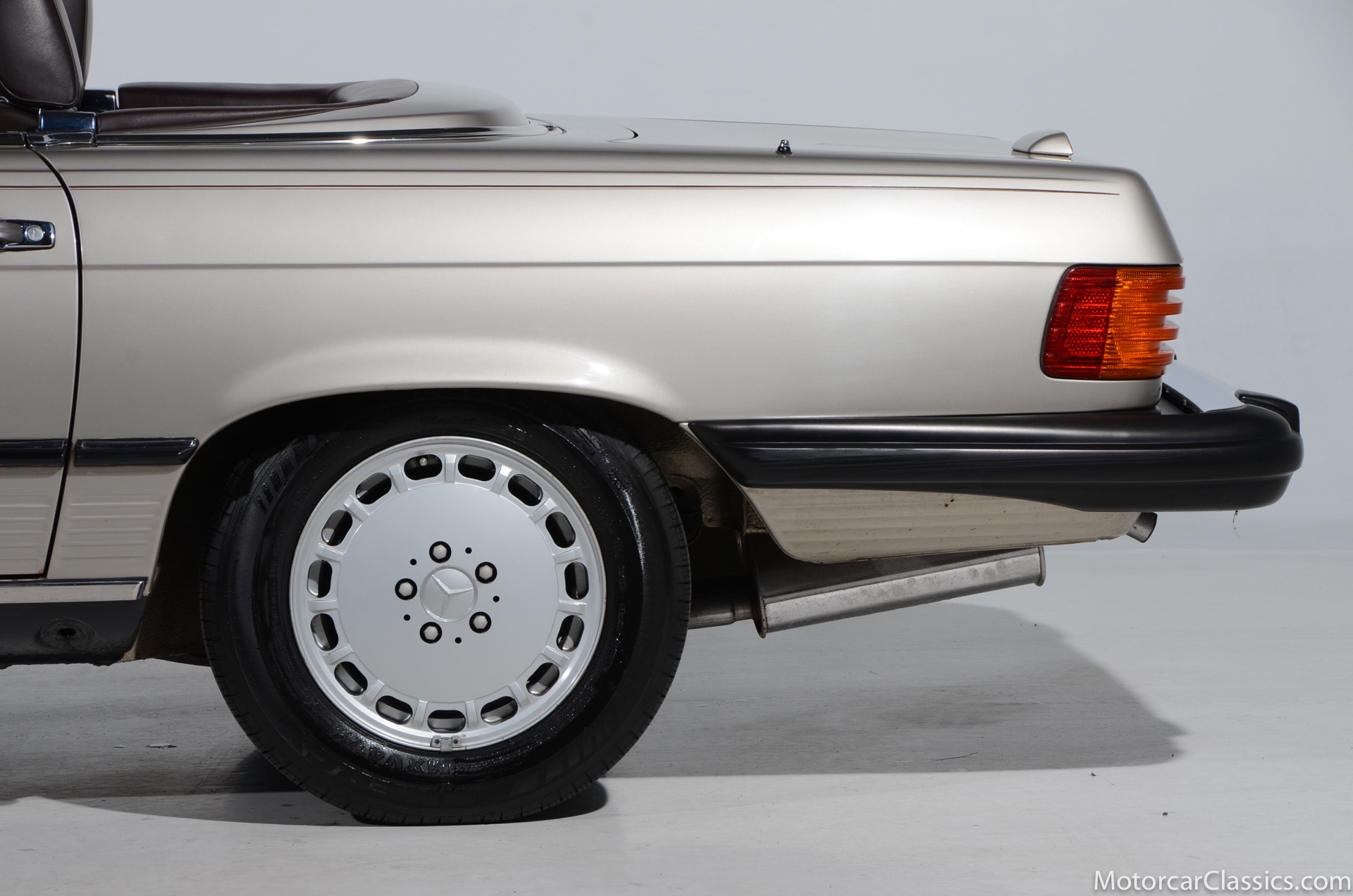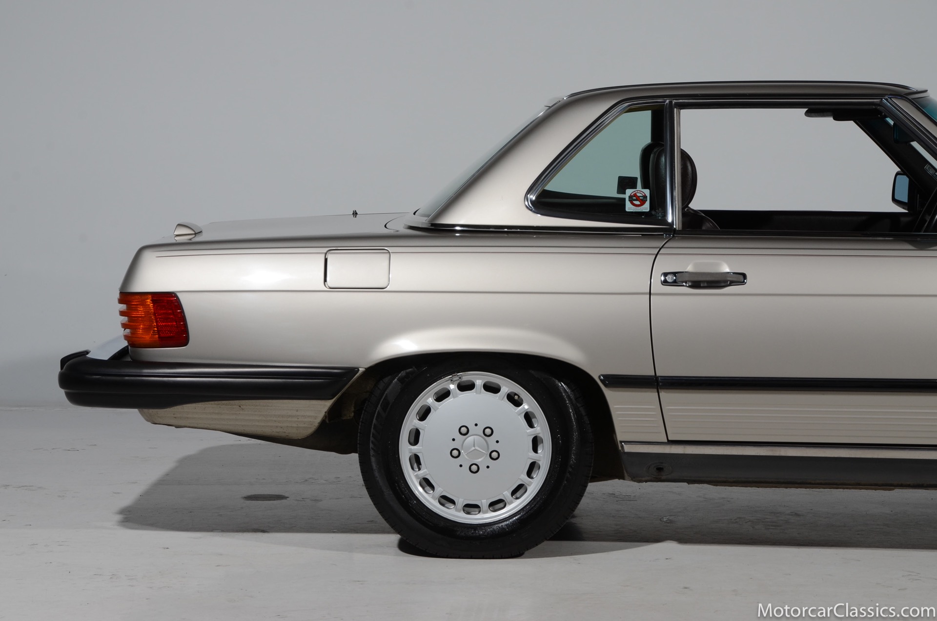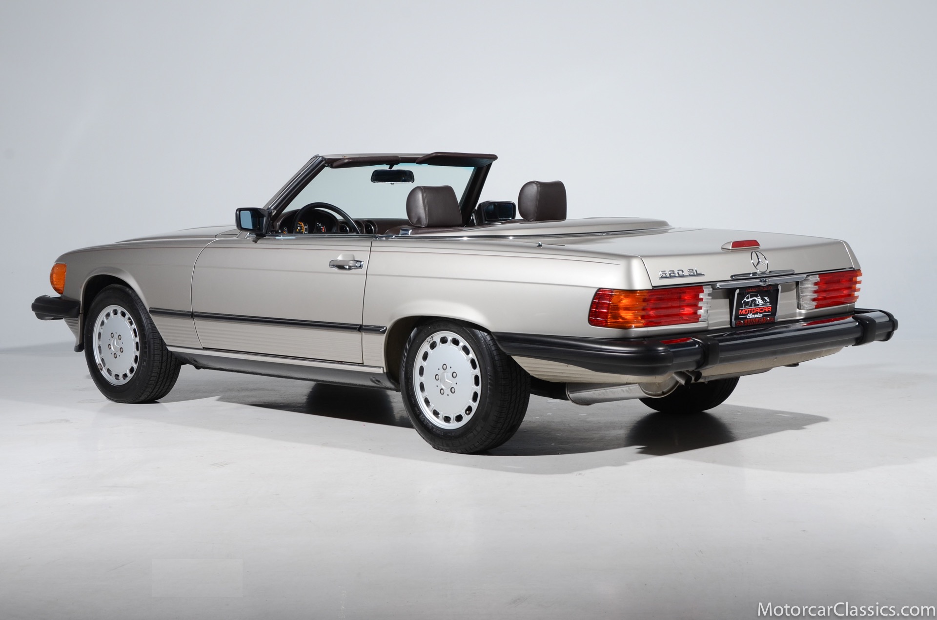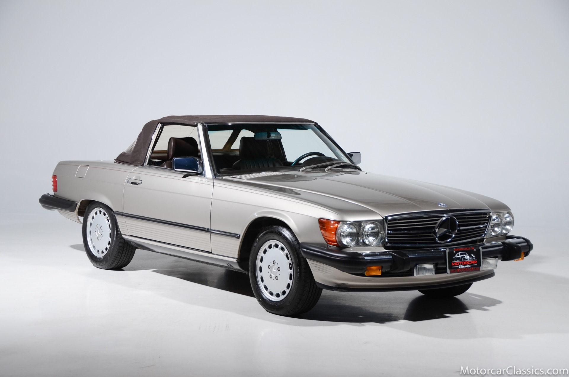 1988 Mercedes-Benz 560SL for sale! Motorcar Classics is proud to present this stunning 1988 Mercedes-Benz 560 SL featured in Smoke Silver Metallic with brown leather interior, matching brown convertible top, and Smoke Silver factory hard top. This timeless Mercedes convertible combines elegance and performance, featuring a powerful 5.0L V8 engine with 227 horsepower, paired with a smooth 4-speed automatic transmission. With only 26,422 miles on the odometer, this cherished and well-preserved beauty offers a rare opportunity to own a piece of automotive history. The car is completely original, right down to the Becker Grand Prix radio. The 560 SL represents the pinnacle of Mercedes-Benz engineering from the late 1980s, boasting a single overhead cam (SOHC) 16-valve engine that delivers both power and refinement. Its sleek design and convertible top make it perfect for both spirited drives and leisurely cruises. Don't miss this chance to own a meticulously maintained example of one of Mercedes-Benz's most iconic models, ready to turn heads and provide an unparalleled driving experience for years to come.