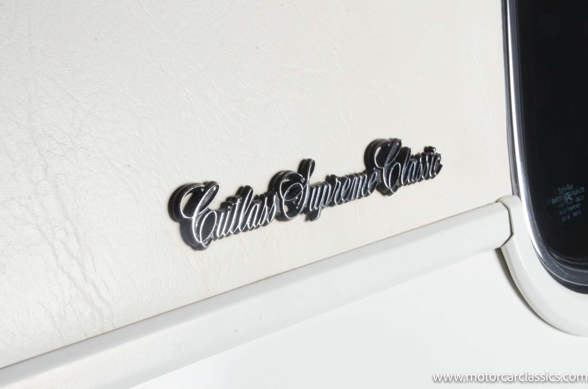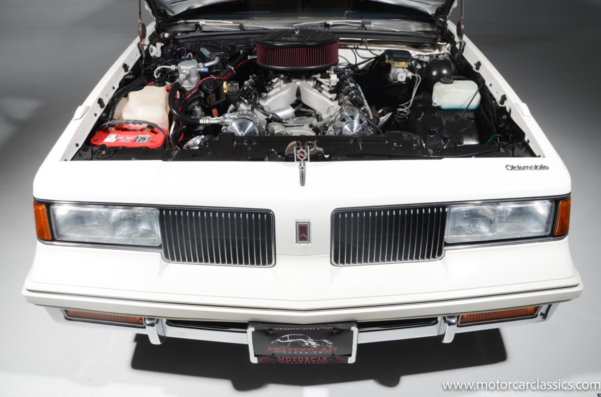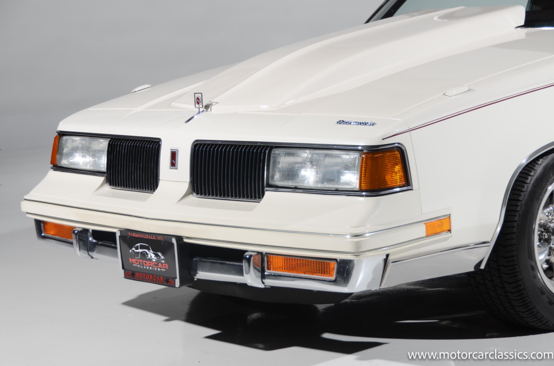 1988 Oldsmobile Cutlass for sale! Motorcar Classics is pleased to present this remarkably well-preserved 1988 Oldsmobile Cutlass Supreme Brougham, boasting an immaculate white exterior finish and luxurious burgundy interior. With only 9,167 original miles and only 400 miles on the drive train, this classic has been meticulously maintained, showcasing minimal signs of aging. The Brougham package adds plush seating and premium trim, further enhancing the interior's opulence.