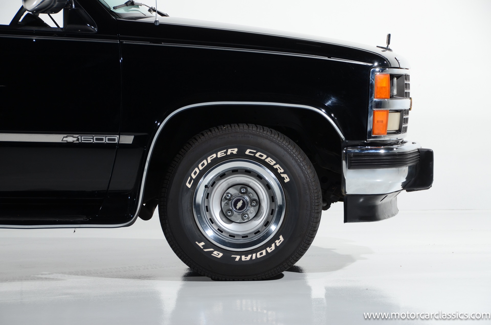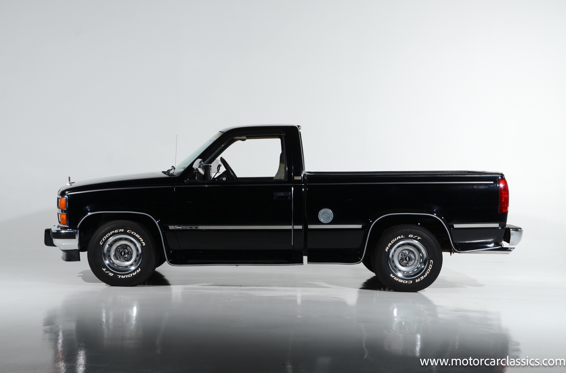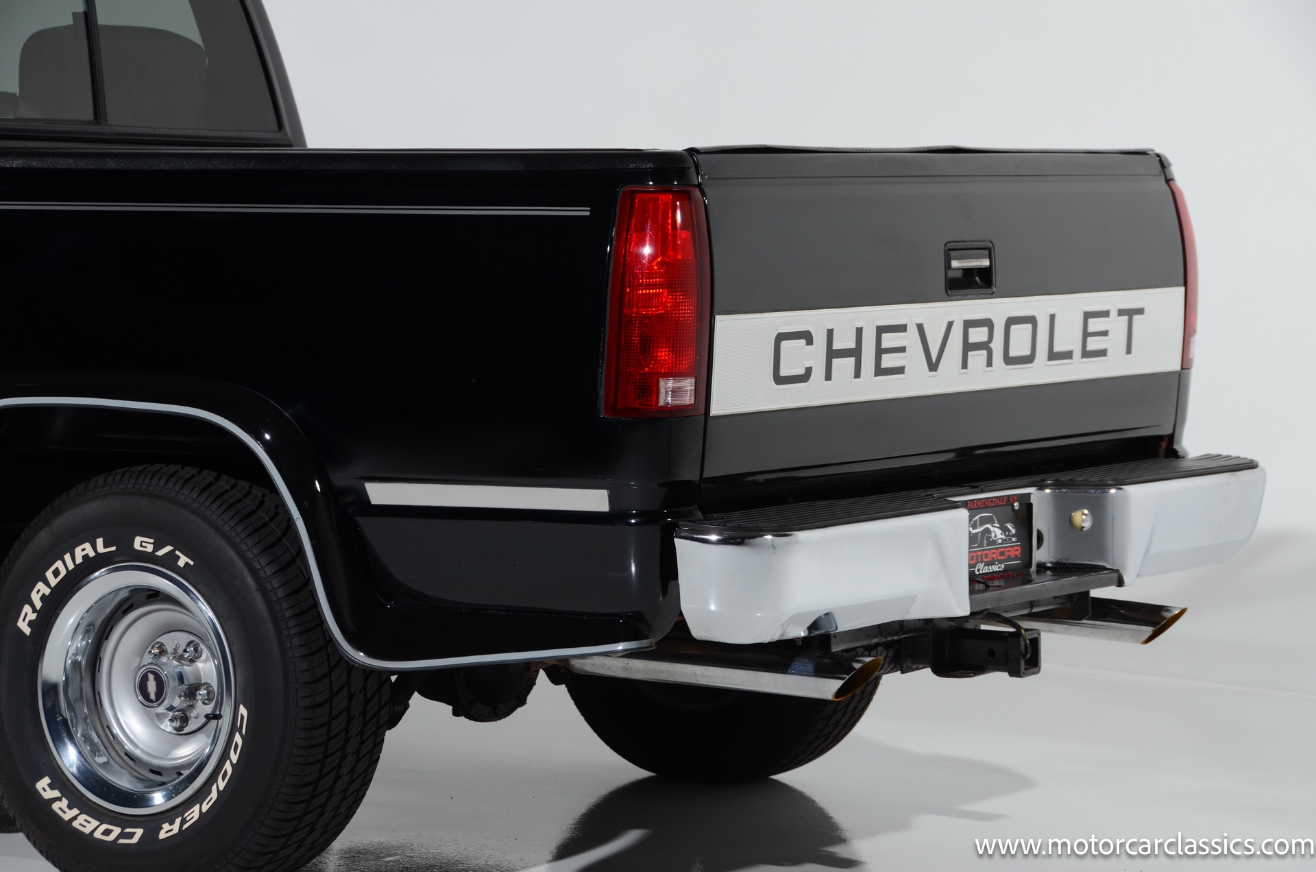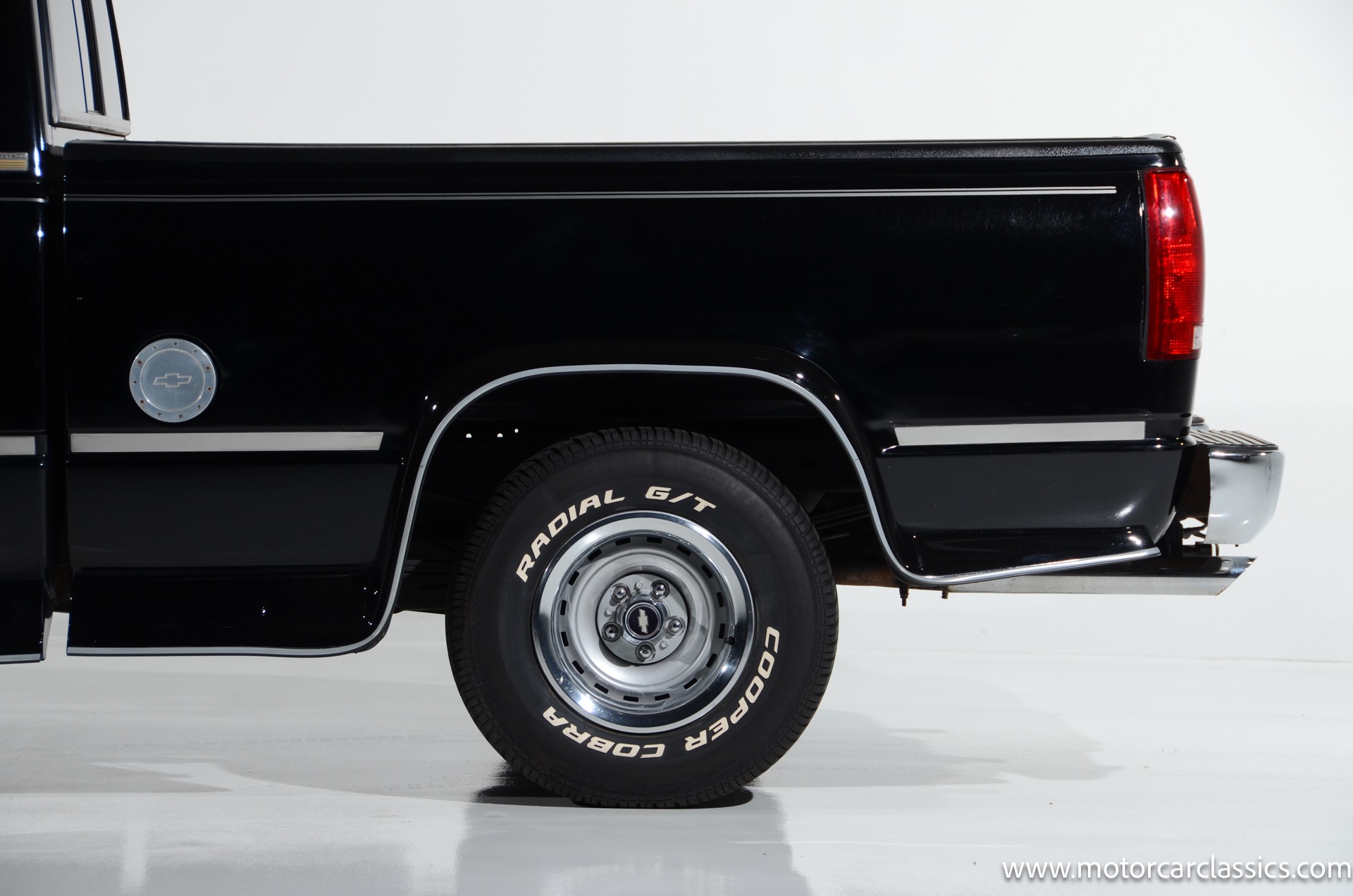 1989 Chevrolet 1500 Silverado for sale! Motorcar Classics is pleased to offer this handsome 1989 Chevrolet C1500 Series Silverado. This timeless pickup truck comes in a gleaming black exterior that exudes power and sophistication, perfectly complemented by a luxurious beige velour interior. Under the hood, you'll find a robust 5.7L V8 OHV 16V FI engine, paired with a smooth automatic transmission, offering the perfect blend of power and drivability. With 112,349 miles on the odometer, this Silverado has been well-maintained and proven its reliability while still having plenty of life left to offer. The engine was also recently rebuilt. As a rear-wheel drive model, this C1500 Silverado delivers the classic truck driving experience that enthusiasts crave. The spacious pickup bed provides ample cargo space for all your hauling needs, making this vehicle as practical as it is stylish.