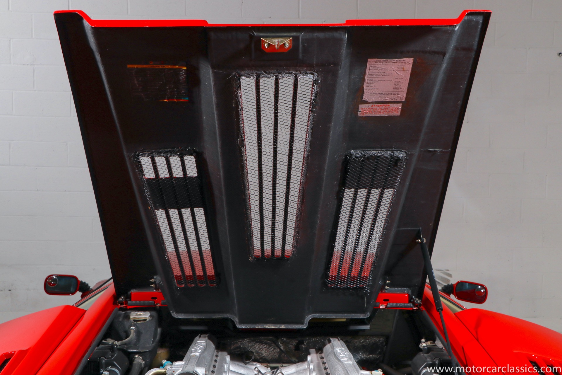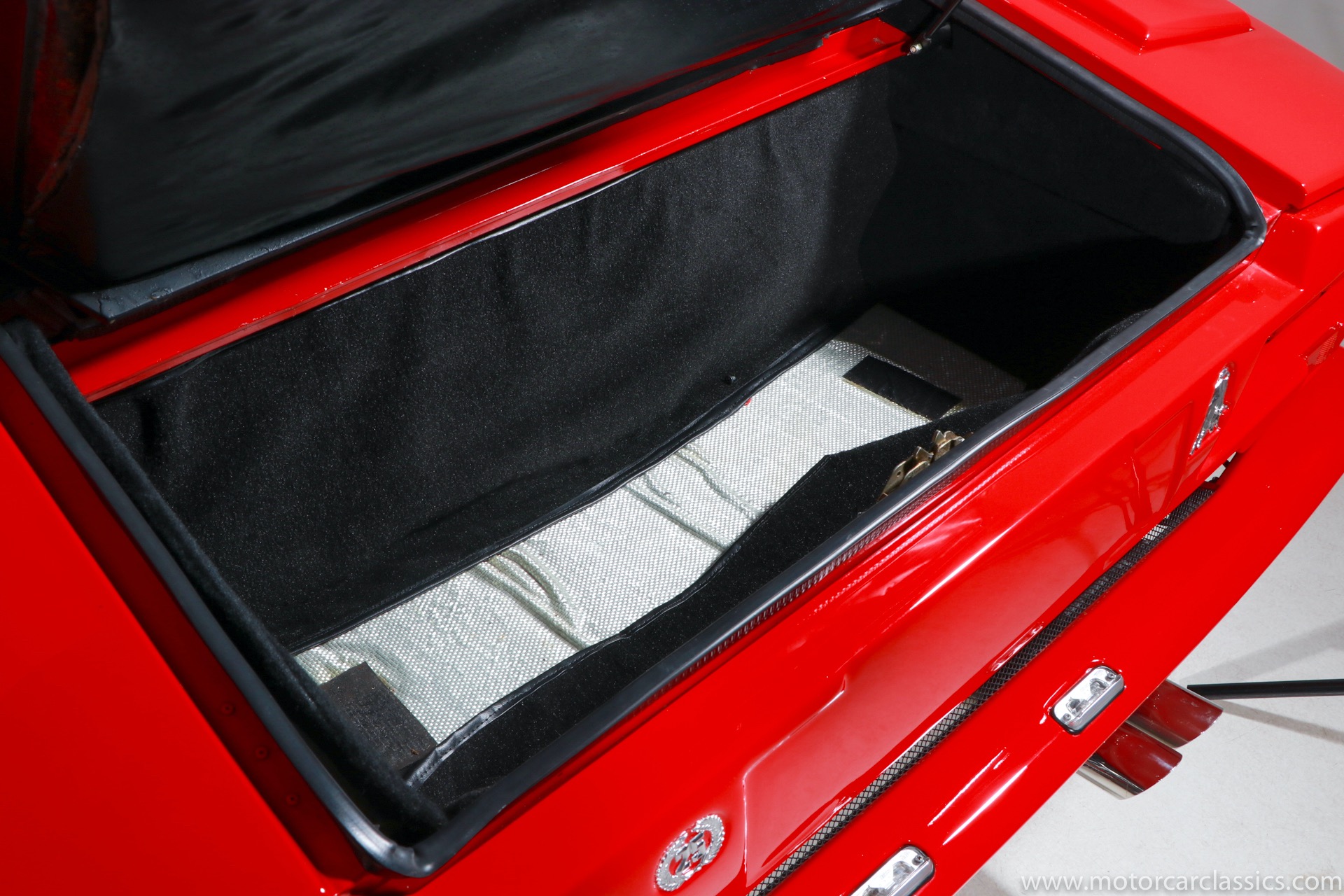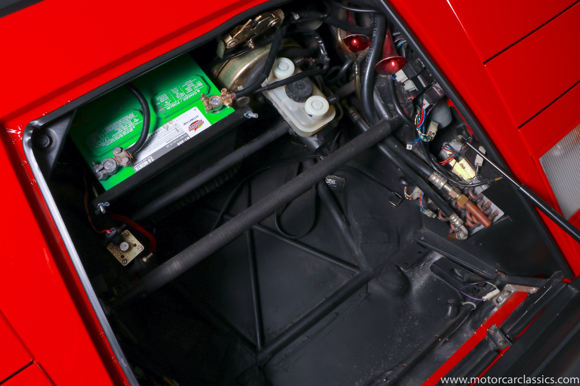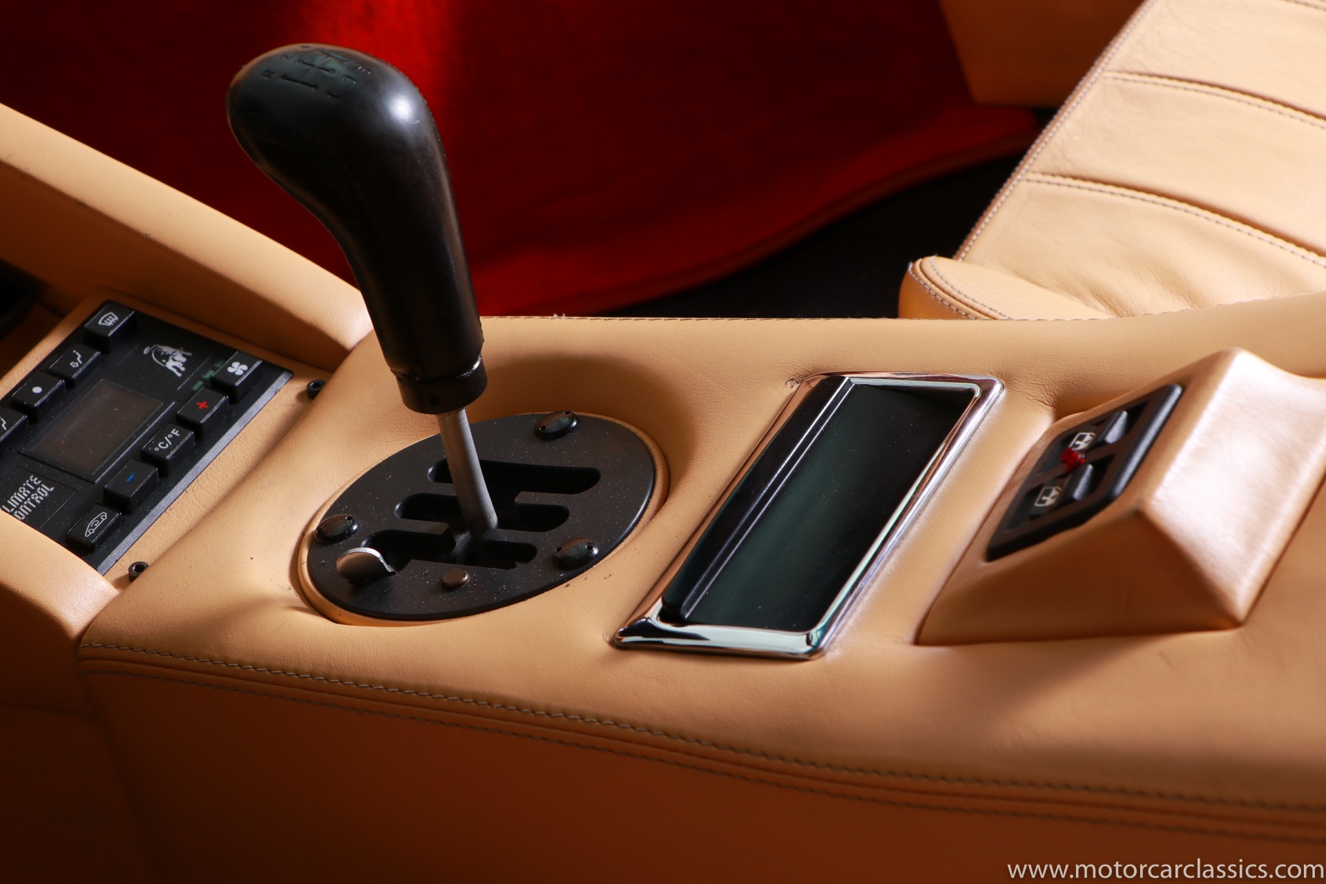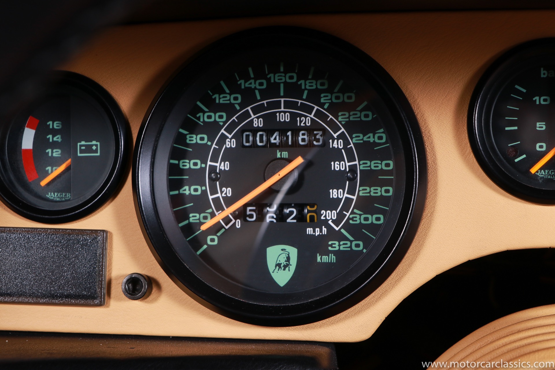 1989 Lamborghini Countach for sale! Motorcar Classics is thrilled to present this stunning 1989 Lamborghini 25th Anniversary Edition Countach featured in red with tan leather interior. For Lamborghinis 25th anniversary, what would be the final and most highly developed edition of the Countach was built in a run of just 657 examples. The car gained new elegance with the addition of a front air dam and completely redesigned engine and cooling intakes that were now integrated into the body lines. New lower body work integrated with the fender flares and blended with a redesigned rear bumper. Repositioning the radiators and using larger fans improved cooling, which was among the most crucial of a wide range of internal improvements. And while the driveline was unchanged, new OZ modular wheels were used and new Pirelli Zero Asymmetrical tires replaced the old P7s. The model is powered by Lamborghinis beautiful 455 HP V-12 with a 5-speed manual gearbox. Ours is a one-owner car from new that has covered only 2,599 miles. It features the optional large rear wing. The car has all-original paint and is in museum condition throughout. Service records are included.