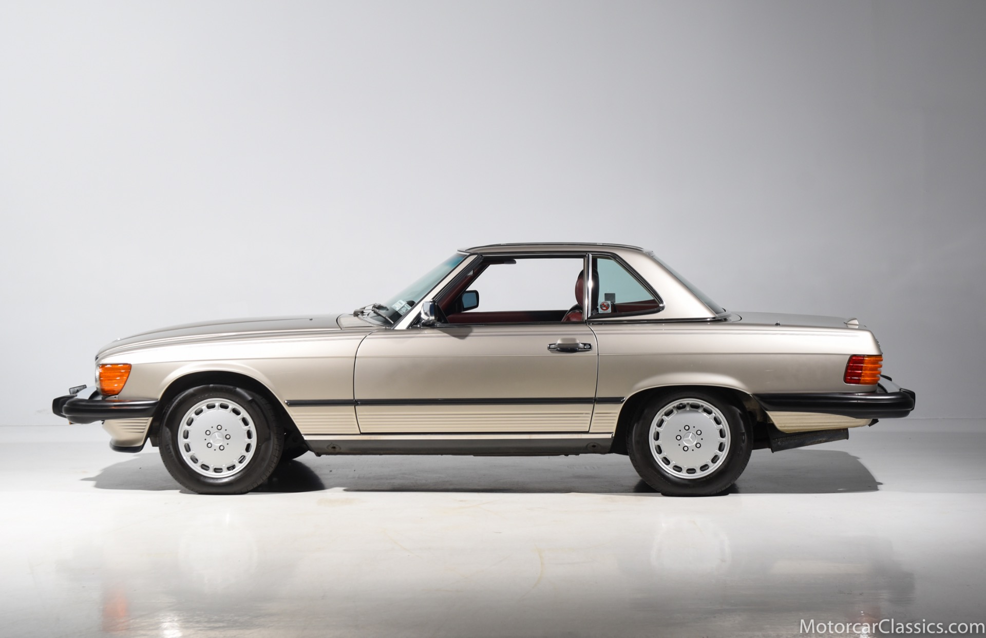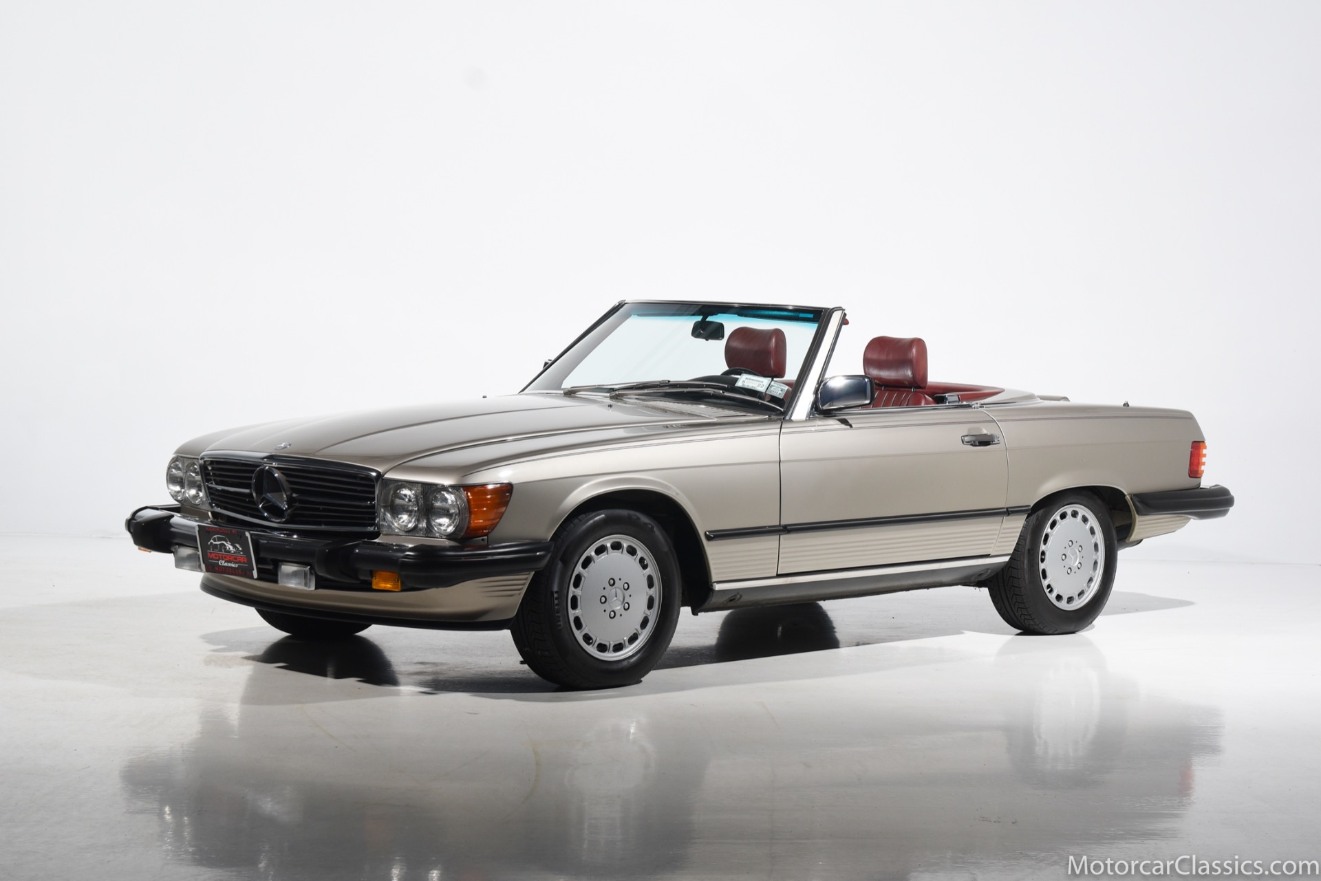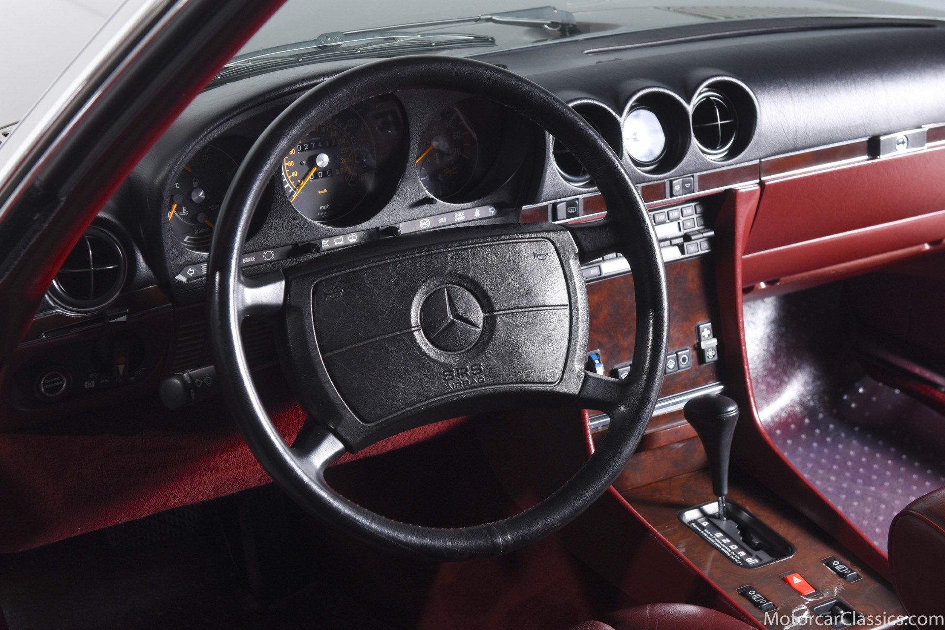 1989 Mercedes-Benz 560SL for sale! Motorcar Classics is proud to offer this stunning 1989 Mercedes 560SL featured in rare Smoke Silver with Medium Red leather interior. This car was in the hands of its original owner until 2013 at which time she passed. The car then went to her sister, who owned it until 2018. The car has covered only 27,412 original miles in total and comes to us from a local Mercedes enthusiast. The black convertible top is said to be original and is in excellent condition. All the electronics and mechanicals appear to be in order as well. The burled walnut wood is free of any cracks or major imperfections. The dashboard is also crack free. The color matched factory hardtop is included along with the removal tools. The car has been meticulously maintained from new and reported service includes the replacement of the valve cover gaskets. The AC has been converted to R134. The 1989 model was the last year for the classic R107 Mercedes roadster, and this car is about as original as can be, in all respects, paint and interior included, making it an investment-grade example. This is a great opportunity.