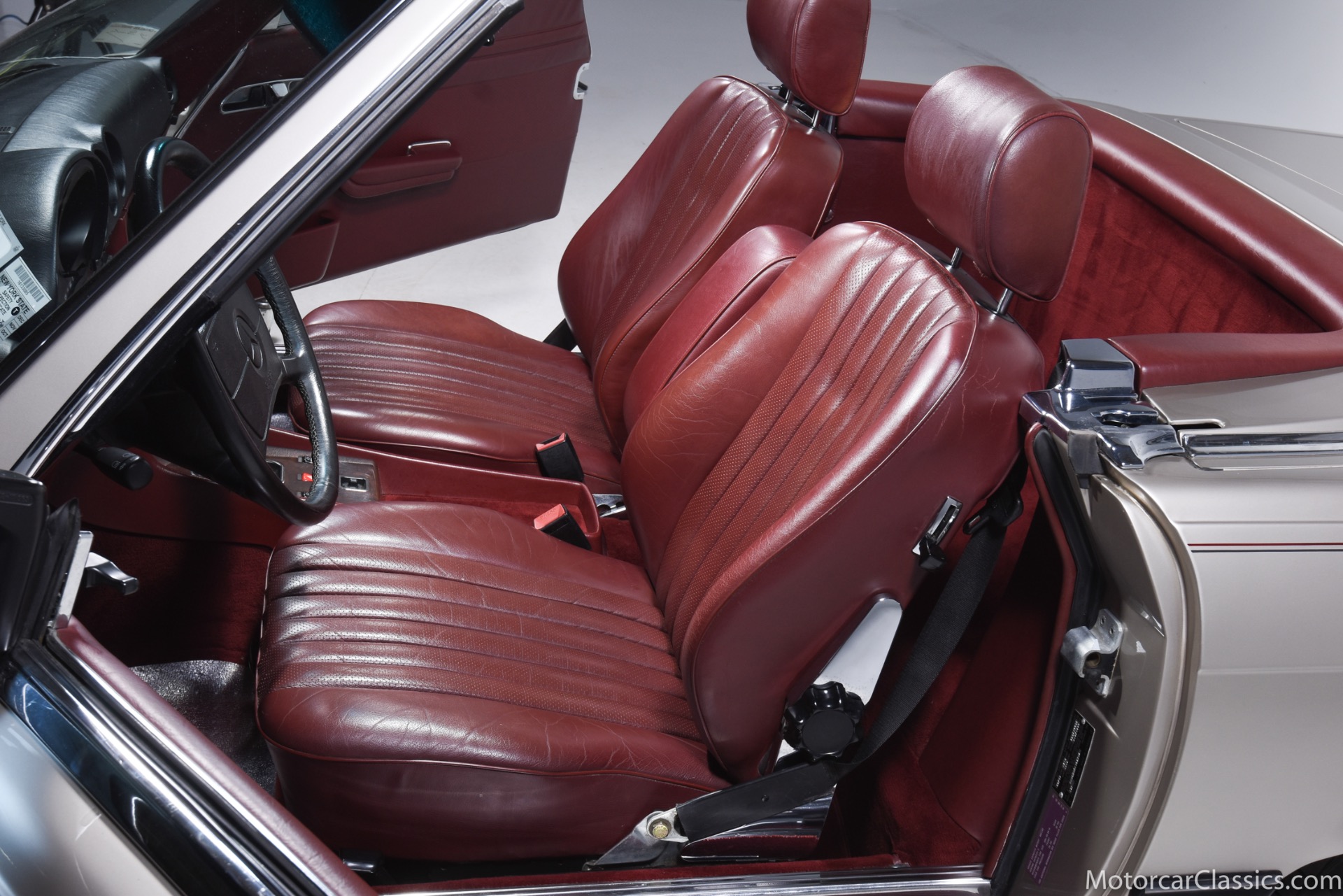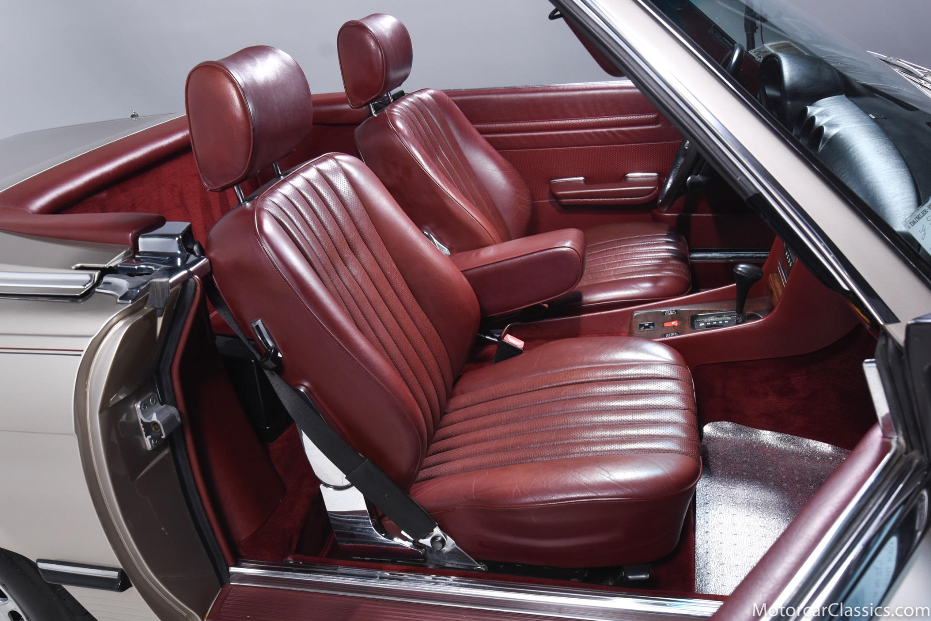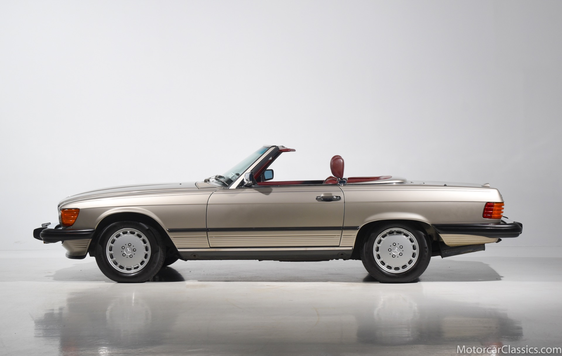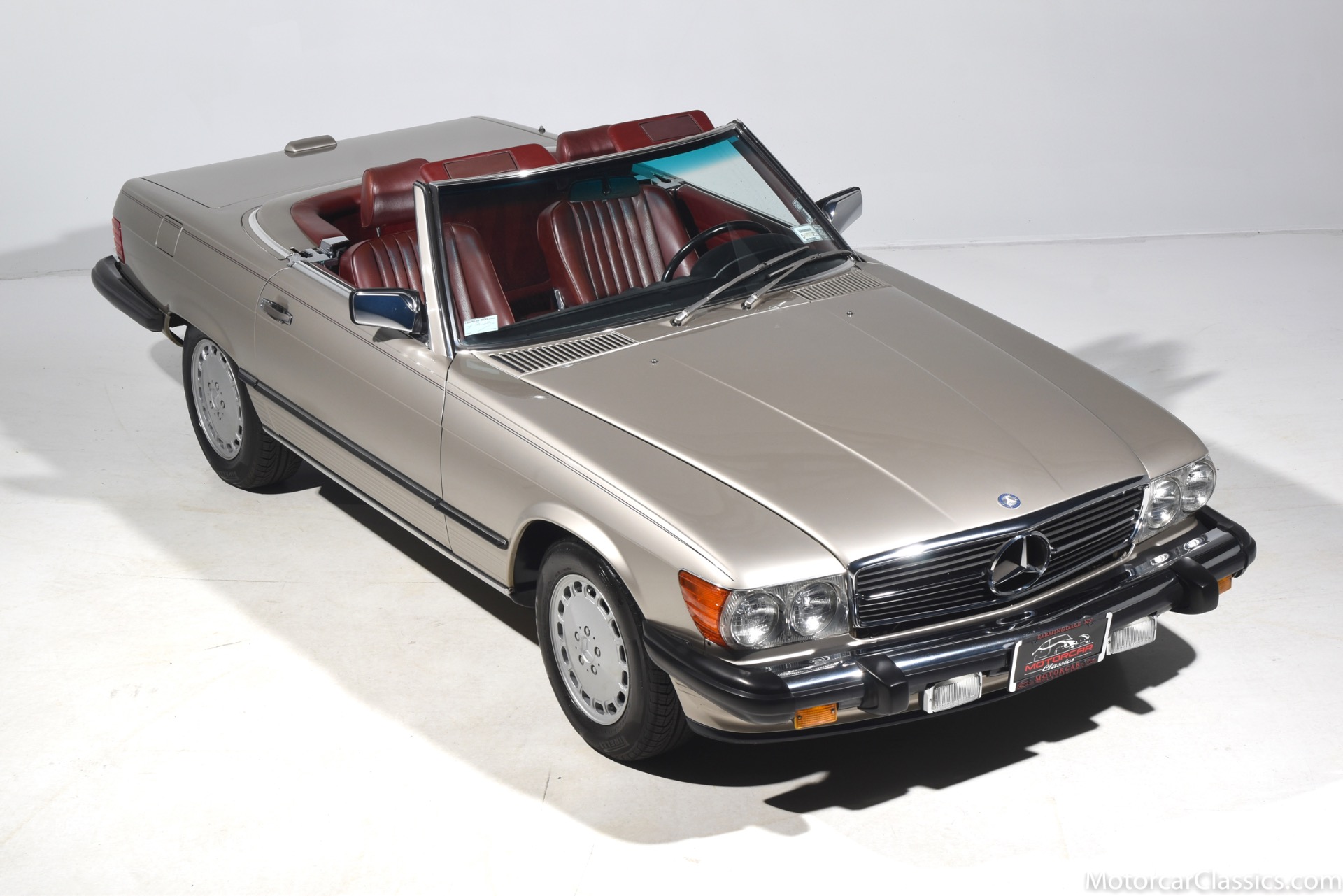 1989 Mercedes-Benz 560SL for sale! Motorcar Classics is proud to offer this stunning 1989 Mercedes 560SL featured in rare Smoke Silver with Medium Red leather interior. This car was in the hands of its original owner until 2013 at which time she passed. The car then went to her sister, who owned it until 2018. The car has covered only 27,412 original miles in total and comes to us from a local Mercedes enthusiast. The black convertible top is said to be original and is in excellent condition. All the electronics and mechanicals appear to be in order as well. The burled walnut wood is free of any cracks or major imperfections. The dashboard is also crack free. The color matched factory hardtop is included along with the removal tools. The car has been meticulously maintained from new and reported service includes the replacement of the valve cover gaskets. The AC has been converted to R134. The 1989 model was the last year for the classic R107 Mercedes roadster, and this car is about as original as can be, in all respects, paint and interior included, making it an investment-grade example. This is a great opportunity.