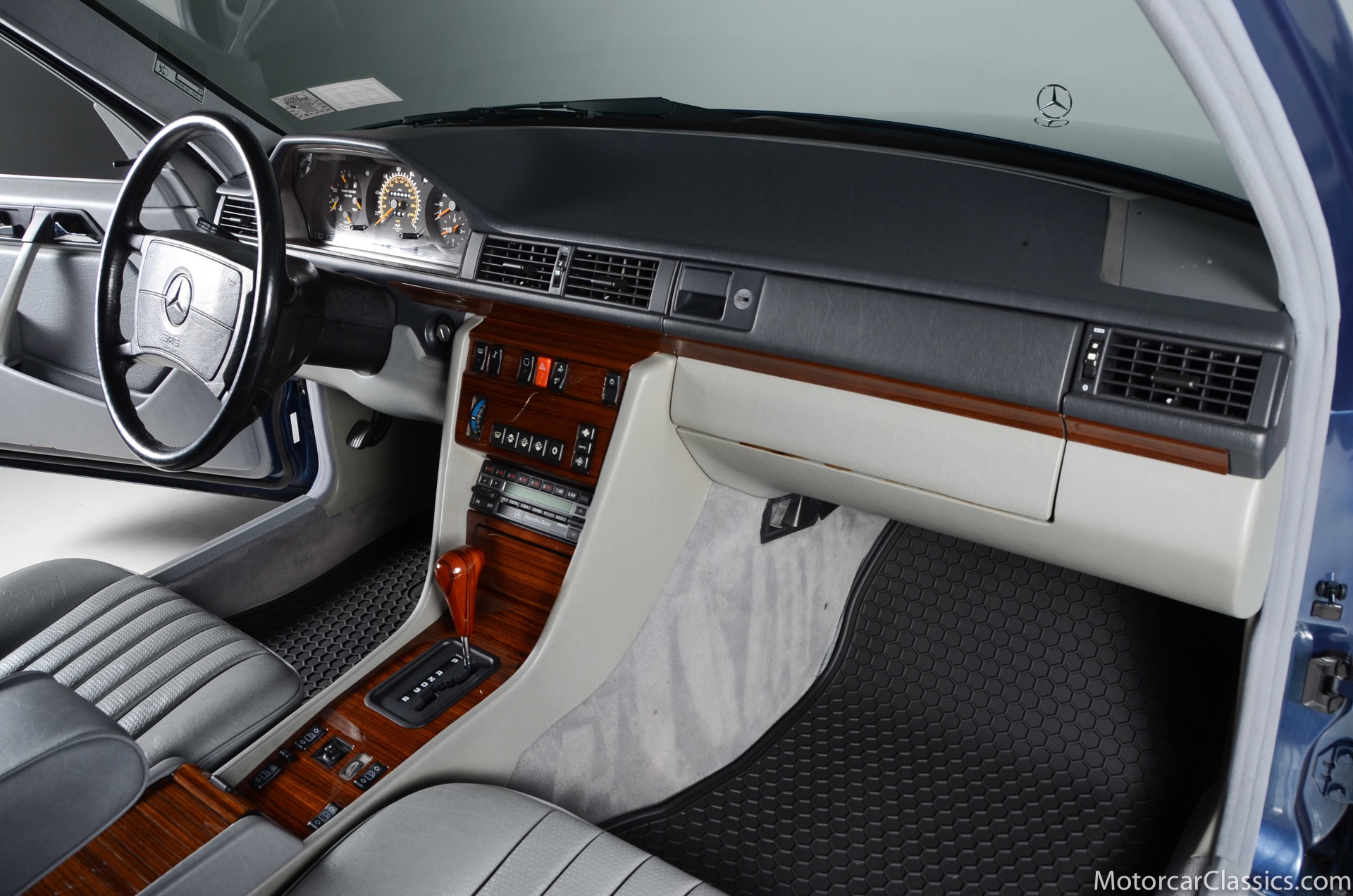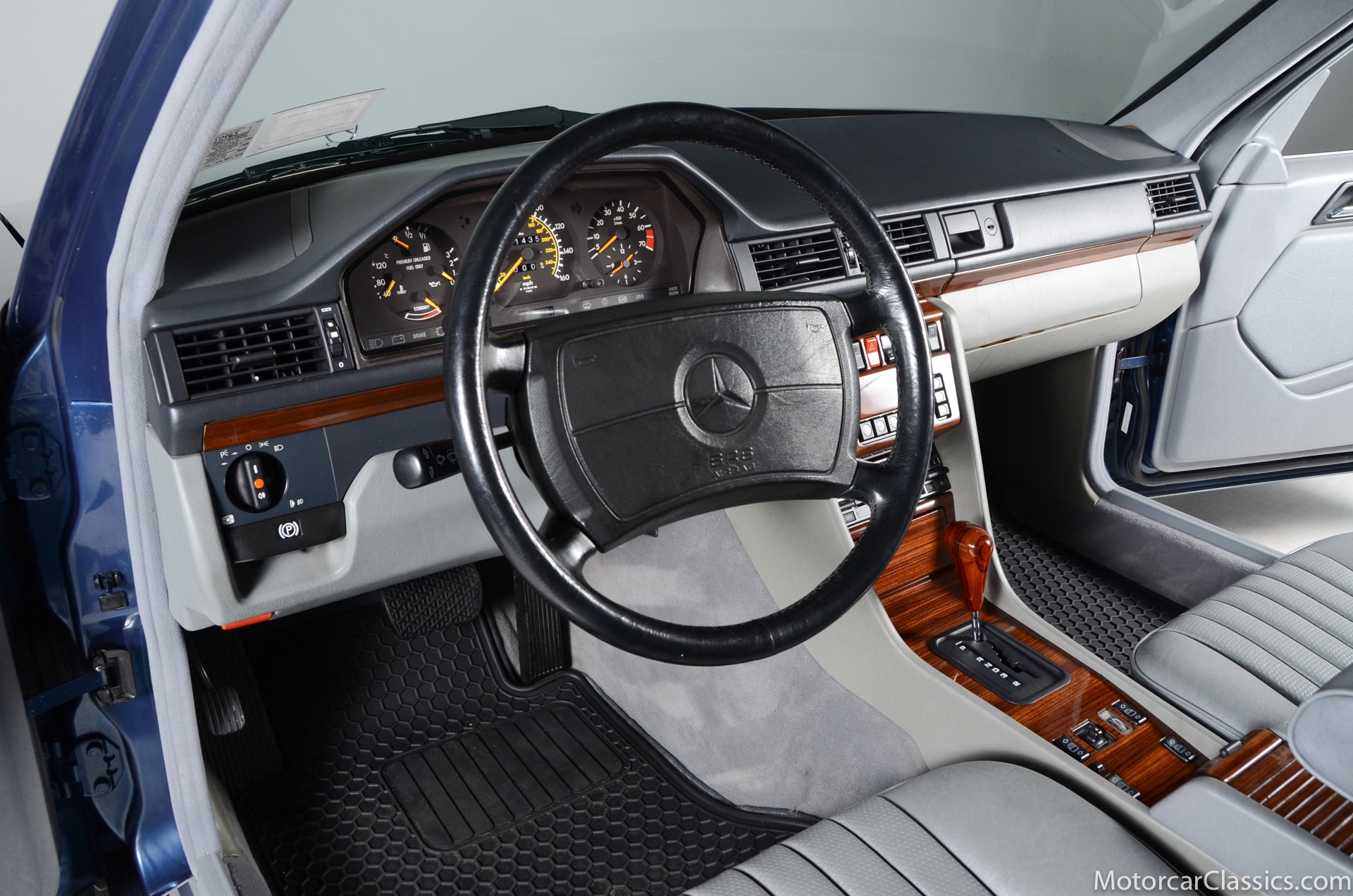 1990 Mercedes-Benz 300E for sale! Motorcar Classics is pleased to present the epitome of German engineering and timeless luxury with this 1990 Mercedes-Benz 300E 2.6 . This classic sedan, powered by a smooth 2.6-liter inline-six engine producing 158 horsepower, offers the perfect balance of performance and efficiency. Its sleek blue exterior showcases Mercedes-Benz's iconic design philosophy, emphasizing both function and elegance. Step inside to discover a meticulously crafted interior featuring wood trim, leather accents, and uniquely patterned seats that create an atmosphere of understated opulence. With 151,433 miles on the odometer, this 300E 2.6 has proven its legendary Mercedes-Benz reliability. The four-speed automatic transmission ensures smooth power delivery, making this classic ideal for both city driving and highway cruising. This 1990 Mercedes-Benz 300E 2.6 represents a golden era of automotive craftsmanship, offering a driving experience that combines luxury, performance, and enduring style. It's an excellent choice for enthusiasts and collectors who appreciate the lasting quality of a true Mercedes-Benz classic. Your inspection is invited.