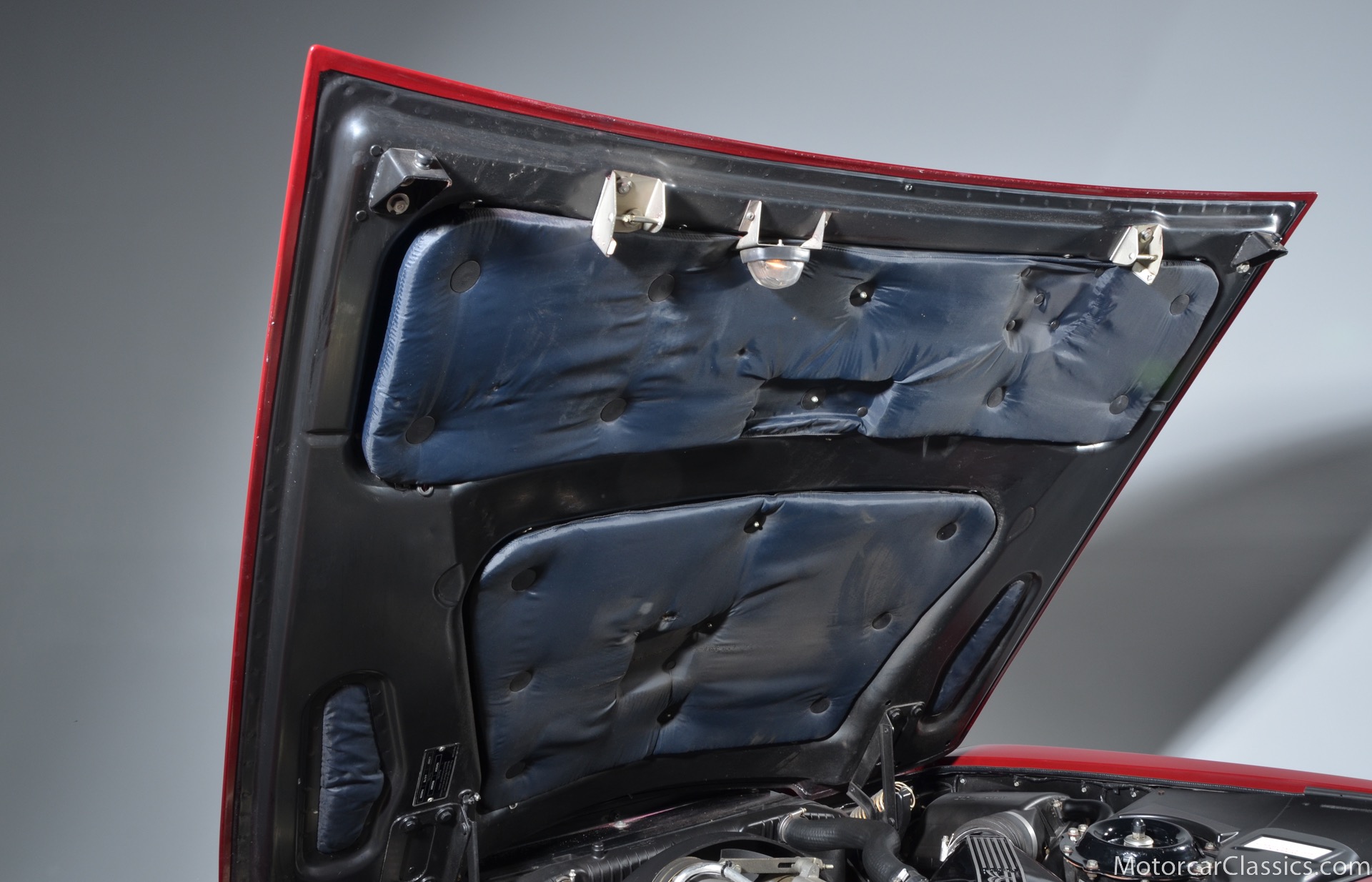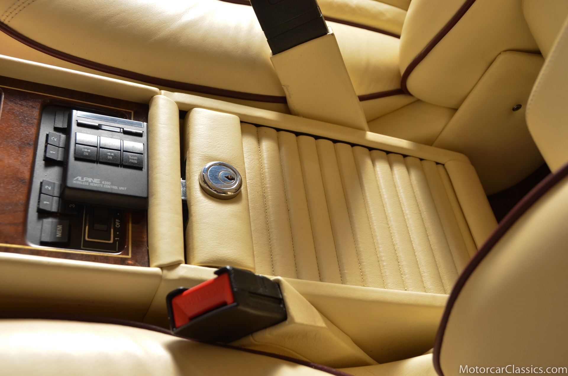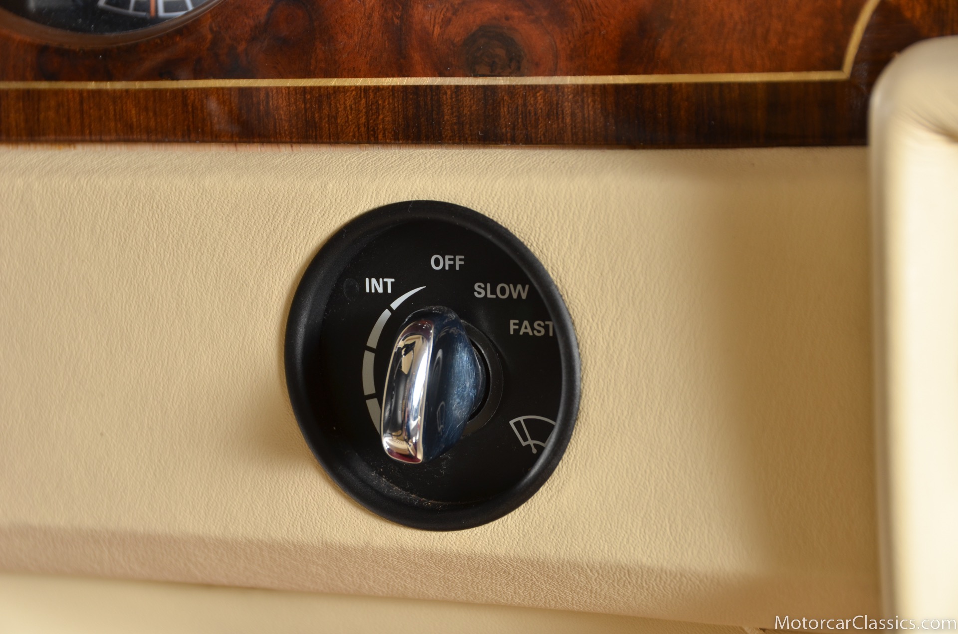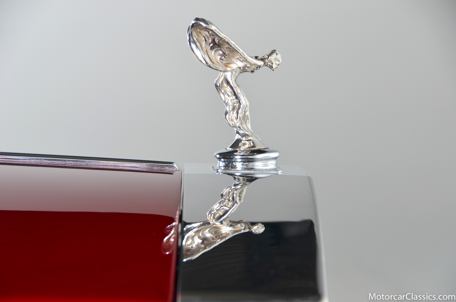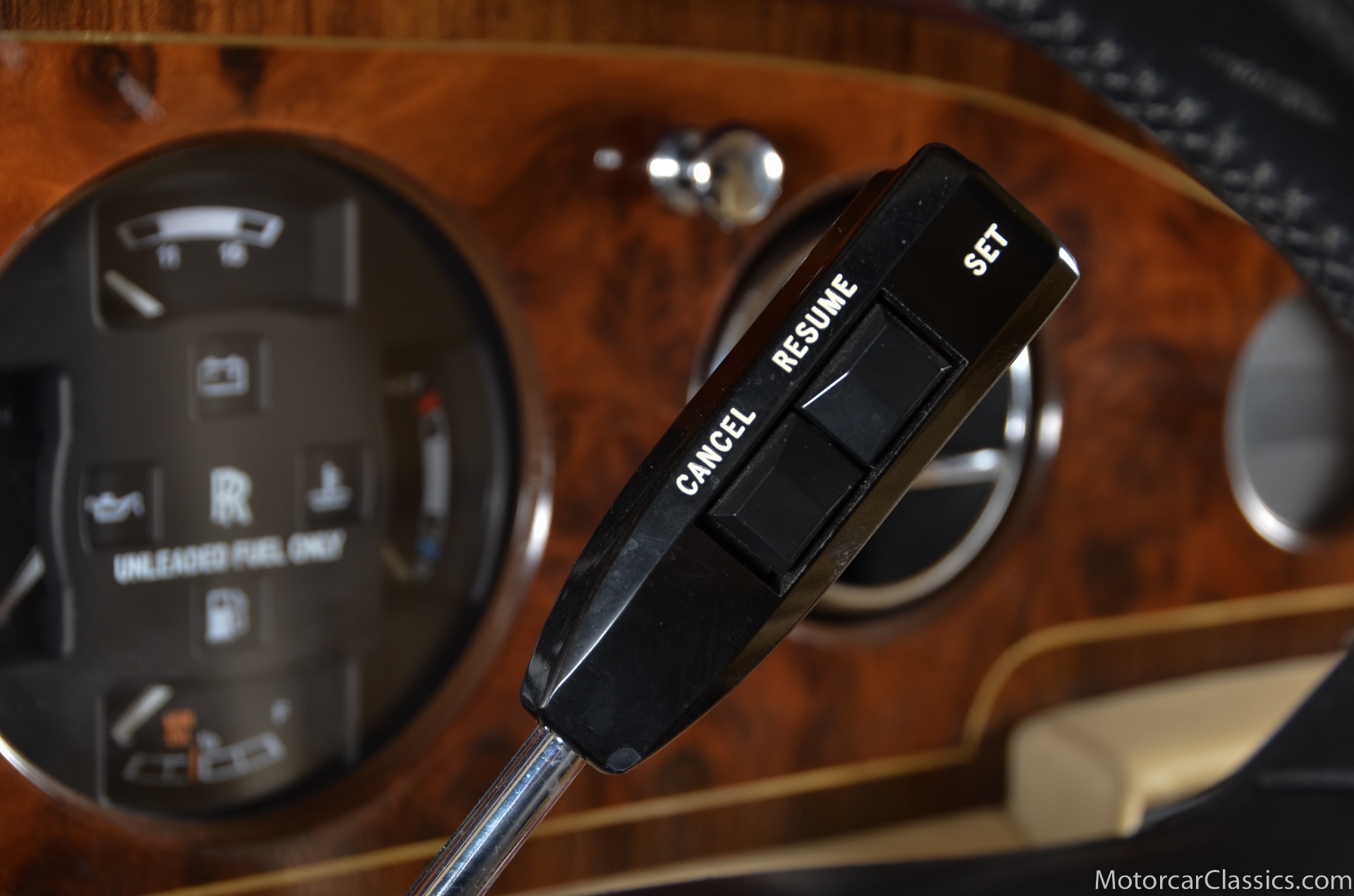 All of these MPW edition cars are finished in Bordeaux red without the Everflex roof. The bumpers and headlight surrounds are color-coded, polished stainless steel bumper inserts, stainless steel body trim running the entire length of the body sills and continuing around both wheel arches and along the lower portions of the rear wings, twin magnolia coachlines, chrome badge bar mounted on the front bumper, unique badge on the boot lid proclaiming the car's coachbuilding lineage, specially selected American burr walnut veneers, and complemented by silver inlays and Rolls-Royce monograms.
