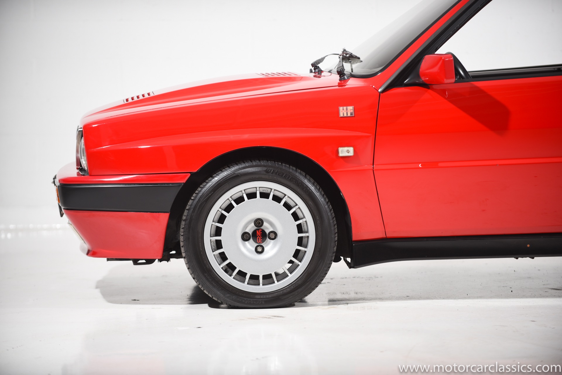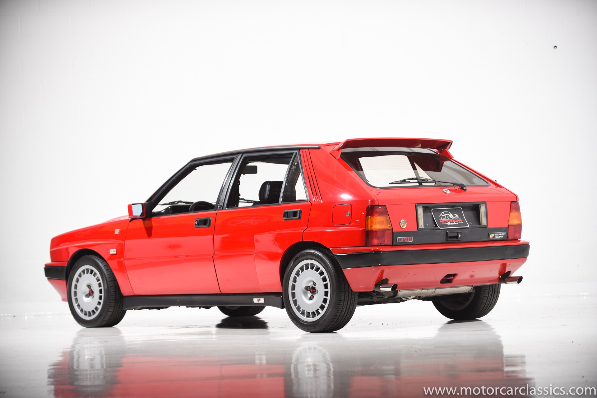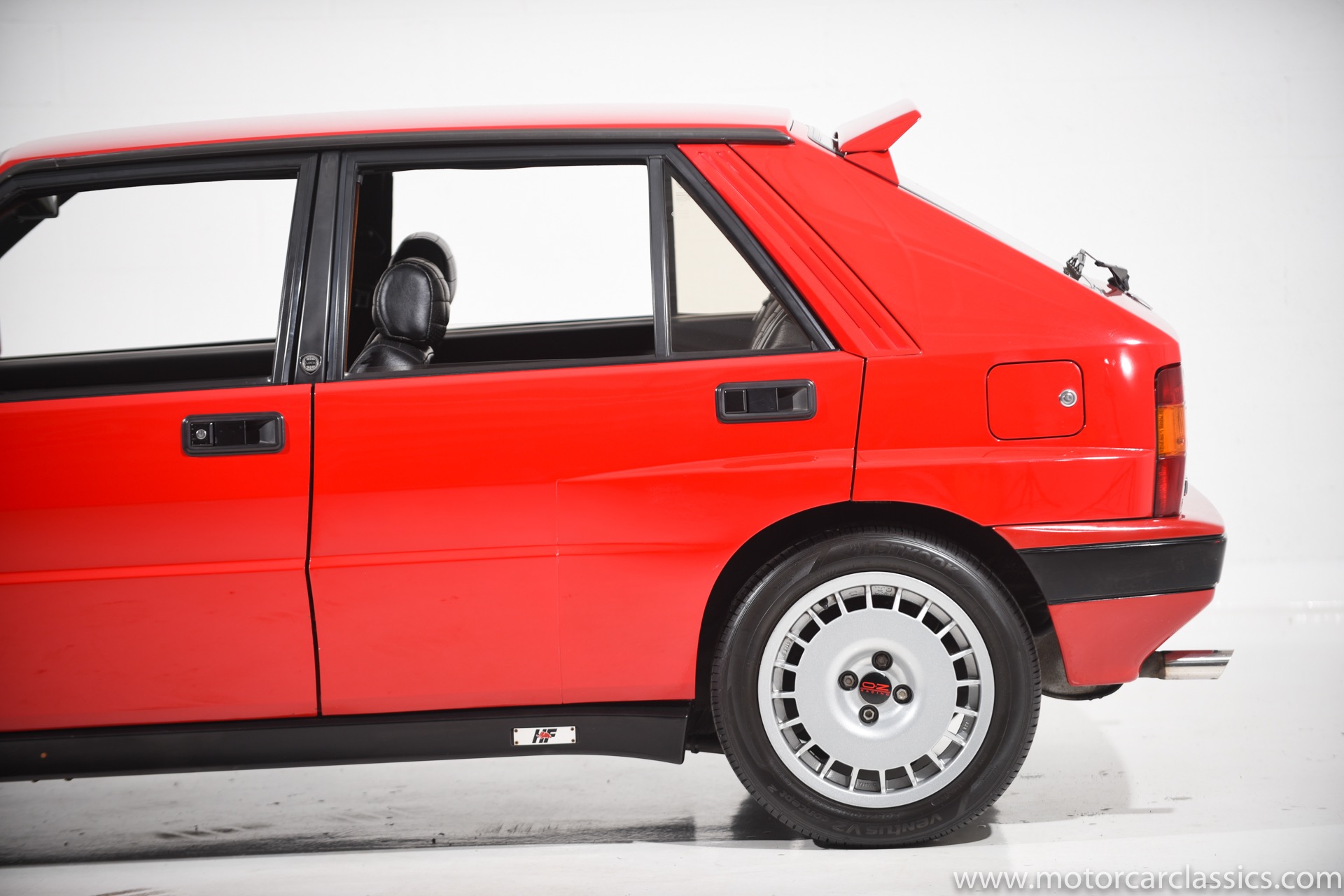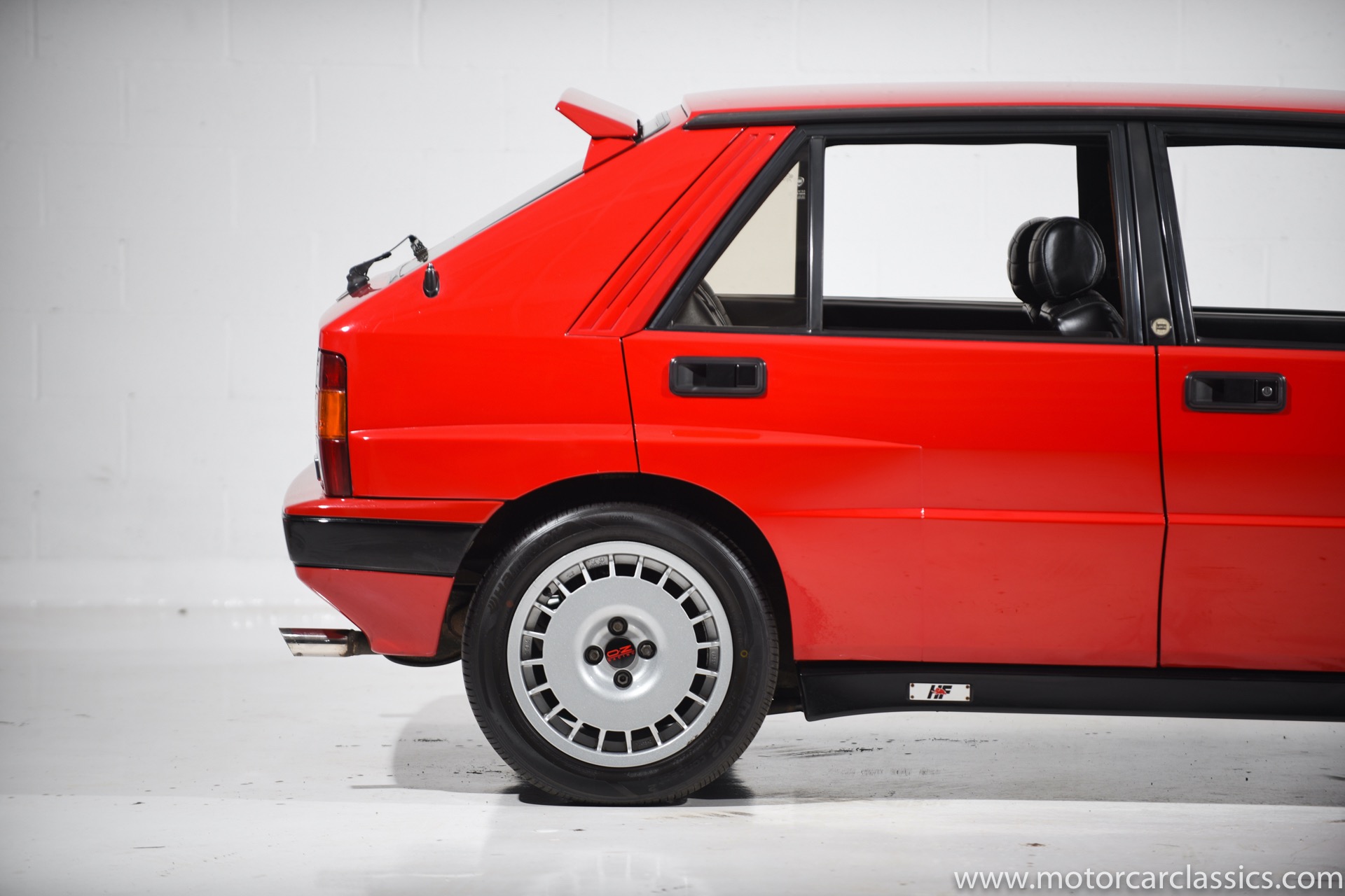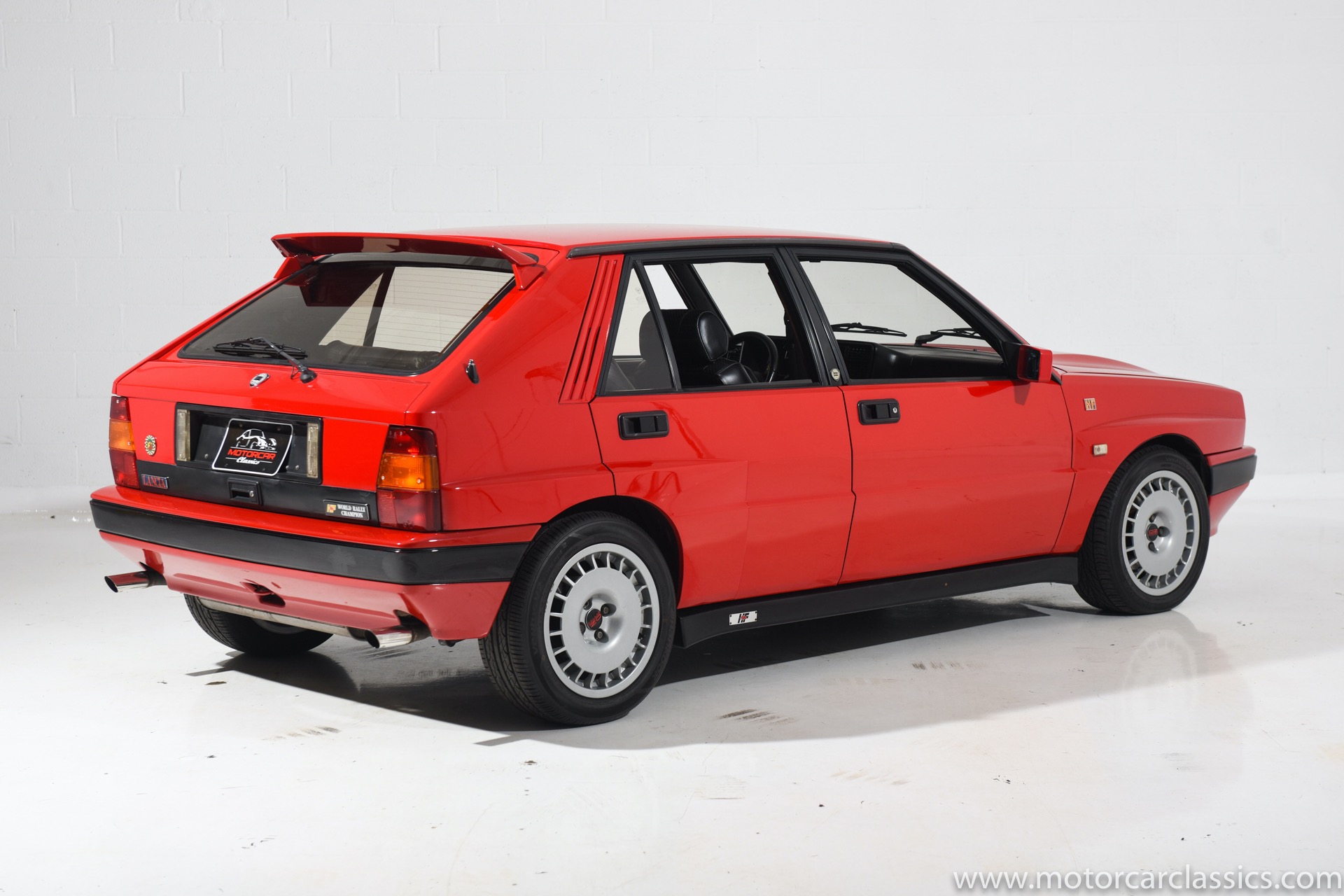1991 Lancia Delta HF Integrale 16V for sale! Motorcar Classics is proud to present this very rare 1991 Lancia Delta HF Integrale 16V featured in red with black leather interior. A road-going descendant of Lancias world rally championship dominating cars, the Delta HF Integrale 16v features all-wheel drive, a front mounted engine and a Giugiaro-styled 5 door hatchback body style. The 2 litre engine is a turbocharged, double overhead camshaft, 4 cylinder unit that has an output of 207 bhp at 5750 rpm, and maximum torque of 220 lbft at 3500 rpm. The engine powers the wheels via a 5- speed manual transmission. Our superb example was originally delivered in Canada and imported to the US in 2010. It remains all original and has never been modified, rallied or raced. The car has only 35,523 miles. The Carfax reports a mileage inconsistency the result of the original odometer reading in kilometers. A documented change of the instrument shows the odometer being set to the correct reading, in miles, and the original instrument is included. This is surely one of the finest surviving original examples.