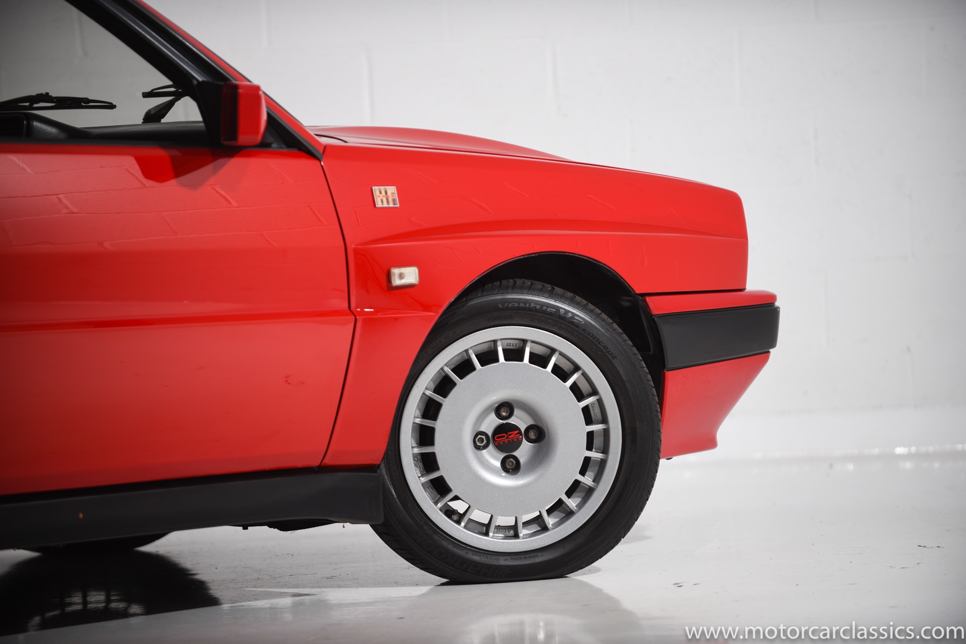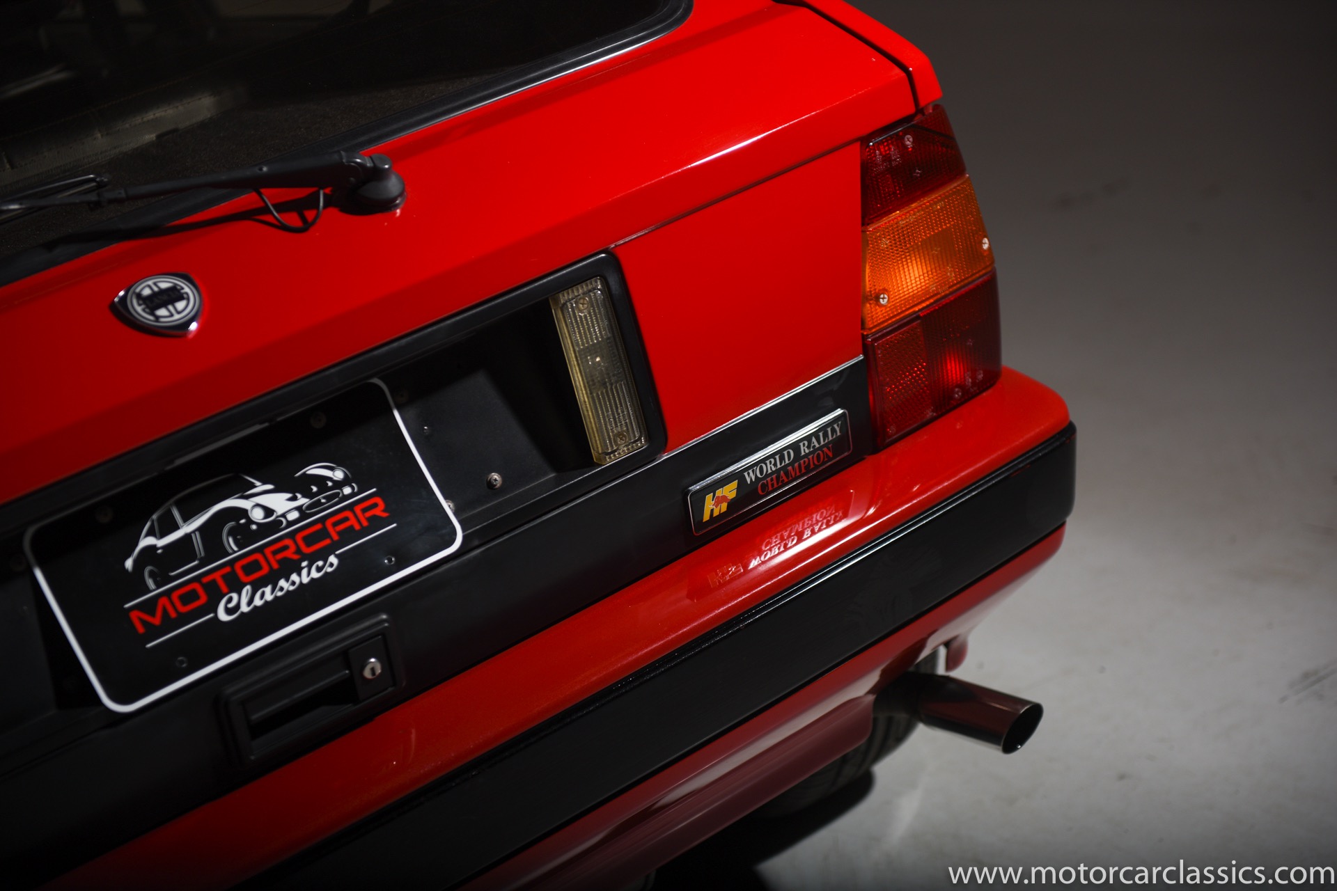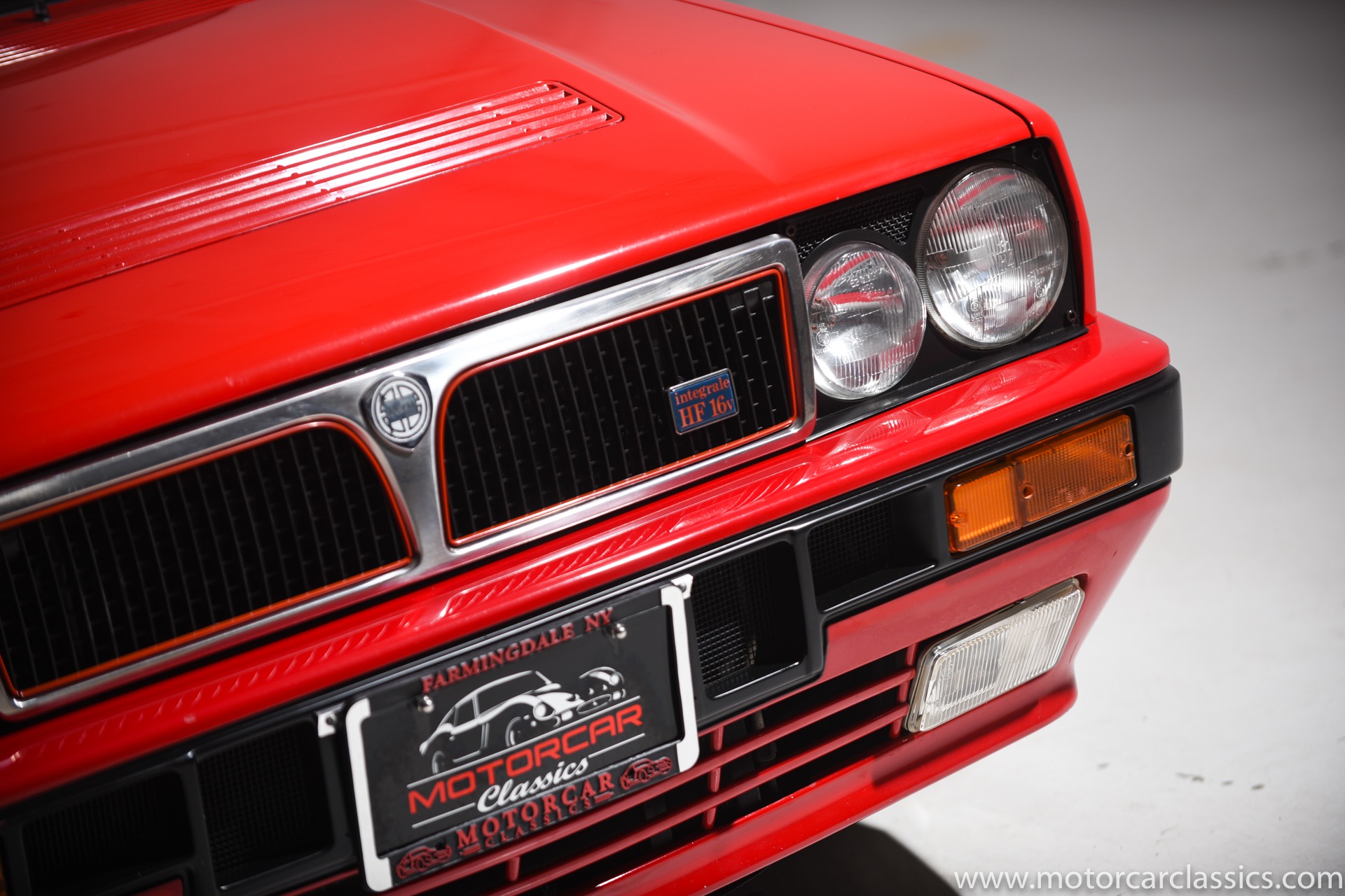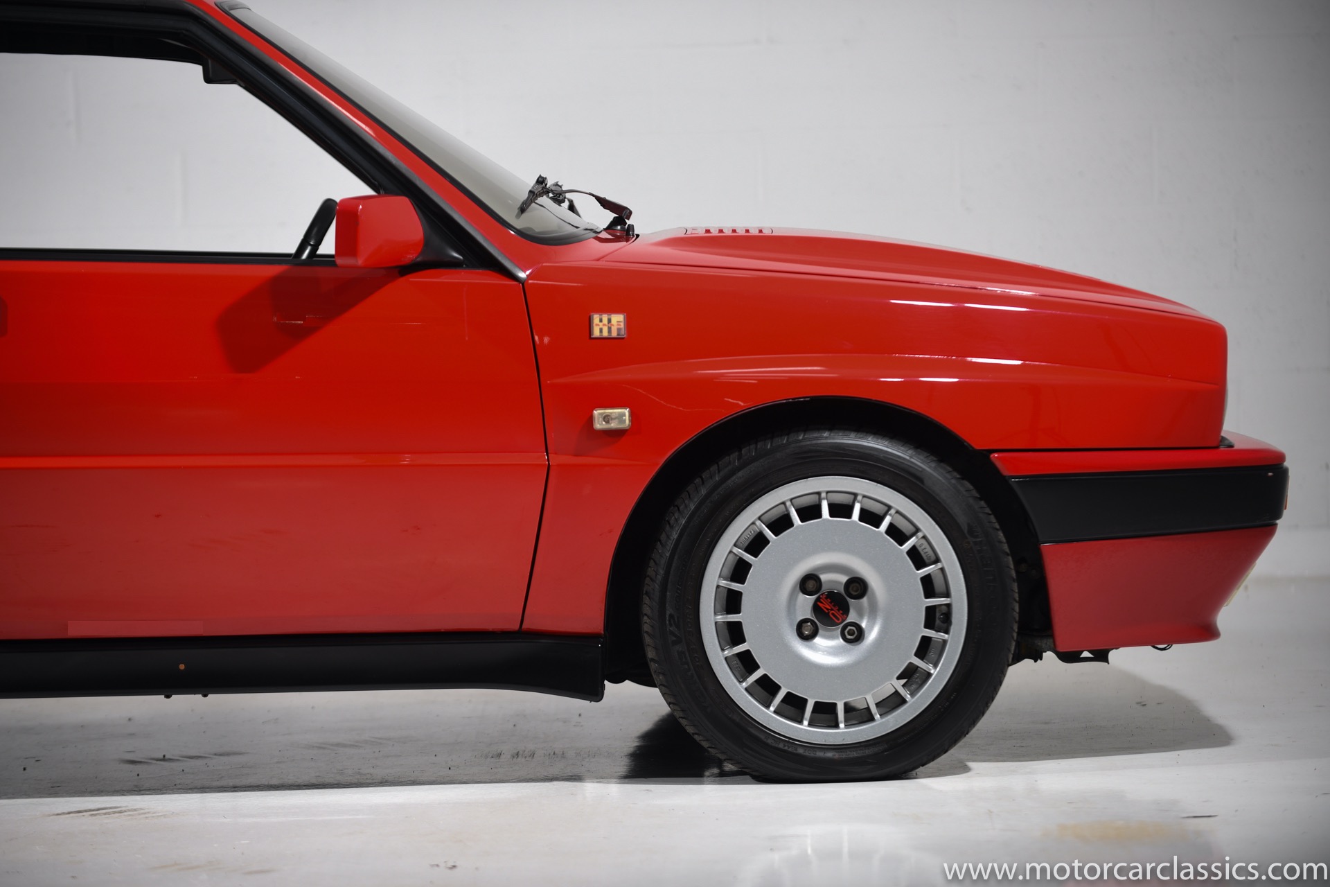 1991 Lancia Delta HF Integrale 16V for sale! Motorcar Classics is proud to present this very rare 1991 Lancia Delta HF Integrale 16V featured in red with black leather interior. A road-going descendant of Lancias world rally championship dominating cars, the Delta HF Integrale 16v features all-wheel drive, a front mounted engine and a Giugiaro-styled 5 door hatchback body style. The 2 litre engine is a turbocharged, double overhead camshaft, 4 cylinder unit that has an output of 207 bhp at 5750 rpm, and maximum torque of 220 lbft at 3500 rpm. The engine powers the wheels via a 5- speed manual transmission. Our superb example was originally delivered in Canada and imported to the US in 2010. It remains all original and has never been modified, rallied or raced. The car has only 35,523 miles. The Carfax reports a mileage inconsistency the result of the original odometer reading in kilometers. A documented change of the instrument shows the odometer being set to the correct reading, in miles, and the original instrument is included. This is surely one of the finest surviving original examples.