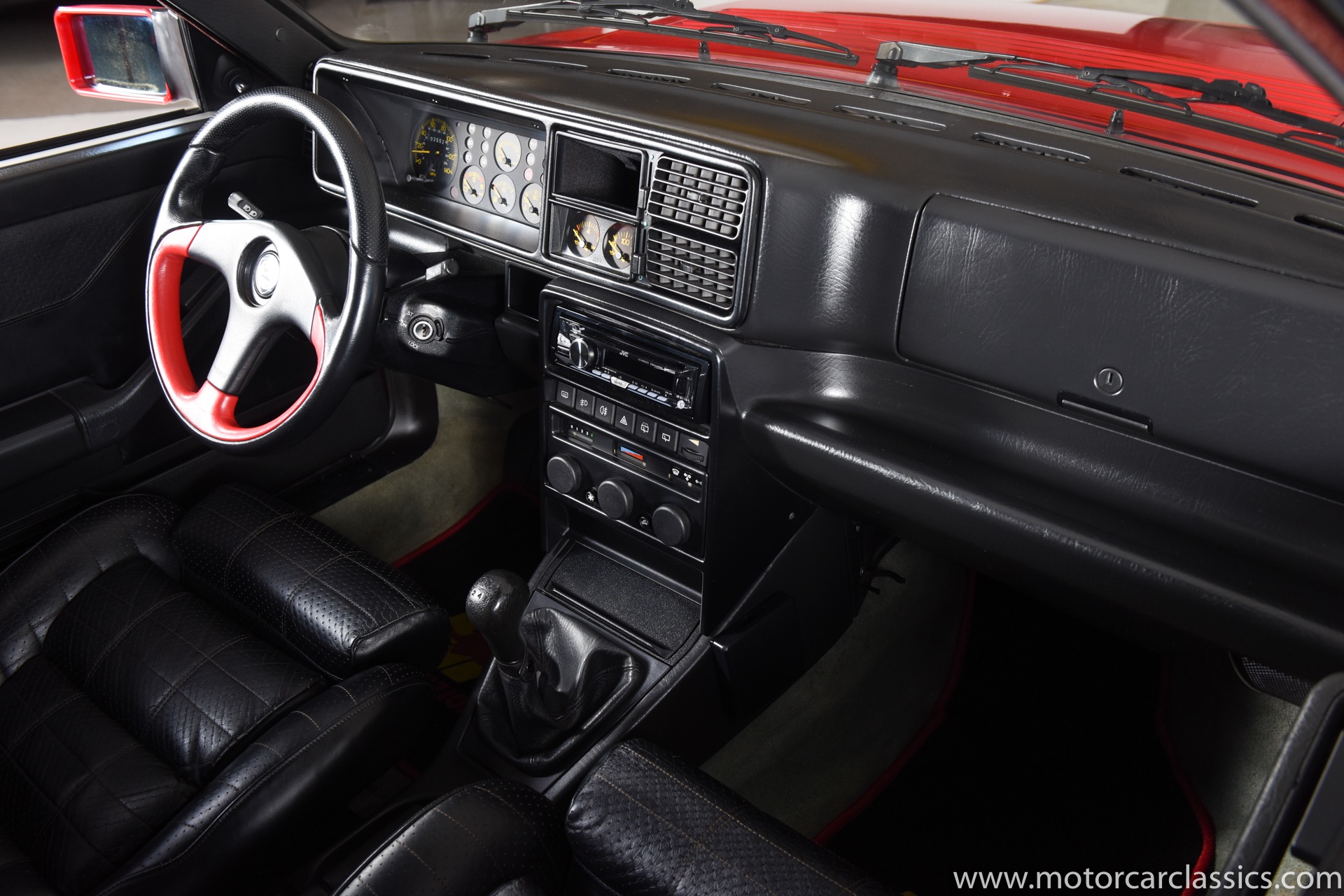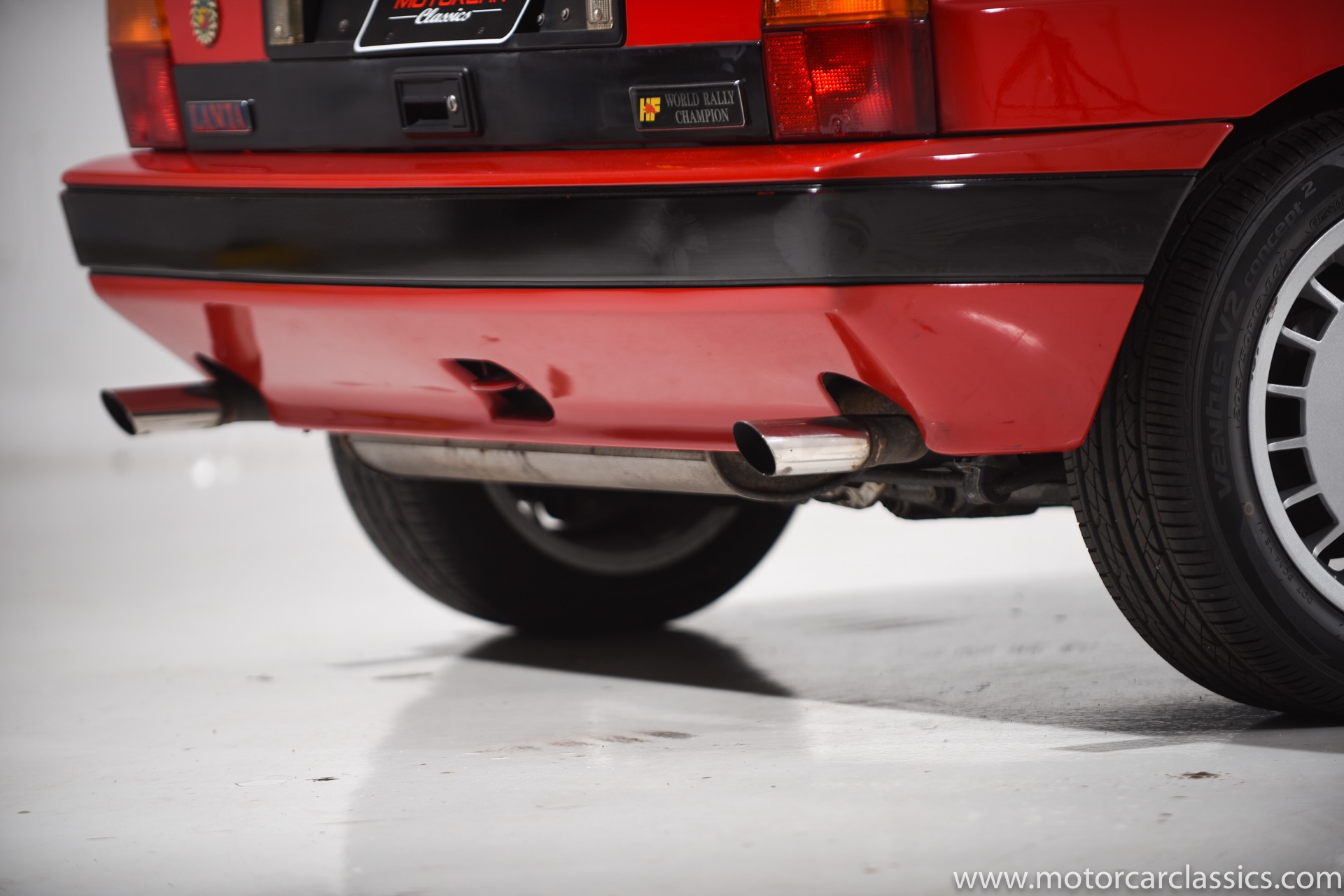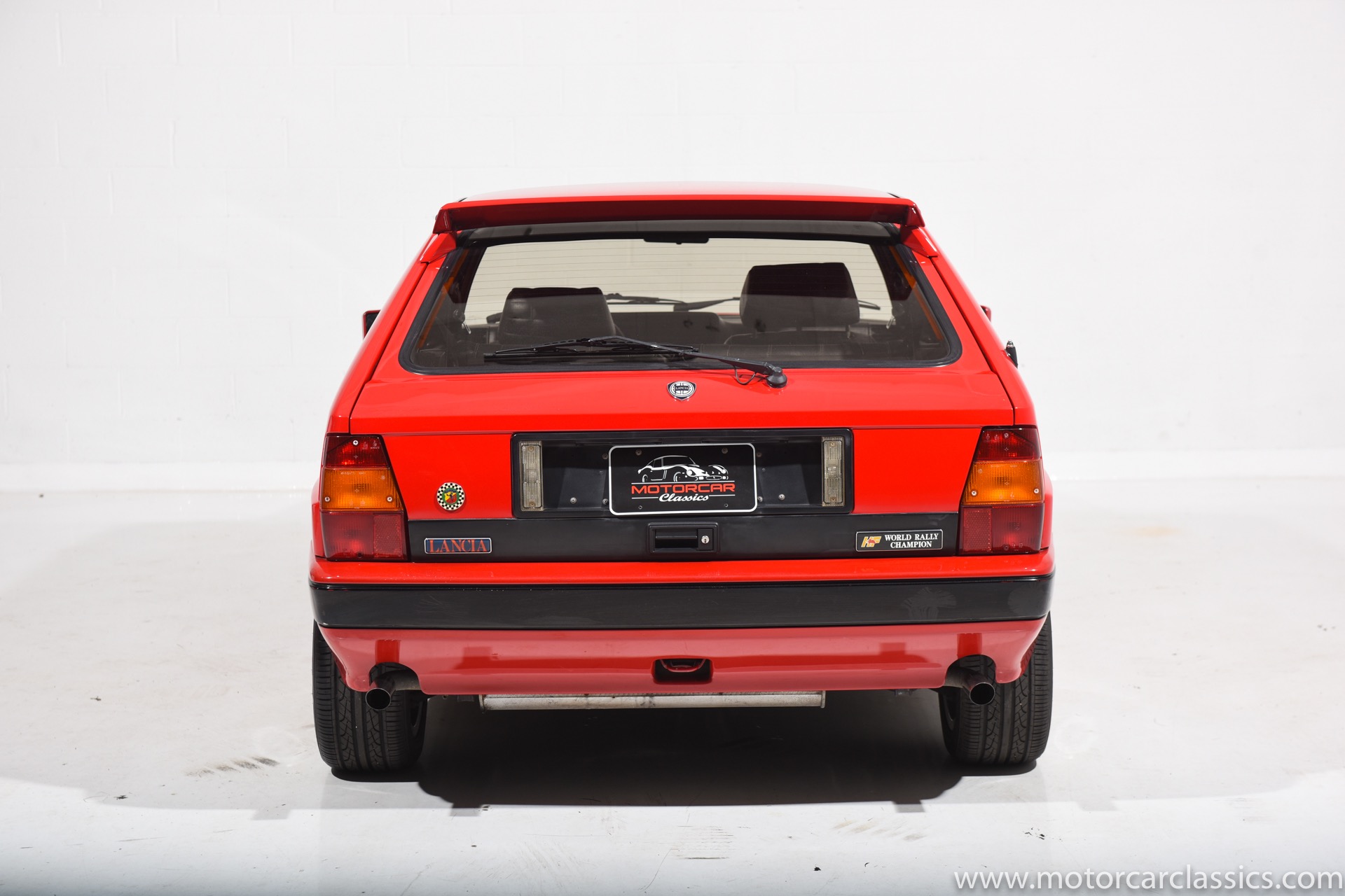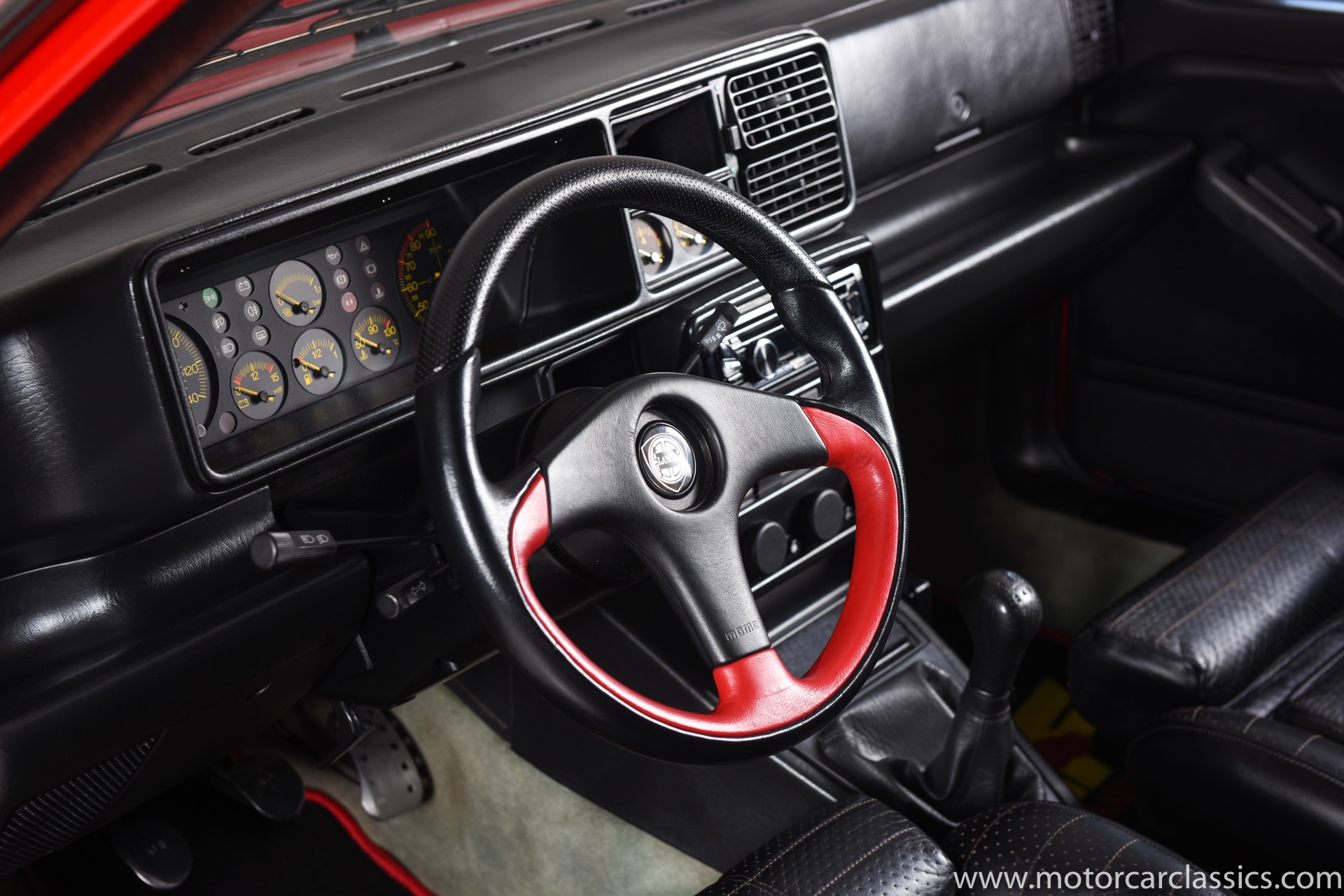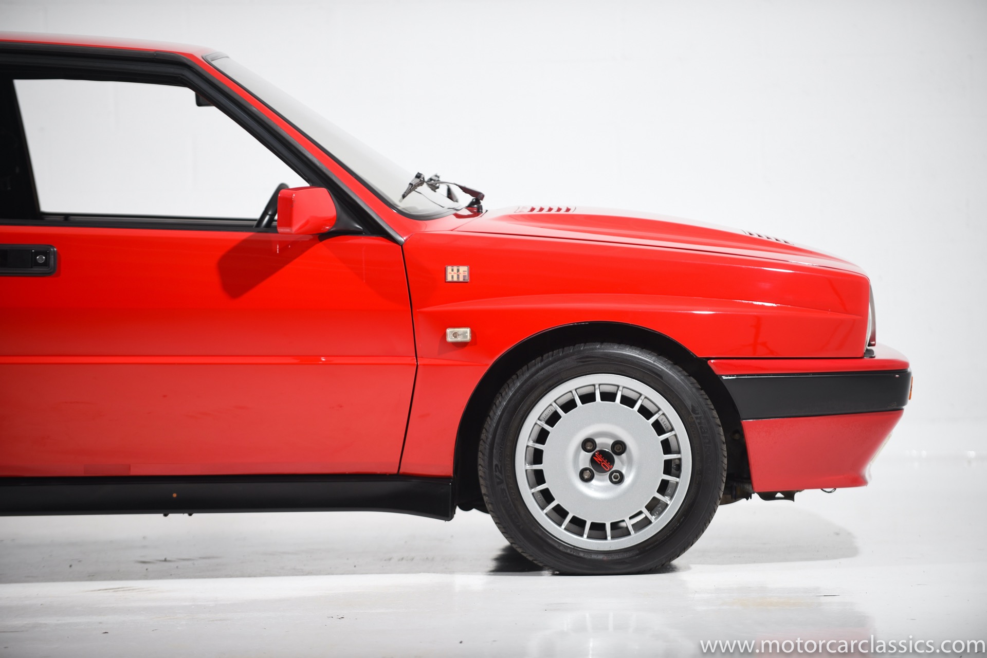 1991 Lancia Delta HF Integrale 16V for sale! Motorcar Classics is proud to present this very rare 1991 Lancia Delta HF Integrale 16V featured in red with black leather interior. A road-going descendant of Lancias world rally championship dominating cars, the Delta HF Integrale 16v features all-wheel drive, a front mounted engine and a Giugiaro-styled 5 door hatchback body style. The 2 litre engine is a turbocharged, double overhead camshaft, 4 cylinder unit that has an output of 207 bhp at 5750 rpm, and maximum torque of 220 lbft at 3500 rpm. The engine powers the wheels via a 5- speed manual transmission. Our superb example was originally delivered in Canada and imported to the US in 2010. It remains all original and has never been modified, rallied or raced. The car has only 35,523 miles. The Carfax reports a mileage inconsistency the result of the original odometer reading in kilometers. A documented change of the instrument shows the odometer being set to the correct reading, in miles, and the original instrument is included. This is surely one of the finest surviving original examples.