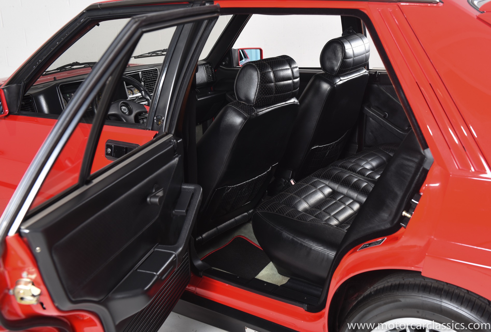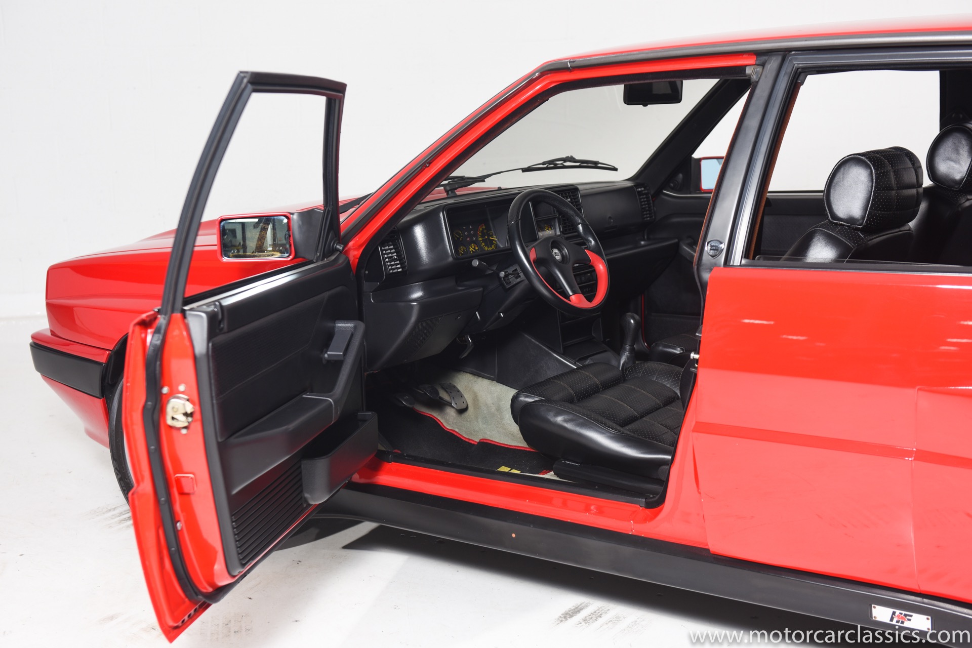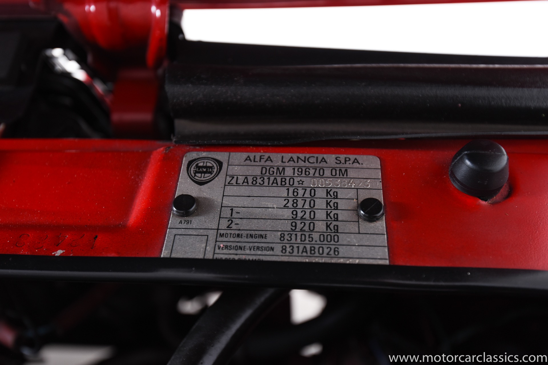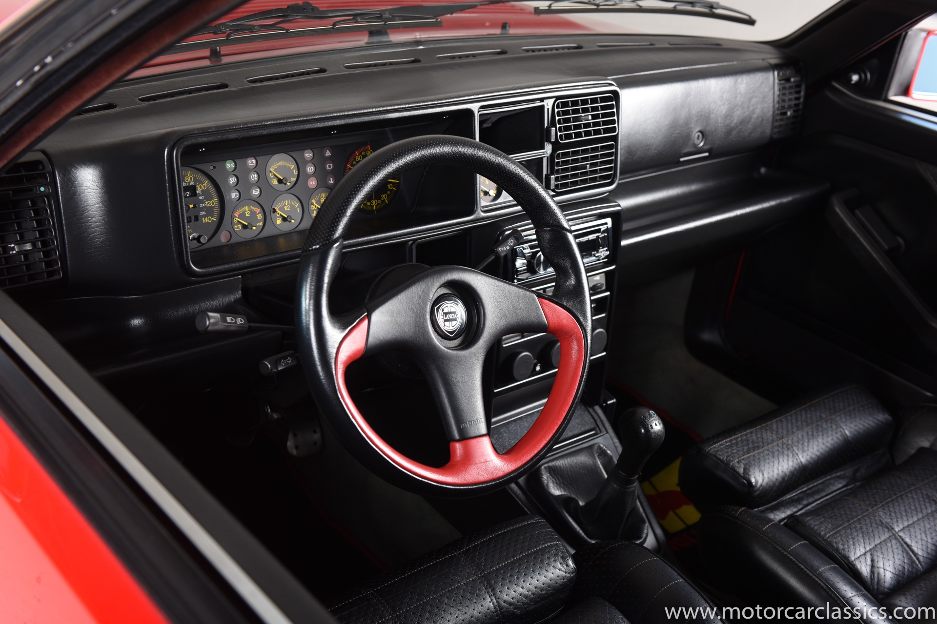 1991 Lancia Delta HF Integrale 16V for sale! Motorcar Classics is proud to present this very rare 1991 Lancia Delta HF Integrale 16V featured in red with black leather interior. A road-going descendant of Lancias world rally championship dominating cars, the Delta HF Integrale 16v features all-wheel drive, a front mounted engine and a Giugiaro-styled 5 door hatchback body style. The 2 litre engine is a turbocharged, double overhead camshaft, 4 cylinder unit that has an output of 207 bhp at 5750 rpm, and maximum torque of 220 lbft at 3500 rpm. The engine powers the wheels via a 5- speed manual transmission. Our superb example was originally delivered in Canada and imported to the US in 2010. It remains all original and has never been modified, rallied or raced. The car has only 35,523 miles. The Carfax reports a mileage inconsistency the result of the original odometer reading in kilometers. A documented change of the instrument shows the odometer being set to the correct reading, in miles, and the original instrument is included. This is surely one of the finest surviving original examples.