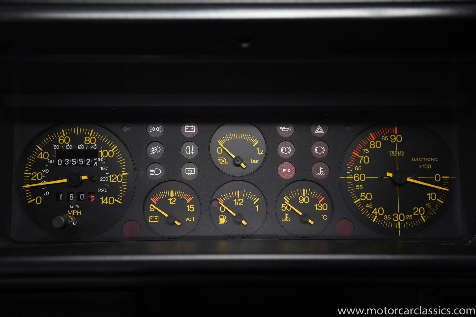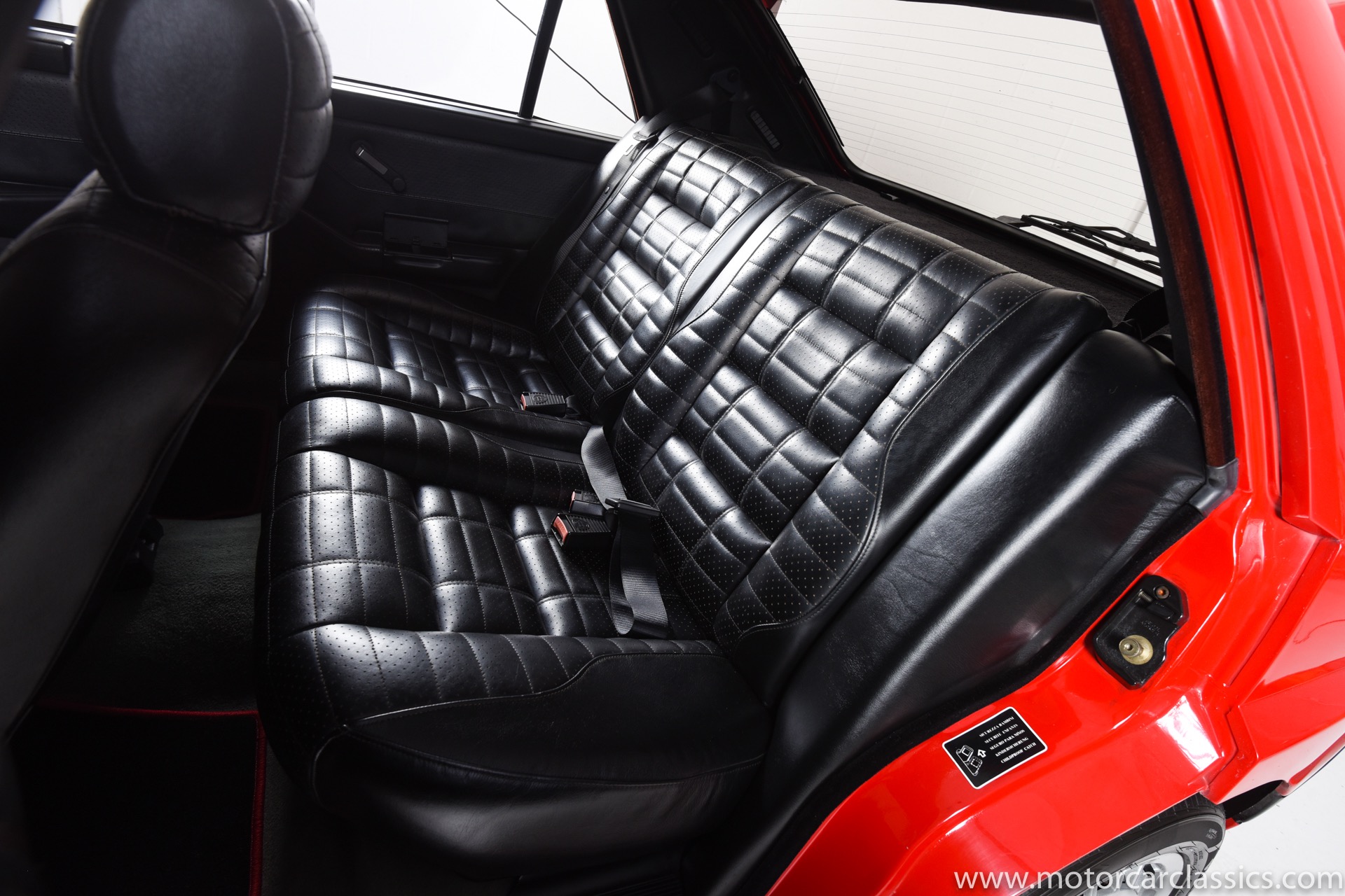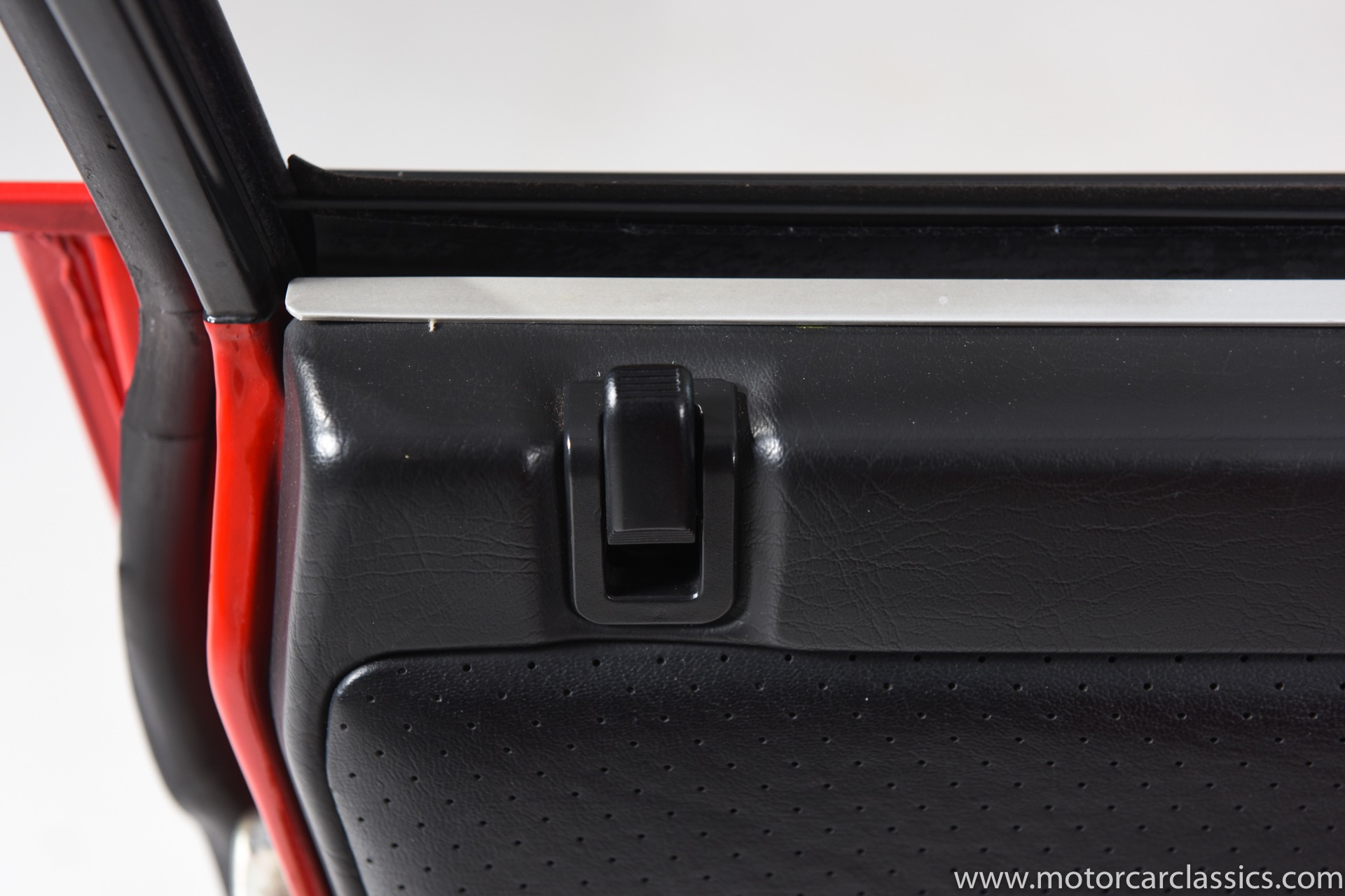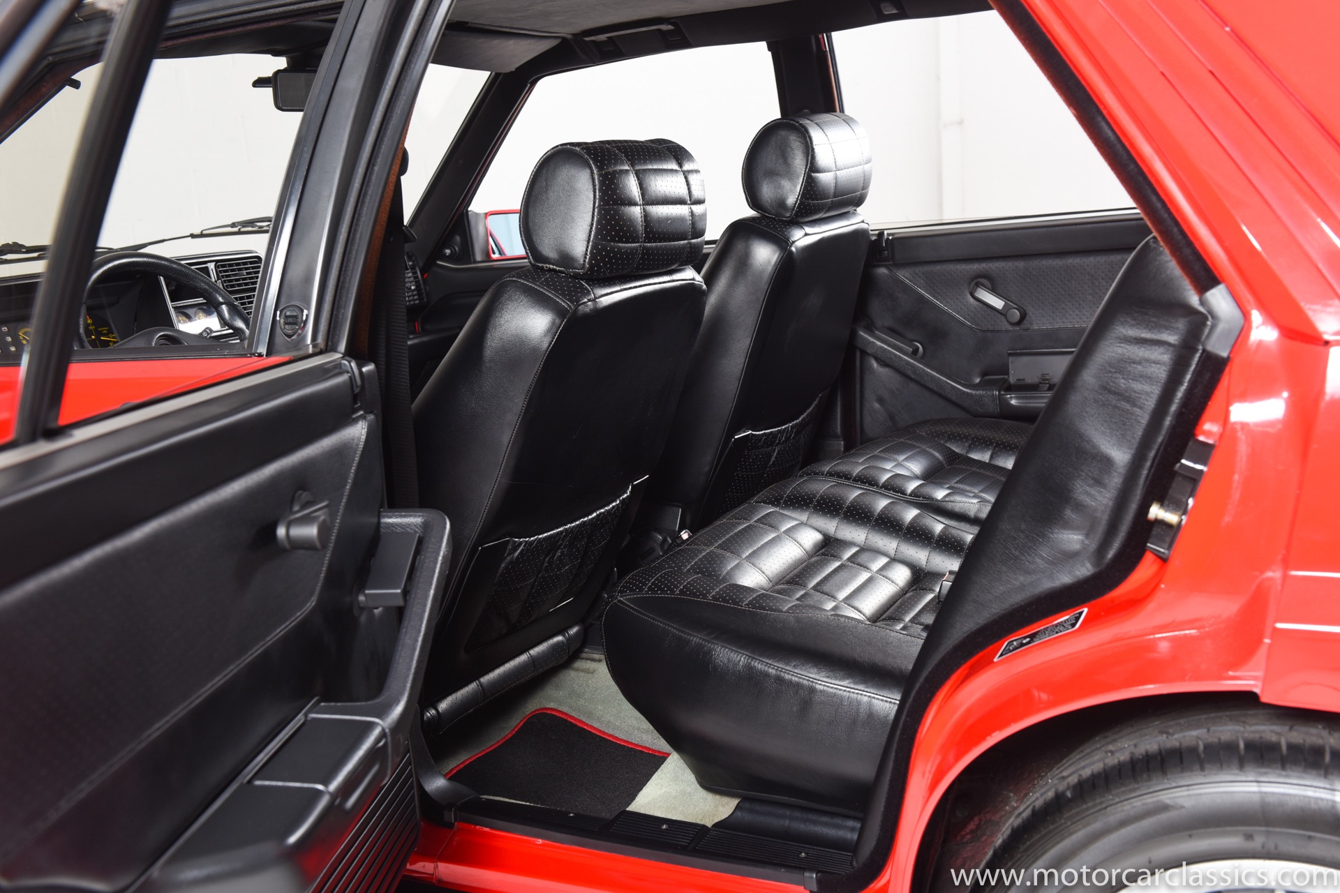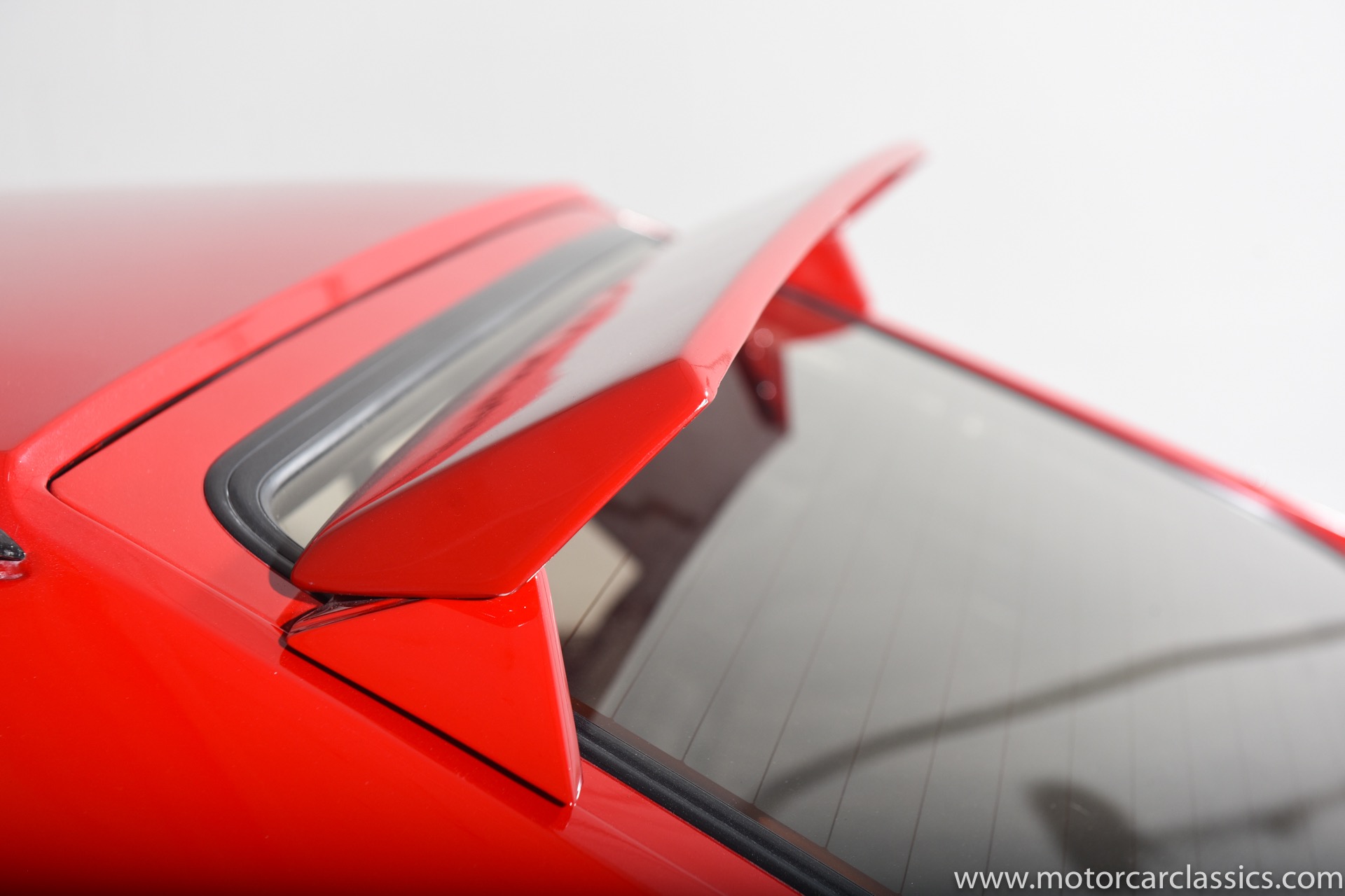 1991 Lancia Delta HF Integrale 16V for sale! Motorcar Classics is proud to present this very rare 1991 Lancia Delta HF Integrale 16V featured in red with black leather interior. A road-going descendant of Lancias world rally championship dominating cars, the Delta HF Integrale 16v features all-wheel drive, a front mounted engine and a Giugiaro-styled 5 door hatchback body style. The 2 litre engine is a turbocharged, double overhead camshaft, 4 cylinder unit that has an output of 207 bhp at 5750 rpm, and maximum torque of 220 lbft at 3500 rpm. The engine powers the wheels via a 5- speed manual transmission. Our superb example was originally delivered in Canada and imported to the US in 2010. It remains all original and has never been modified, rallied or raced. The car has only 35,523 miles. The Carfax reports a mileage inconsistency the result of the original odometer reading in kilometers. A documented change of the instrument shows the odometer being set to the correct reading, in miles, and the original instrument is included. This is surely one of the finest surviving original examples.