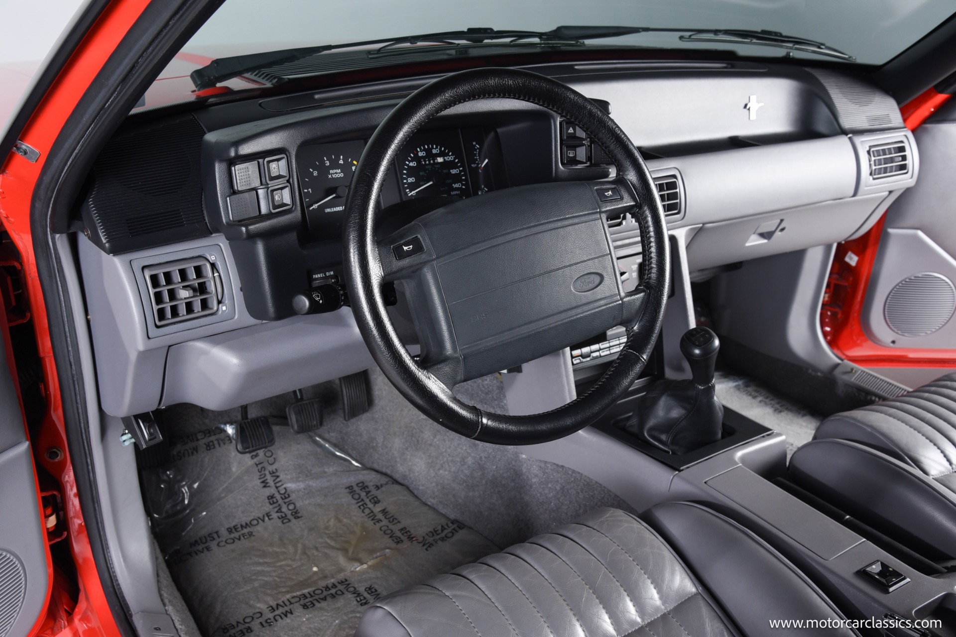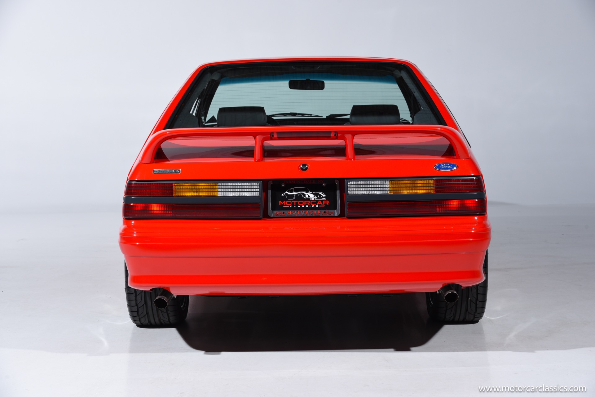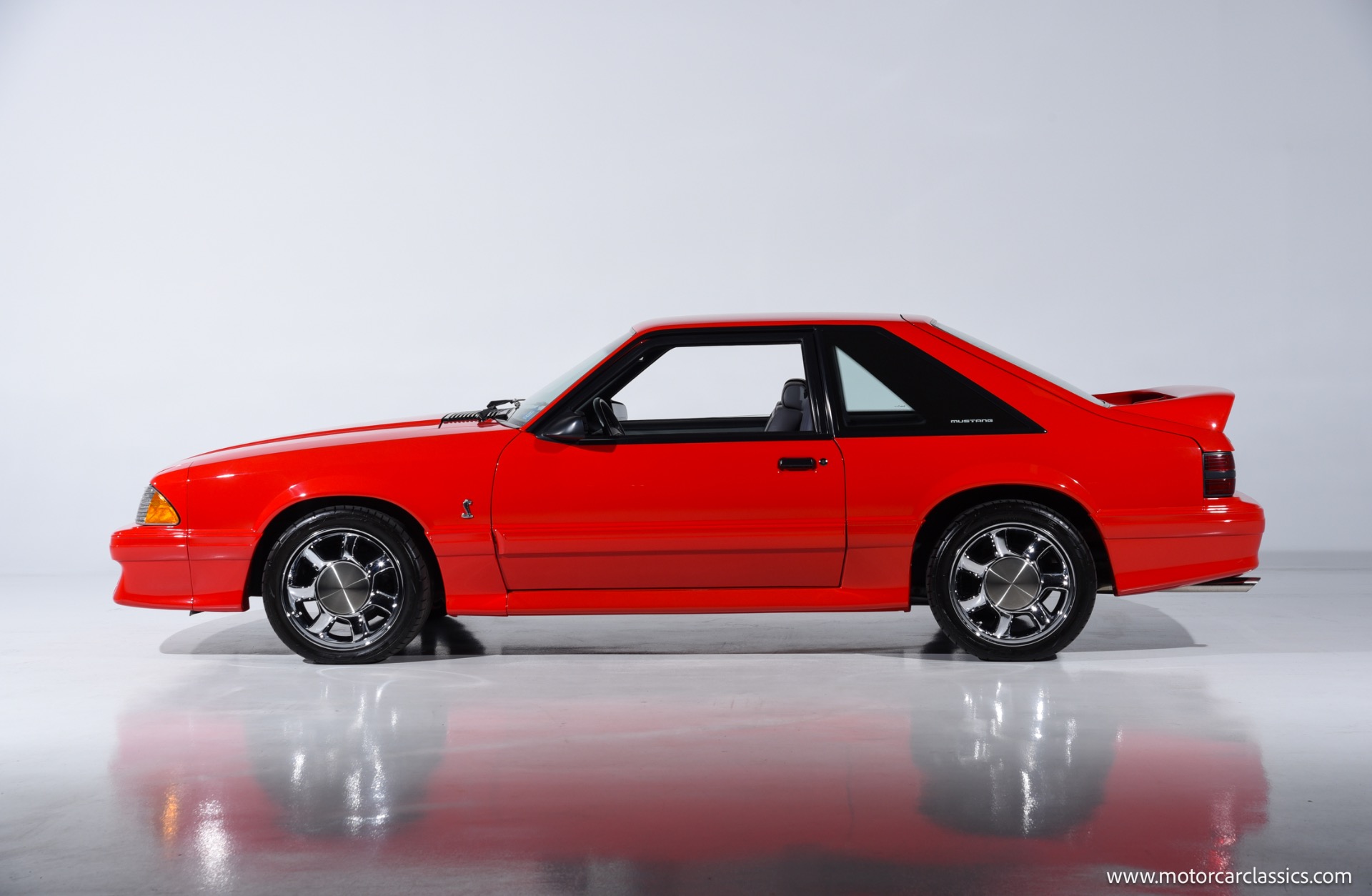 1993 Ford Mustang SVT Cobra for sale! Motorcar Classics is proud to offer this exceptionally well-preserved 1993 Ford Mustang SVT Cobra, a pivotal, one-year-only performance model that marked the swan song of the Fox-body era and the debut effort of Ford's newly formed Special Vehicle Team. Finished in striking Red over a Gray interior, this Cobra shows just 3,660 miles and remains a highly collectible example of one of 1993's most desirable American performance cars. Power comes from the factory 230 HP 5.0L naturally aspirated V8 with overhead valves and 16 valves, paired to a 5-speed manual transmission, delivering the sharper, more responsive character SVT engineered through unique intake, camshaft, and exhaust tuning compared with the standard 5.0 GT. As an SVT Cobra, it also benefits from model-specific suspension and braking upgrades, making it one of the best-balanced Fox-body Mustangs ever produced and a cornerstone in the modern SVT/Performance Ford story. This hatchback presents with its original SVT-authenticated configuration and low-mileage condition that will appeal to both serious collectors and enthusiasts who recognize the historical and market significance of the 1993 Cobra as the last and most refined evolution of the original 5.0 Mustang performance legend.
