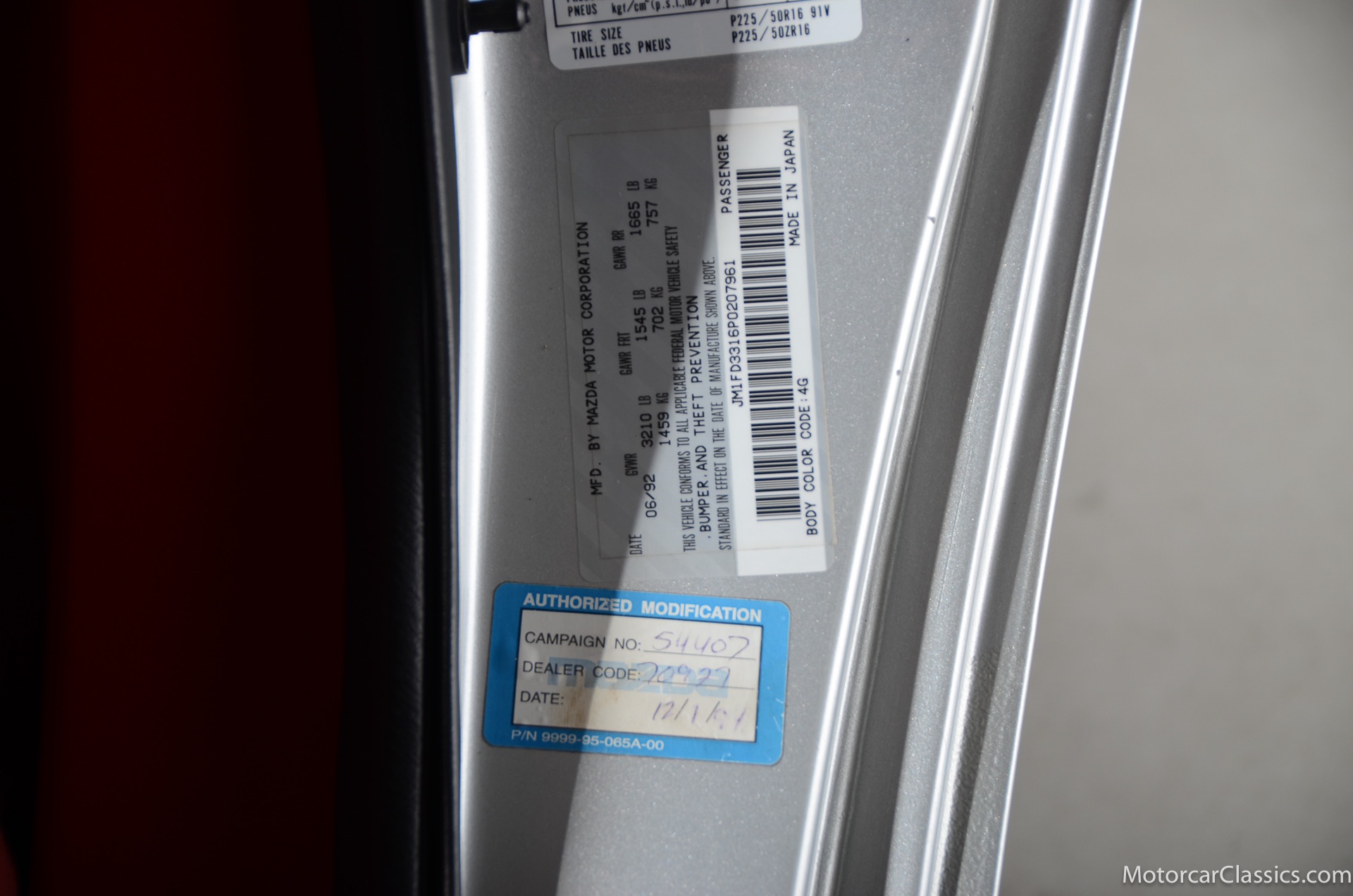 1993 Mazda RX-7 Turbo for sale! Motorcar Classics is proud to present this brilliantly original 1993 Mazda RX-7 Turbo coupe featured in silver with red interior. This 3-owner RX-7 has been cherished from new and it has covered only 40,259 miles in the hands of three owners. The car has never been damaged and it is equipped with Mazda's full range of luxury amenities. The factory original Bose AM/FM/Cassette/CD sound system is still in place along with the factory alloy wheels. This is an investment-grade example that you can drive or show with pride.