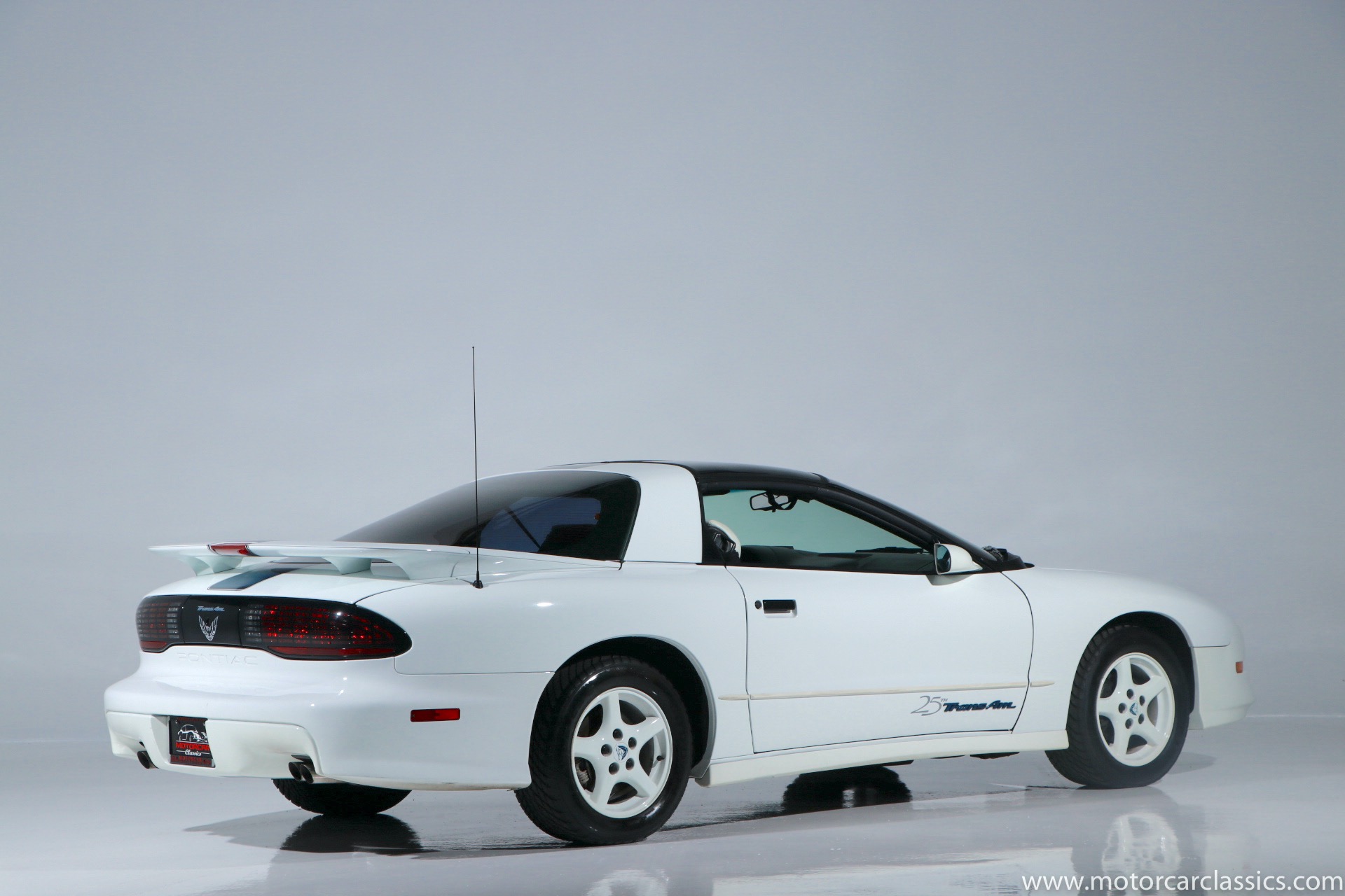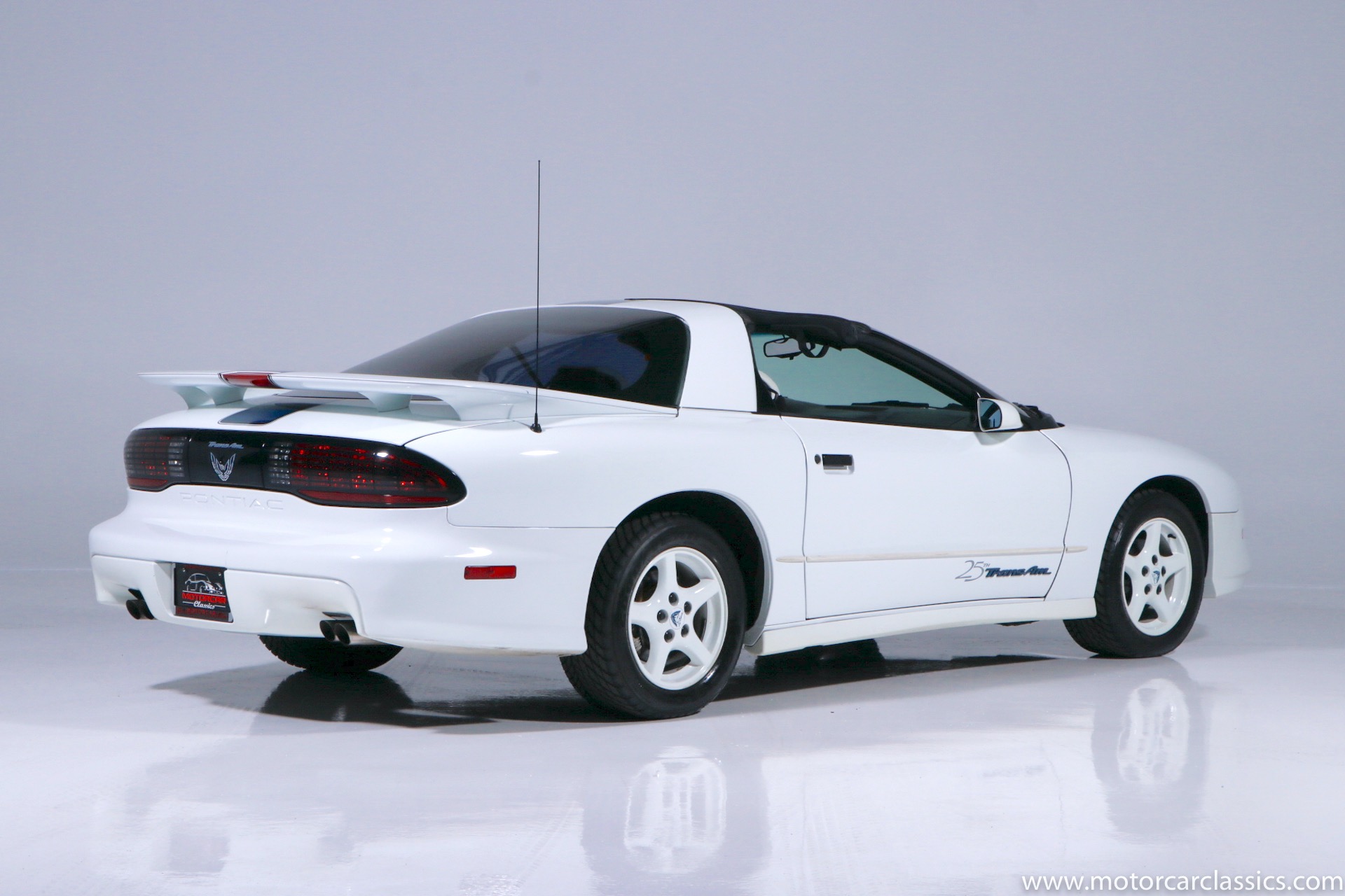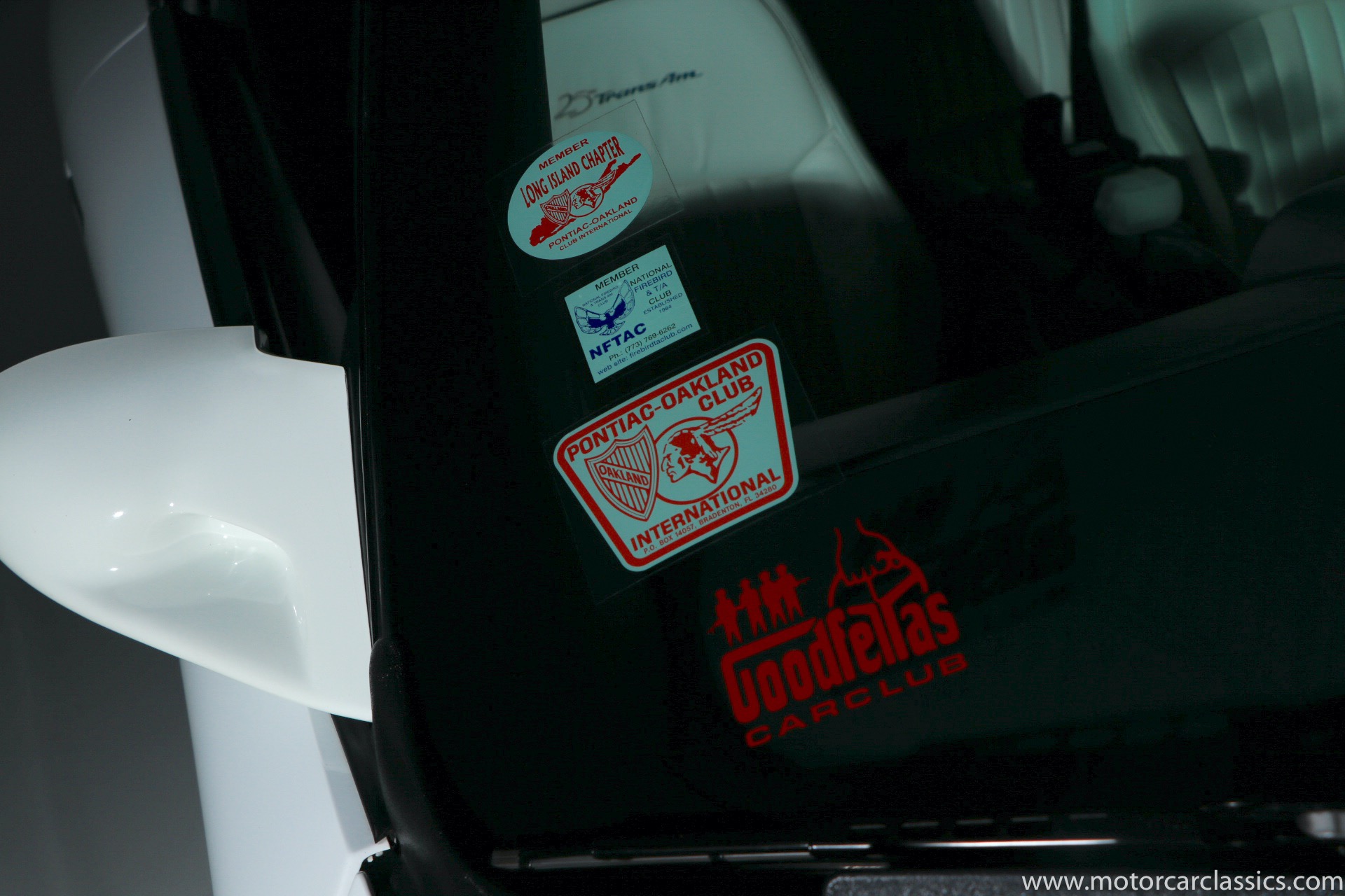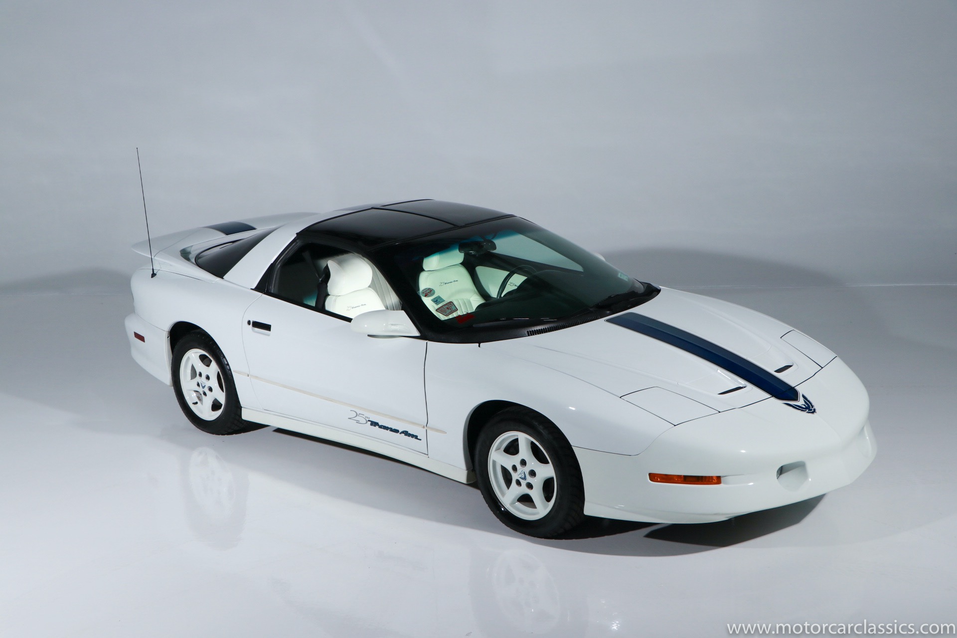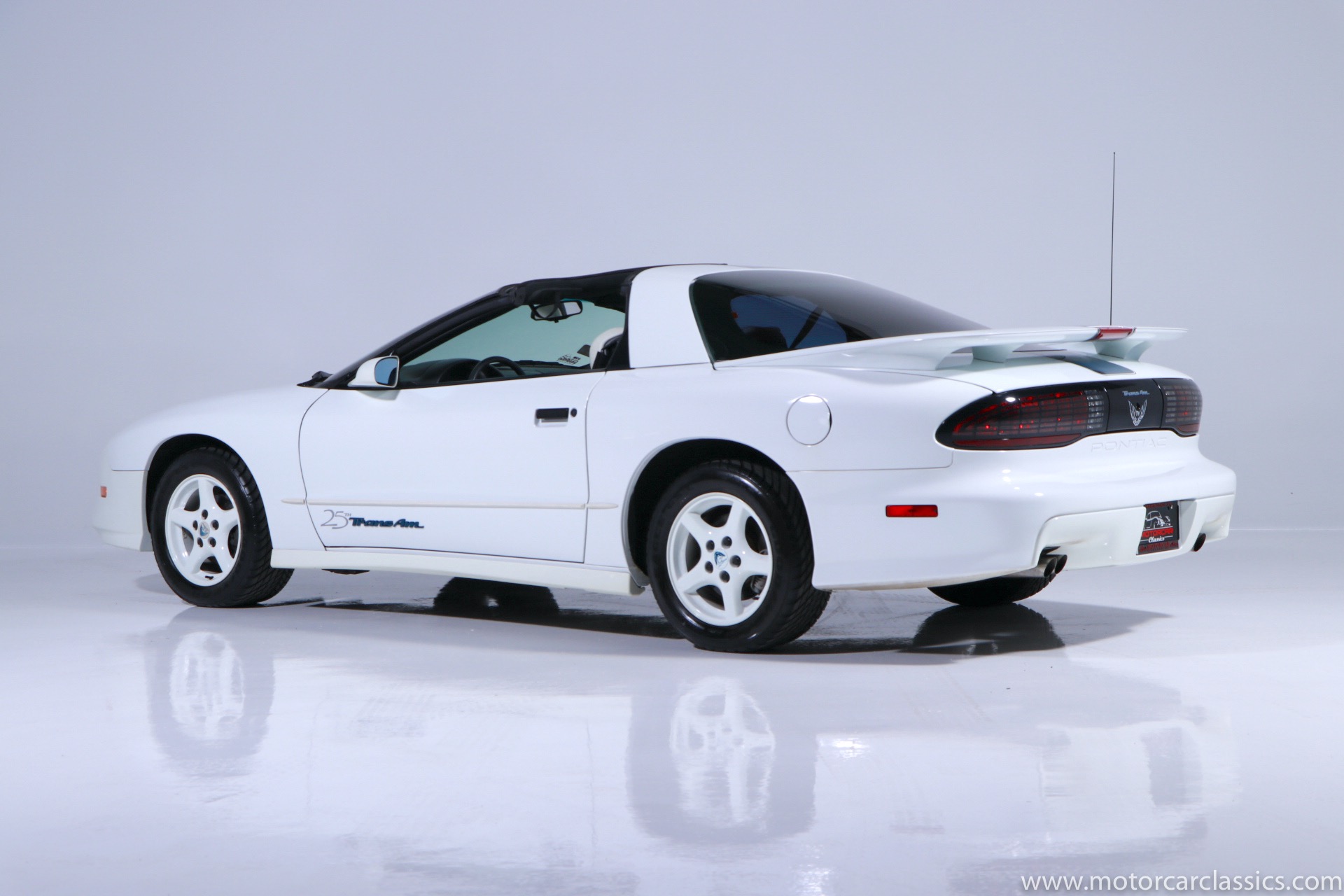 1994 Pontiac Firebird 25th Anniversary Edition for sale! Motorcar Classics is pleased to present this stunning white 1994 Pontiac Firebird Trans Am 25th Anniversary Edition with 6-speed manual transmission, T-Tops, and all of the features that are unique to last generation Firebird. It has had two enthusiast owners and covered only 43,553 miles. This car is all original with an unblemished history and is ready for its next owner to drive and show with pride.