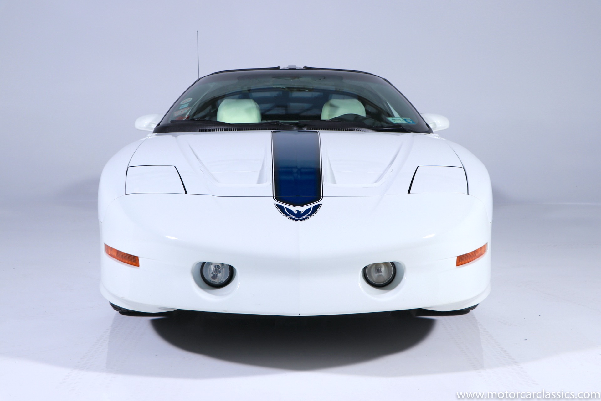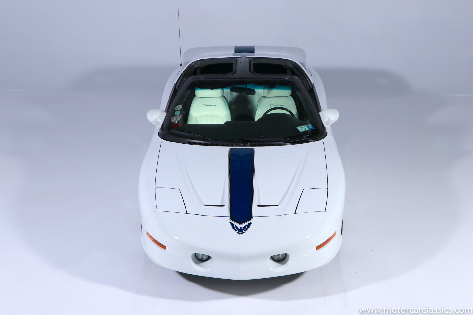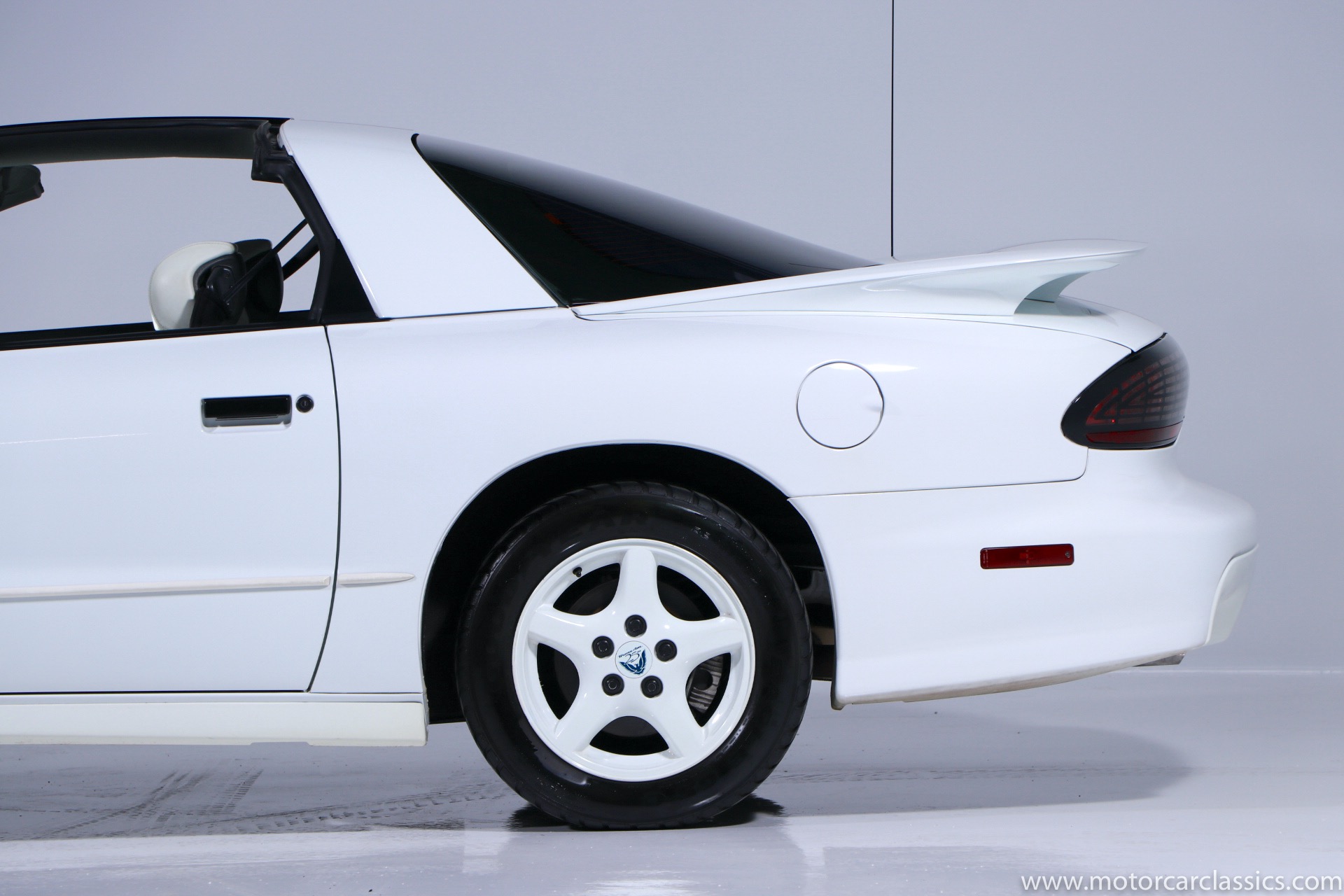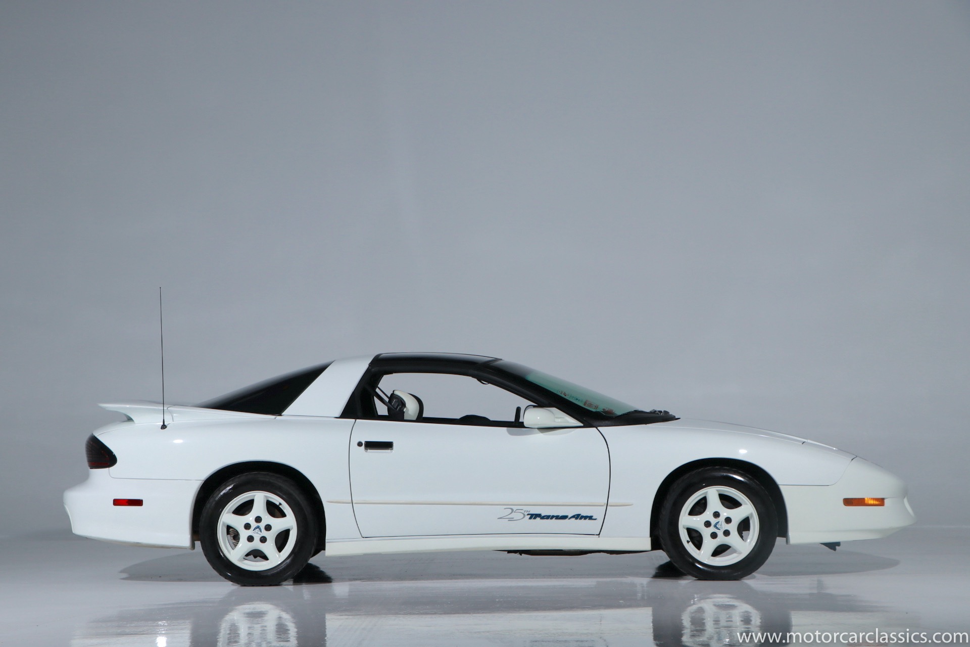 1994 Pontiac Firebird 25th Anniversary Edition for sale! Motorcar Classics is pleased to present this stunning white 1994 Pontiac Firebird Trans Am 25th Anniversary Edition with 6-speed manual transmission, T-Tops, and all of the features that are unique to last generation Firebird. It has had two enthusiast owners and covered only 43,553 miles. This car is all original with an unblemished history and is ready for its next owner to drive and show with pride.