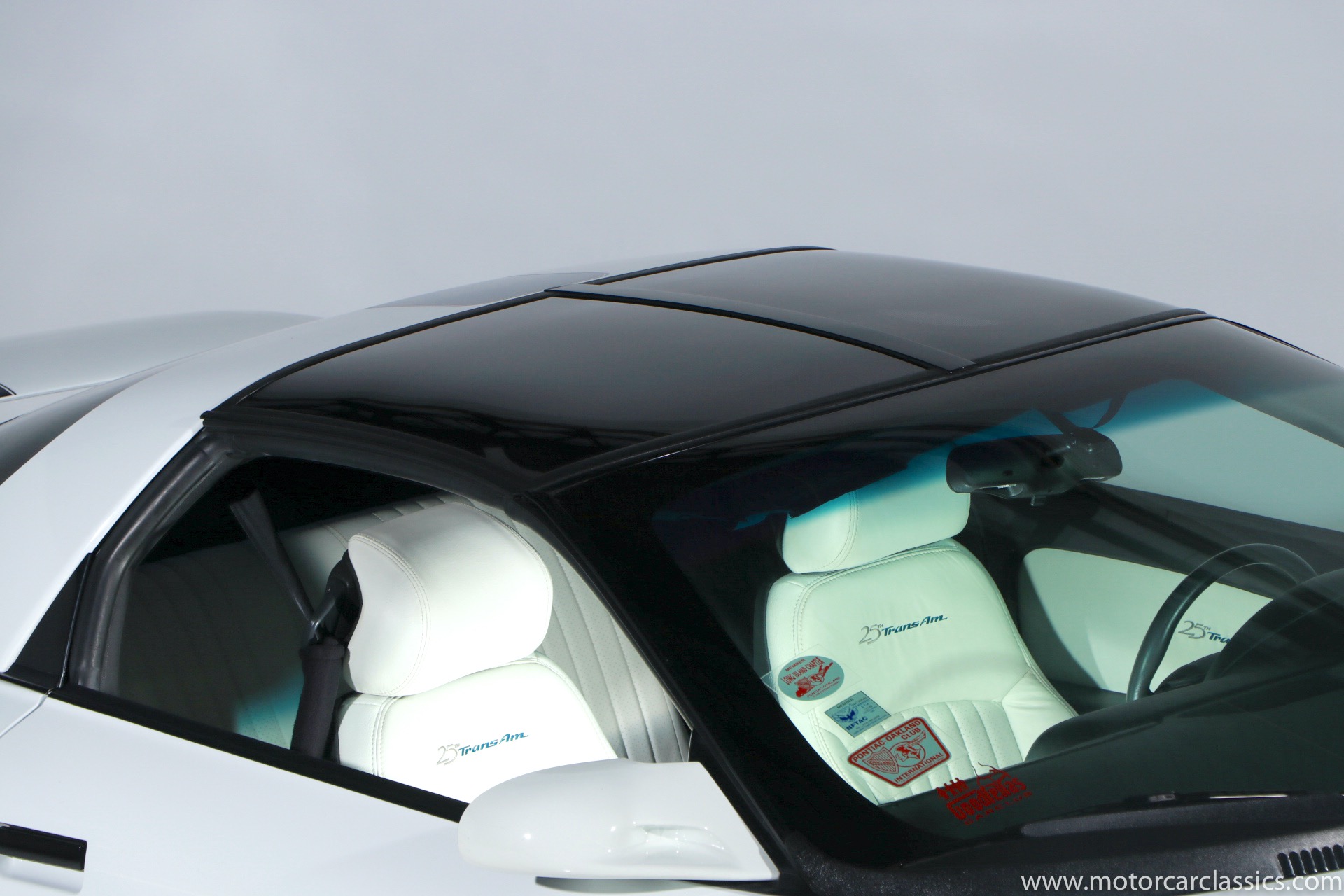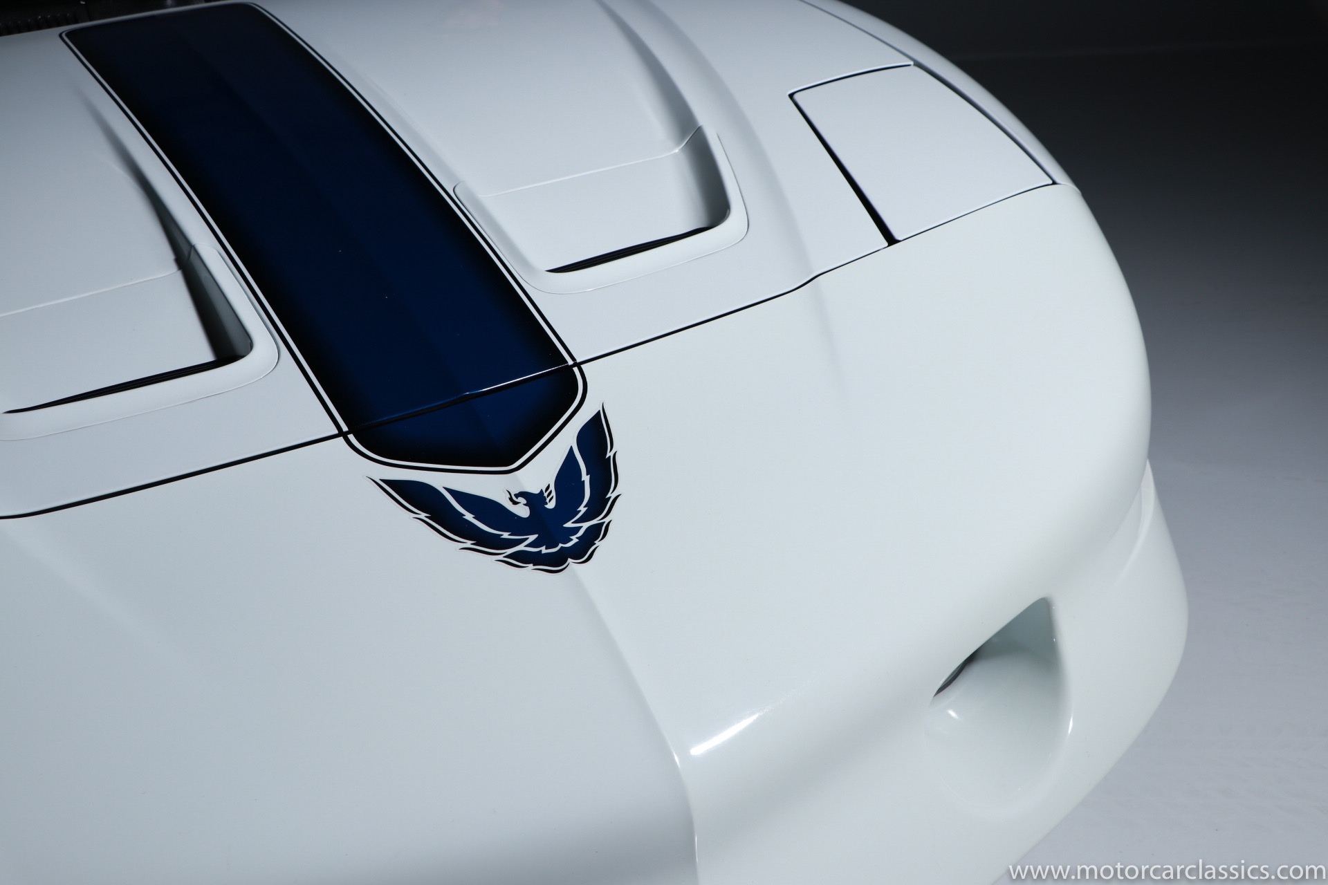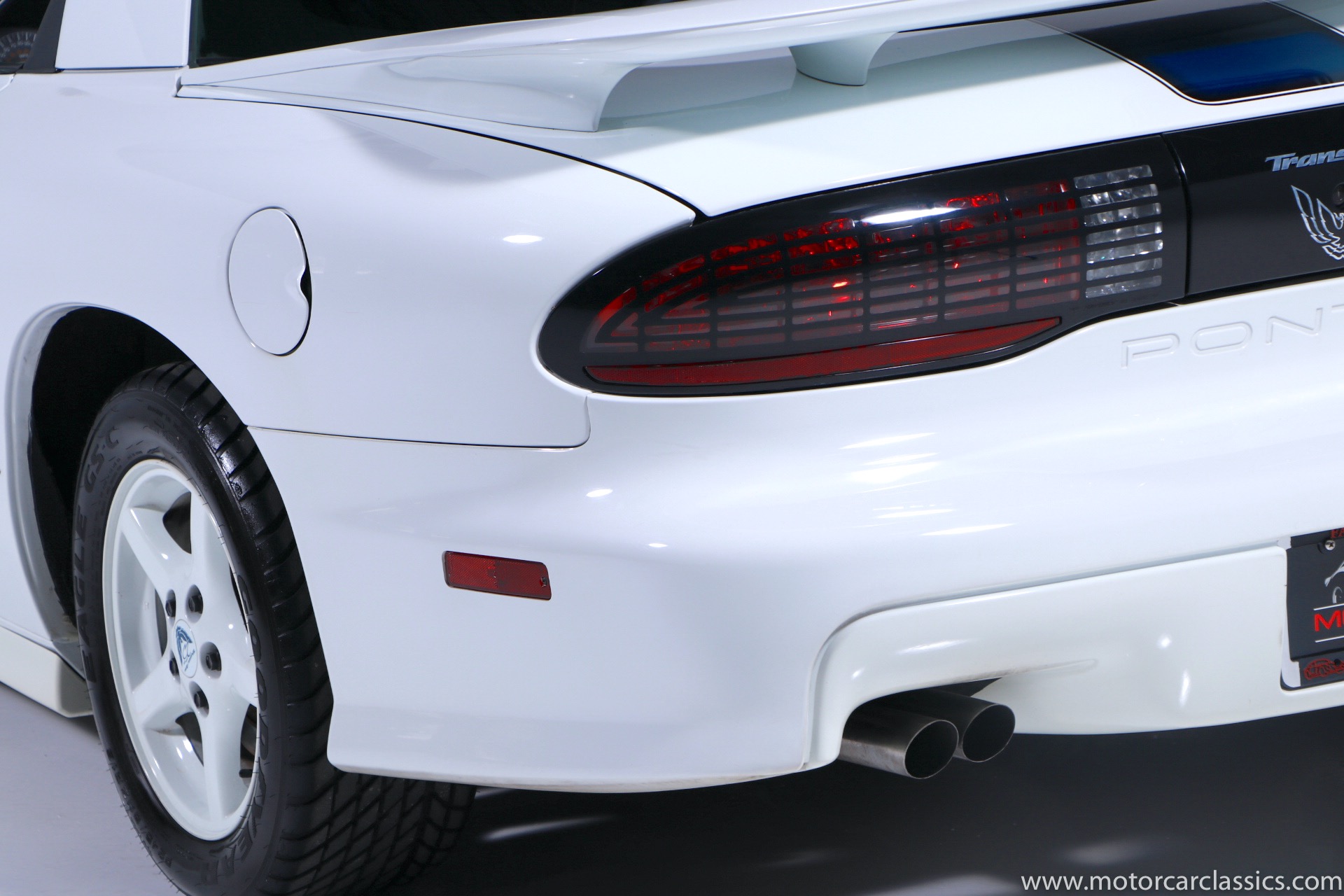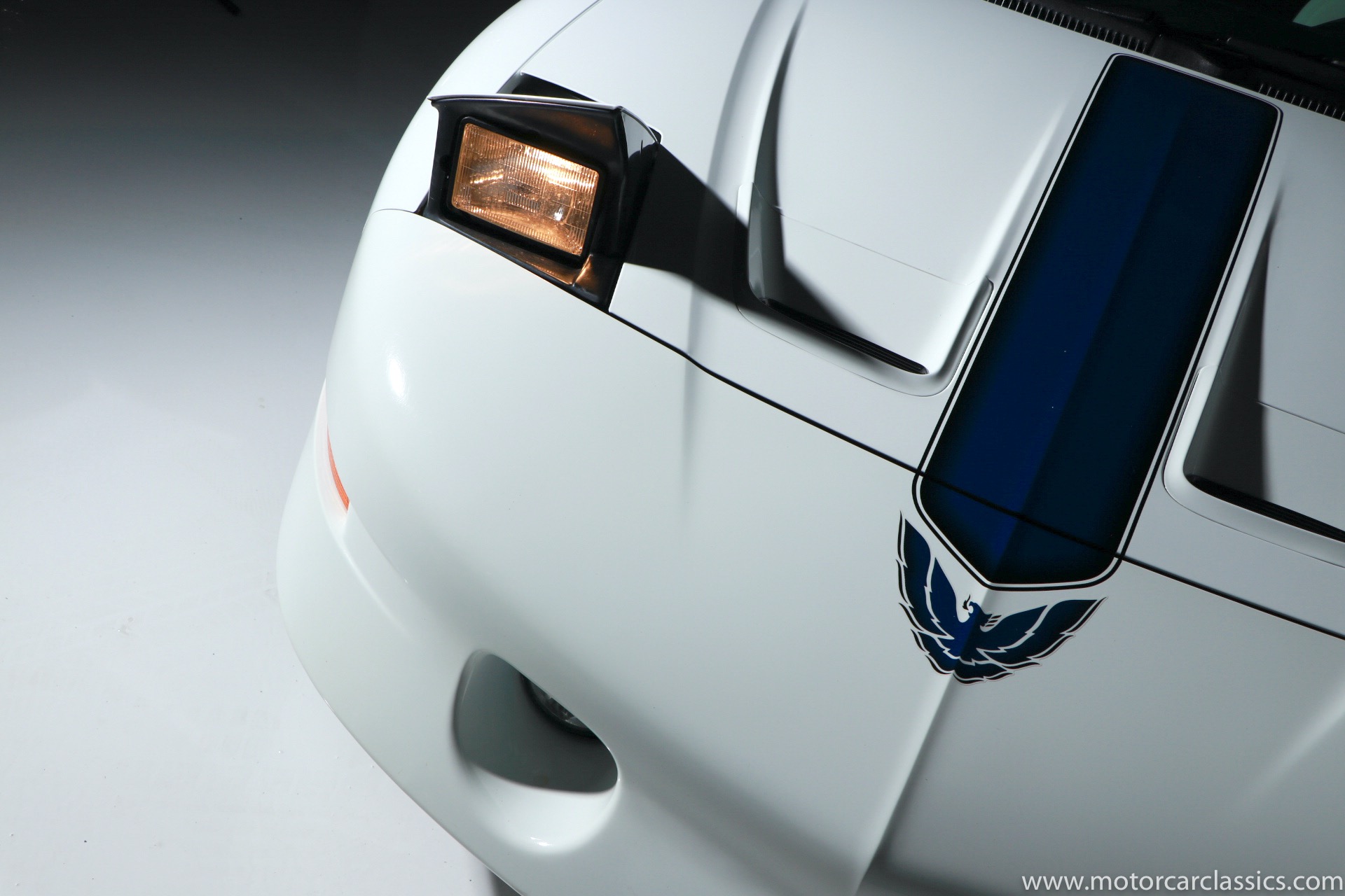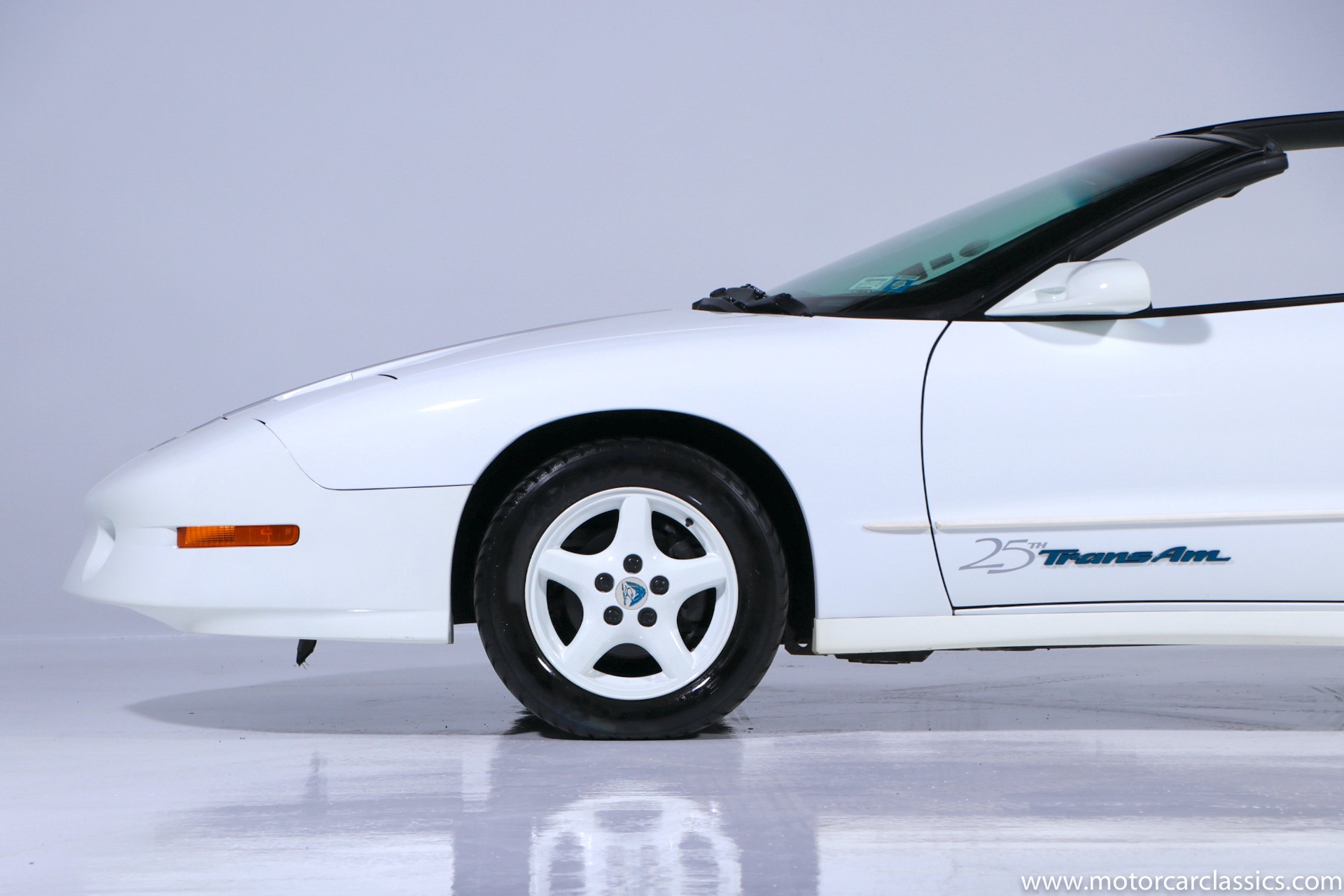 1994 Pontiac Firebird 25th Anniversary Edition for sale! Motorcar Classics is pleased to present this stunning white 1994 Pontiac Firebird Trans Am 25th Anniversary Edition with 6-speed manual transmission, T-Tops, and all of the features that are unique to last generation Firebird. It has had two enthusiast owners and covered only 43,553 miles. This car is all original with an unblemished history and is ready for its next owner to drive and show with pride.