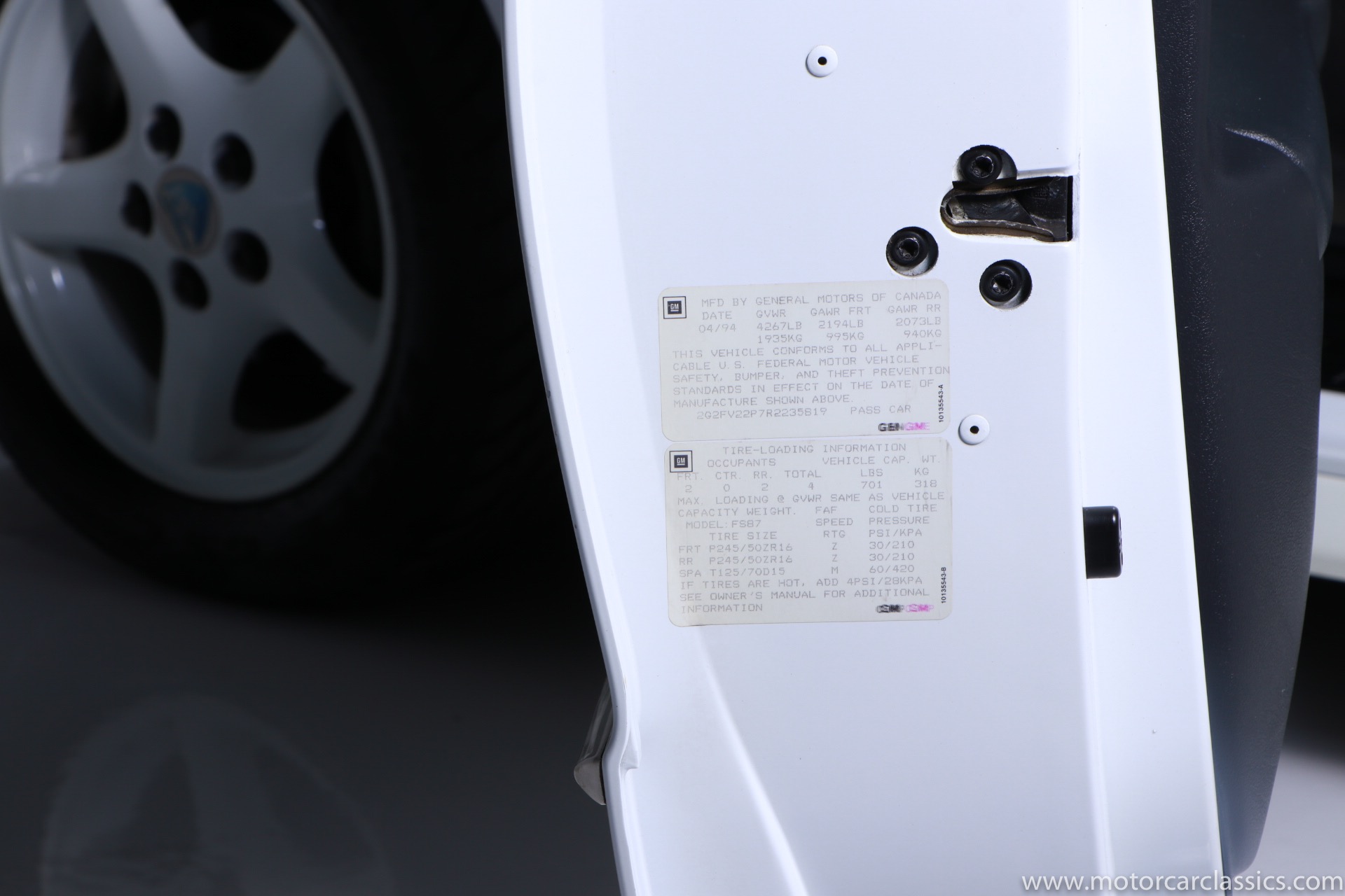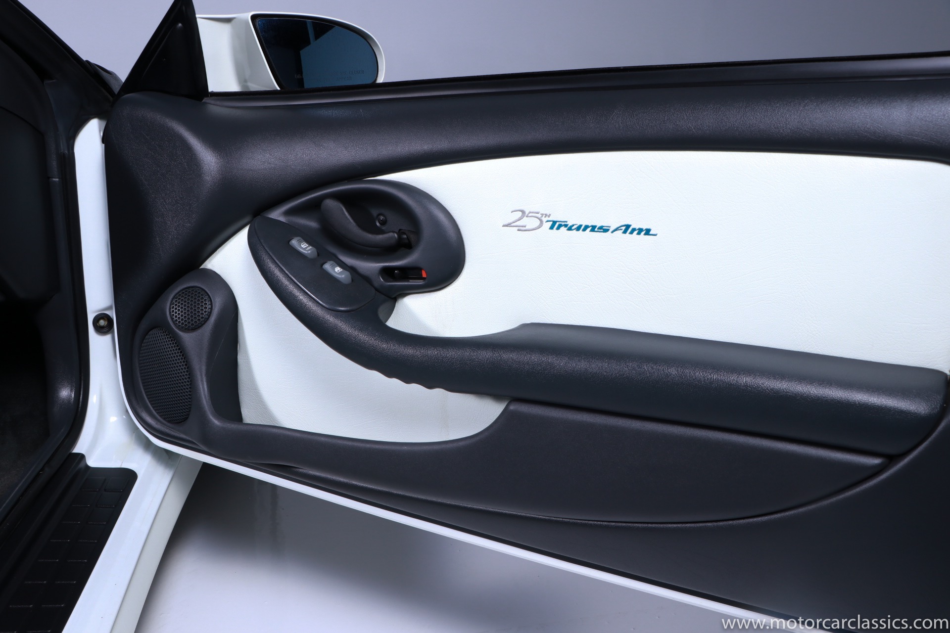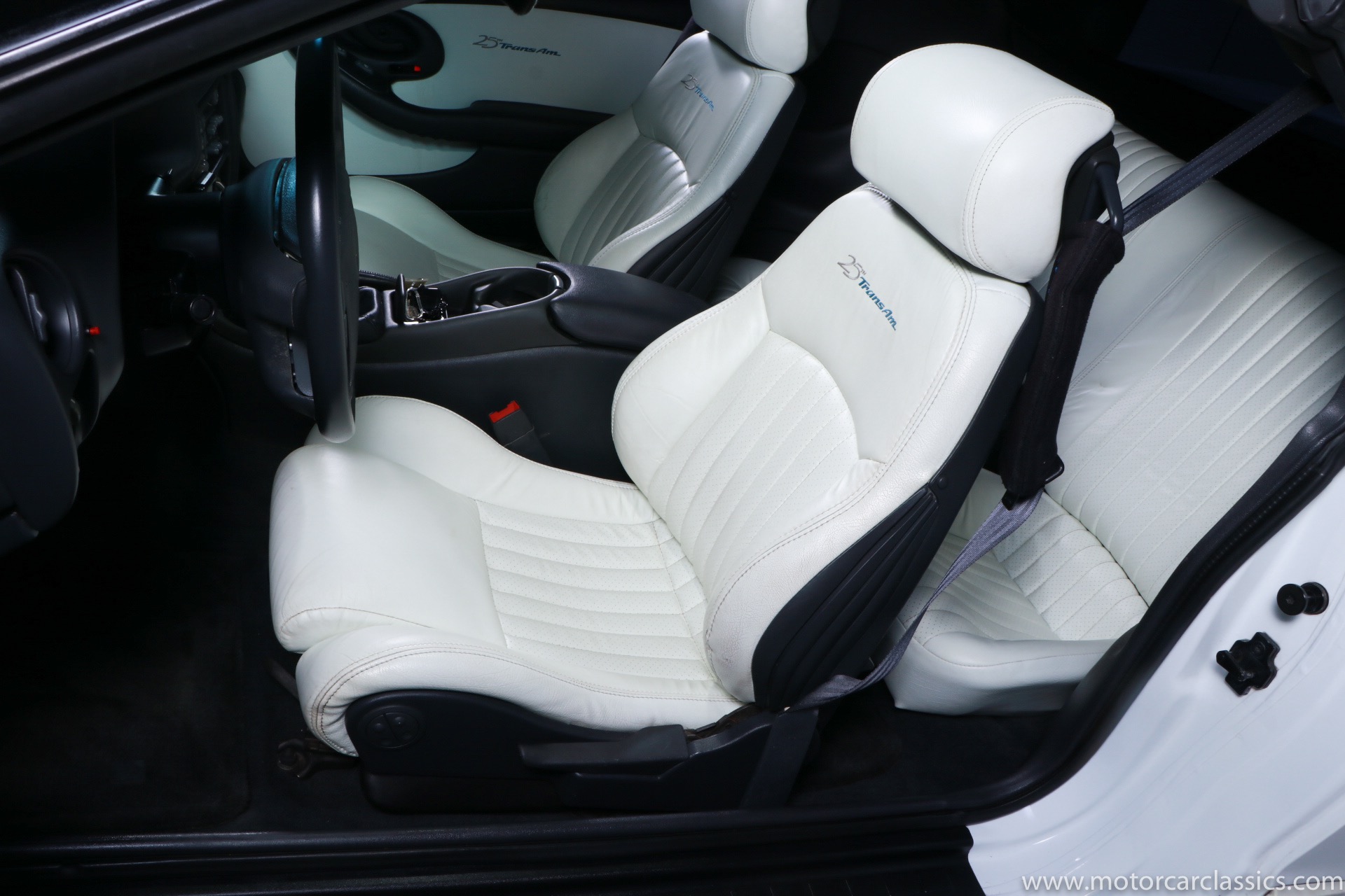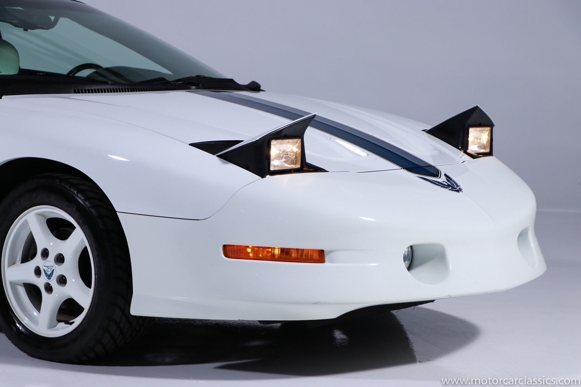 1994 Pontiac Firebird 25th Anniversary Edition for sale! Motorcar Classics is pleased to present this stunning white 1994 Pontiac Firebird Trans Am 25th Anniversary Edition with 6-speed manual transmission, T-Tops, and all of the features that are unique to last generation Firebird. It has had two enthusiast owners and covered only 43,553 miles. This car is all original with an unblemished history and is ready for its next owner to drive and show with pride.