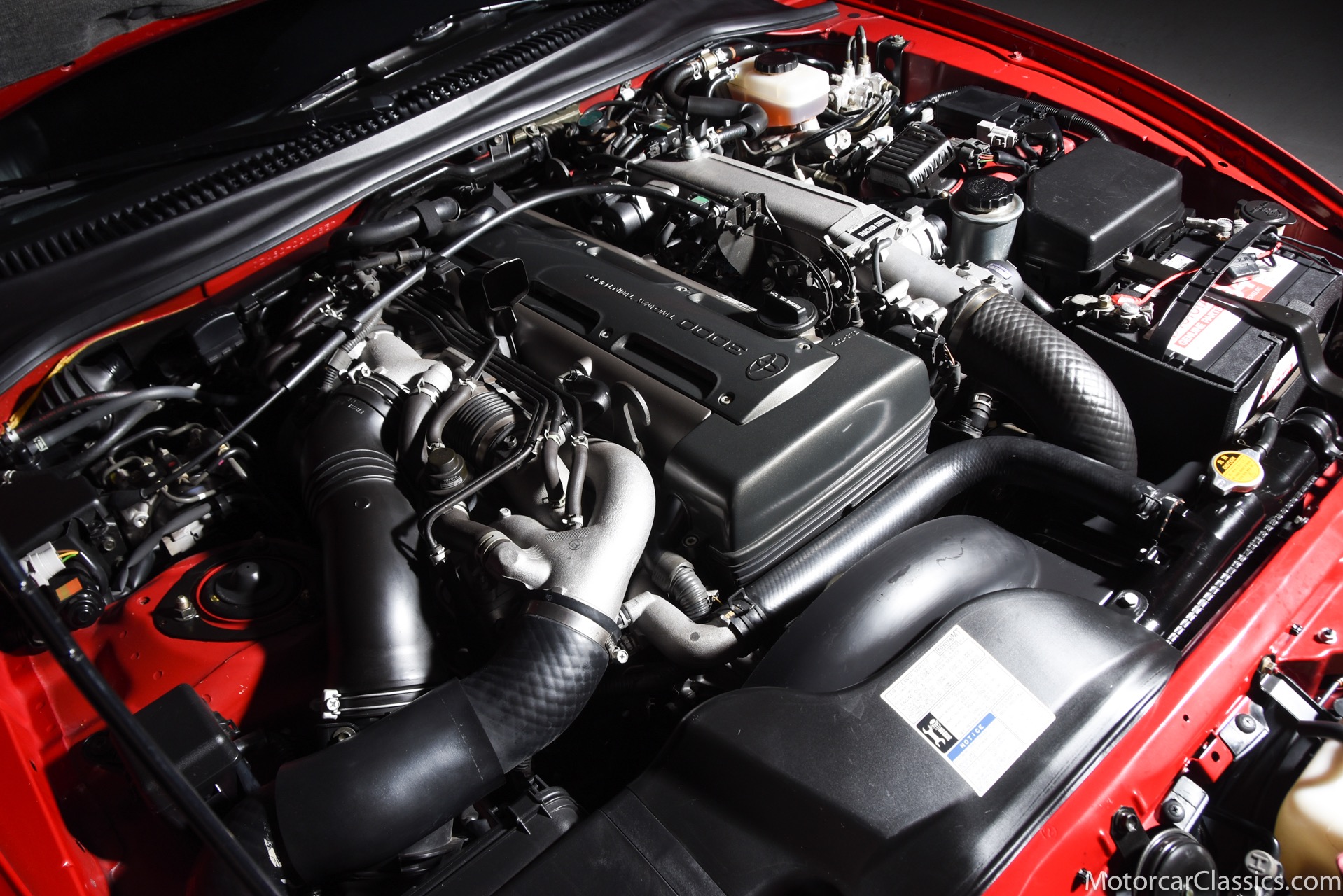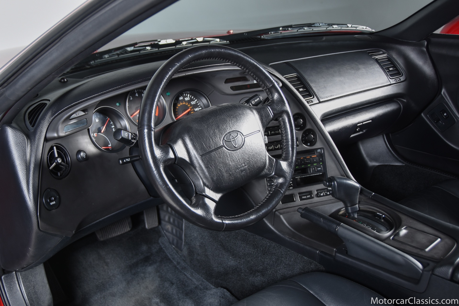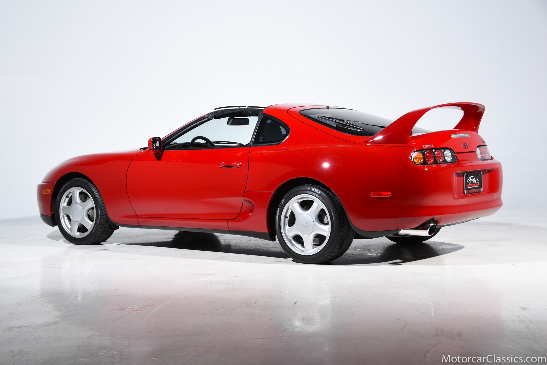 1994 Toyota Supra Turbo for sale! Motorcar Classics is pleased to present this 1995 Toyota Supra Turbo featured in Renaissance Red with black interior. This 1994 Toyota Supra Turbo is a Canadian-market example that was first registered in British Columbia, and it was brought to the US in 2020. Power is supplied by a twin-turbocharged 3.0-liter inline-six paired with a four-speed automatic transmission and a factory limited-slip differential. The car is equipped with a rear spoiler, a removable sport roof panel, automatic climate control, heated mirrors, and heated front seats with power adjustment for the driver. This Supra Turbo is reported to be one of approximately 200 MKIV examples produced for the Canadian market and now shows under 38k miles. Factory 17 wheels are wrapped in Michelin Pilot SX tires measuring 235/35 up front and 255/40 out back. The braking system features vented rotors and Supra-branded calipers at all four corners. The cockpit features heated front seats upholstered in black leather with a matching dashboard door panels, and carpets. Amenities include power adjustments for the driver, cruise control, automatic climate control, heated side mirrors, power windows and locks, and a factory stereo with CD and cassette players. The twin-turbocharged and intercooled 3.0L 2JZ-GTE inline-six was factory rated at 320 horsepower at 5,600 rpm and 315 lb-ft of torque at 4,000 rpm. Power is sent to the rear wheels via a four-speed automatic transmission and a Torsen limited-slip differential. Our Supra has an unblemished history and it can be considered an investment-grade example of this very collectible Japanese sports car.